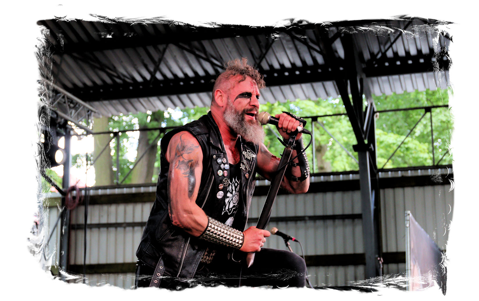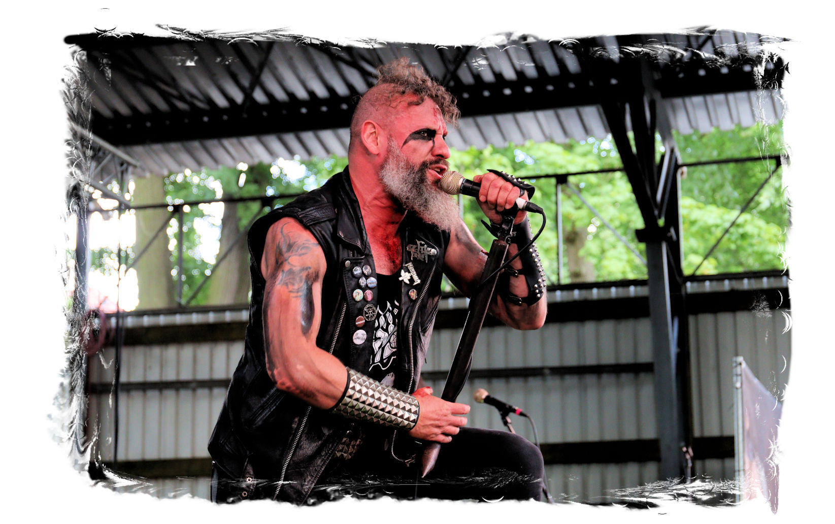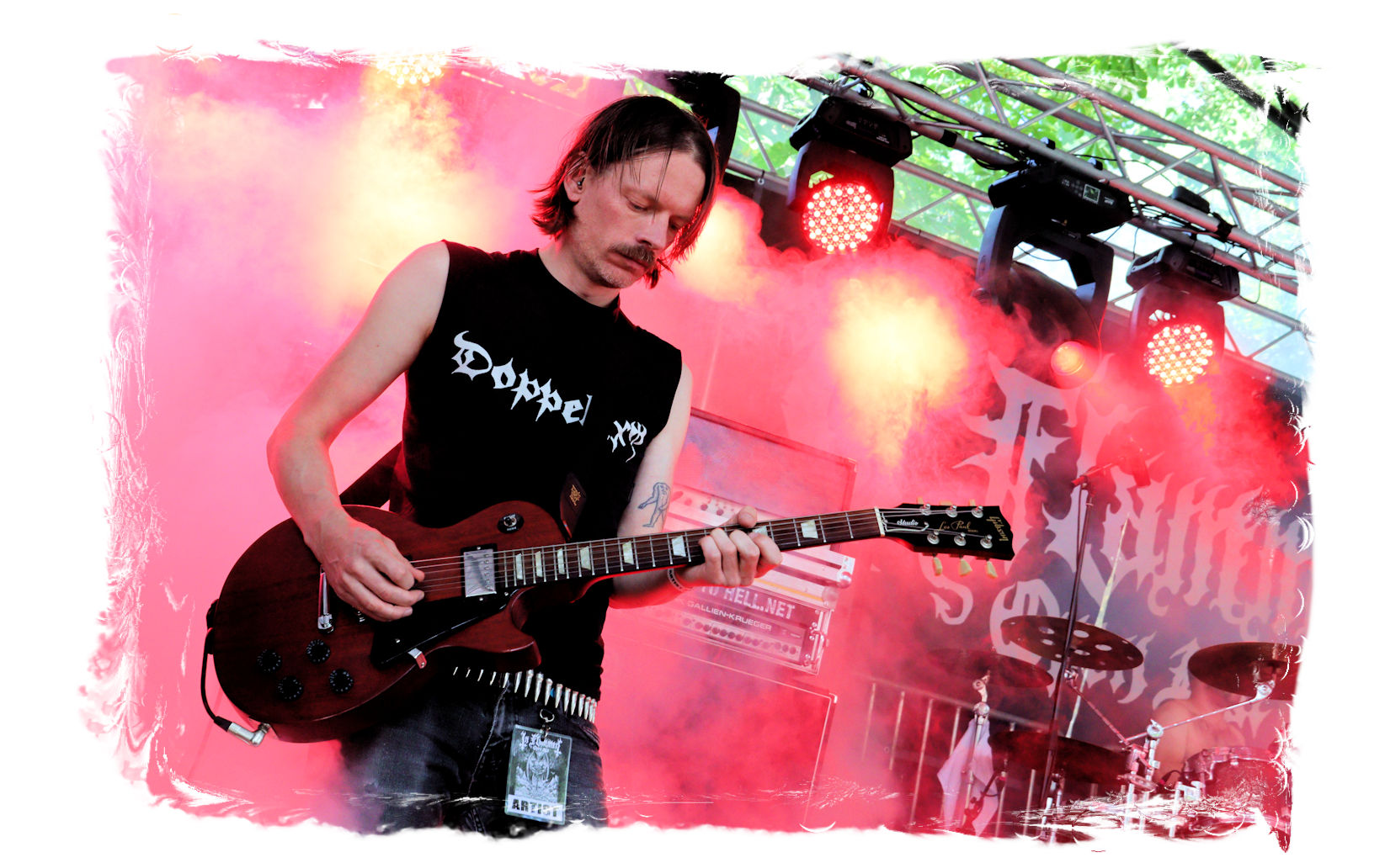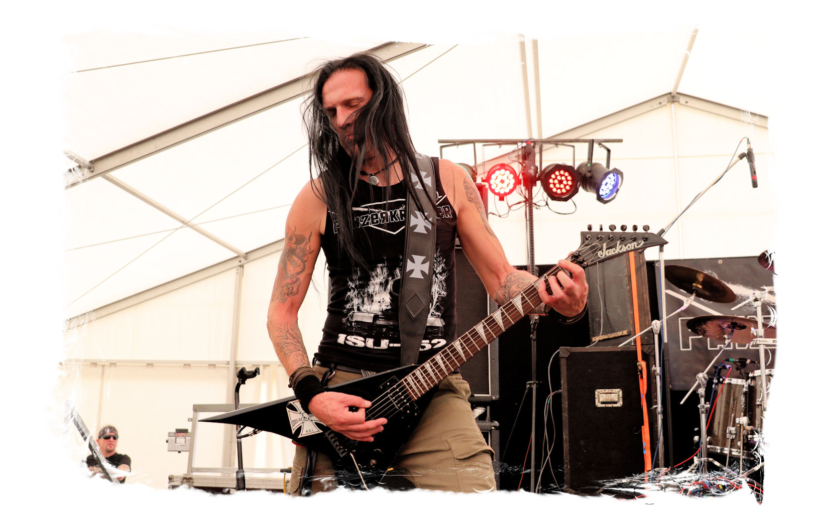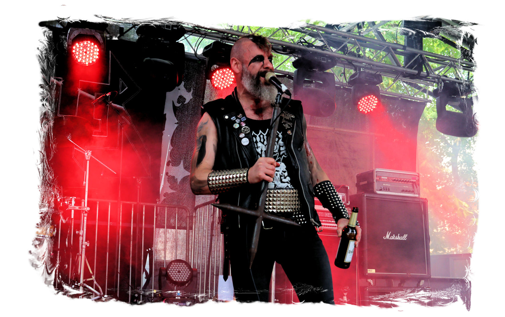 Die Nacht war wahlweise kurz oder lang, auf jeden Fall intensiv, nicht nur musikalisch, sondern auch menschlich, vor allem an der Bar. Es galt unterbewusst so einiges zu kompensieren, angefangen beim guten gezapften Ur-Krostitzer, Botze oder Froschkotze bishin zum gepflegten Cuba Libre. Ein Auftakt-Festival-Abend nach drei Jahren Abstinenz halt... Und der soll noch nachwirken. Diesen Nachwirkungen fallen zunächst ganz konkret der Opener WILT und BLIZZEN zum Opfer. PANZERKREUZER möchte ich mir im Zelt dann aber doch nicht entgehen lassen. Alte Schule, knochentrockener Todesstahl ohne Firlefanz, nicht selten in behäbigem Tempo. Das killt zwar, könnte jedoch mitunter mehr Abwechslung vertragen, weshalb es die Truppe nur bedingt schafft, den Zündfunken überspringen zu lassen. Da besitzen PURE MASSACRE auf der Hauptbühne weitaus mitreißendere Entertainment-Qualitäten. Als ich eintreffe hat sich Fronter Michael scheinbar schon mit seinem Publikum verbrüdert und die sehr agile Truppe aus Zerbst hat die Meute mit ihrem abwechslungsreichen Death Metal gut im Griff.