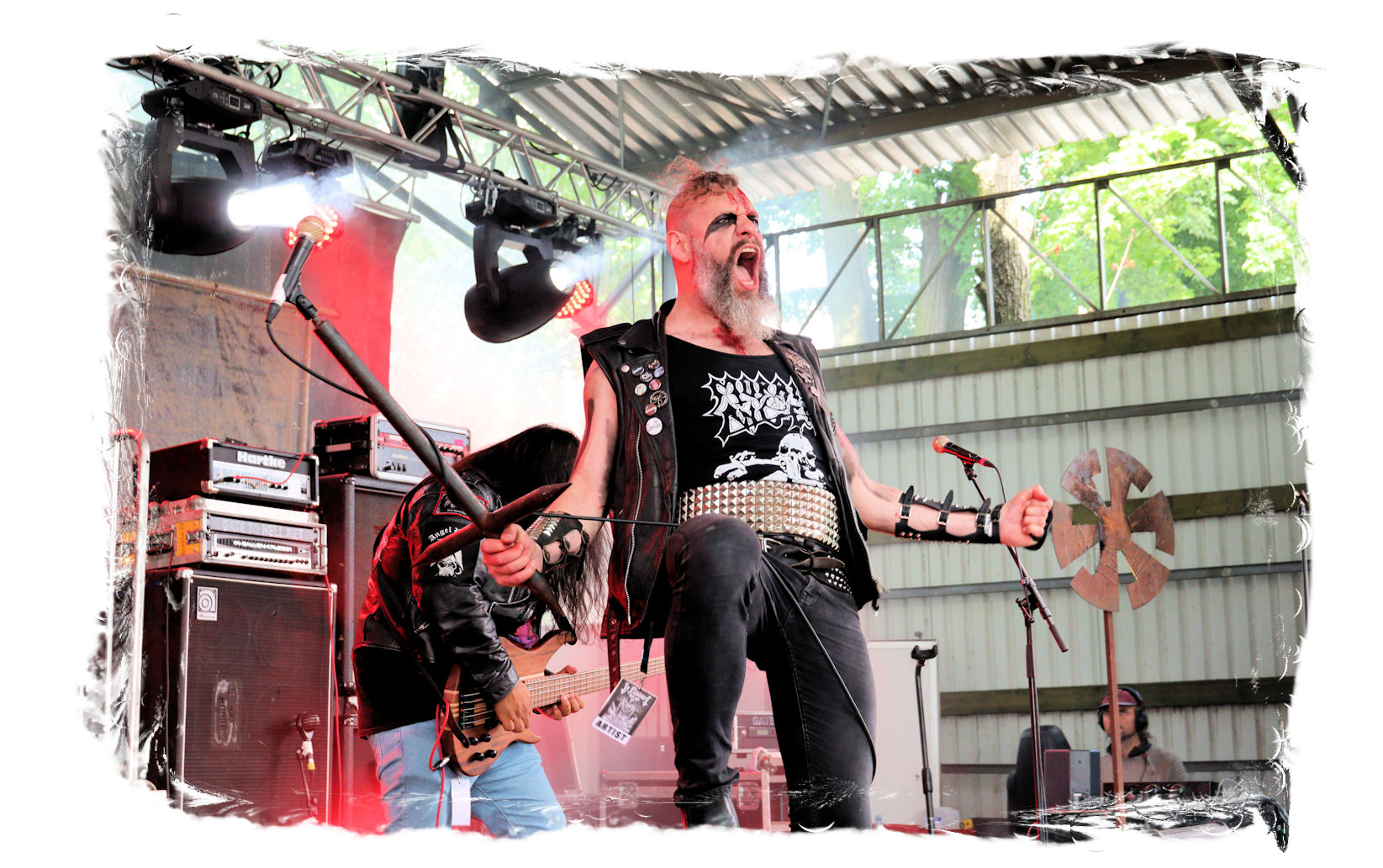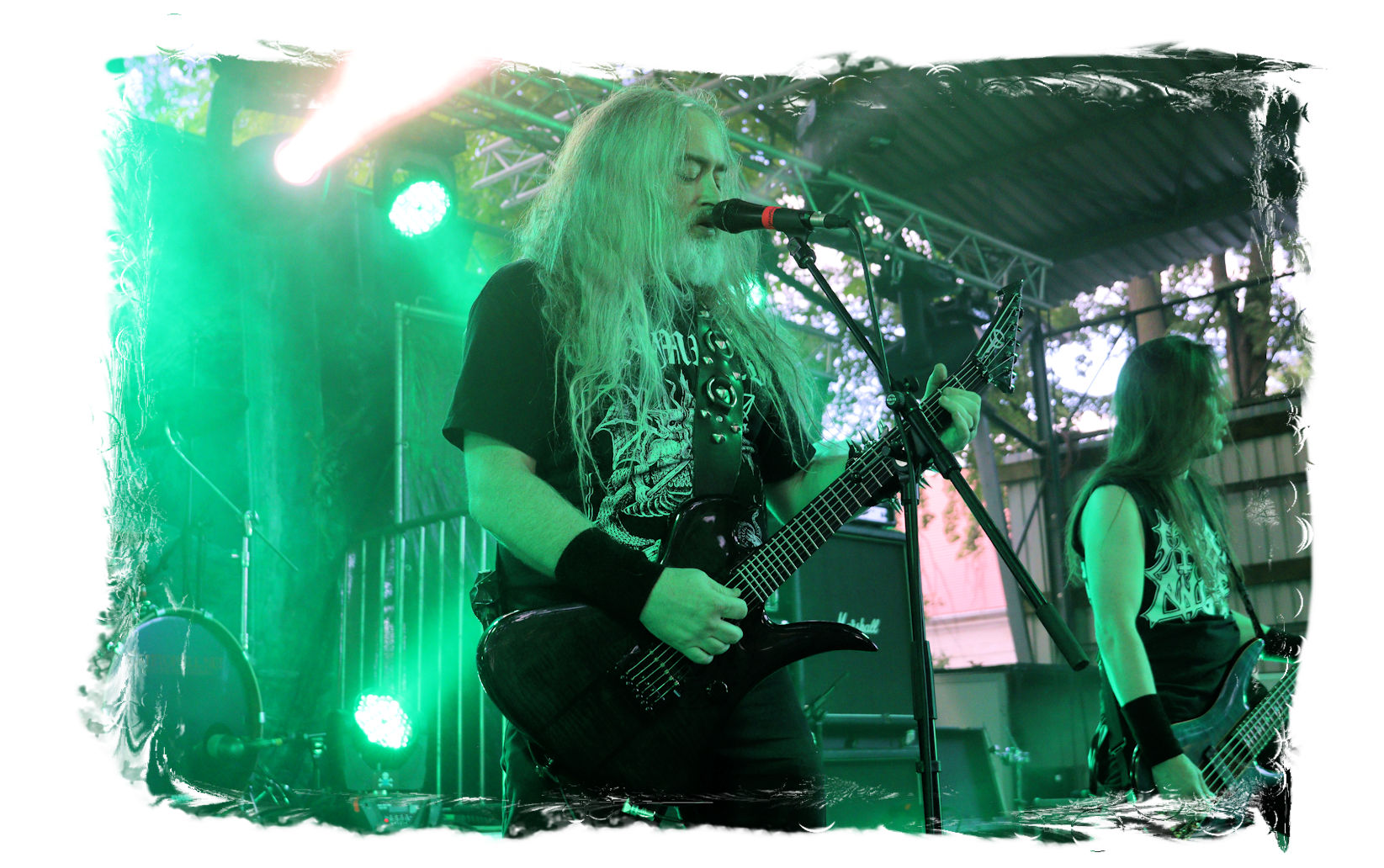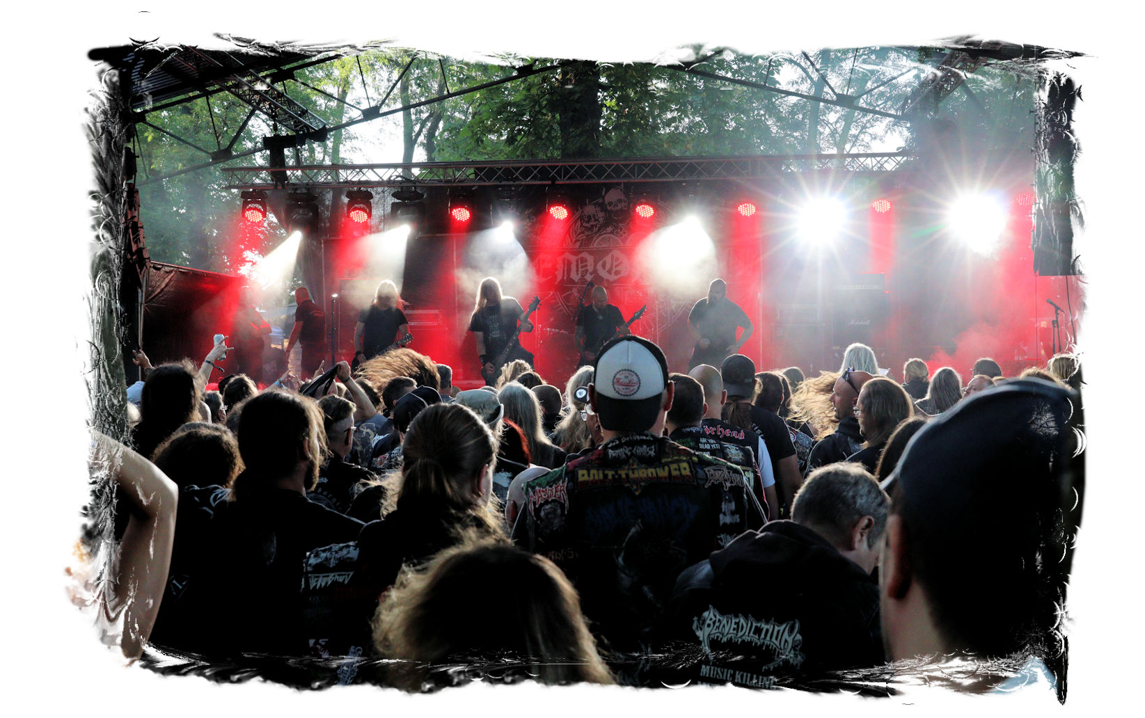 Wie nach Vallenfyre 2017, kommen heute MEMORIAM nach der Soloband von Greg auf die Bühne. Seinerzeit überraschten die Briten um Karl Willets, Scott Fairfax, Frank Healy und den mittlerweile durch Spickey T. Smith ersetzten Andy Whale und lieferten für mich erstmals eine satte Death Metal – Performance mit der noch relativ jungen Formation der Altmeister ab. Heuer wird der Gig zum Siegeszug. Willets ist bestens gelaunt und dirigiert die Gartenparty-Besucher beliebig. Auch die Instrumentalfraktion hat merklich Spaß mit dem Publikum. Das beste der inzwischen vier Alben umfassenden Diskografie tut das Übrige, nicht zu vergessen das unmissverständliche Statement: Fuck Putin! Slava Ukraini, was für ein Abriss!