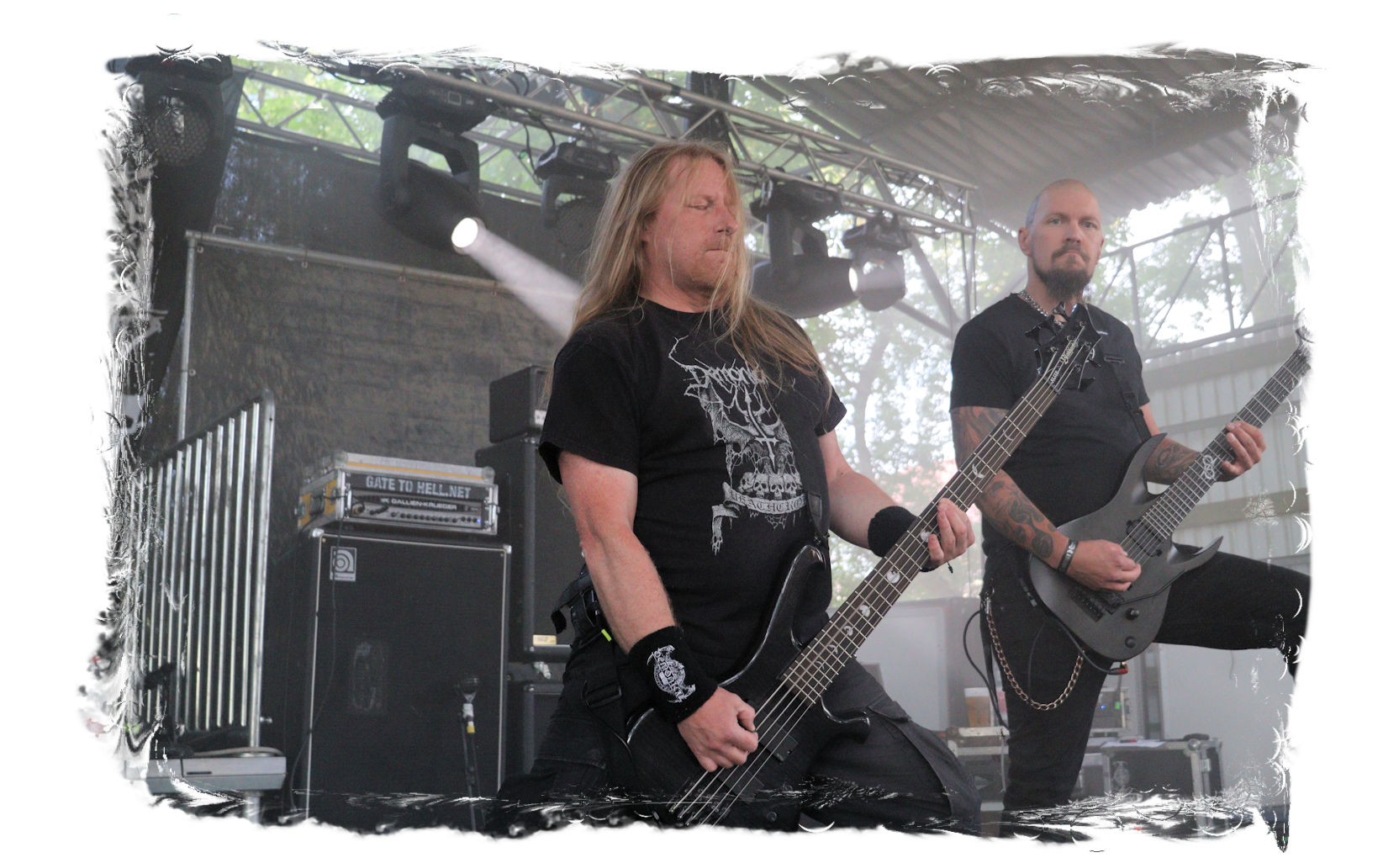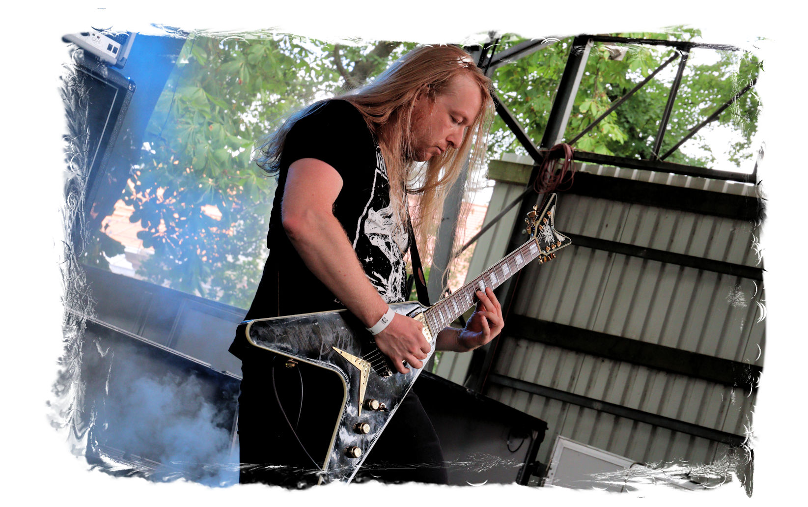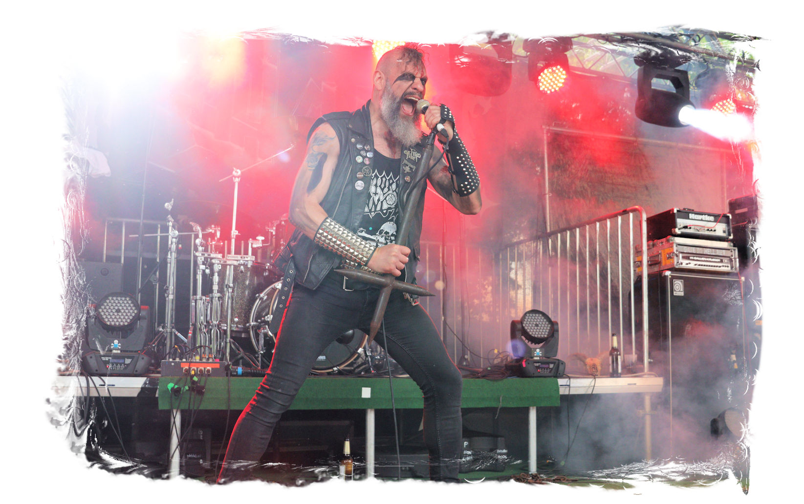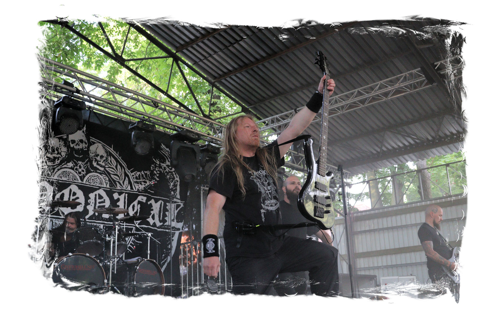Wie nach Vallenfyre 2017, kommen heute MEMORIAM nach der Soloband von Greg auf die Bühne. Seinerzeit überraschten die Briten um Karl Willets, Scott Fairfax, Frank Healy und den mittlerweile durch Spickey T. Smith ersetzten Andy Whale und lieferten für mich erstmals eine satte Death Metal – Performance mit der noch relativ jungen Formation der Altmeister ab. Heuer wird der Gig zum Siegeszug. Willets ist bestens gelaunt und dirigiert die Gartenparty-Besucher beliebig. Auch die Instrumentalfraktion hat merklich Spaß mit dem Publikum. Das beste der inzwischen vier Alben umfassenden Diskografie tut das Übrige, nicht zu vergessen das unmissverständliche Statement: Fuck Putin! Slava Ukraini, was für ein Abriss!