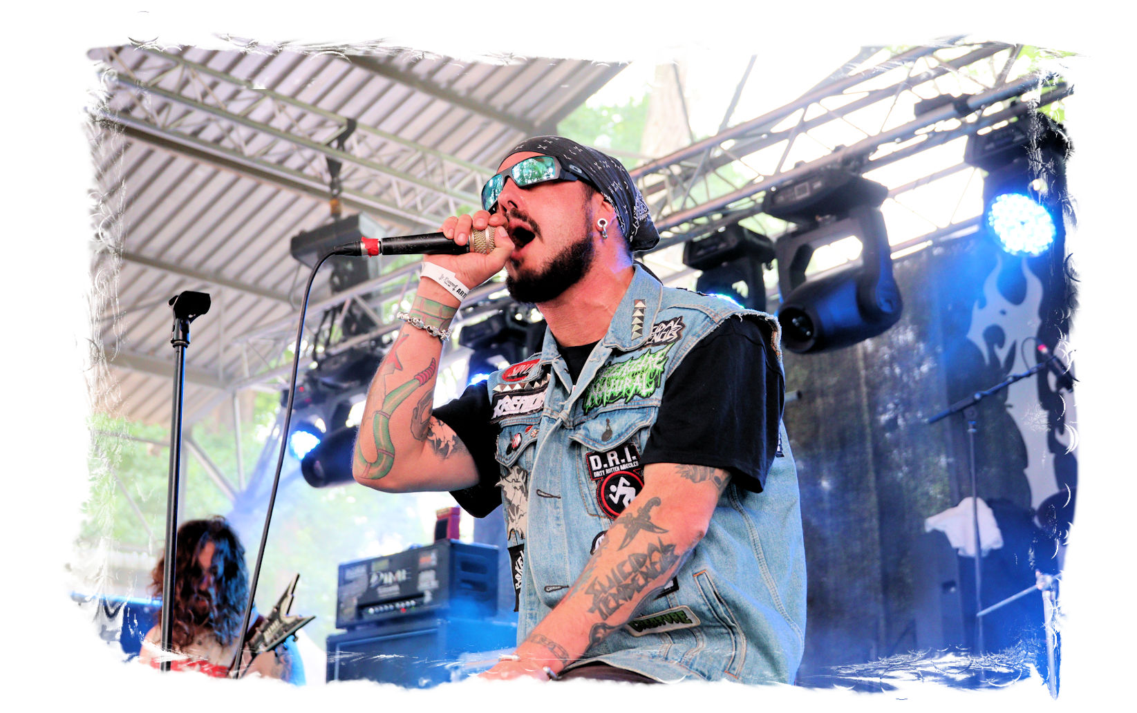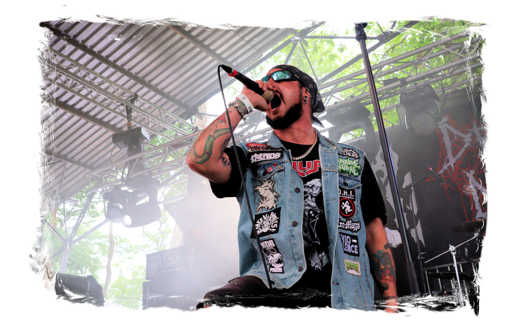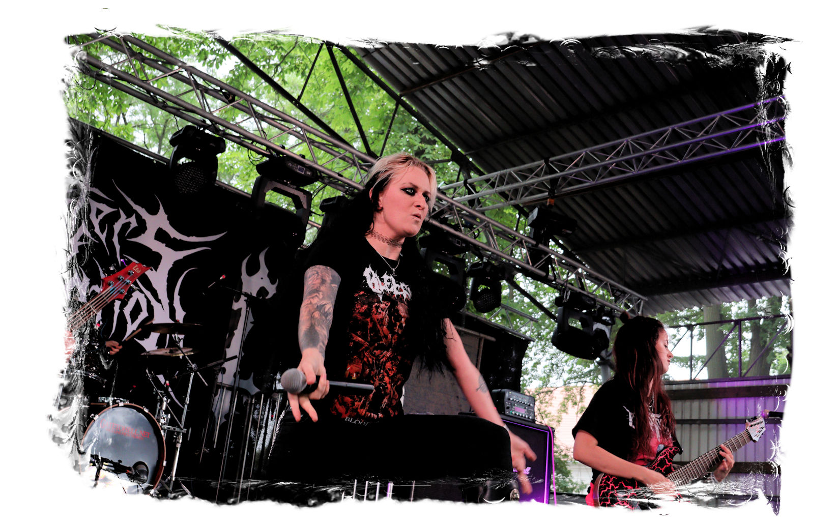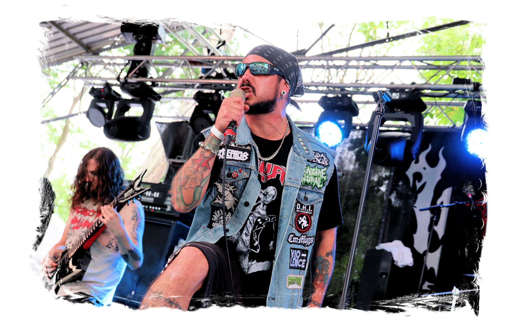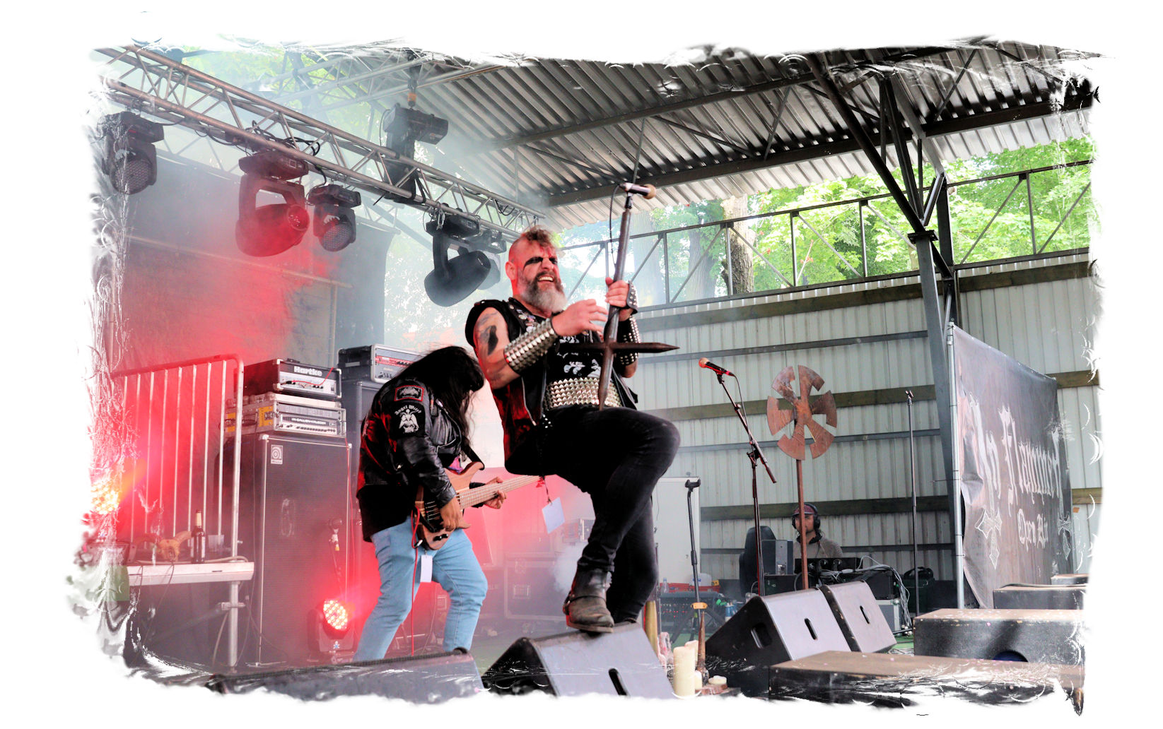 Der geschundene Körper verlangt jedoch nach einer erfolgreicher Retour des "Frühstücks" weiteren Tribut, so dass ich mehr oder weniger freiwillig noch einmal aussetzen muss. So verpasse ich, dass die Jungs von DEMORED (wie schon zwei Wochen zuvor auf der Underground Remains Open Air) spontan einspringen und die coronabedingt ausgefallenen BITCHHAMMER vertreten, während MOSAIC, DAEMONESQ und SARMOUNG regulär spielen.