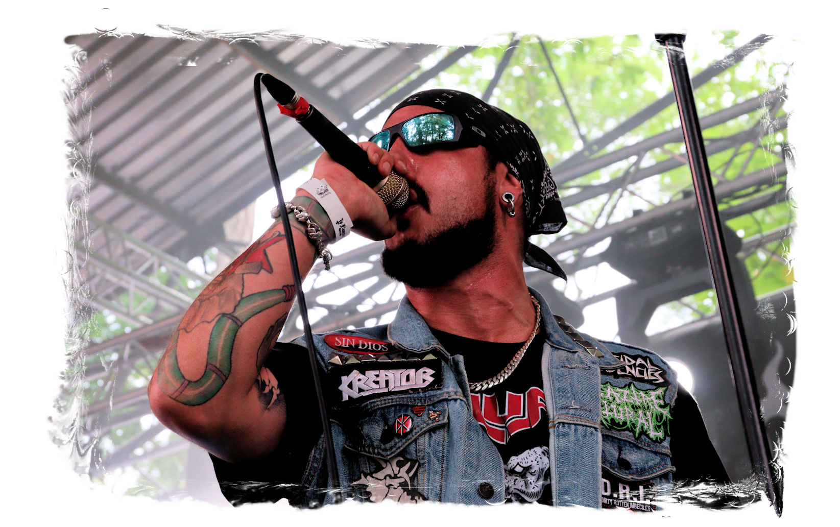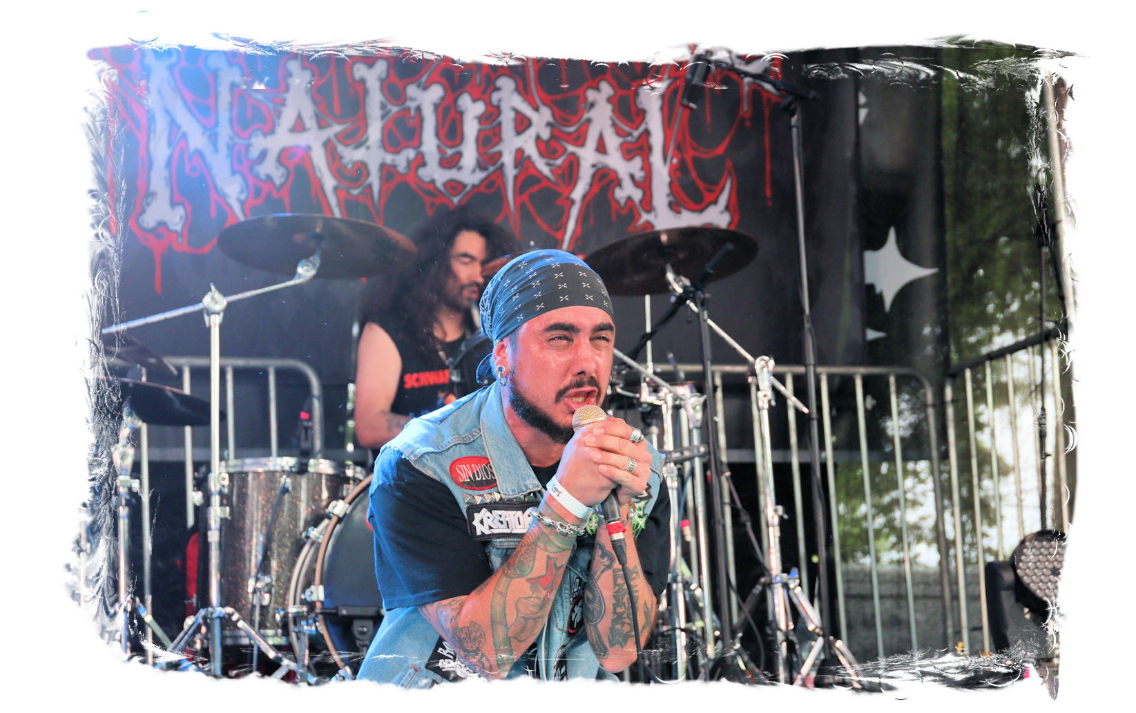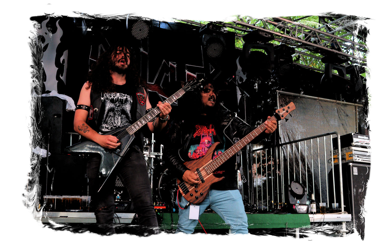 Für den musikalischen Hallo-Wach-Effekt sorgen dann zur Mittagszeit die Chilenen von DEZAZTRE NATURAL. Was für eine herrlich angepisste und abgefuckte Mischung aus Thrash Metal und Hardcore mit spanischen Texten. Mit diesem Südamerika-Brett einer höchst agilen und rotzigen Band hat der Tag gleich sein erstes Ausrufezeichen und ich meinen ersten Latte Machiato mit Baileys. Schließlich gilt es sich, auf die längste Kuchentafel der Festivalsaison einzustimmen.