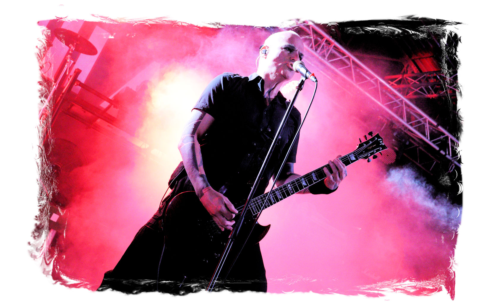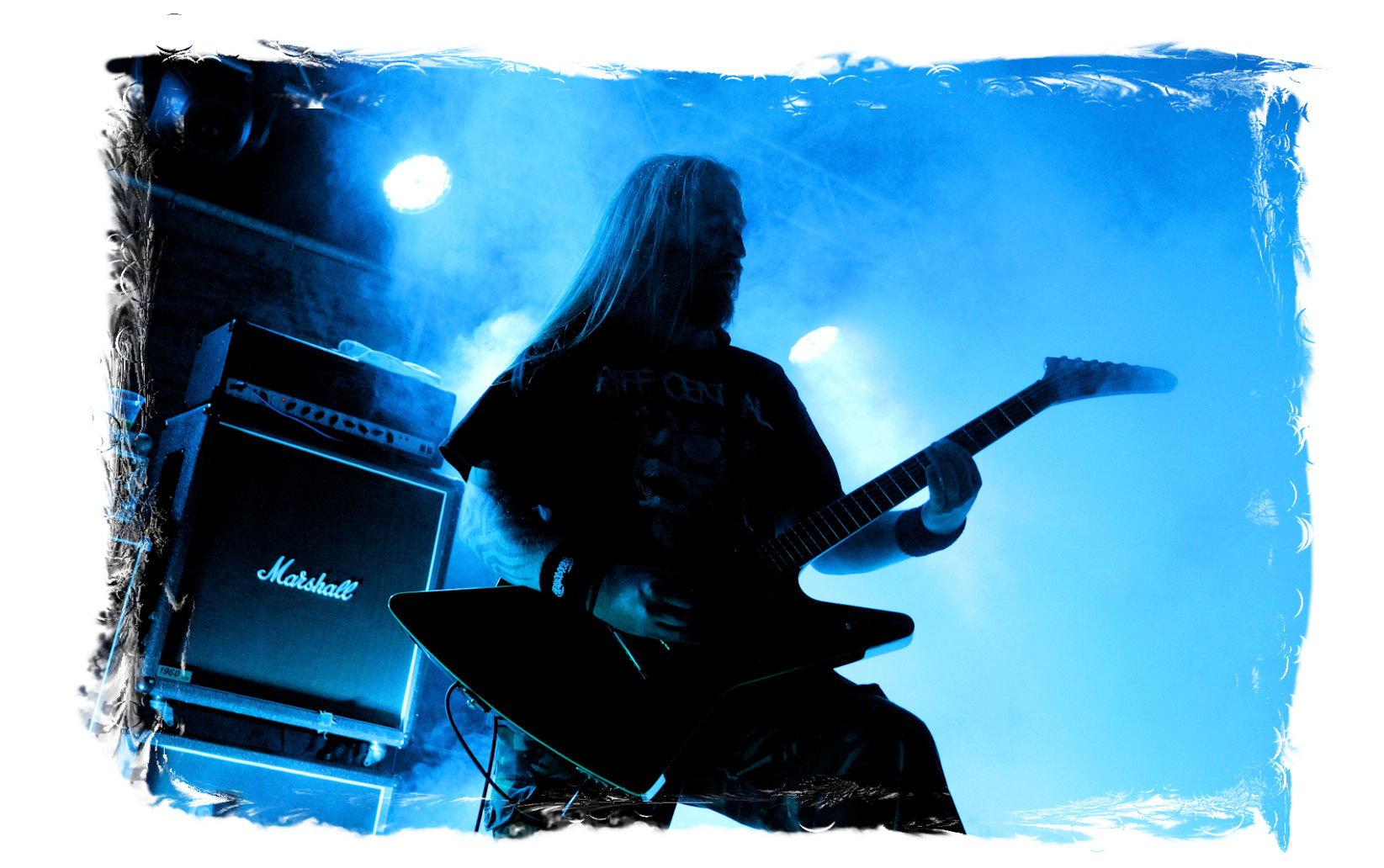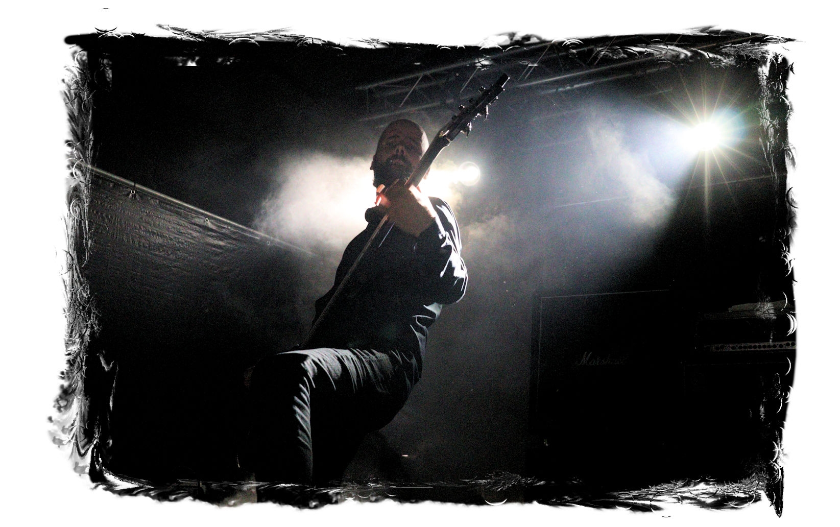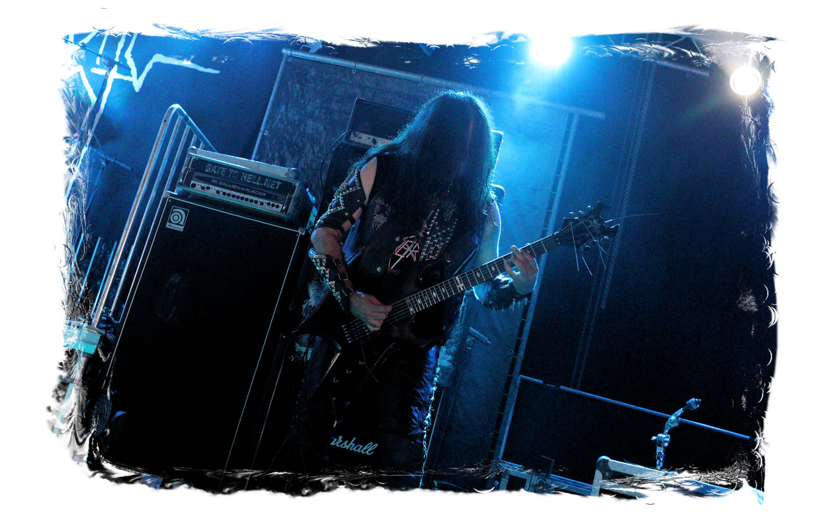 Die Ästhetik der Artworks und des Merchdesigns von KANONENFIEBER üben zugegenermaßen eine starke Faszination auf mich aus. Ich widerstand jedoch glücklicherweise dem Drang, mich dem Konsum hinzugeben, und wartete zunächst die Show des Fünfers ab. Nun ist es nicht erst, seitdem ein grausamer Krieg im Herzen Europas tobt, alles andere als originell, den Krieg (insbesondere WK l und WK ll) in den Fokus des Konzeptes zu stellen. In dieser Hinsicht kann man die Band aus Bamberg wohl irgendwo zwischen 1914 und Minenfeld verorten, wobei man im Vergleich zu vorgenannten Genrevertretern musikalisch eine ausgeprägte melodische Black Metal – Schlagseite an den Tag legt. Die Show ist ebenso wie die Artworks akkurat durchexerziert, die Bühne mit allerlei Requisiten in ein Schlachtfeld des ersten Weltkrieges verwandelt. Dementsprechend legt der uniformierte Stoßtrupp auch los, als müsse man den gegnerischen Schützengraben im Sturm nehmen. Das IN FLAMMEN – Publikum geht an diesem Abend erstmals so richtig steil und lässt sich nicht erst später am Merchstand so richtig mitreißen. Für mich ist das alles zwar sehr unterhaltsam, insgesamt fehlt es mir musikalisch gesehen jedoch auf Dauer ziemlich an Substanz. Pickelhaube hin, Landsermütze her, die zusätzlichen Stofftüten sind aus meiner Sicht dann definitiv drüber, nicht nur weil es für mich bis heute eine unumstößliche Regel gibt: Säcke überm Kopf dürfen bei mir lediglich Midnight und Uada tragen, Punkt!