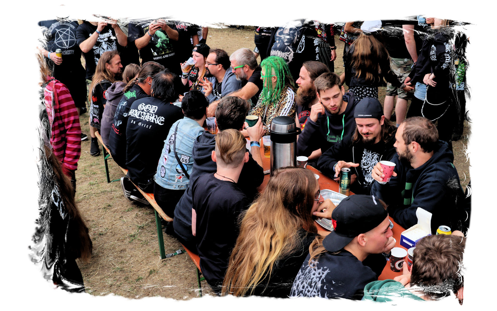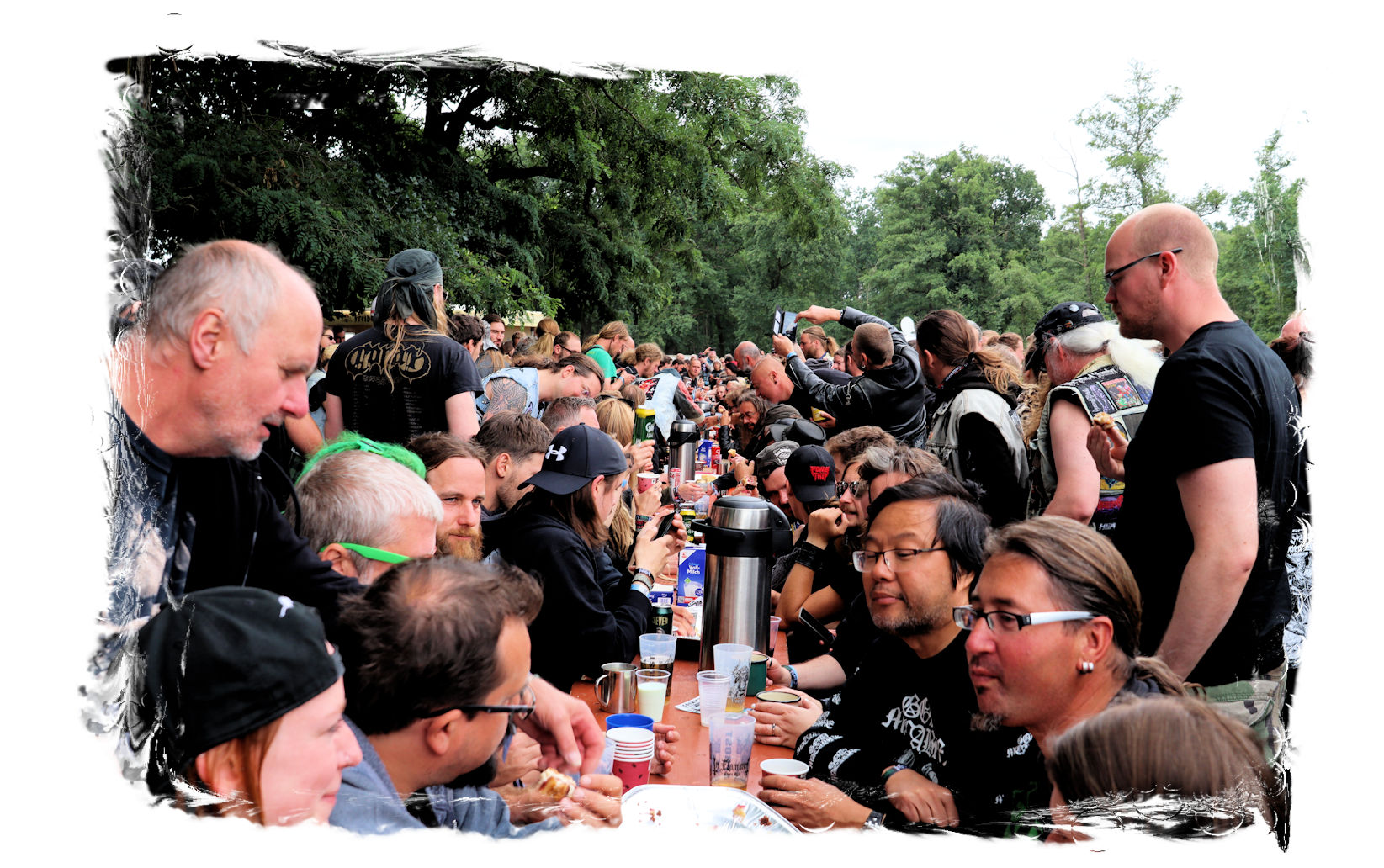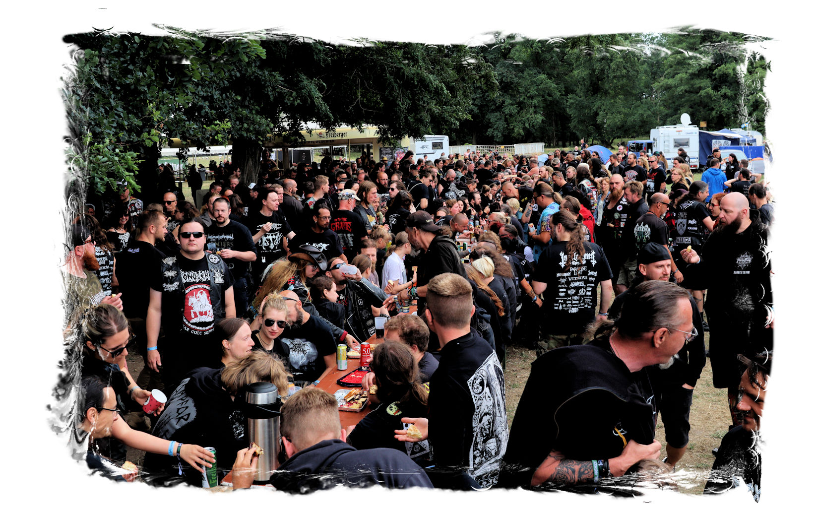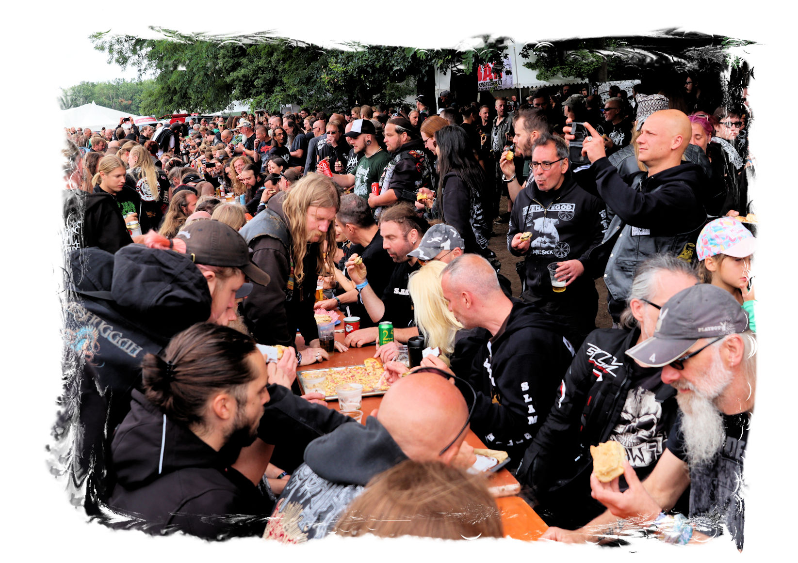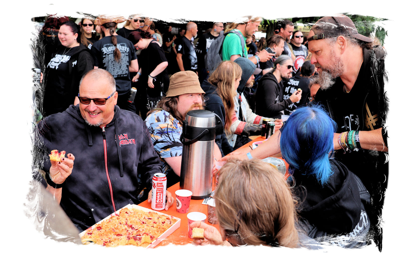 Denn nach den Chilenen pausiert der Spielbetrieb und es ist wiederum nach zwei Jahren Abstinenz herzerwärmend, wie sich die IN FLAMMEN OPEN AIR – Besucher*innen einträchtlich Versammeln, um sich von der Crew mit Kaffee und Kuchen versorgen zu lassen. Hier dürfen sich alle, die können und wollen, eine willkommene kulinarische Verschnaufpause vor dem großen Finale gönnen. Immer noch absolut einzigartig!