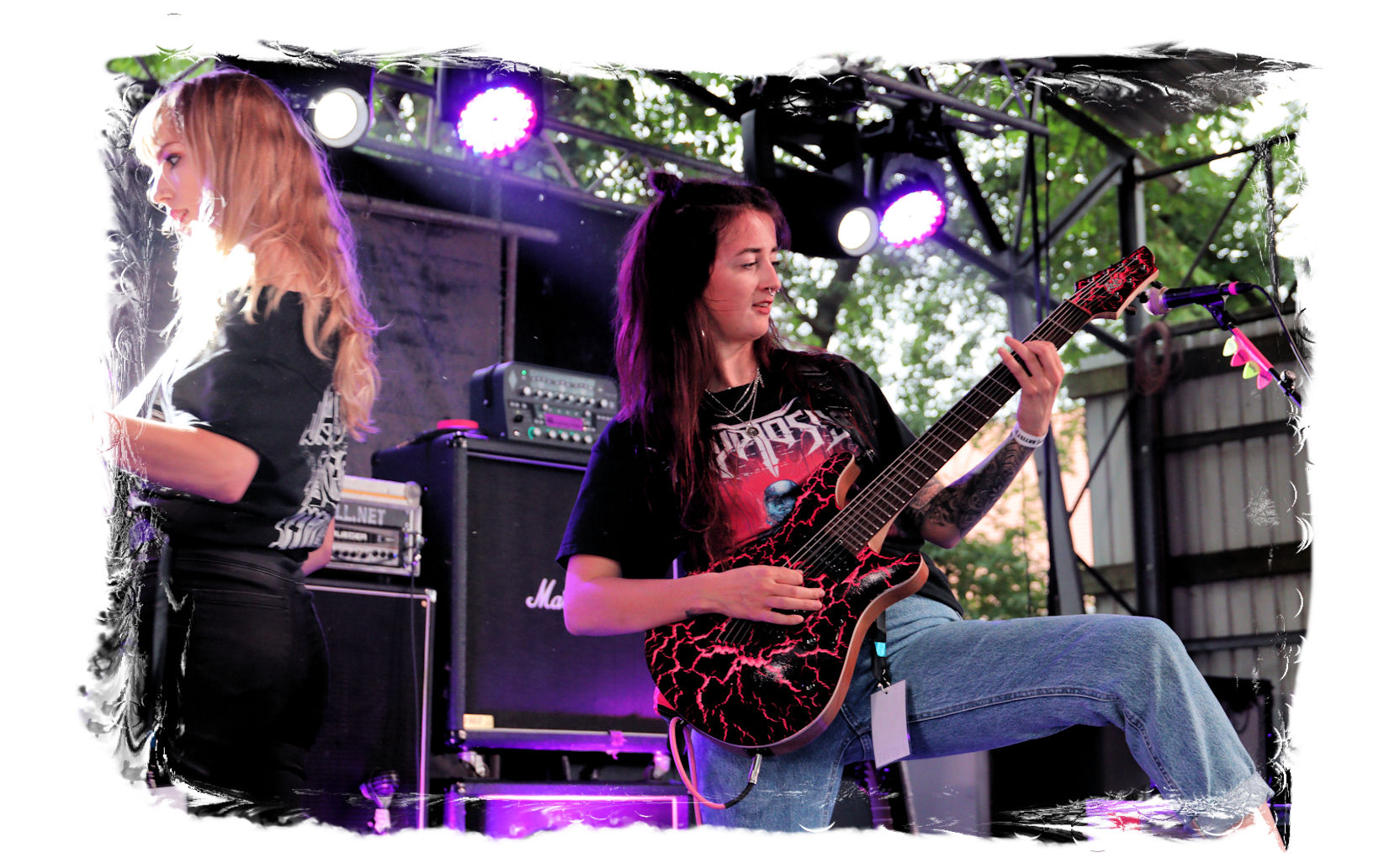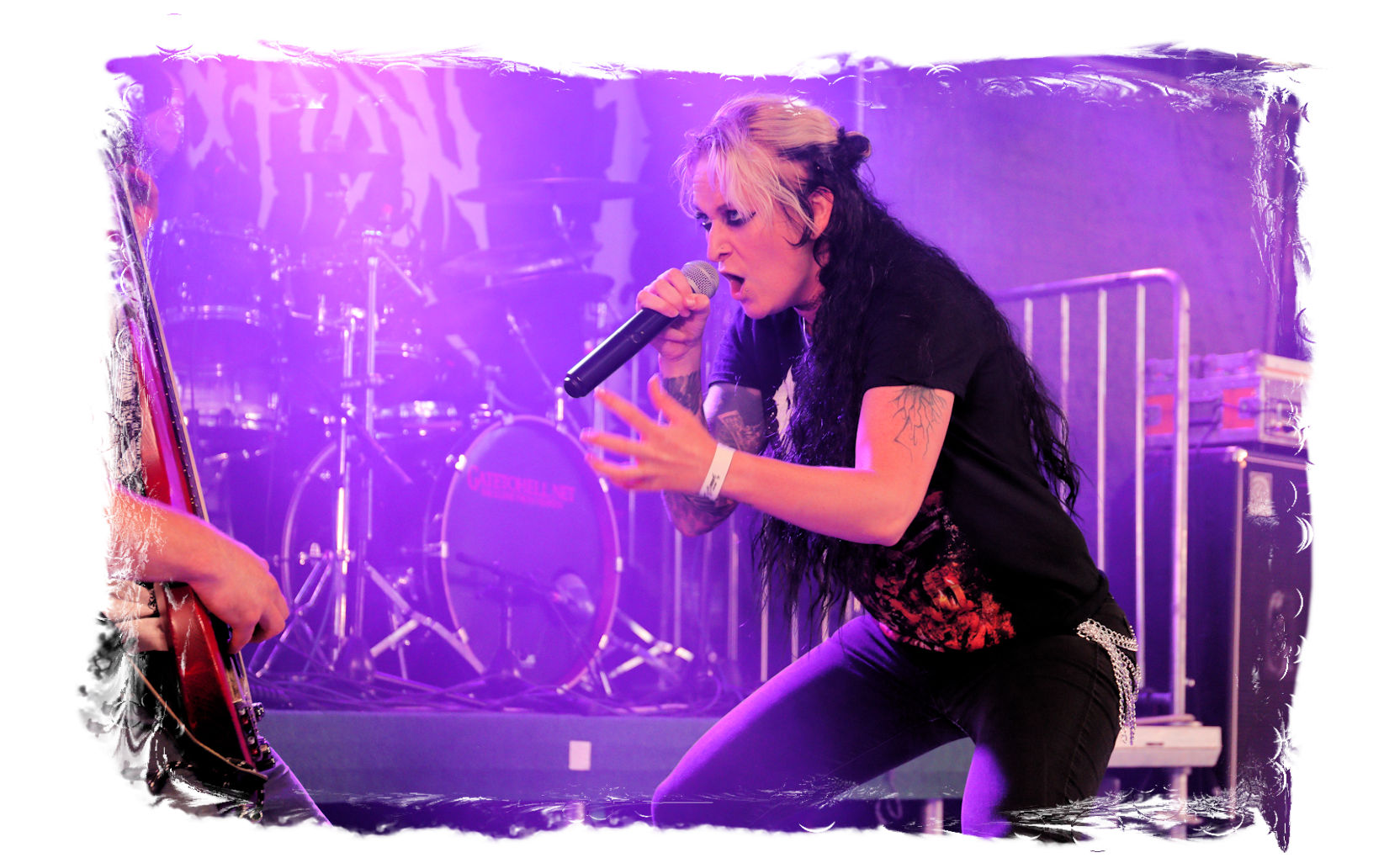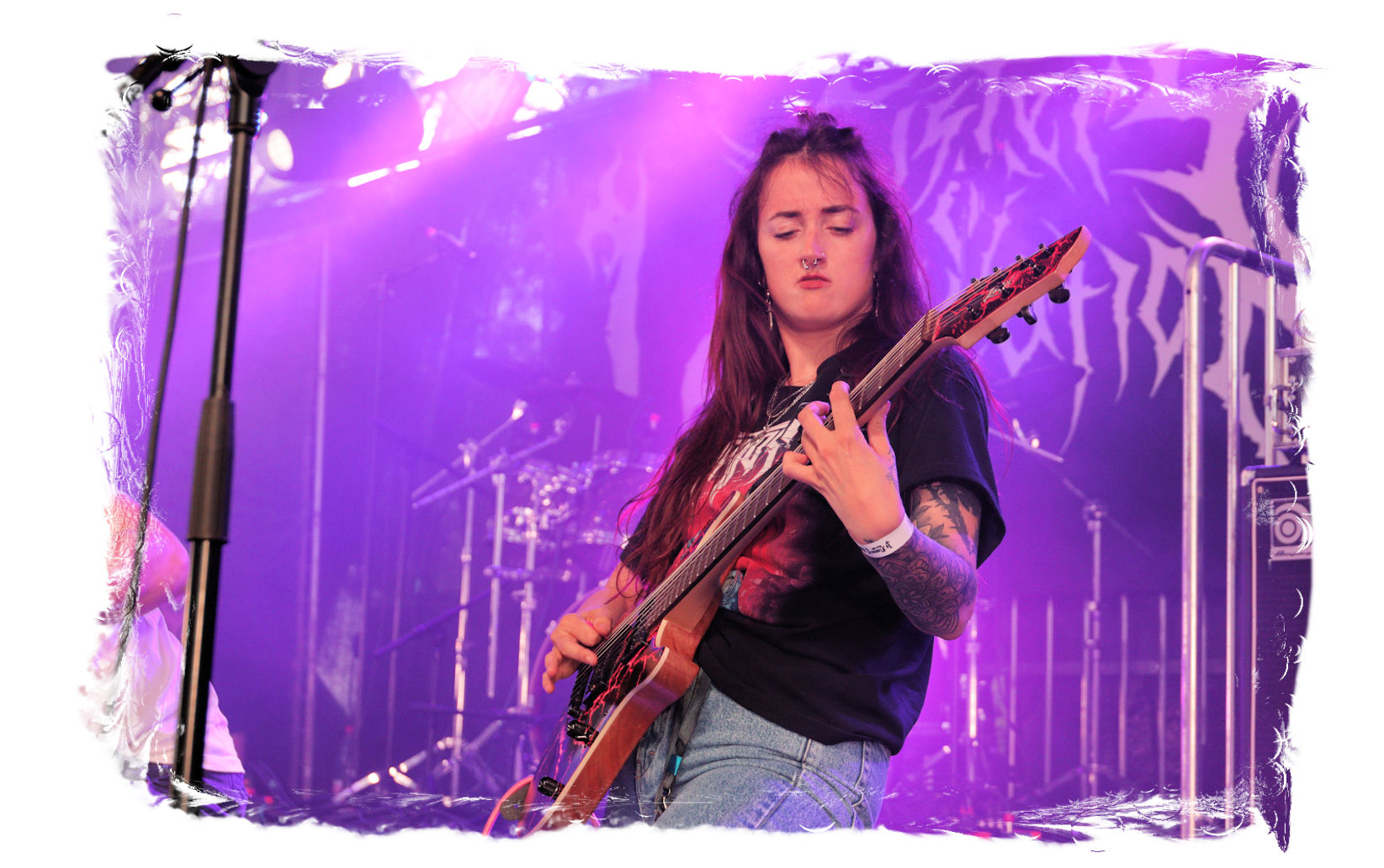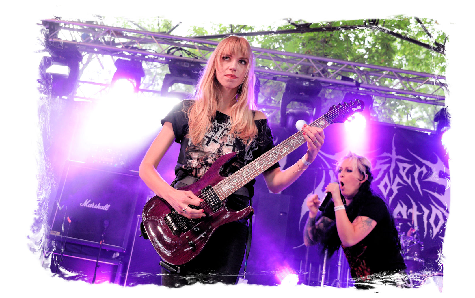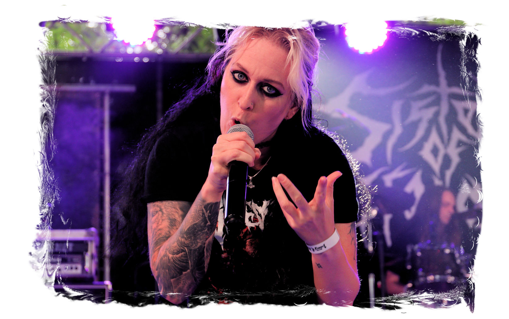 Die SISTERS OF SUFFOCATION aus den Niederlanden sind kurzfristig für Internal Bleeding auf´s Billing gesprungen. Von ursprünglich fünf Schwestern sind zwar mittlerweile nur noch drei übrig geblieben, die Positionen am Schlagzeug und am Bass wurden durch "Brüder" ersetzt. Das hat der Durchschlagskraft jedoch offensichtlich keinen Abbruch getan. Stilistisch geht´s genauso abwechslungsreich wie erfrischend zur Sache – ein modernes Gebräu aus technisch versiertem Thrash- und Death Metal. Auf der Bühne herrscht jede Menge Action, die zum Mitmachen animiert. Musikalisch fehlt mir jedoch auf Dauer der rote Faden, der den metallischen Sprengsatz am Ende der funkensprühenden Lunte final zum zünden bringt. Trotzdem, belebend sind nicht nur die Mädels allemal.