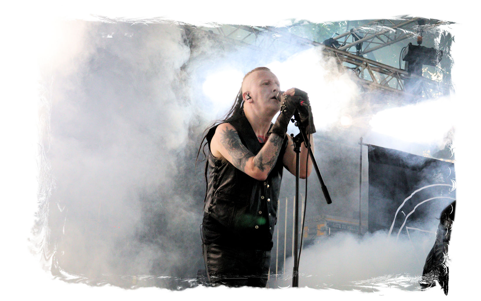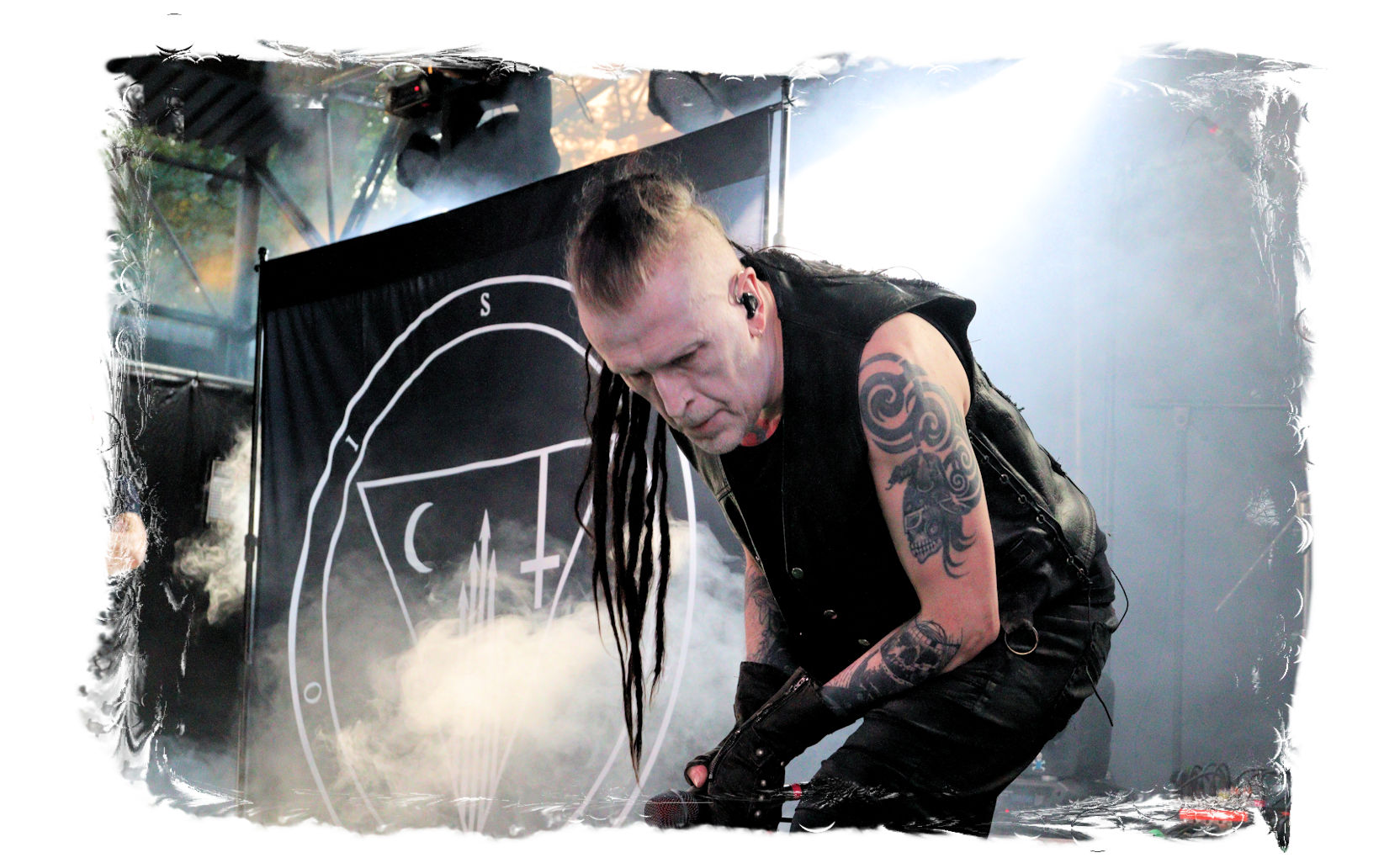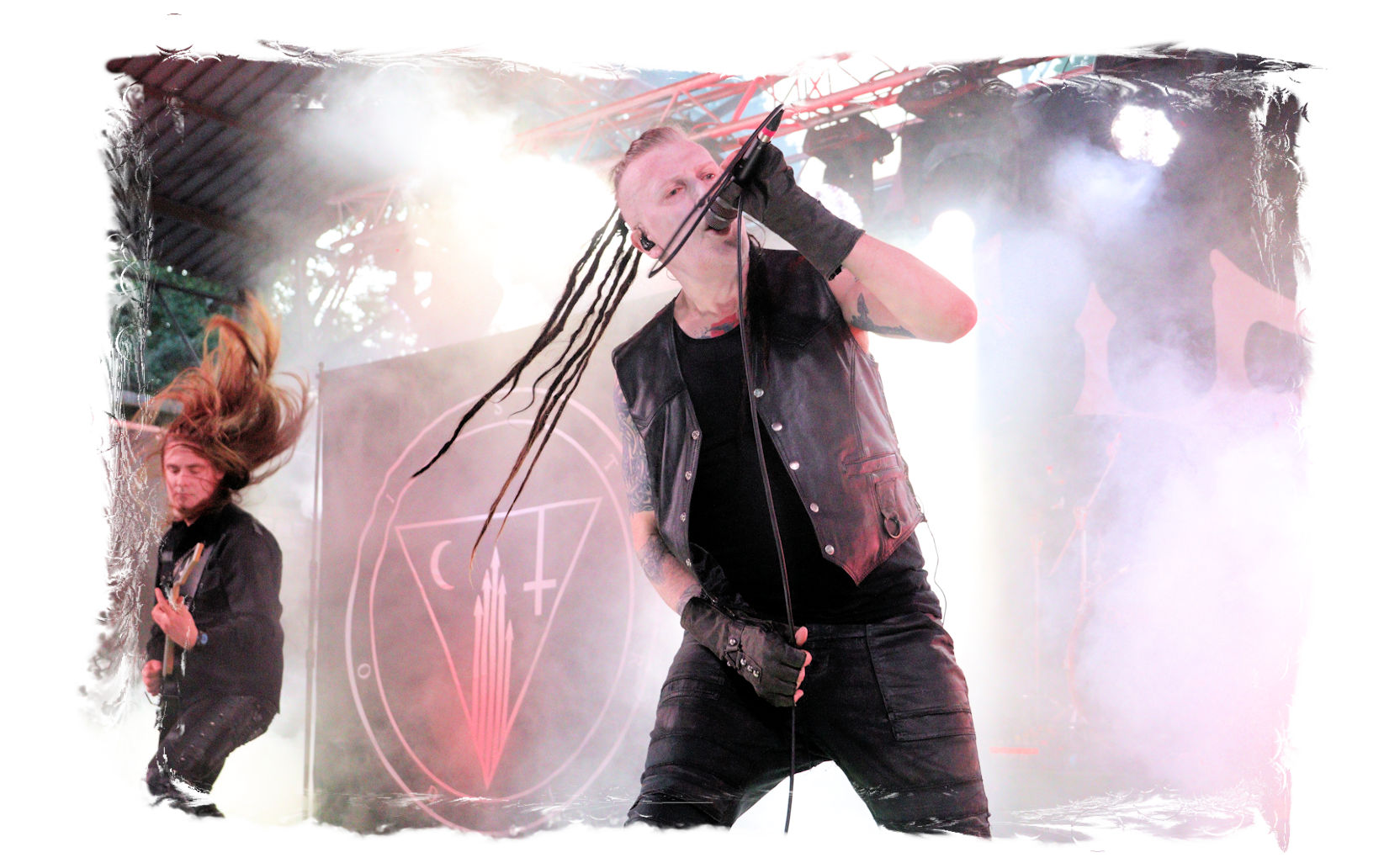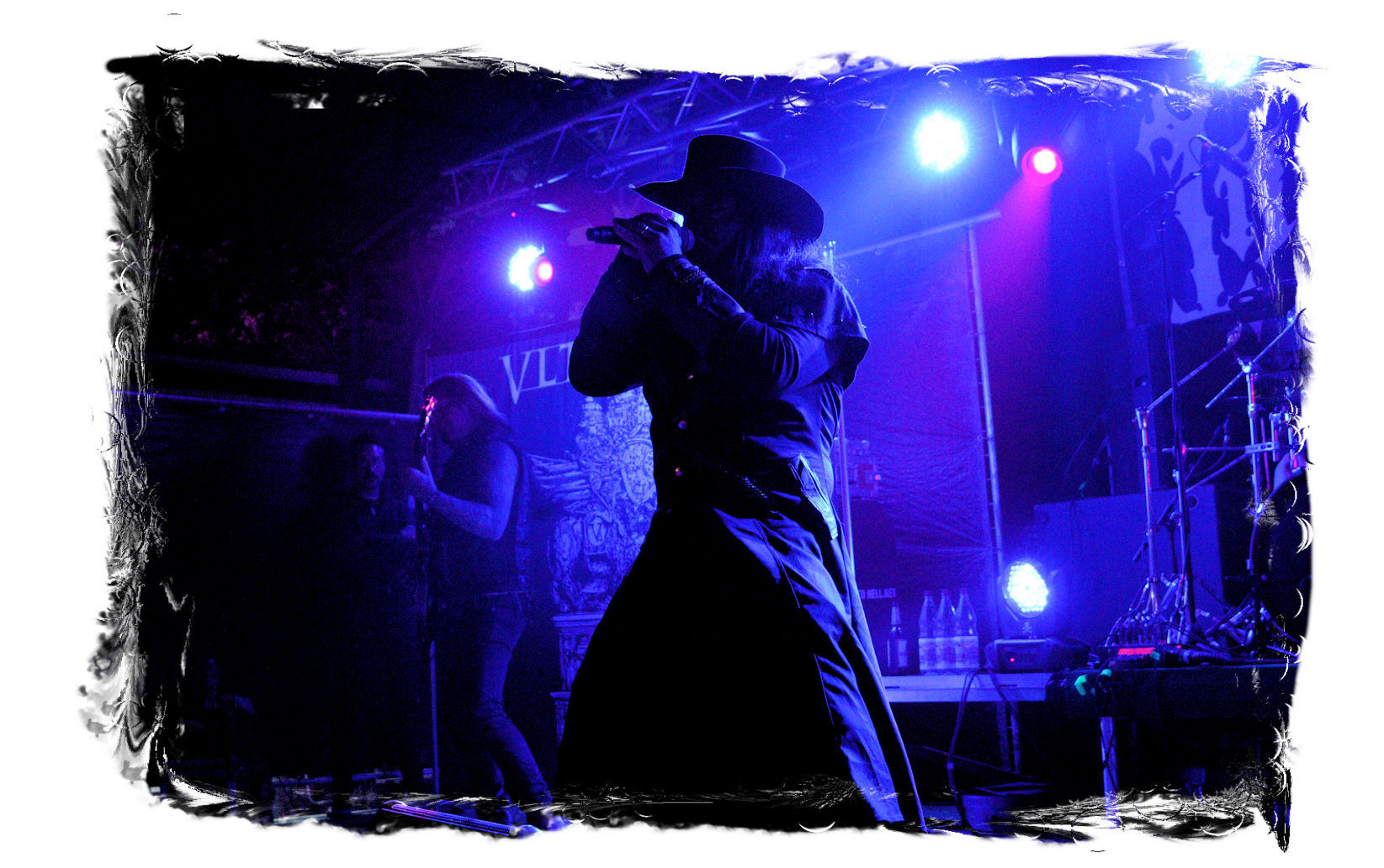 Dass EISREGEN im Zelt als Headliner auf Händen getragen und liefern werden, stand für mich außer Frage. Dieser Eindruck wird beiläufig in beeindruckender Art und Weise bestätigt, wobei ich den Thüringern heutzutage so rein gar nichts mehr abgewinnen kann. Mich zieht es wieder vor die Hauptbühne, wo Altmeister David Vincent mit VLTIMAS seinen Einstand geben wird. Das 2019er Debut "Something Wicked Marches In" hat mich nachhaltig beeindruckt, da sich Vincent mit dem leicht angeschwärzten Death Metal quasi neu erfunden hat. Nach einer verdammt zähen Umbaupause geht es endlich los. Die Show ist auf Vincent ausgelegt, der sich, in Ölmantel-Montur und mit Hut, weitestgehend von Nebel verhüllt, in Dunkelheit oder flankiert von Stroboskoplicht zeigt. Alles wirkt zuweilen kühl und distanziert, während die Band schon fast klinisch aber alles andere als blutarm agiert. Doch Vincent weiß um die Wirkung seiner tiefen, charismatischen Stimme und seines subtilen Humors, mit der er das IN FLAMMEN in sich ruhend zwischen den Songs anspricht und auf seine dunkle Seite zieht. Musikalisch gibt es abseits des Materials vom Debut keinerlei Überraschungen und das ist auch gut so. Der Verzögerung geschuldet ist der Spuk des Gentleman Vincent allerdings schnell wieder vorbei.