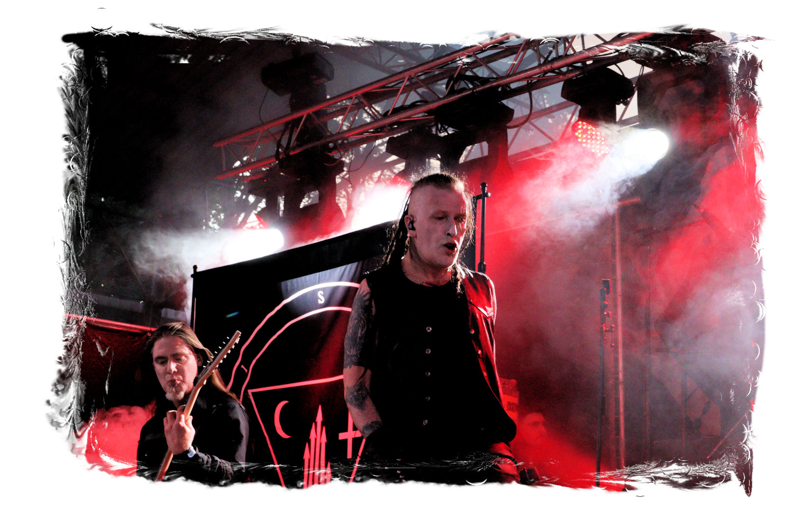 Ich war ziemlich aus dem Häuschen, als SAMAEL für 2020 mit einem Old School – Gig angekündigt wurden. Die Eidgenossen gehörten mal zu meinen absoluten Faves, nicht trotz, sondern wegen ihrer stilistischen Öffnung nach dem Durchbruch mit "Ceremony Of Opposite" 1994. Aber gerade die Performance eben jenes Klassikers auf dem Party.San Open Air geriet 2015 zum Fiasko, wobei sich die Band quasi samt dieses Meisterwerks selbst demontierte. Seither ist mein Verhältnis zu Samael immer noch nachhaltig gestört. Insofern gehe ich mit gemischten Gefühlen an den Headliner-Auftritt am Entenfang heran. So richtig alte Schule werden Samael freilich nie wieder sein, denn niemand erwartet ernsthaft von den Schweizern, dass Xy noch einmal die "Showdrums" und die Elektronika gegen ein richtiges Drumkit tauscht und die Band ihre Klassiker nur mit der klassischen Metal-Instrumentierung umsetzt. Allerdings hält Vorph Wort, indem er gleich zu Beginn ankündigt, dass man an diesem Abend eine ganze Reihe älterer Songs zum besten geben wird, die man schon länger nicht gespielt hat. Und so konzentriert sich die Setlist eben im Kern auf Songs von "Ceremony Of Opposites" und "Passage", flankiert von ein paar "Blood Ritual"- und "Worship Him"-Nummern. Der Sound ist gut und kraftvoll, die Band weiß zu überzeugen und ich finde es sogar überraschend, welches Standing Samael offenkundig auch beim IN FLAMMEN-Publikum immer noch haben. "Black Supremacy" wirkt als Rausschmeißer am Ende eines mit Highlights gespickten Set jedoch etwas deplatziert. Fazit: Wie schon bei Strigoi der zweite zwiespältige Gig des Abends. Eigentlich gibt es hier nix zu meckern und doch, so richtig nehmen mich Samael 2022 nicht (mehr) mit.