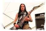Die Thrasher von HEATHEN wurden als "Bonus" kurz vor dem Wochenende bestätigt, nun finden sich die amerikanischen Urgesteine kurzerhand auf dem Headliner-Slot des Samstag Abends wieder. Glaube ich der Wahrnehmung der Anwesenden, bestanden Heathen diese Herausforderung kurzerhand mit Bravour und konnten aus dem Stand auf dem IN FLAMMEN OPEN AIR bestehen. Den einen oder anderen Fan von Paradise Lost wird das nur bedingt getröstet haben. Mir selbst hat zu dieser Zeit bereits irgendwer den Stecker gezogen und ich bin gewillt, dies noch auf die Pseudo-Erkältung der vorherigen Nacht zu schieben. Da als Downer nur noch THE COMMITTEE anstehen, deren Musik mir suspekt ist (ich verweise auf meine Ausführungen zum Thema "Säcke" über´m Kopf bei Kanonenfieber), habe ich kein großes Problem, mich ins Zelt zu verkriechen.