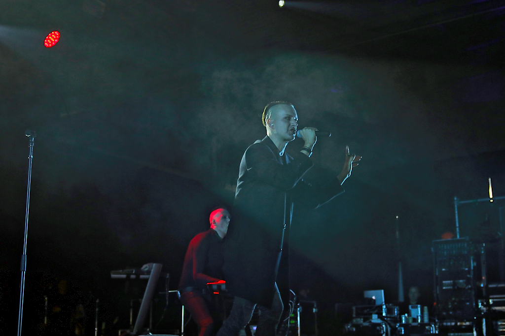 DE/VISION spielten dann im Hangar gefälligen Synthie-Pop. Schon fast 30 Jahre ist das Duo auf den Club-Bühnen unterwegs. Die treue Anhängerschaft feierte vor allem die alten Hits.