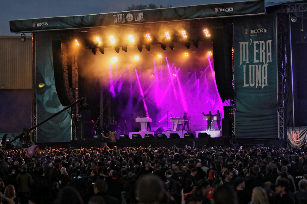 Natürlich war auch 2017 das Line Up an beiden Tagen wieder ein buntes Potpourri aus Elektronik, Mittelalterklängen und Gitarrensounds. Neben Bands wie den EBMlern von TYSKE LUDDER, den dänischen Jungs von LEATHERS STRIP, den Brit-Elektronikern MESH, dem Fürst der Finsternis ASP, SOLAR FAKE, FADERHEAD, HAUJOB und SCHANDMAUL fielen besonders positiv die Alt-Waver von THE ARCH, bekannt durch ihren 80er Club Hit „Babsi ist tot“ und die frischen Indie- Sounds von den WHITE LIES auf.