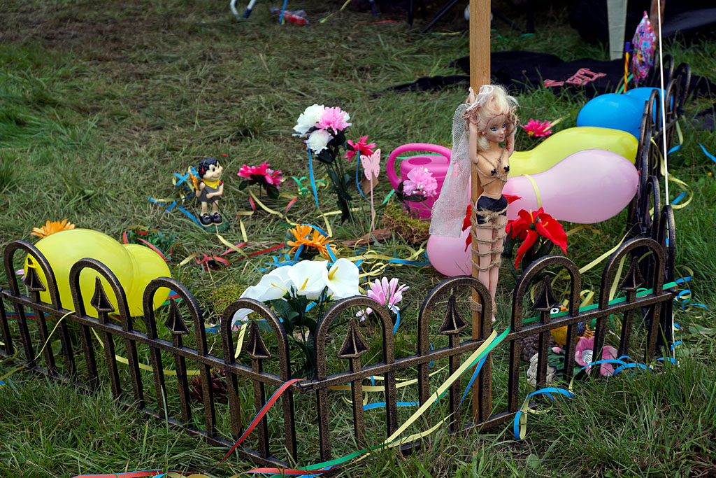 hervor und das Festivalgelände kam gefühlt geordneter als in den Vorjahren herüber - wenn auch der Kampf gegen den aufgeweichten Boden mittels Stroh nicht immer von bleibendem Erfolg gekrönt war. Einige machten dann das Beste daraus und ließen die im Schlamm feststeckenden Schuhe einfach beiseite oder suhlten sich vollends im Matsch.