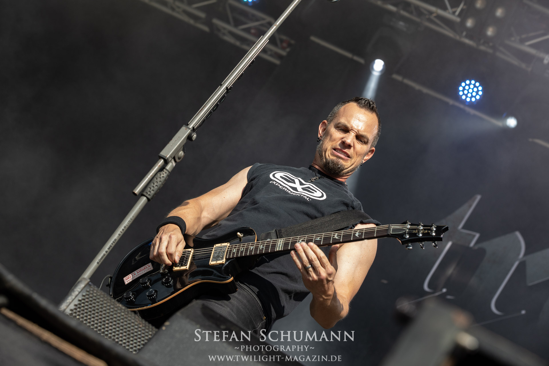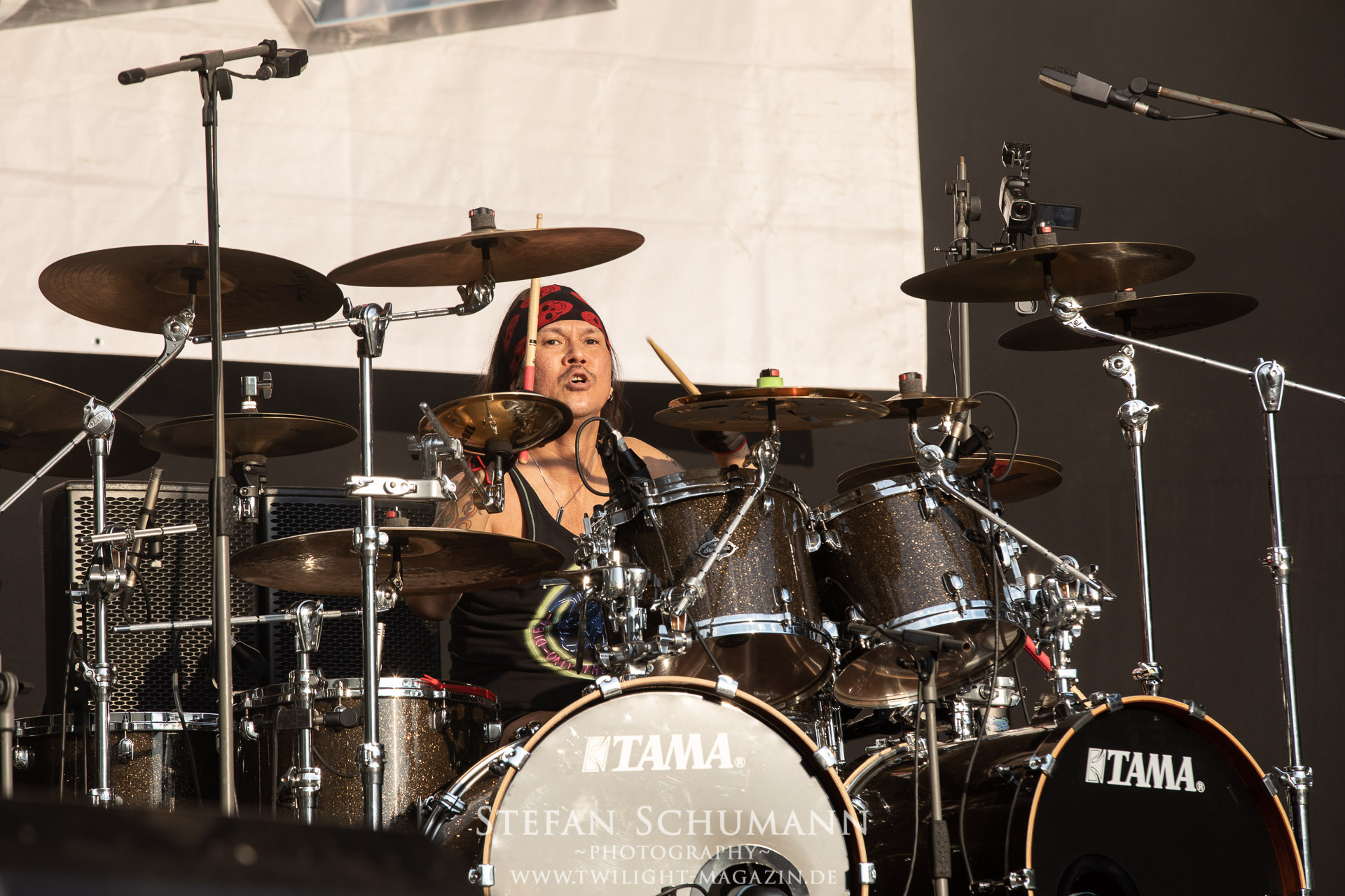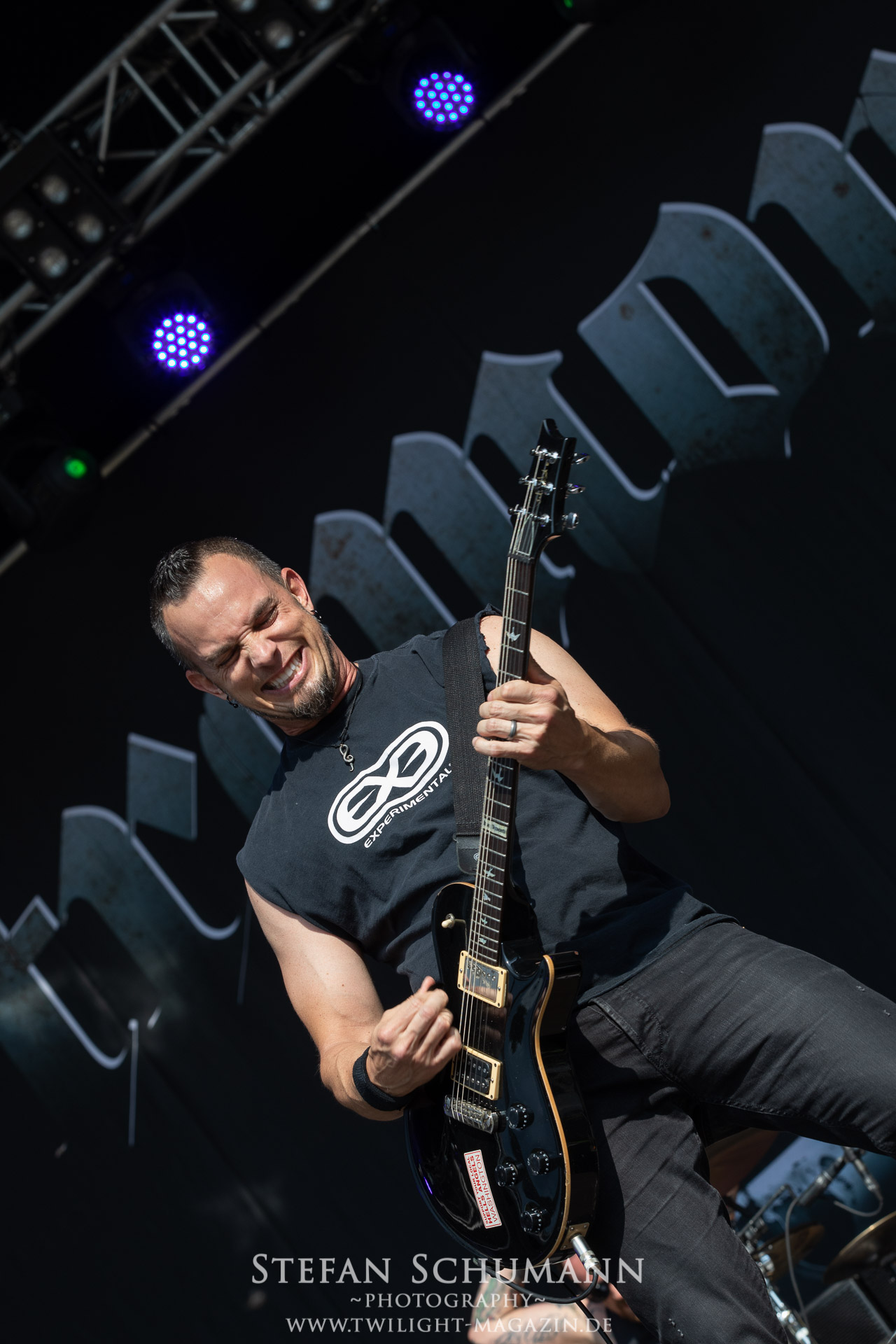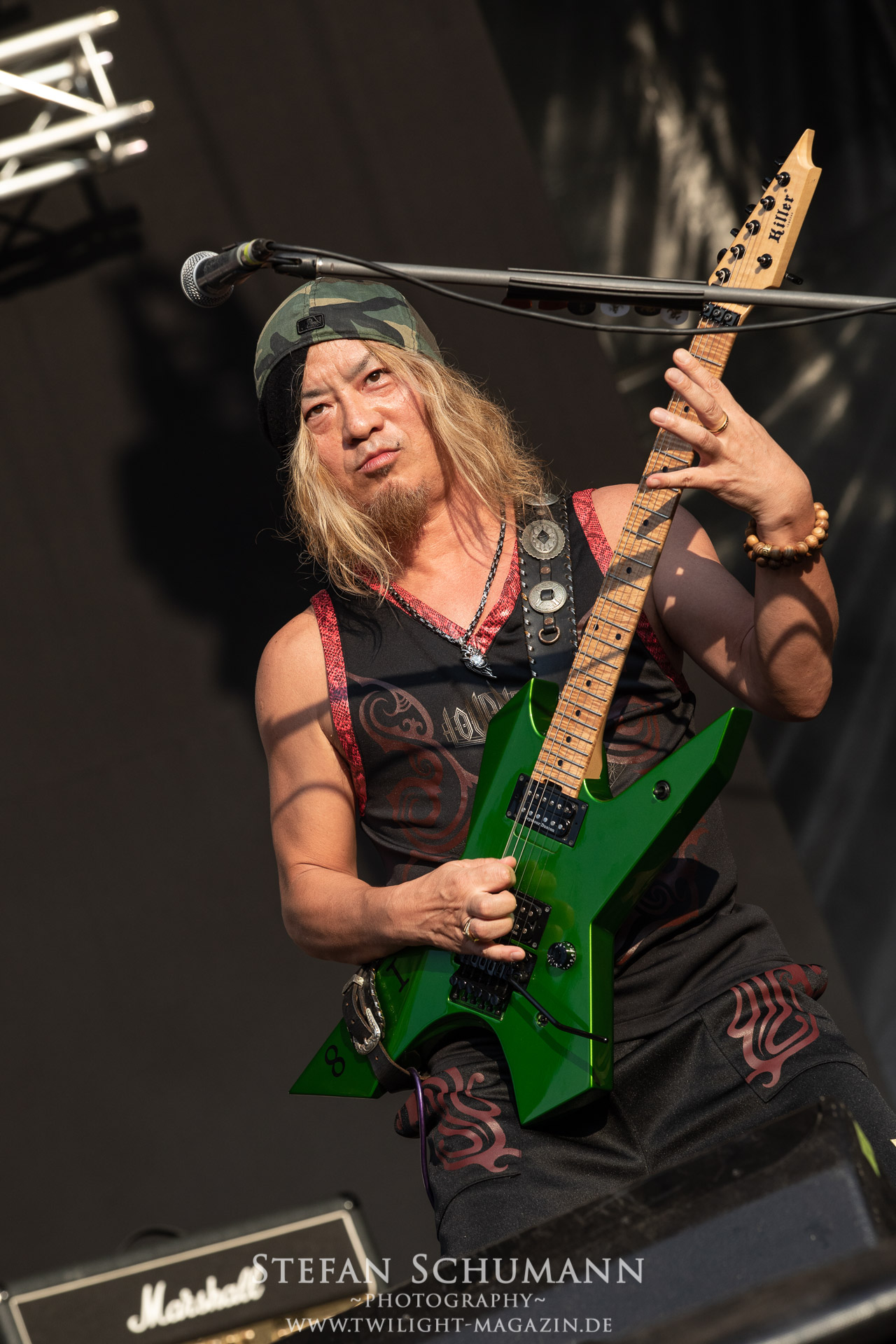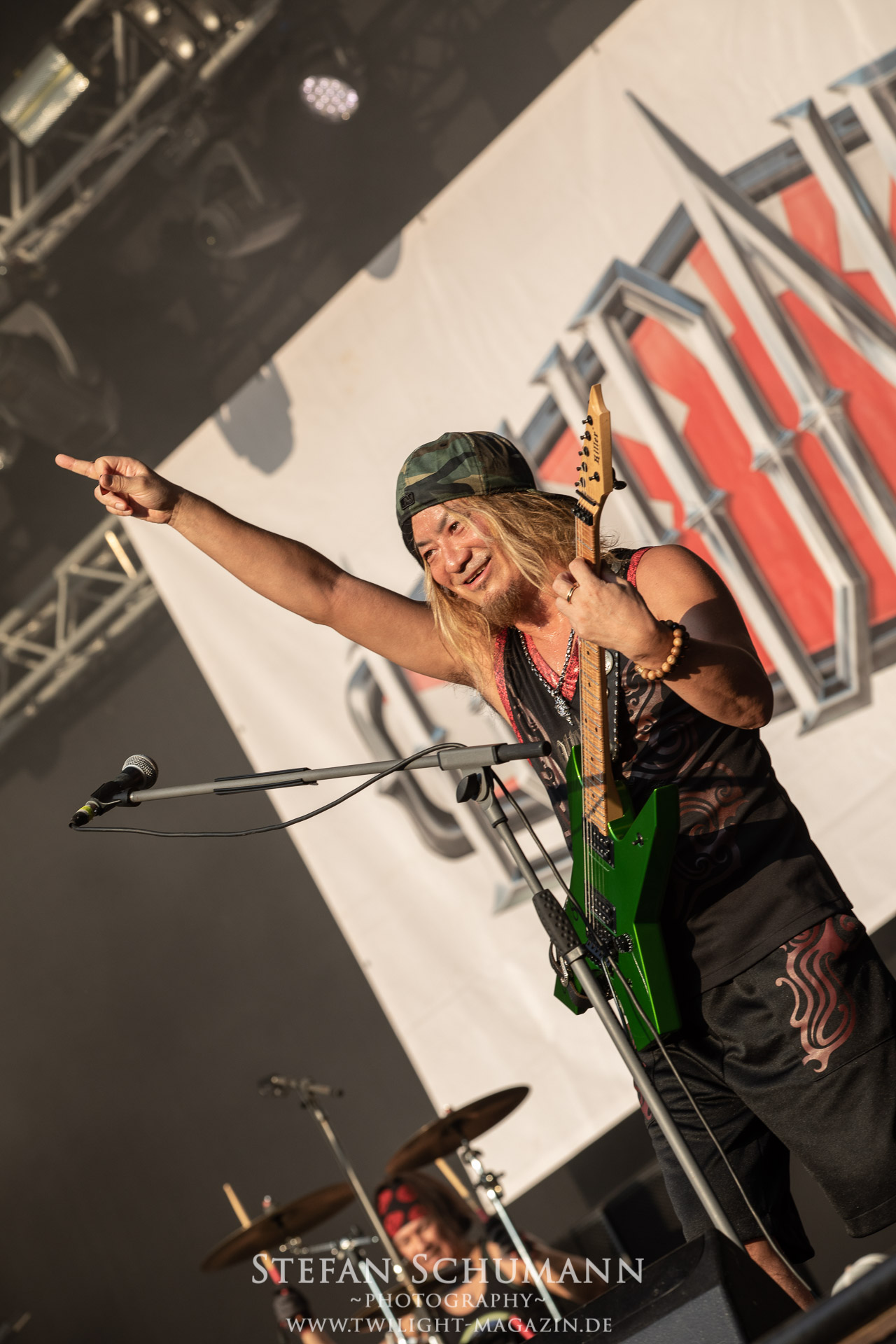 Am Mittwoch darf dann CREED- und ALTER BRIDGE-Gitarrist Mark Tremonti mit seiner Solo-Band TREMONTI, nach einigem Hickhack im Vorfeld über Zu- und wieder Absagen, den Opener für RAGE spielen. Zum Glück geht es dabei musikalisch um einiges thrashiger zur Sache als bei seinen Hauptbands. Peavy Wagner und seine beiden Kollegen sorgen dann für Jugenderinnerungen mit zahlreichen alten Songs wie „End of All Days“ und „Higher Than The Sky“, bei dem auch die „Holy Diver“-Einlage begeistert vom Publikum mitgesungen wird. Im Anschluss dürfen die Japaner LOUDNESS dann nach ihrem im letzten Jahr vom Sturm verhinderten Auftritt dieses Jahr noch einmal ran. Die seit den Achtzigern existierende Band ist der Exot im diesjährigen Lineup, kann aber die Fangemeinde mit ihrem Old-School-Heavy-Metal schnell auf ihre Seite ziehen.