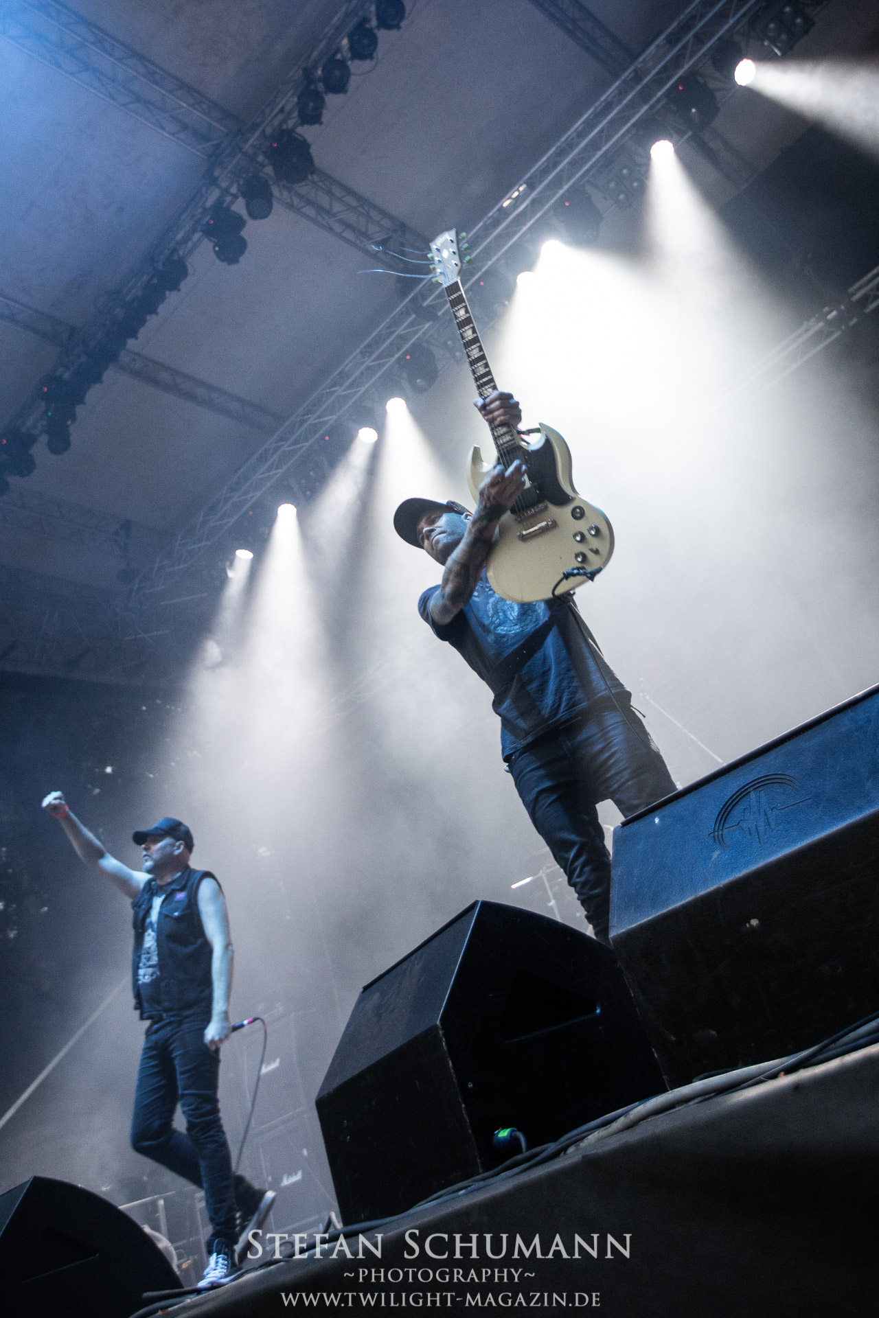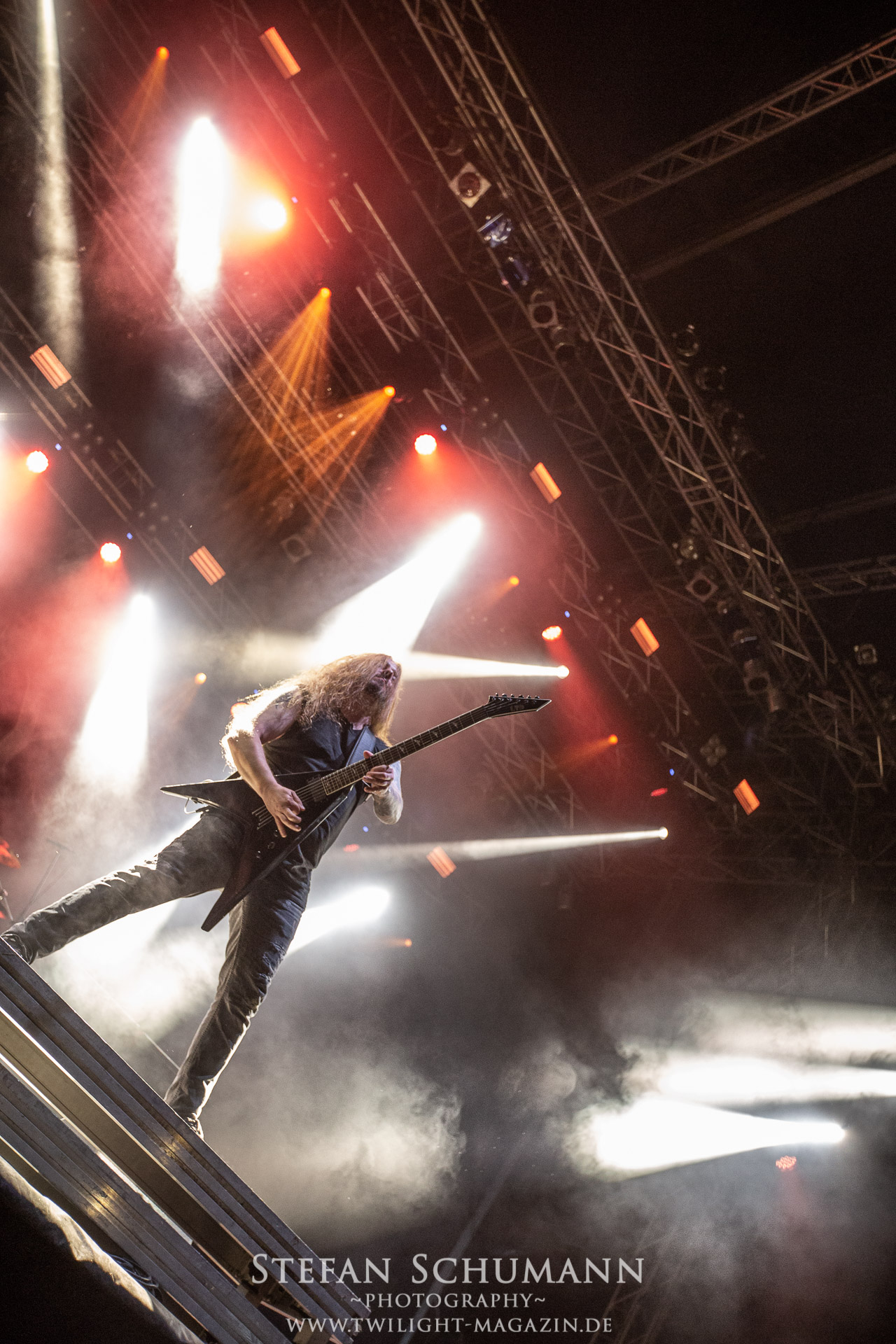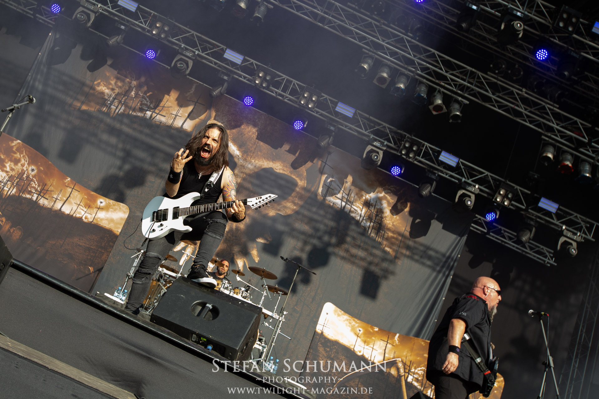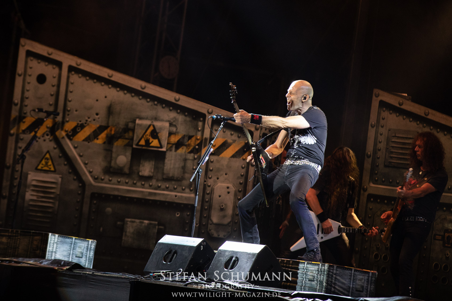 Am Mittwoch darf dann CREED- und ALTER BRIDGE-Gitarrist Mark Tremonti mit seiner Solo-Band TREMONTI, nach einigem Hickhack im Vorfeld über Zu- und wieder Absagen, den Opener für RAGE spielen. Zum Glück geht es dabei musikalisch um einiges thrashiger zur Sache als bei seinen Hauptbands. Peavy Wagner und seine beiden Kollegen sorgen dann für Jugenderinnerungen mit zahlreichen alten Songs wie „End of All Days“ und „Higher Than The Sky“, bei dem auch die „Holy Diver“-Einlage begeistert vom Publikum mitgesungen wird. Im Anschluss dürfen die Japaner LOUDNESS dann nach ihrem im letzten Jahr vom Sturm verhinderten Auftritt dieses Jahr noch einmal ran. Die seit den Achtzigern existierende Band ist der Exot im diesjährigen Lineup, kann aber die Fangemeinde mit ihrem Old-School-Heavy-Metal schnell auf ihre Seite ziehen.