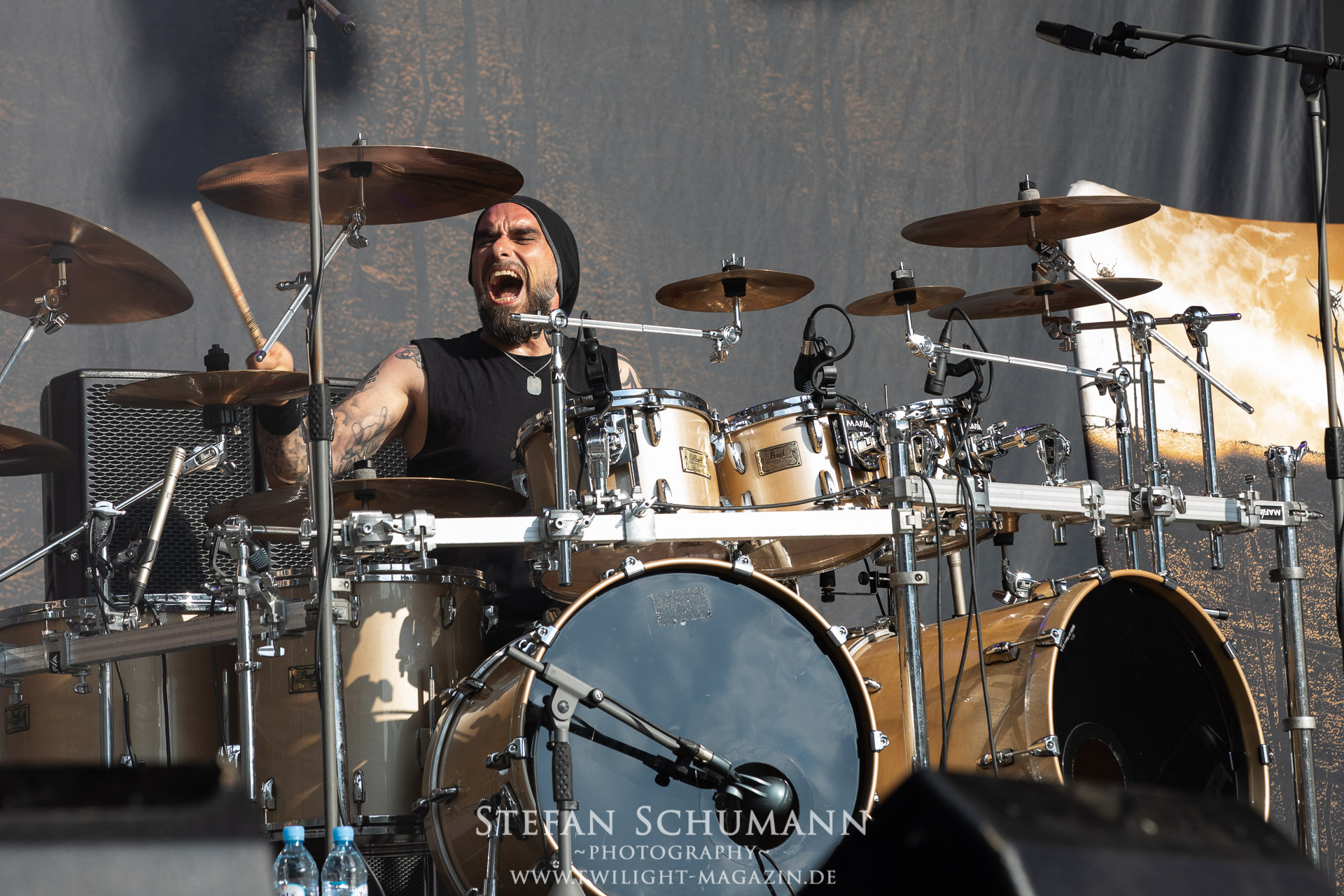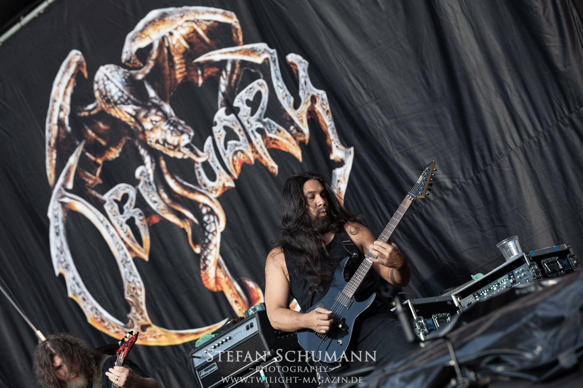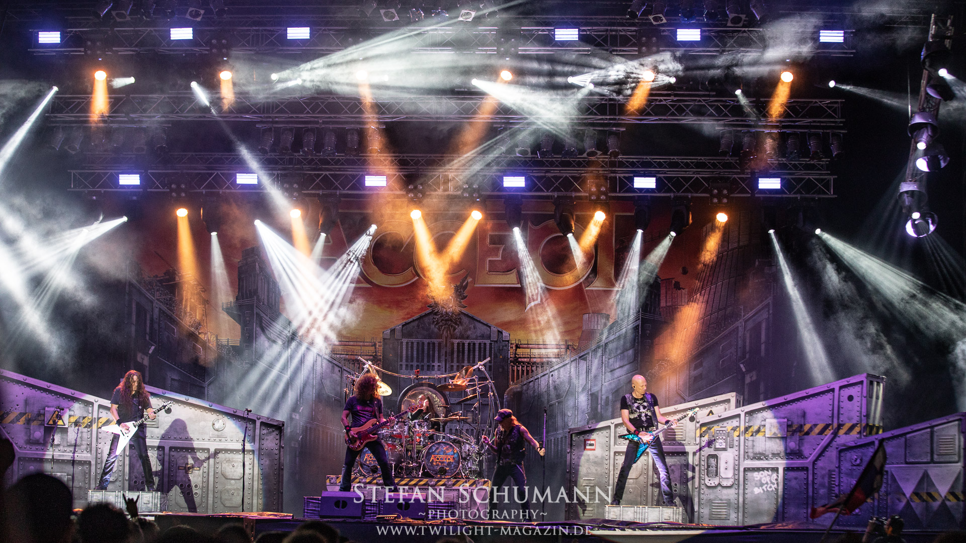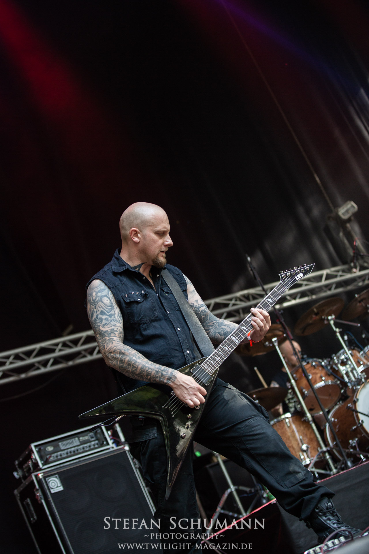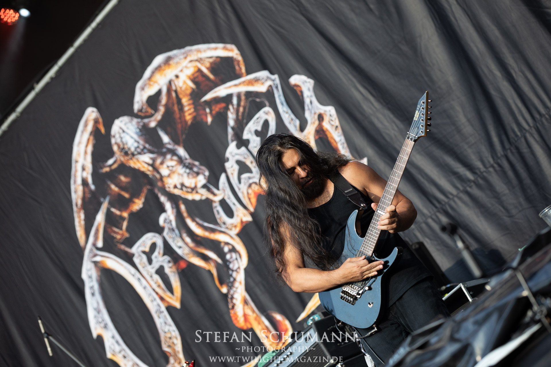 Am Mittwoch darf dann CREED- und ALTER BRIDGE-Gitarrist Mark Tremonti mit seiner Solo-Band TREMONTI, nach einigem Hickhack im Vorfeld über Zu- und wieder Absagen, den Opener für RAGE spielen. Zum Glück geht es dabei musikalisch um einiges thrashiger zur Sache als bei seinen Hauptbands. Peavy Wagner und seine beiden Kollegen sorgen dann für Jugenderinnerungen mit zahlreichen alten Songs wie „End of All Days“ und „Higher Than The Sky“, bei dem auch die „Holy Diver“-Einlage begeistert vom Publikum mitgesungen wird. Im Anschluss dürfen die Japaner LOUDNESS dann nach ihrem im letzten Jahr vom Sturm verhinderten Auftritt dieses Jahr noch einmal ran. Die seit den Achtzigern existierende Band ist der Exot im diesjährigen Lineup, kann aber die Fangemeinde mit ihrem Old-School-Heavy-Metal schnell auf ihre Seite ziehen.