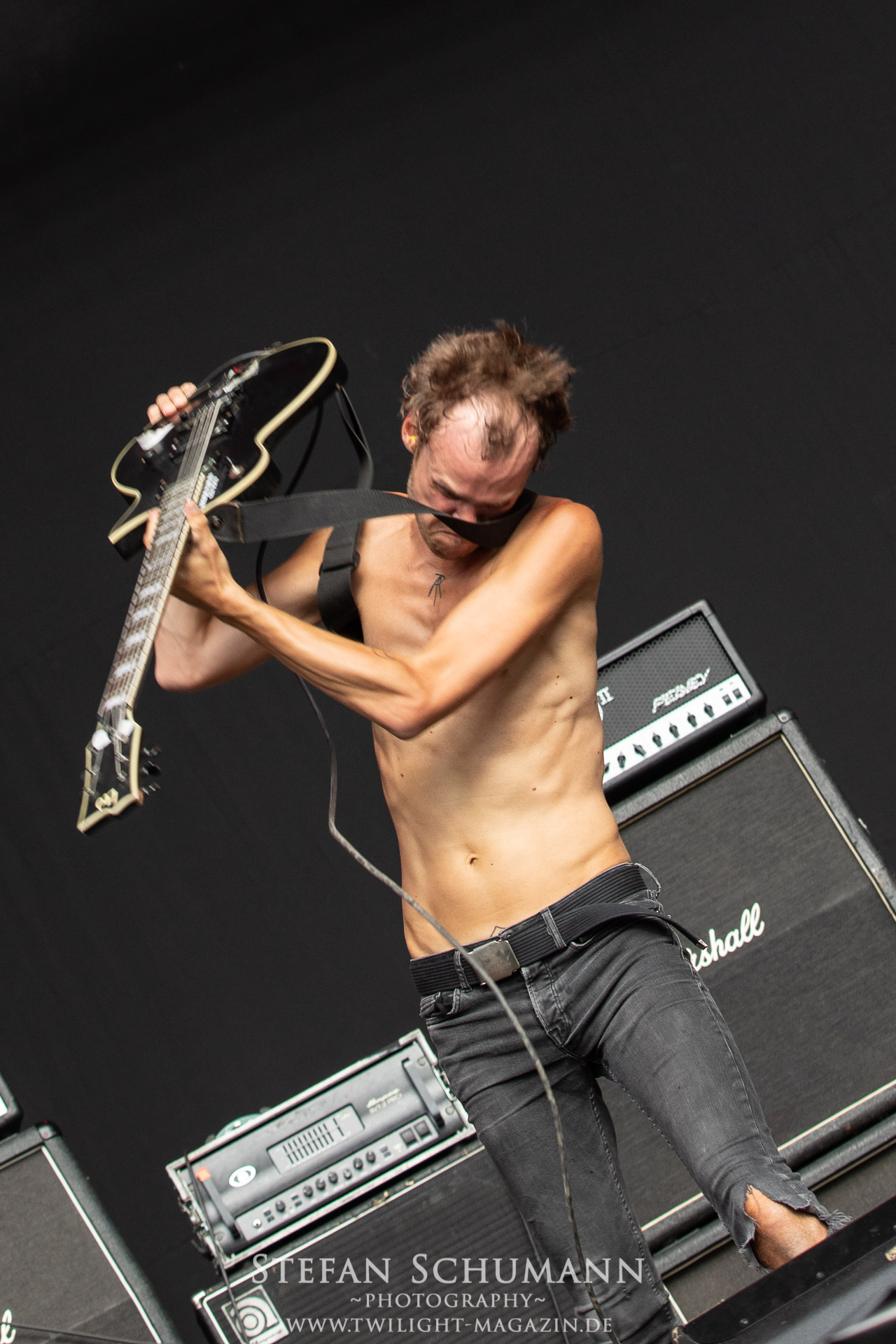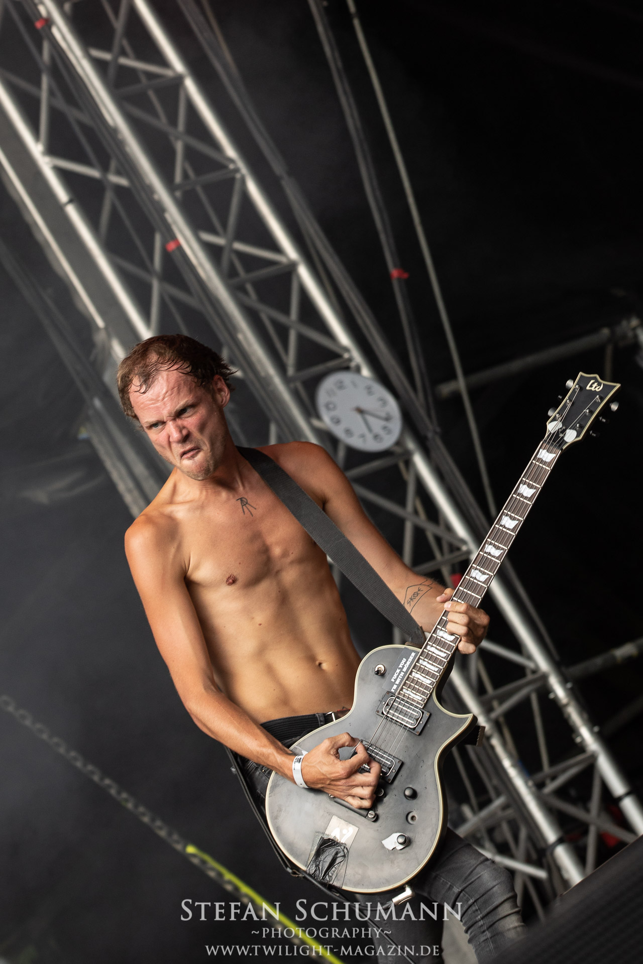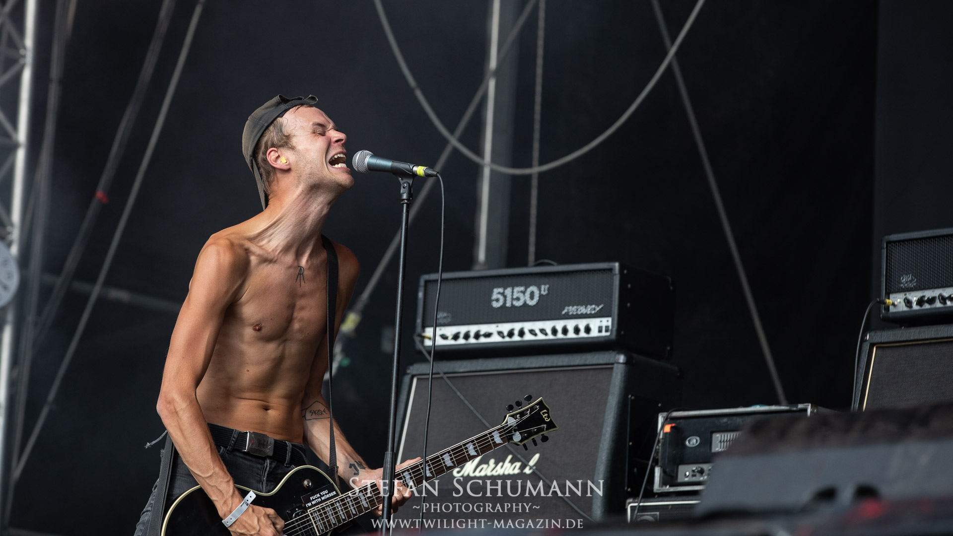 Einen kompletten Stilwechsel gibt es dann mit HATEBREED, der wohl hardcore-lastigsten Band des Festivals. Songs wie „To the Threshold“ und „Destroy Everything“ werden natürlich zum Anlass für zahlreiche Moshpit- und Crowdsurf-Versuche genommen, die zu dem fetten Sound ordentlich Staub aufwirbelten. Wem das immer noch zu positive Vibes sind, der findet sich auf der Zweitbühne ein, um SHINING bei ihrer Selbstzerstörung beizuwohnen. Ganz entgegen ihres Images verläuft der Auftritt völlig skandalfrei und auch Sänger Kvarforth reißt sich zusammen und legt ein professionelles Set hin.