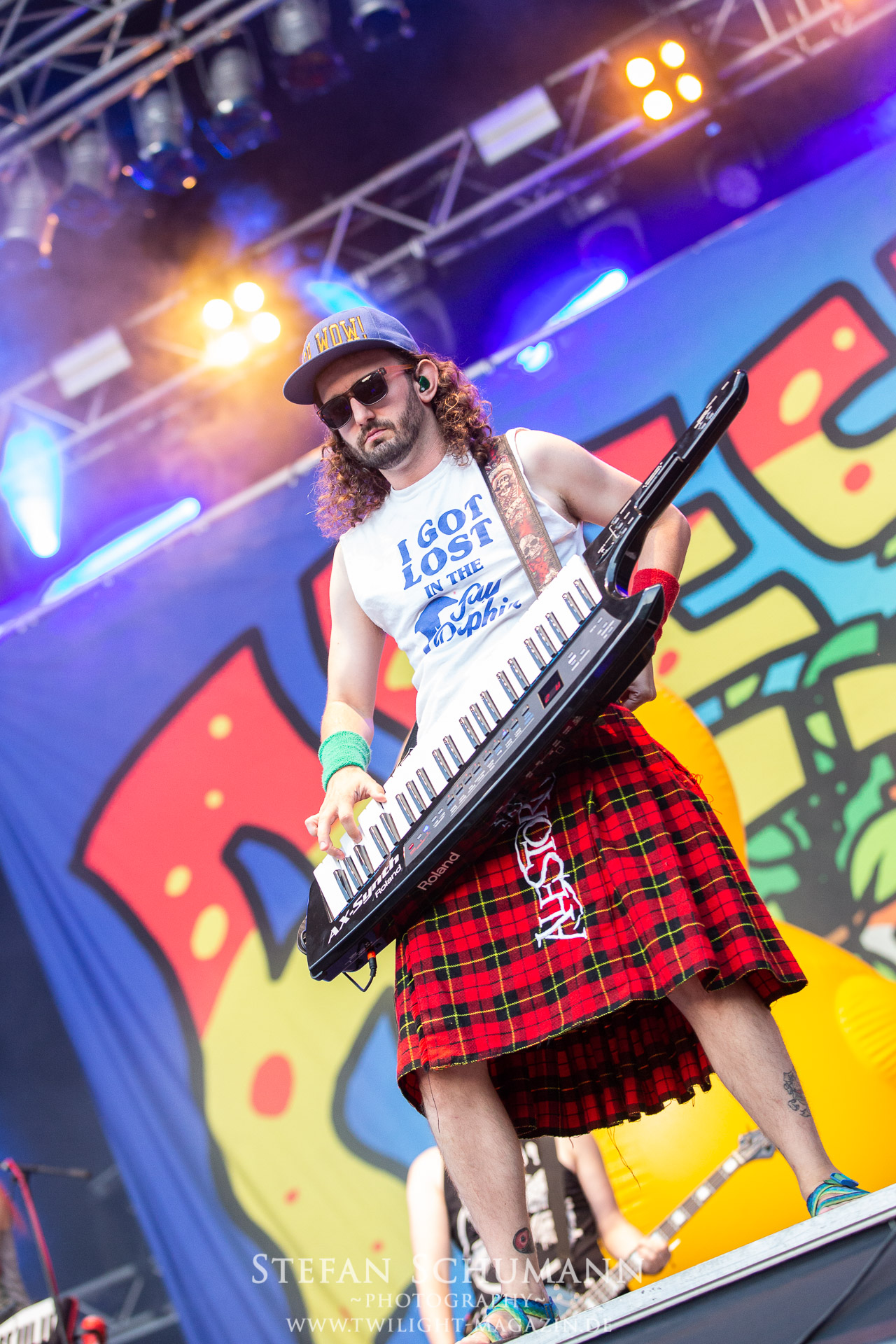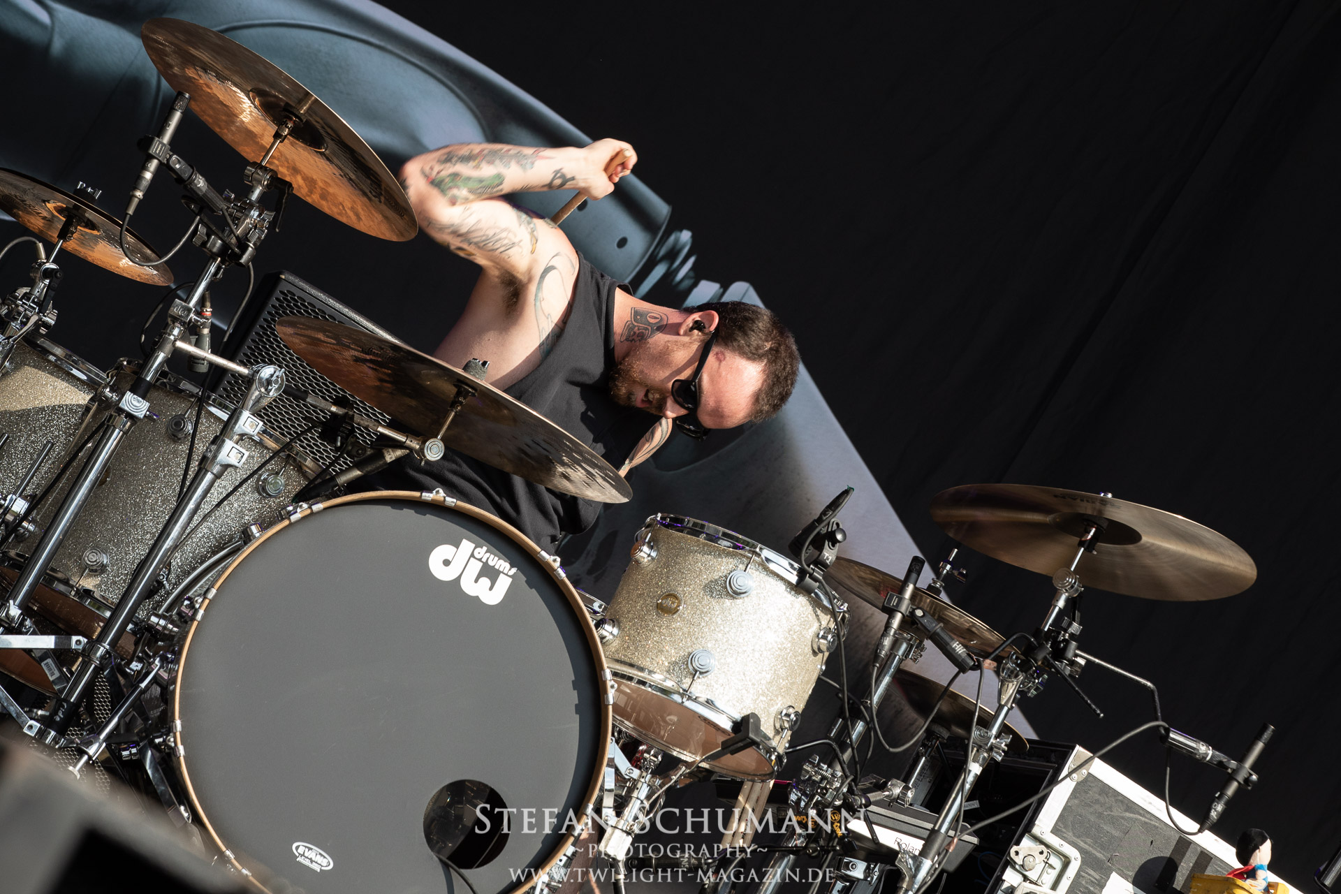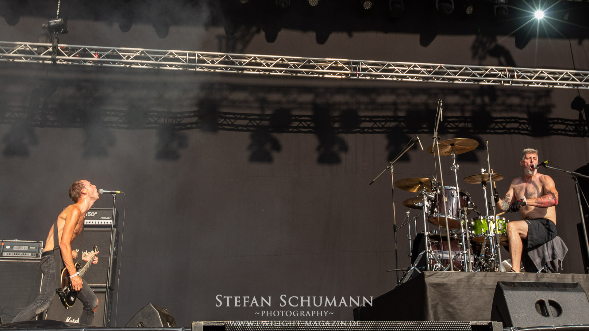 Einen kompletten Stilwechsel gibt es dann mit HATEBREED, der wohl hardcore-lastigsten Band des Festivals. Songs wie „To the Threshold“ und „Destroy Everything“ werden natürlich zum Anlass für zahlreiche Moshpit- und Crowdsurf-Versuche genommen, die zu dem fetten Sound ordentlich Staub aufwirbelten. Wem das immer noch zu positive Vibes sind, der findet sich auf der Zweitbühne ein, um SHINING bei ihrer Selbstzerstörung beizuwohnen. Ganz entgegen ihres Images verläuft der Auftritt völlig skandalfrei und auch Sänger Kvarforth reißt sich zusammen und legt ein professionelles Set hin.