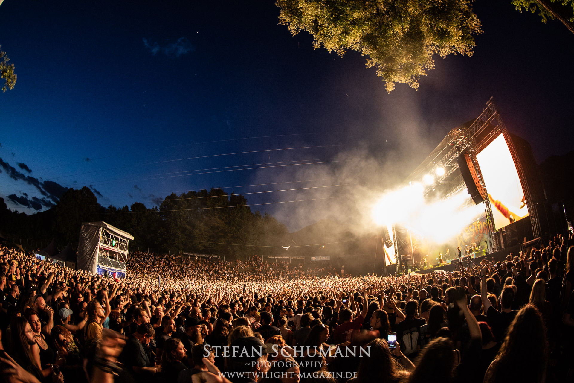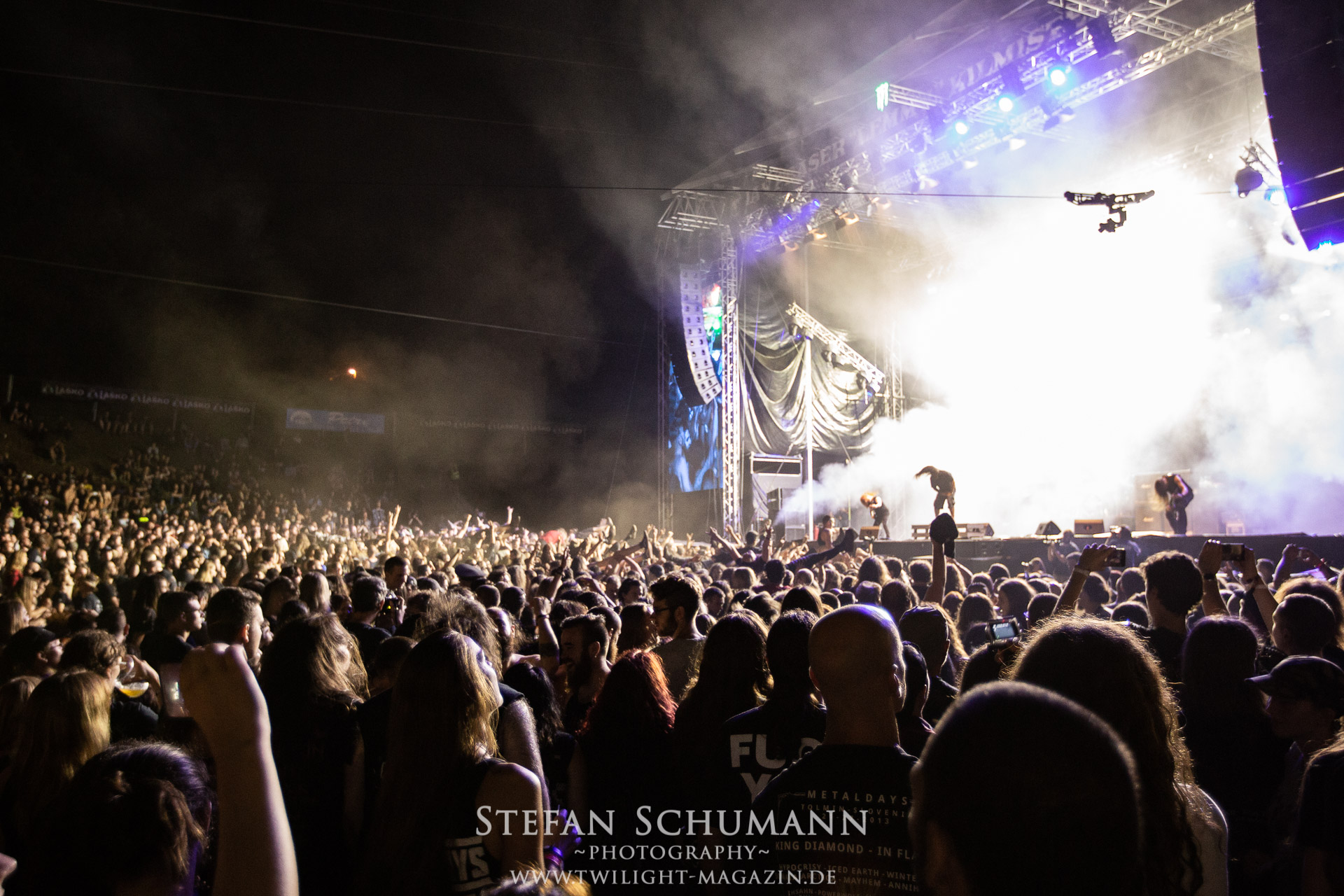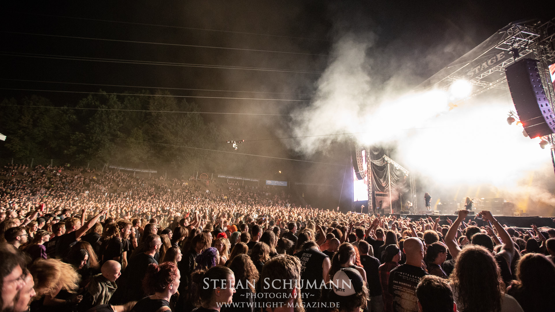 Im starken Kontrast dazu stehen EPICA, die mit ihrer Frontfrau den eher klassischen Ansatz verfolgen, allerdings auch nicht in NIGHTWISH-Gefilde abdriften, sondern klassischen Heavy Metal mit der ein oder anderen Spielerei verfeinern. Den Fans gefällt’s und sie lassen es sich auch nicht nehmen, eine enorme Wall of Death zu starten.