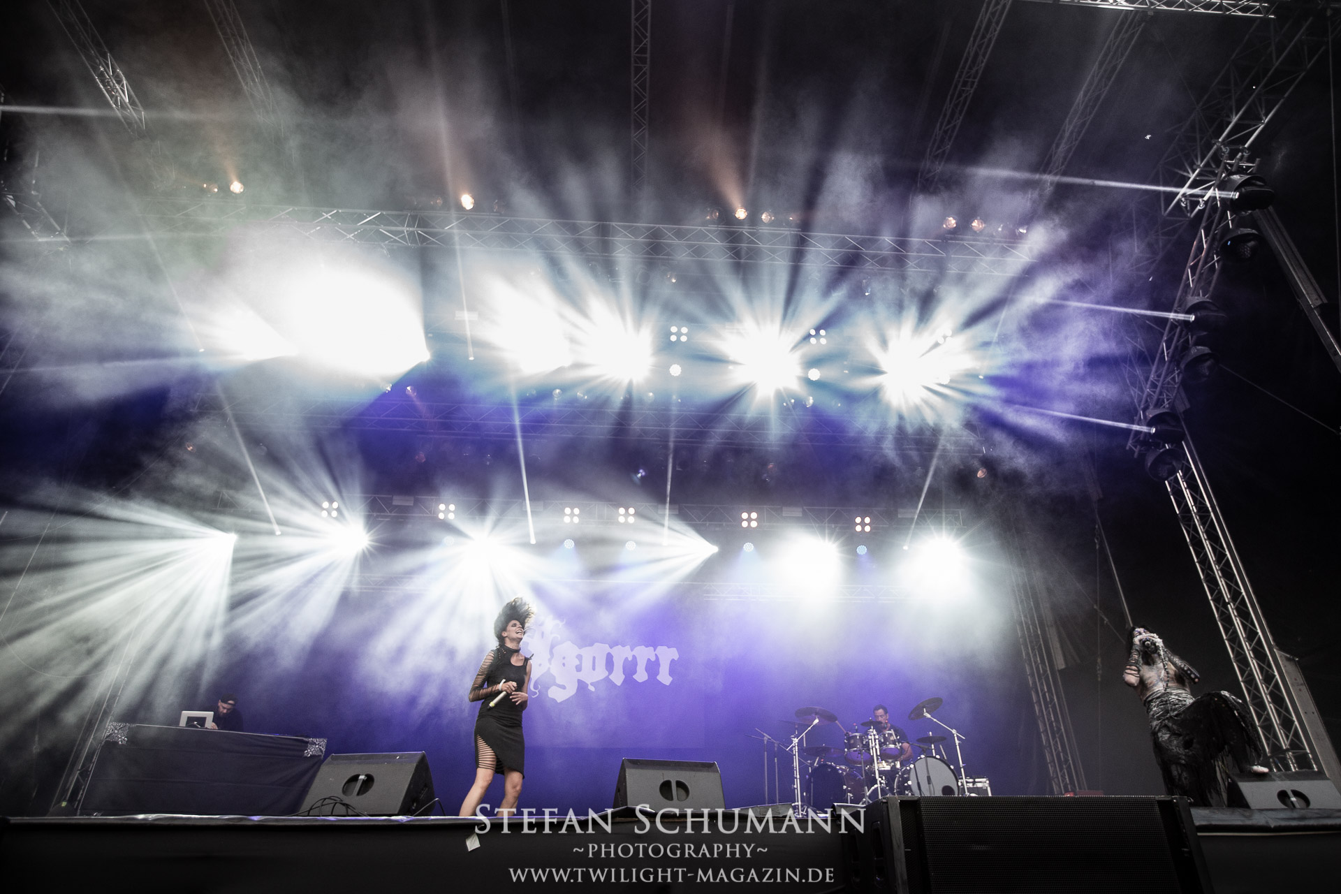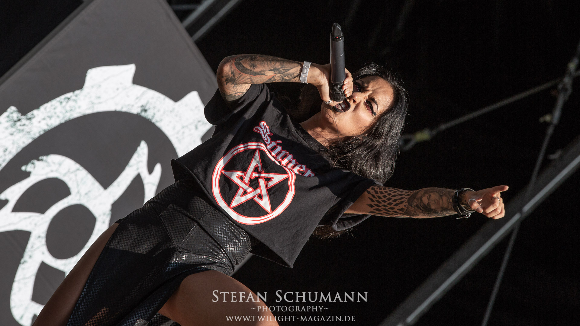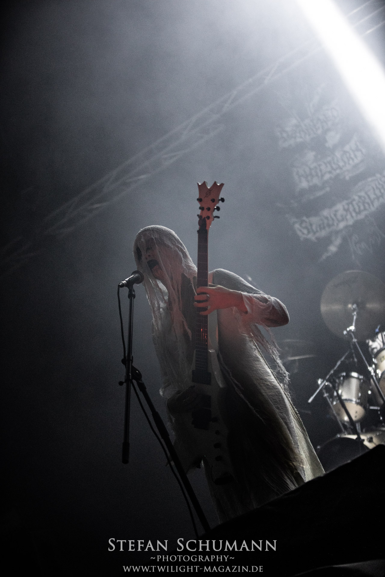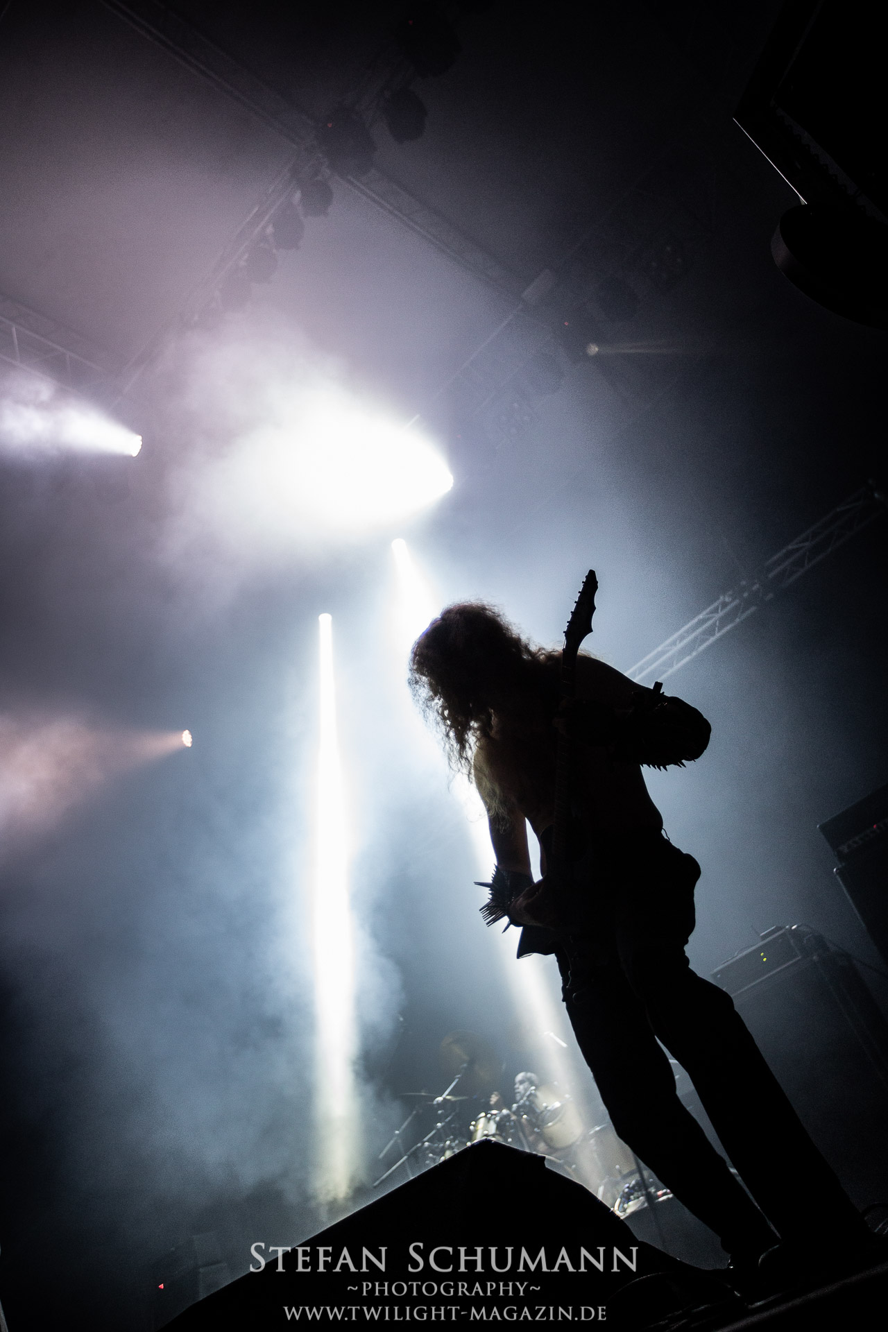 Im Anschluss zeigen DARKENED NOCTURN SLAUGHTERCULT blast-beat dominierten Black Metal der traditionelleren Sorte, wenn da nicht alle Scheinwerfer auf Frontfrau Onielar gerichtet wären, die mit ihrem Auftritt und gutturalen Gesang fast überirdisch erscheint.