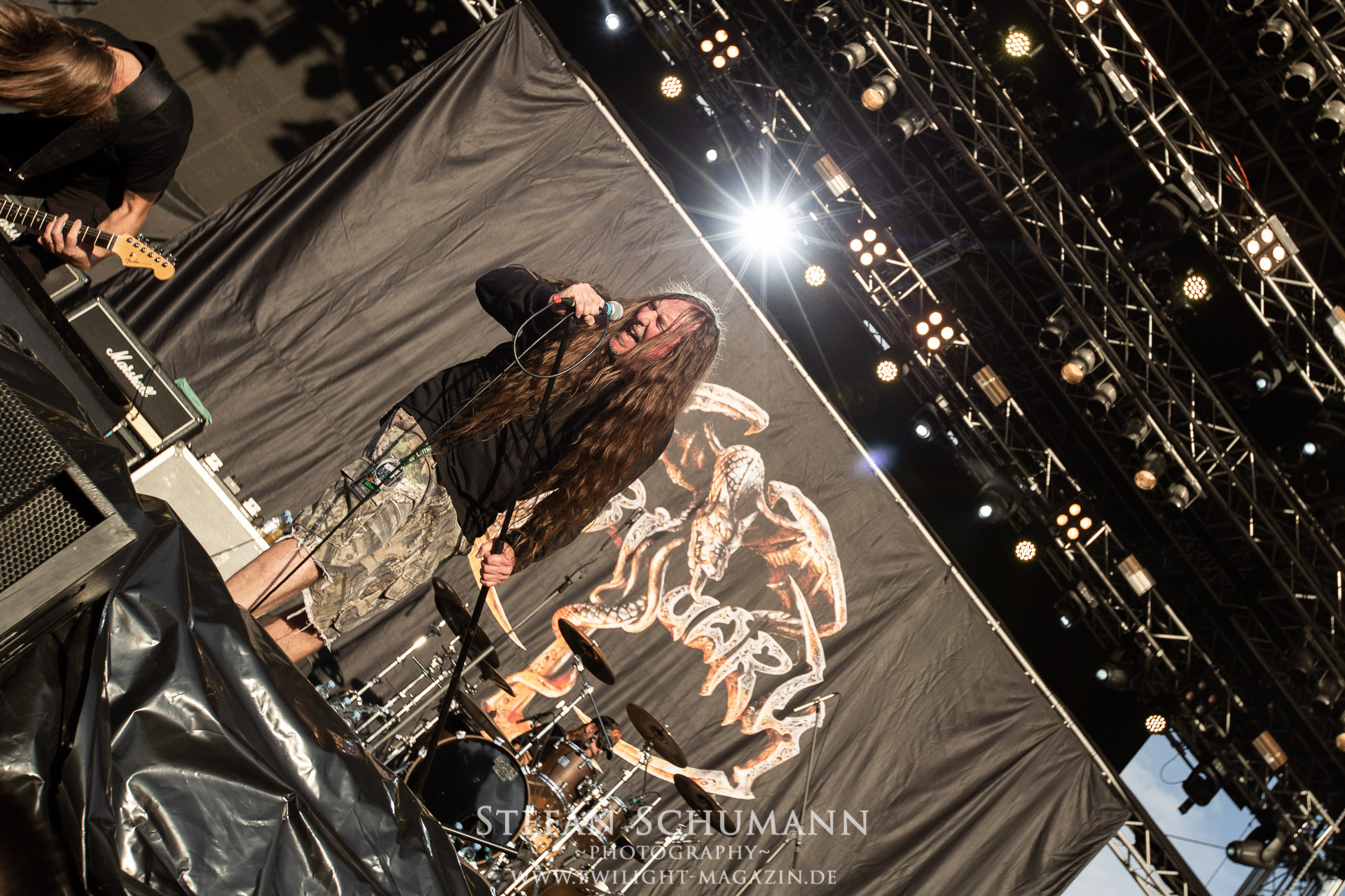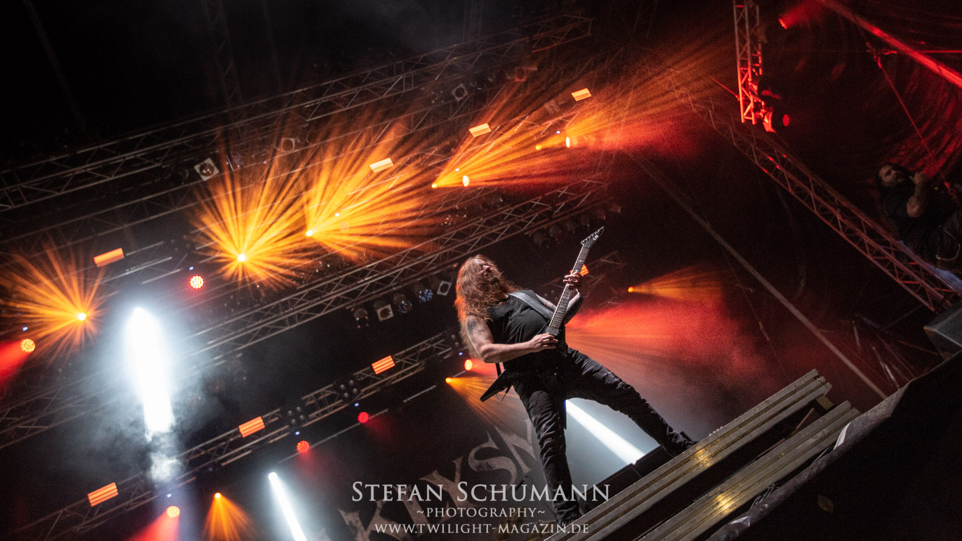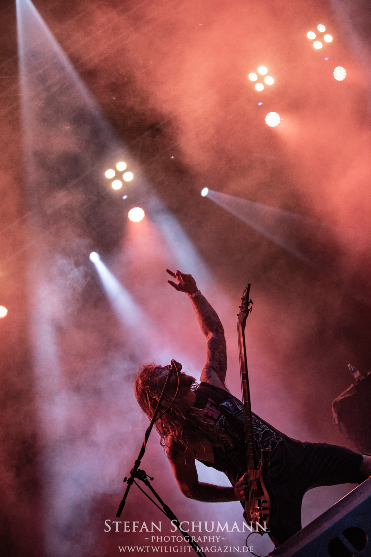 Der Tag beschlossen wird dann von KATAKLYSM, die mit ihrer Performance wohl das Überraschungs-Highlight des Festivals liefern. Ohne viel Schnickschnack auf der Bühne blasen die Kanadier mit ihrem harten, aber doch melodischen, Death Metal einfach alles weg, was ihnen im Wege steht. Bis zur letzten Reihe bleibt dabei kein Körper unbewegt und kein Haar ungeschüttelt. Es bildet sich eine Circle Pit nach der anderen, die Security muss unzählige Crowdsurfer retten und die Spielfreude überträgt sich von der Bühne auf das gesamte Vorfeld. So ist der Gig nach etwas über einer Stunde mit „The World is a dying Insect“ viel zu schnell vorbei.