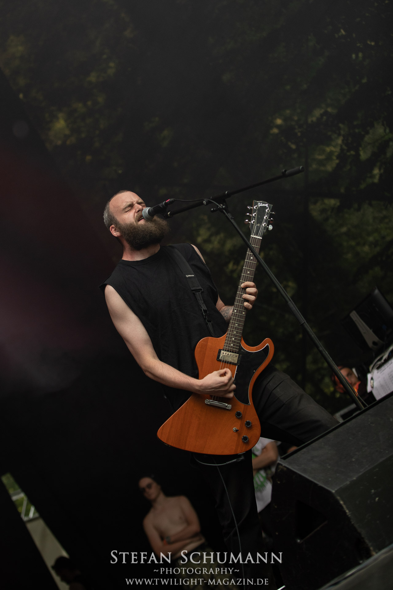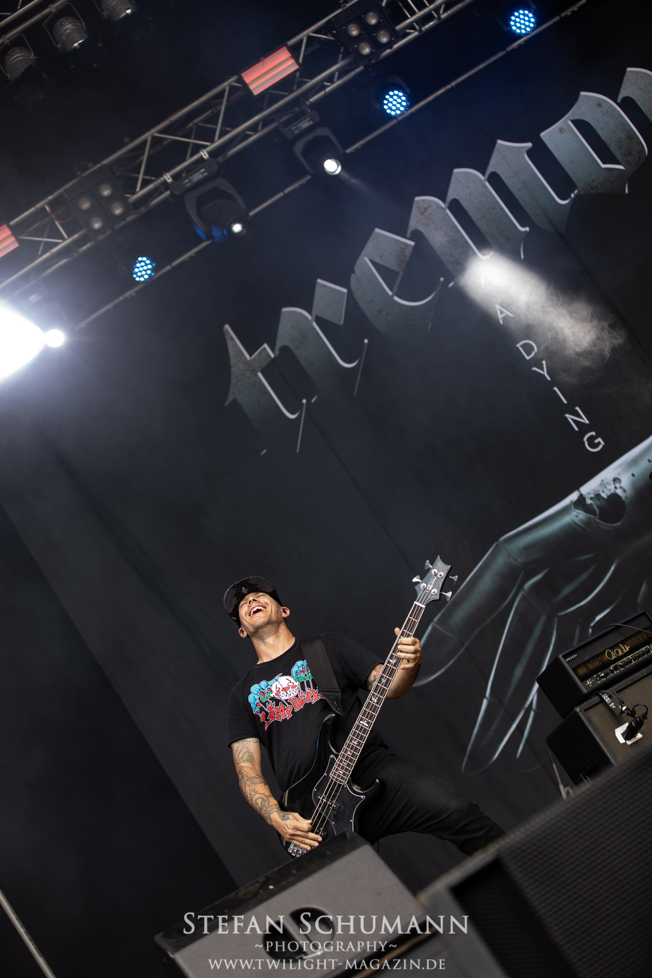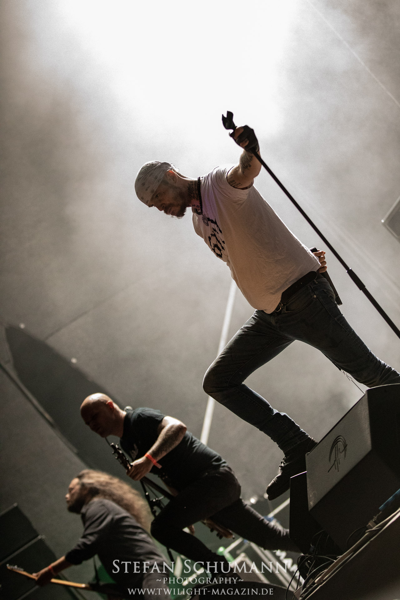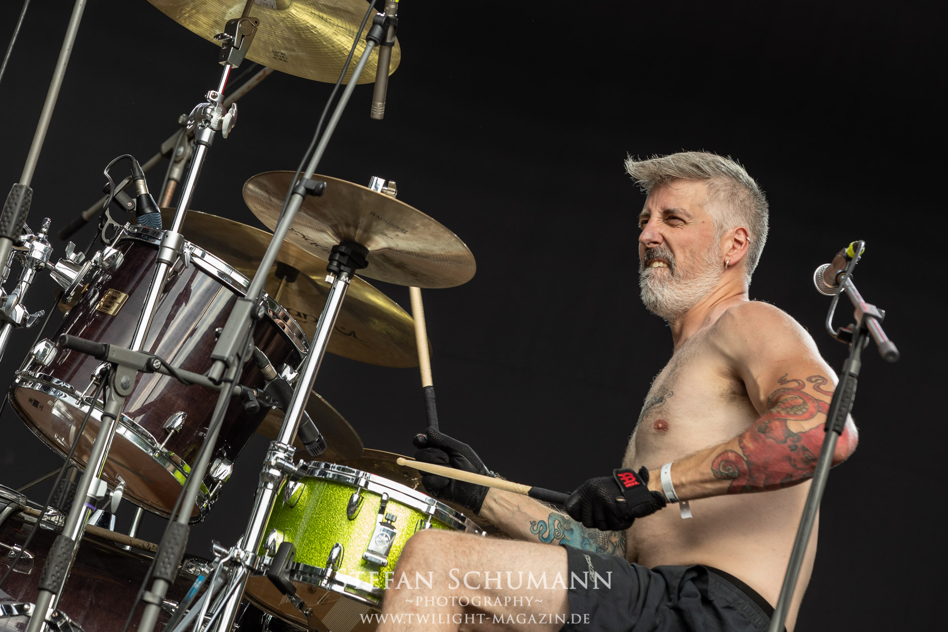 Der Tag beschlossen wird dann von KATAKLYSM, die mit ihrer Performance wohl das Überraschungs-Highlight des Festivals liefern. Ohne viel Schnickschnack auf der Bühne blasen die Kanadier mit ihrem harten, aber doch melodischen, Death Metal einfach alles weg, was ihnen im Wege steht. Bis zur letzten Reihe bleibt dabei kein Körper unbewegt und kein Haar ungeschüttelt. Es bildet sich eine Circle Pit nach der anderen, die Security muss unzählige Crowdsurfer retten und die Spielfreude überträgt sich von der Bühne auf das gesamte Vorfeld. So ist der Gig nach etwas über einer Stunde mit „The World is a dying Insect“ viel zu schnell vorbei.