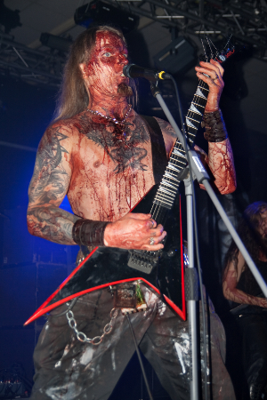 Gegen Ende gab es dann noch eine kleine Strip-Show einer jungen Frau, die sich ebenfalls mit Blut beschmiert hatte. Viel Sinn machte diese Aktion nicht, aber hey! Seit wann macht Death Metal Sinn?