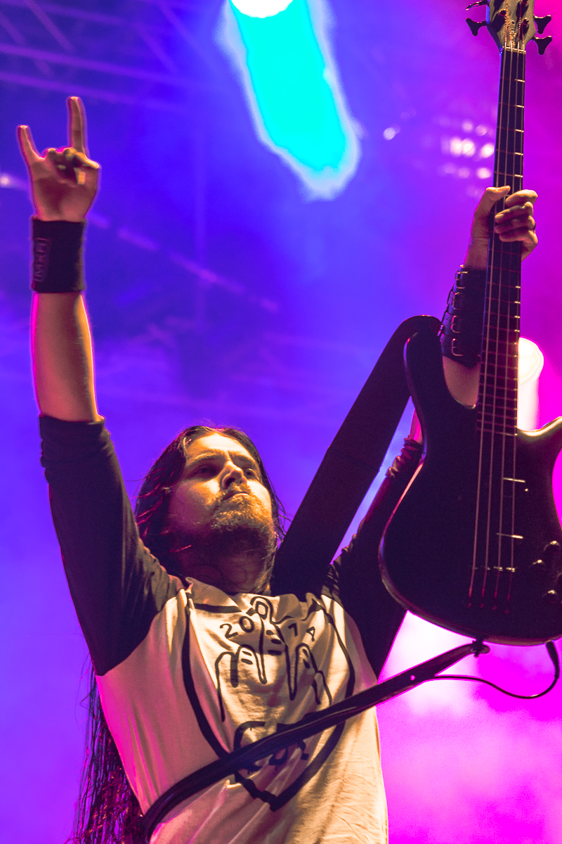 OBITUARY legen einen einen mächtig-gewaltigen Auftritt hin und grooven sich nackebrecherisch durch einen Set von Old-School-Klassikern. Aber bei allem Engagement, mit dem die Florida-Deather ihre Granaten unters Volk bringen, lassen sich zumindest bei mir gewisse Abnutzungserscheinungen bei der Darbietung der einfach gestrickten Tracks nicht verleugnen, so dass diese Band für meine Begriffe viel zu hoch im Line-Up getacktet ist.