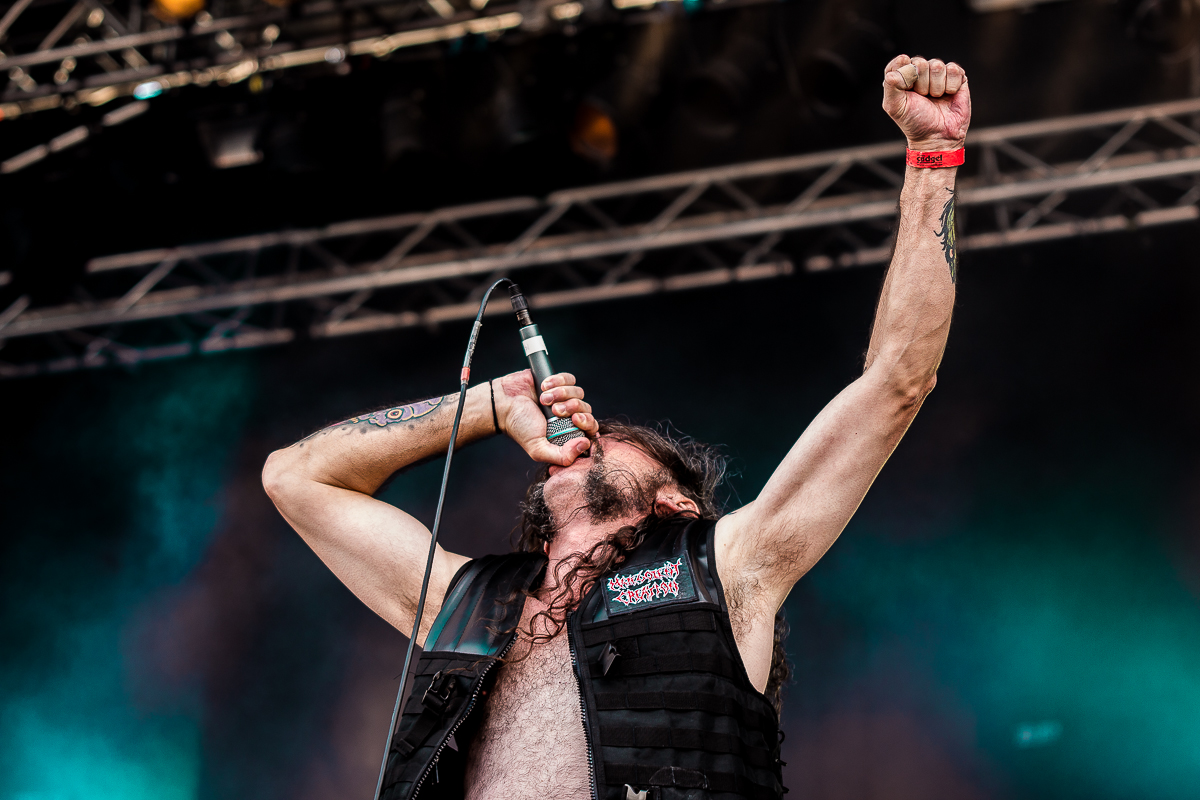 Weniger melodisch geht es danach mit NAPALM DEATH weiter. Die Briten beweisen sich einmal mehr als unnachgiebiges Abrisskommando, dem man einfach nichts entgegensetzen kann. Mit böser Zunge könnte man behaupten "Same procedure as last gig..." aber diese Prozedur ist verdammt mächtig und zornig, auch nach dreißig Jahren noch. Barney, Shane, Mitch und Danny schöpfen der Zorn aus dem Überalbum "Utilitarian" und aus dem Fundus eines unerschöpflichen Backkatalog aus Death Metal, Punk, Grind und Hardcore und hinterlassen einmal mehr nichts als verbrannte Erde und sorgen so für offene Münder. Napalm Death sind ein Kunst gewordenes Manifest. (JD)