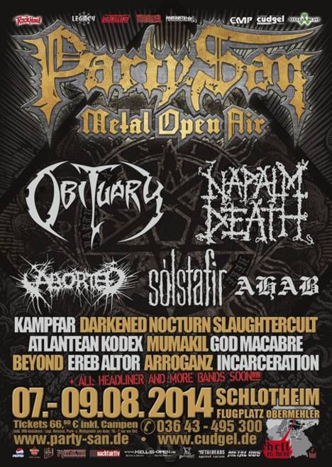 Das PARTY.SAN METAL OPEN AIR 2014 geht zu Ende und es dürfte auch in diesem Jahr kaum unglückliche Besucher nach Hause schicken. Man kann nur hoffen und wünschen, dass man die Variabilität und die Experimentierfreudigkeit, die man in diesem Jahr bei Bands wie Grand Magus, Atlantean Kodex, Katatonia oder Ahab gezeigt, hat auch zukünftig mutig weiter verfolgt. Denn es gibt noch eine ganze Reihe an fantastischen Formationen, die es neben den "Dauergästen" wert wären, in Schlotheim zu debutieren oder wieder zu kommen. Als da wären: TWILIGHT OF THE GODS, ROTTING CHRIST, THE VISION BLEAK, BRUTALITY, DIMMU BORGIR, MY DYING BRIDE, EXTREME NOISE TERROR, GOREFEST, SUMMONING, FLEURETY, THE BLOOD DIVINE,WINTERFYLLETH, A FOREST OF STARS, URFAUST, THE WOUNDED KINGS, SOLEFALD, BARREN EARTH... Es ist lange her, so dass ich als kritischer Party.San-Veteran überrascht bin, seit vielen Jahren mal kein Haar in der Festival-Suppe gefunden zu haben. Insofern kann ich den Veranstaltern nur attestieren, dass sie auf dem richtigen Weg sind. Lasst den Panzer also bitte nicht vom Kurs abkommen.