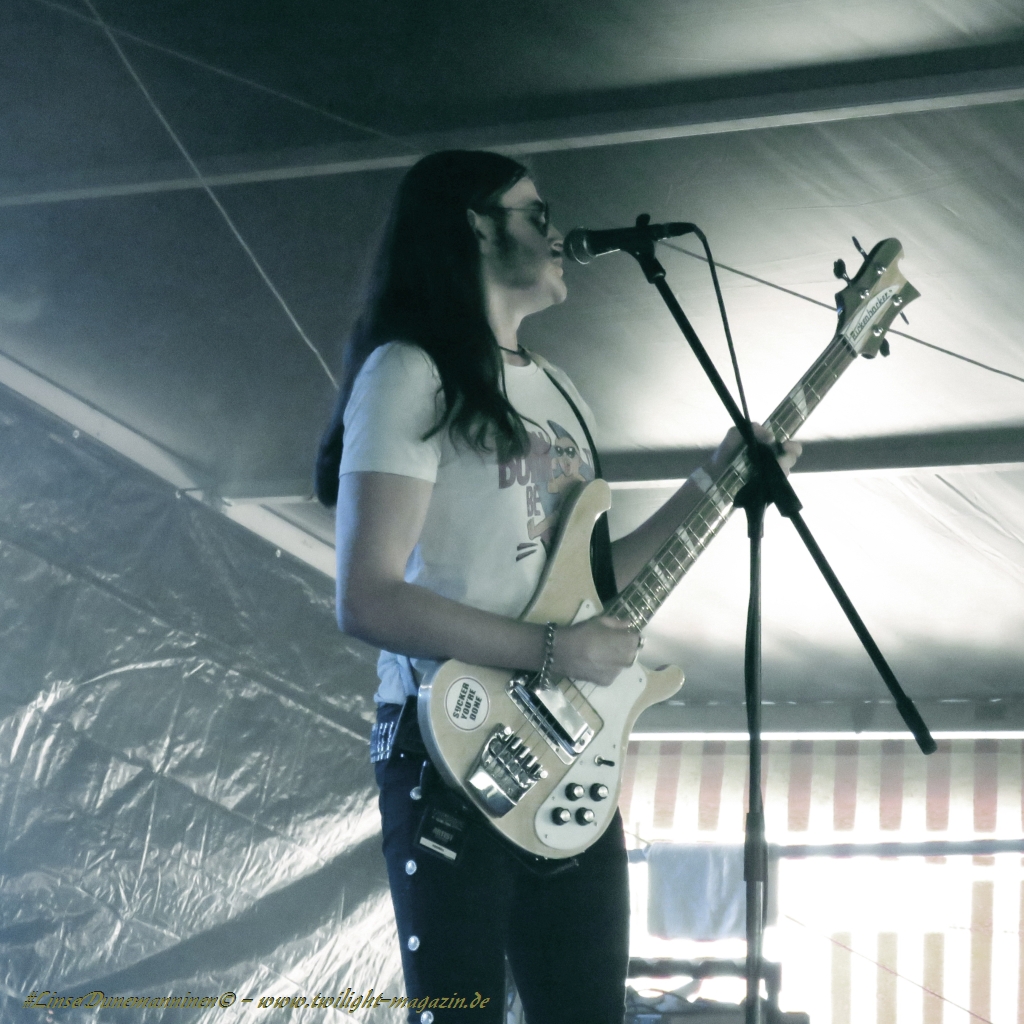 In diesem Jahr geht es jedoch mit ASOMVEL gleich morgens um zehn gleich wieder so richtig in die vollen. Und einen schöneren, vor allem aber besseren Tribut an den hochverehrten, verstorbenen Lemmy hätten Mieze und Boy kaum aus dem Hut zaubern können. Das britische Power-Trio existiert in wechselnden Besetzungen bereits seit 1993 und atmet den Geist von Motörhead in beängstigender Art und Weise. Und das liegt nicht nur an der Tatsache, dass man mit Sänger/Basser Ralph einen Frontmann in den Reihen hat, der in allen Belangen frappierend an den "jungen" Godfather of Rock ´N´Roll erinnert, inklusive Rickenbacker Bass. Erfreulicherweise sind die drei für einen Rip-Off musikalisch einfach zu gut und Ralph einfach zu authentisch, dass man es sich mit eigenen Krachern der Marke, "The Nightmare Ain´t Over", "Kamikaze" oder "Railroaded" während des gesamten, gut anderthalbstündigen(!) Sets locker leisten kann, auf Cover der offenkundigen Vorbilder zu verzichten. Die Stimmung im Zelt kocht folglich, bevor der Tag richtig begonnen hat, der Durst ist groß, das Bier schmeckt und alle sind zufrieden. Asomvel dürfen gerne wieder kommen. Chapeau an die Veranstalter, dass sie diese Band aufgetrieben haben. (JD) Nachdem ich meinen Körper bei Asomvel und RECTAL SMEGMA so gar nicht davon überzeugen konnte, vor die Bühne zu gehen, geht´s weiter mit IRON REAGAN. Die Band konnte ich bisher gar nicht einordnen,aber beim ersten Ton des Sängers ist klar: Municipal Waste - Sänger und die Mucke geht in die gleiche Richtung, wenn auch ´nen Zacken mehr Hardcore mit reingemischt ist. Somit mähen sie mir auf jeden Fall die letzten Schlaffalten aus dem Gesicht und mit dem Cannibal Corpse - Klassiker "A Skull Full Of Maggots" legen sie auch ´ne perfekte Covernummer hin. Der Song komplett im Thrash Gewand klingt wirklich sehr, sehr geil!(LT)
