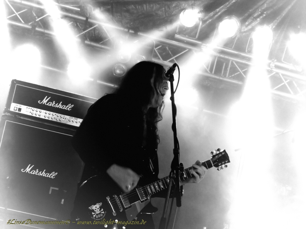 Nachdem ERED an mir vorbeigerauscht sind folgt gleich das erste Highlight. GRUESOME um Exhumed-Matt bieten super Endachtziger-, Frühneunziger-Death Metal, bei denen sie kein Hehl d´raus machen, dass Death zu "Leprosy"-Zeiten der Haupteinfluss ist. Mittendrin gibt´s dann auch ´nen Cover von "Open Casket". Top Band und trotz der frühen Spielzeit der Hammer.(LT) TRIBULATION gehören neben MGLA für mich (O-Ton Leif: "...eine dieser modernen Bands, die mir komplett am Arsch vorbeigehen..." nach wie vor zu den überbewertetsten Bands. Und weder die Schweden, die spätestens mit dem aktuellen Album "Children Of The Night" und ihrer angeschwärzten Version von straffem Düstermetal in aller Munde sind, wie auch die derzeitigen polnischen Lieblinge der Black Metal - Puristen sind in der Lage, mein Vorurteil zu widerlegen. Solides Material bleibt trotz gehobener, engagierter und mitunter minimalistischer Darbietung unterm Strich nichts Besonderes.(JD) Im Zelt feiert sich zum Auftakt das Veranstalterlabel War Anthem Records. Nachdem die Spanier um ERED und GRAVEYARD den Reigen auf der Tentstage eröffneten geht´s mit den schwedischen LIK zum ersten Mal so richtig zur Sache. Mit den Youngstern hat sich das Label einen wahren Rohdiamanten in Sachen Elchtod an Land gezogen und das Debut "Mass Funeral Evocation" ist spätestens mit dem Husarenritt im brechend vollen Zelt kein Geheimtipp mehr. Mir ist derzeit jedenfalls kaum eine andere Schweden-Death-Kapelle bekannt, die den Spirit der alten Dismember-Schule mit soviel Hingabe zelebriert, ohne dabei stumpf zu kopieren. Nach dieser halbstündigen, intensiven Vorstellung ist sowohl Publikum, wie auch die Band am Rande der Glückseeligkeit und es steht fest, dass die alten Recken ab sofort einen ernstzunehmenden Konkurrenten im Nacken haben und dass wir diese Jungs in Bälde auf der Hauptbühne wieder sehen werden. (JD) Auch mich können Dismember´s Erben um den ex-KAAMOS - Drummer Christofer Barkensjö überzeugen. Bei ihrem feinsten Schweden-Death wird schnell klar, dass die Tentstage mitunter um einiges geiler als die Hauptbühne ist. Fetter Sound, keine Irritationen durch Wind und speziell der Drumsound ist hier um längen besser: Die Berliner NECROS CHRISTOS sind auch jedes Mal wieder ein feines Ding. Zwar kommt die Mucke bzw. die Stimmung auf der großen Bühne nicht wirklich rüber und irgendwie kann ich die zweite Gitarre kaum vernehmen, aber trotzdem liefert das doomige Brachial-Quartett ´ne gute Show. Aber Halle passt hier für mich natürlich besser.
