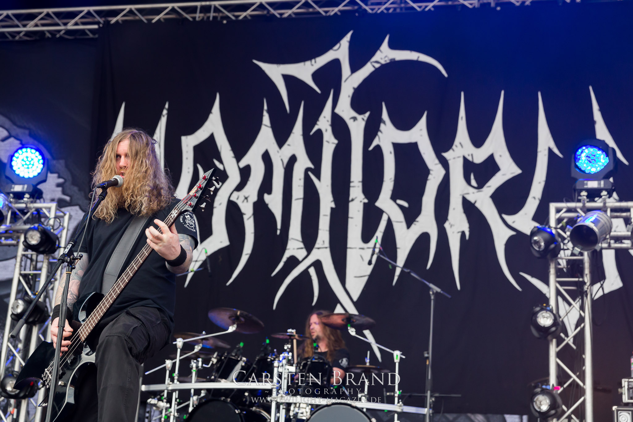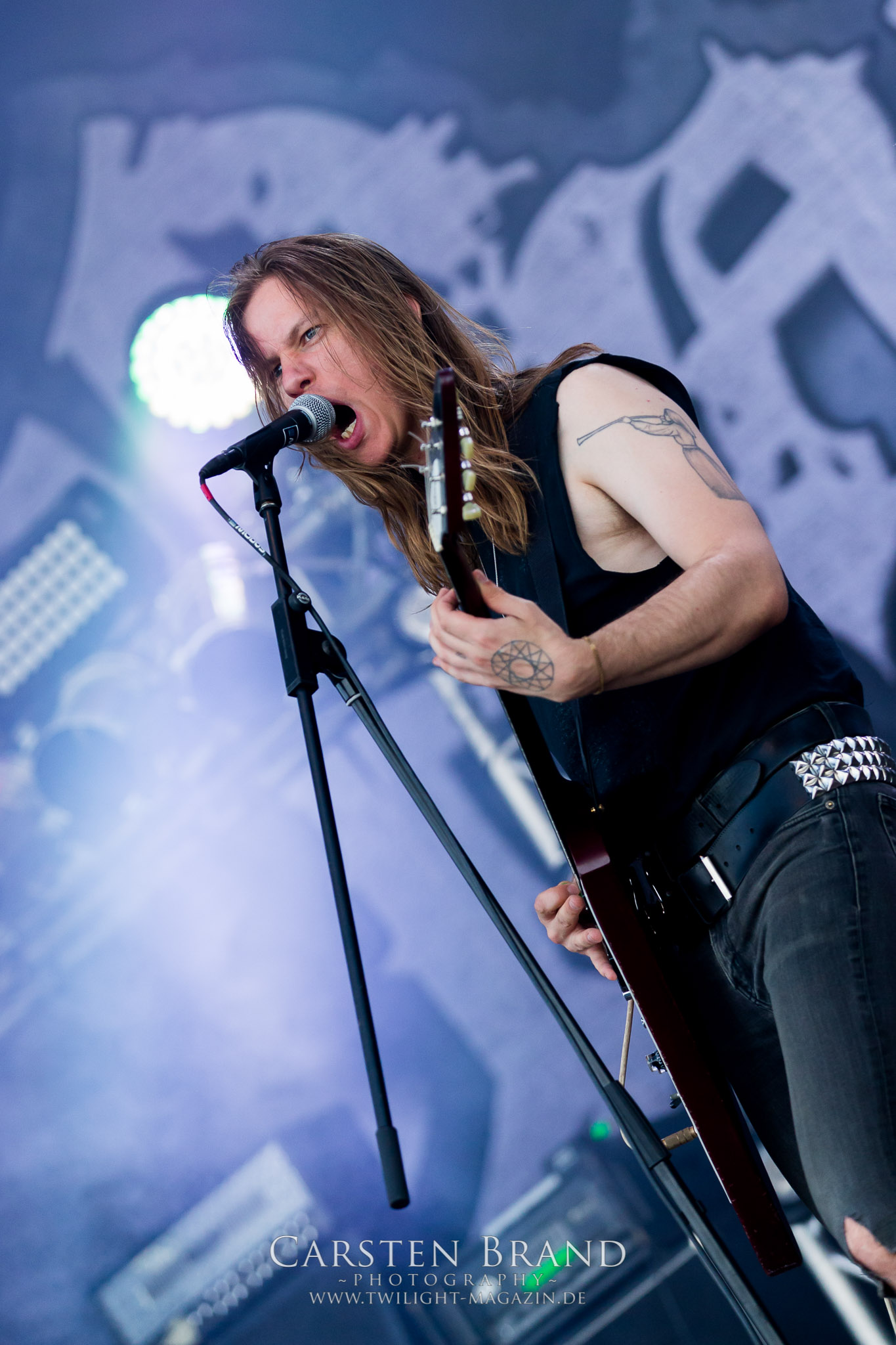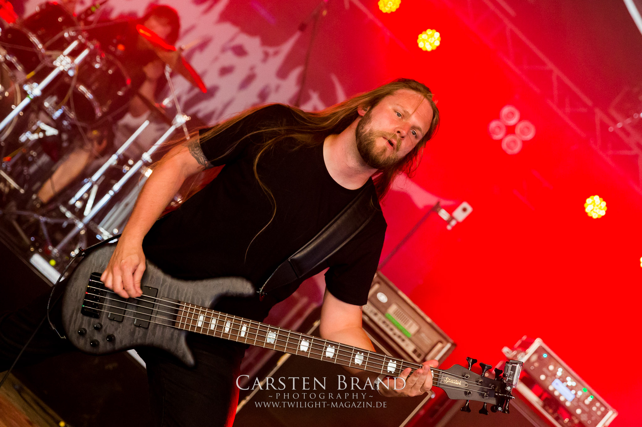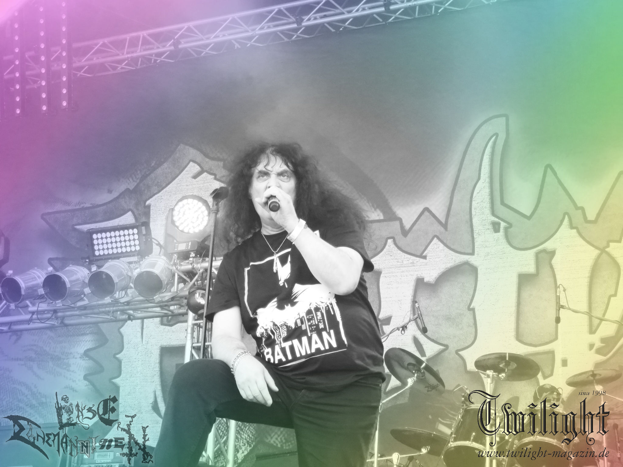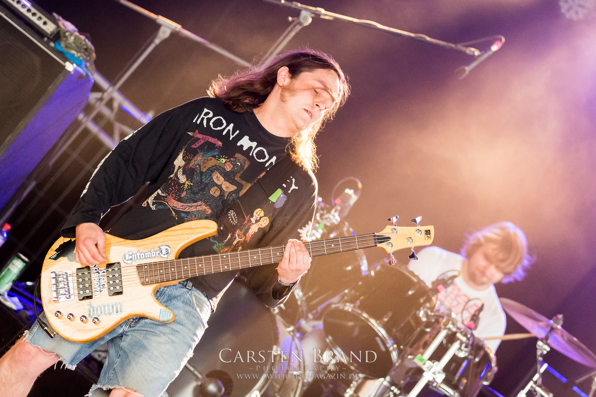 Weiter geht es mit den Schweden von RUNEMAGICK, die so gar nicht nach ihrer Heimatstadt Göteborg klingen. Niklas Rudolfsson hat seiner, einst als Sacramentum-Ableger gestarteten Formation, der erstmals in den späten Neunzigern von sich reden machte, vor zwei Jahren neues Leben eingehaucht. Das Quartett liefert ultra-brutalen, rohen und scheppernden Death-Doom, der sich ohne Rücksicht auf Verluste durch die Nackenmuskulatur in den Schädel fräst. Ohne dass ich die Band jemals intensiv verfolgt hätte, mit einer solch´ auf simpler Effizienz ausgelegten abgrundtief hässlichen Soundwalze lässt sich schonmal die Sonne verdunkeln. Ein beeindruckender Verweis auf den angekündigten Triumpfzug des Todes am späten Abend. (JD)