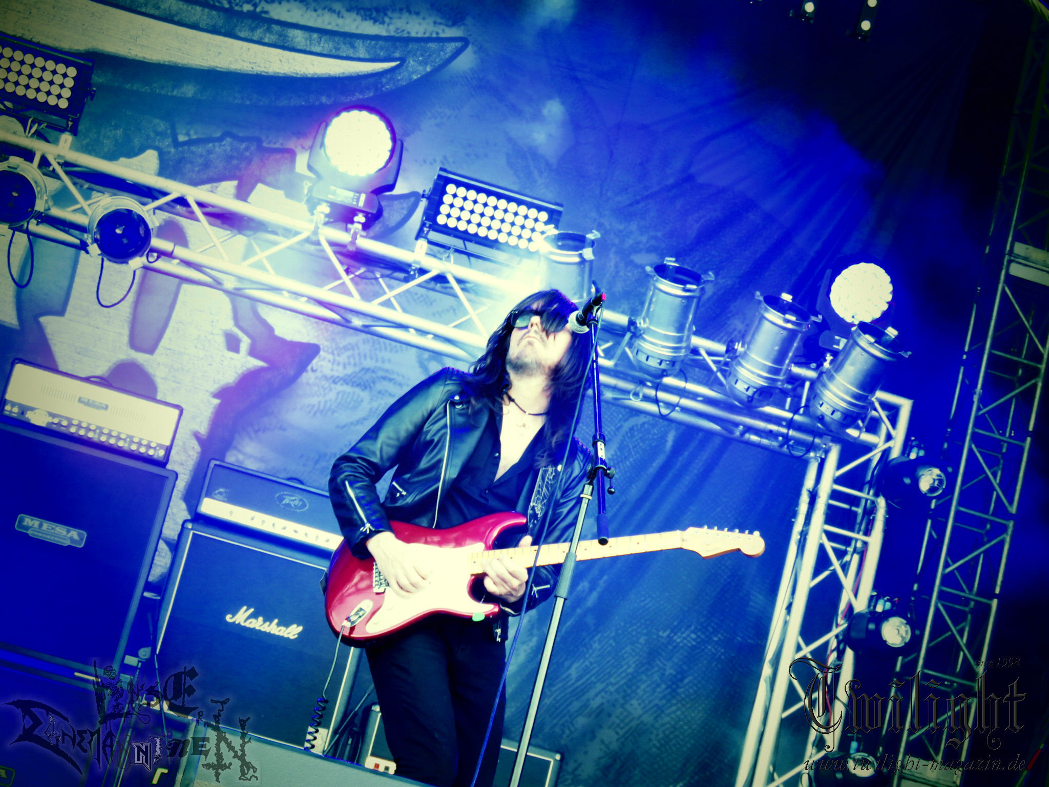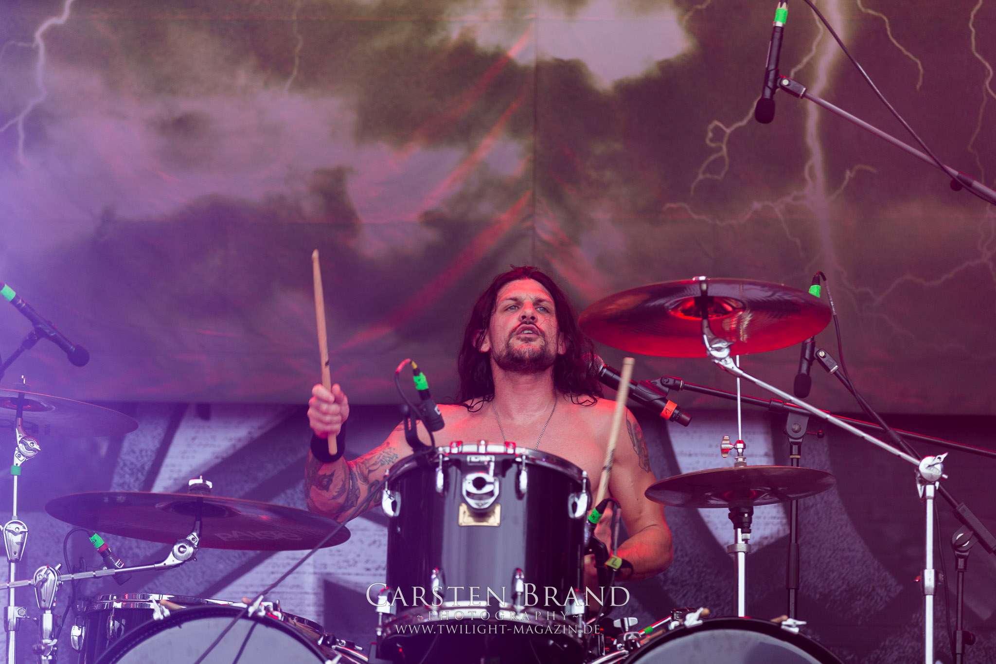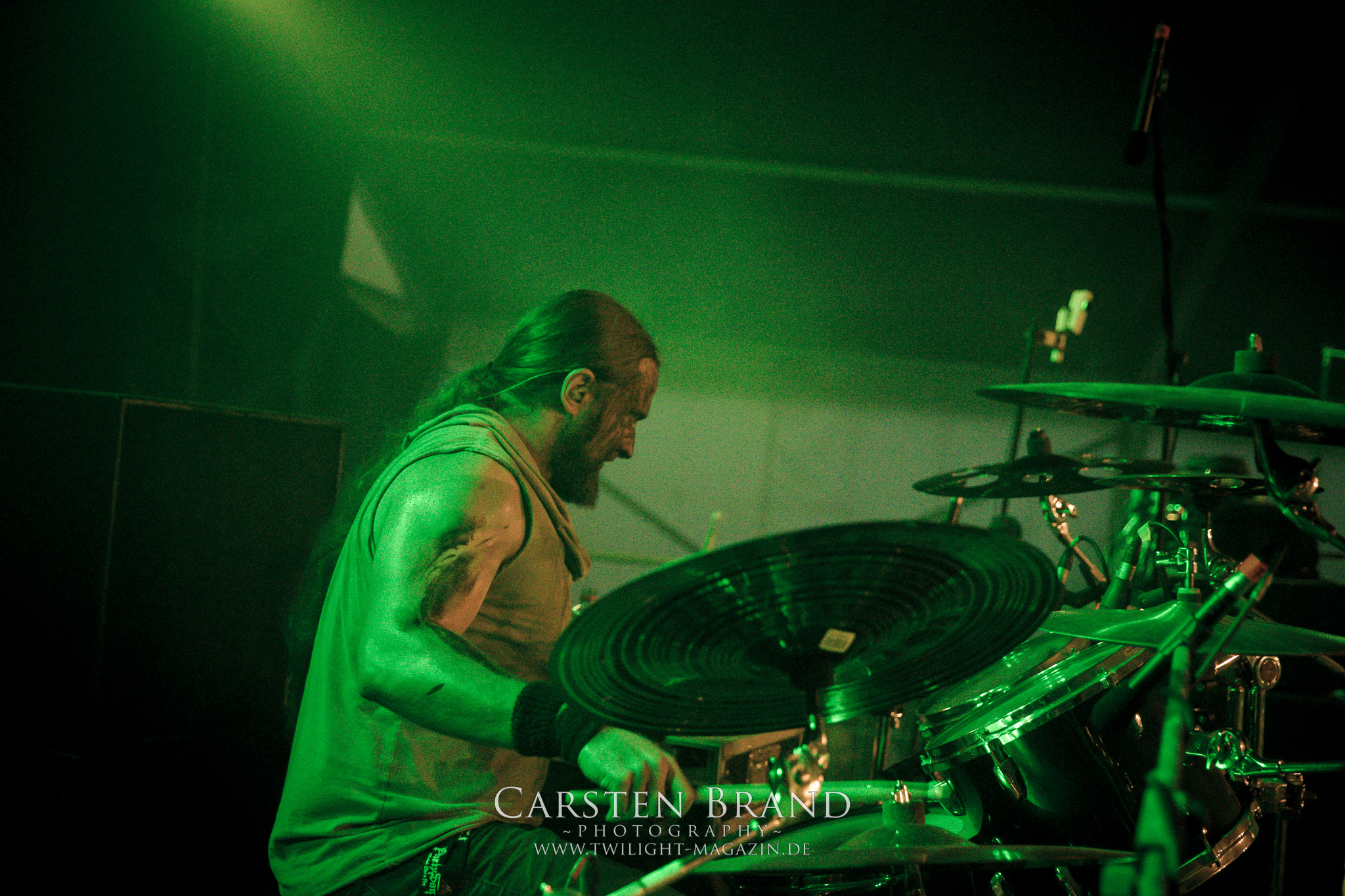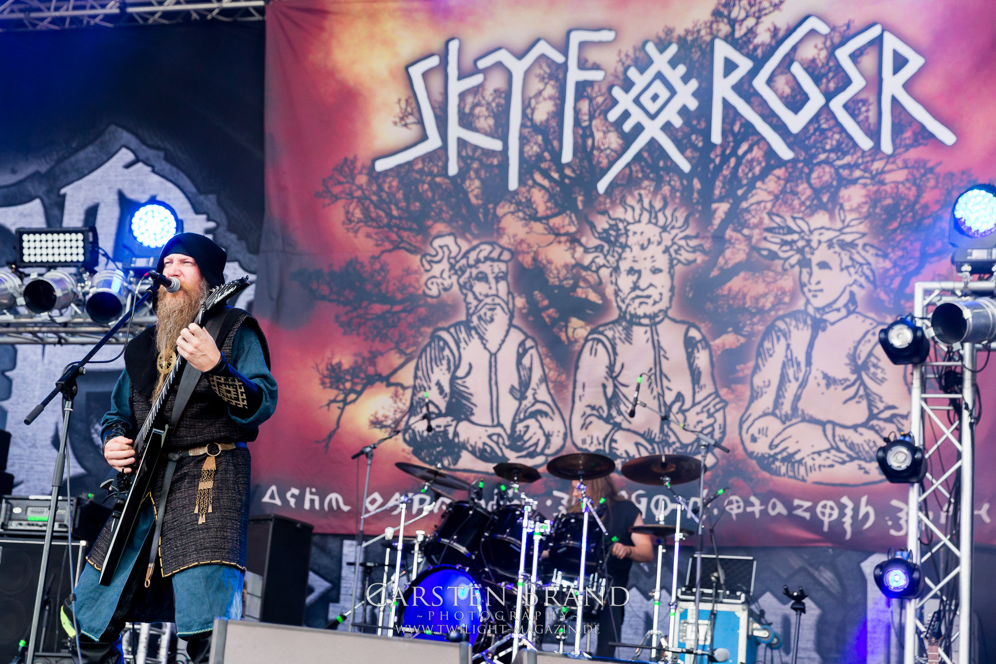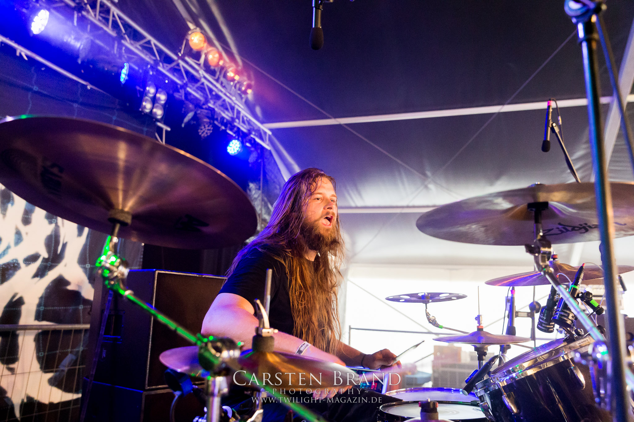 Weiter geht es mit den Schweden von RUNEMAGICK, die so gar nicht nach ihrer Heimatstadt Göteborg klingen. Niklas Rudolfsson hat seiner, einst als Sacramentum-Ableger gestarteten Formation, der erstmals in den späten Neunzigern von sich reden machte, vor zwei Jahren neues Leben eingehaucht. Das Quartett liefert ultra-brutalen, rohen und scheppernden Death-Doom, der sich ohne Rücksicht auf Verluste durch die Nackenmuskulatur in den Schädel fräst. Ohne dass ich die Band jemals intensiv verfolgt hätte, mit einer solch´ auf simpler Effizienz ausgelegten abgrundtief hässlichen Soundwalze lässt sich schonmal die Sonne verdunkeln. Ein beeindruckender Verweis auf den angekündigten Triumpfzug des Todes am späten Abend. (JD)