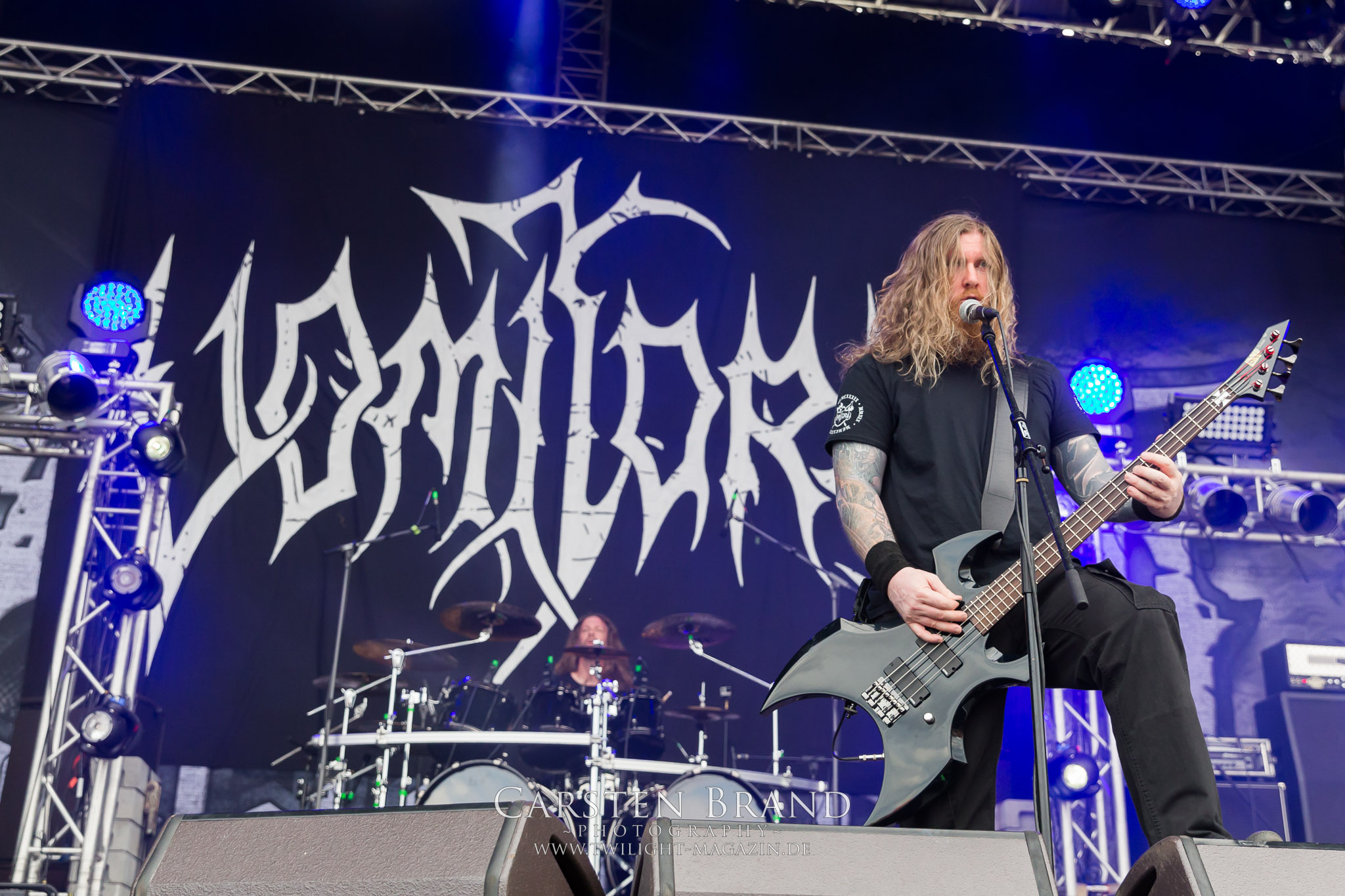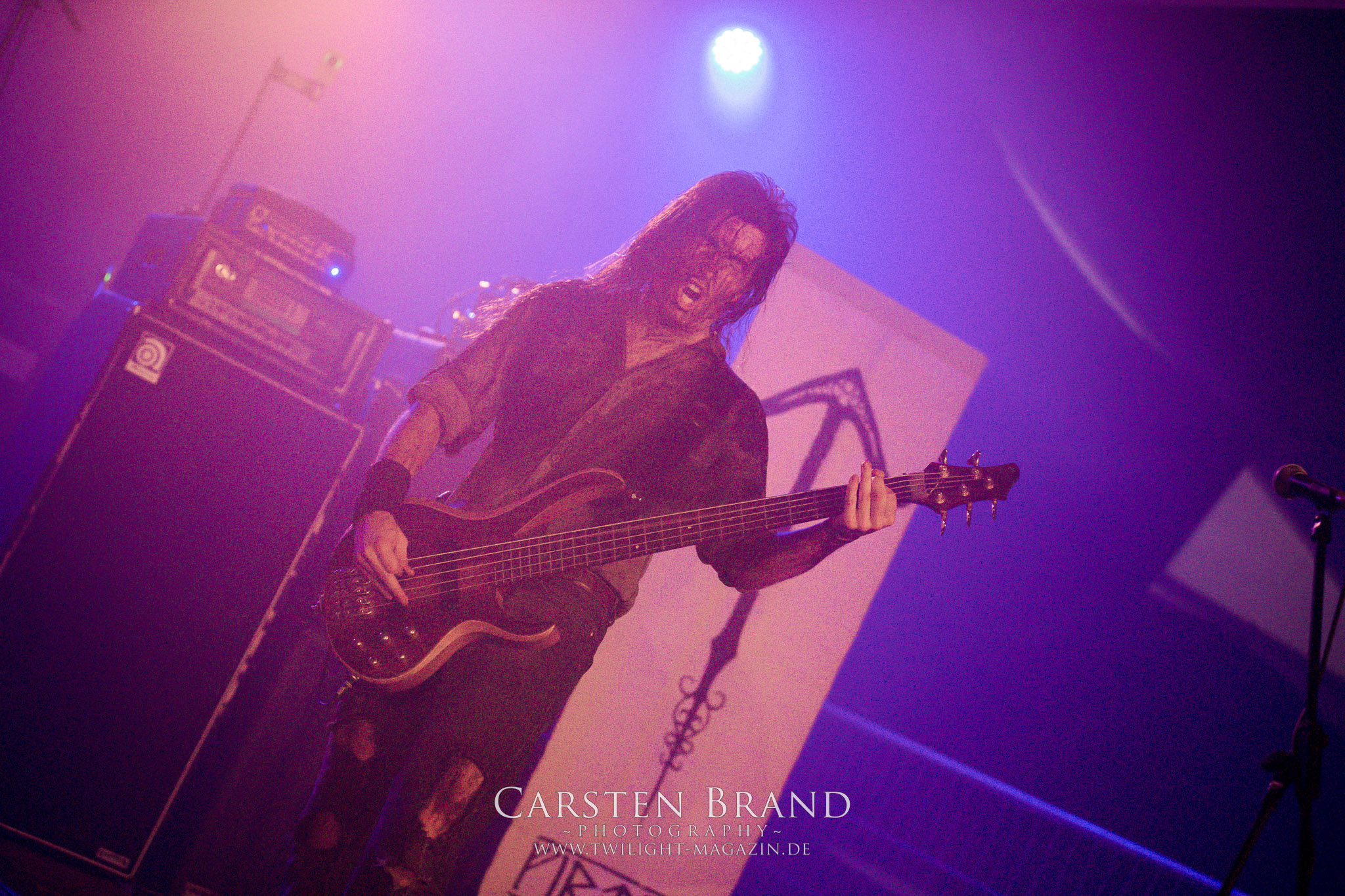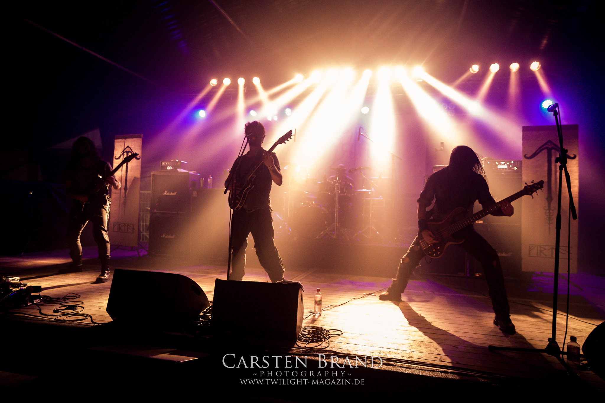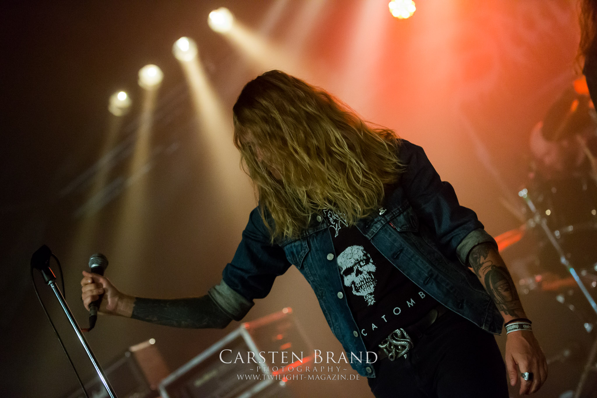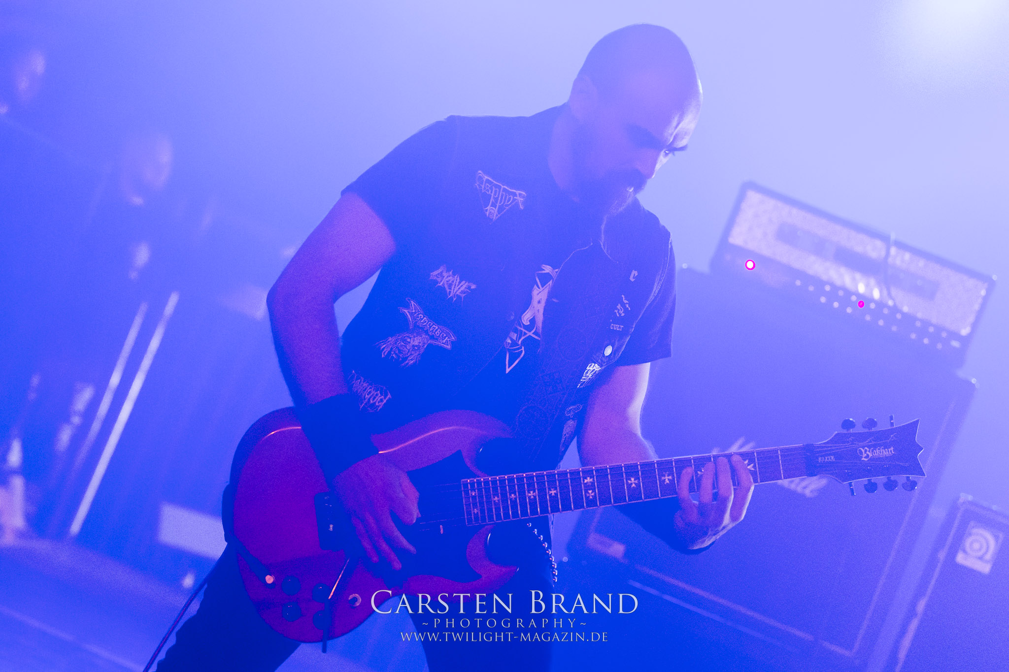Weiter geht es mit den Schweden von RUNEMAGICK, die so gar nicht nach ihrer Heimatstadt Göteborg klingen. Niklas Rudolfsson hat seiner, einst als Sacramentum-Ableger gestarteten Formation, der erstmals in den späten Neunzigern von sich reden machte, vor zwei Jahren neues Leben eingehaucht. Das Quartett liefert ultra-brutalen, rohen und scheppernden Death-Doom, der sich ohne Rücksicht auf Verluste durch die Nackenmuskulatur in den Schädel fräst. Ohne dass ich die Band jemals intensiv verfolgt hätte, mit einer solch´ auf simpler Effizienz ausgelegten abgrundtief hässlichen Soundwalze lässt sich schonmal die Sonne verdunkeln. Ein beeindruckender Verweis auf den angekündigten Triumpfzug des Todes am späten Abend. (JD)