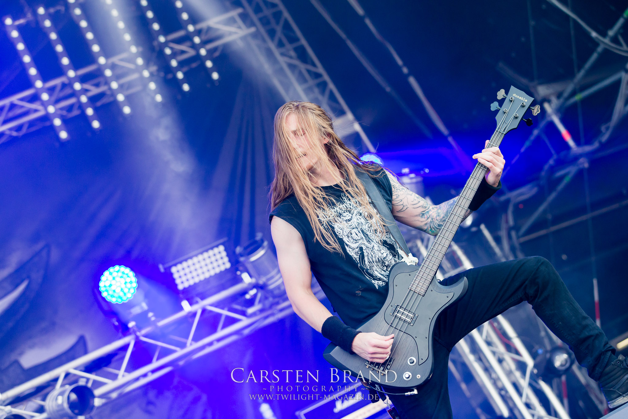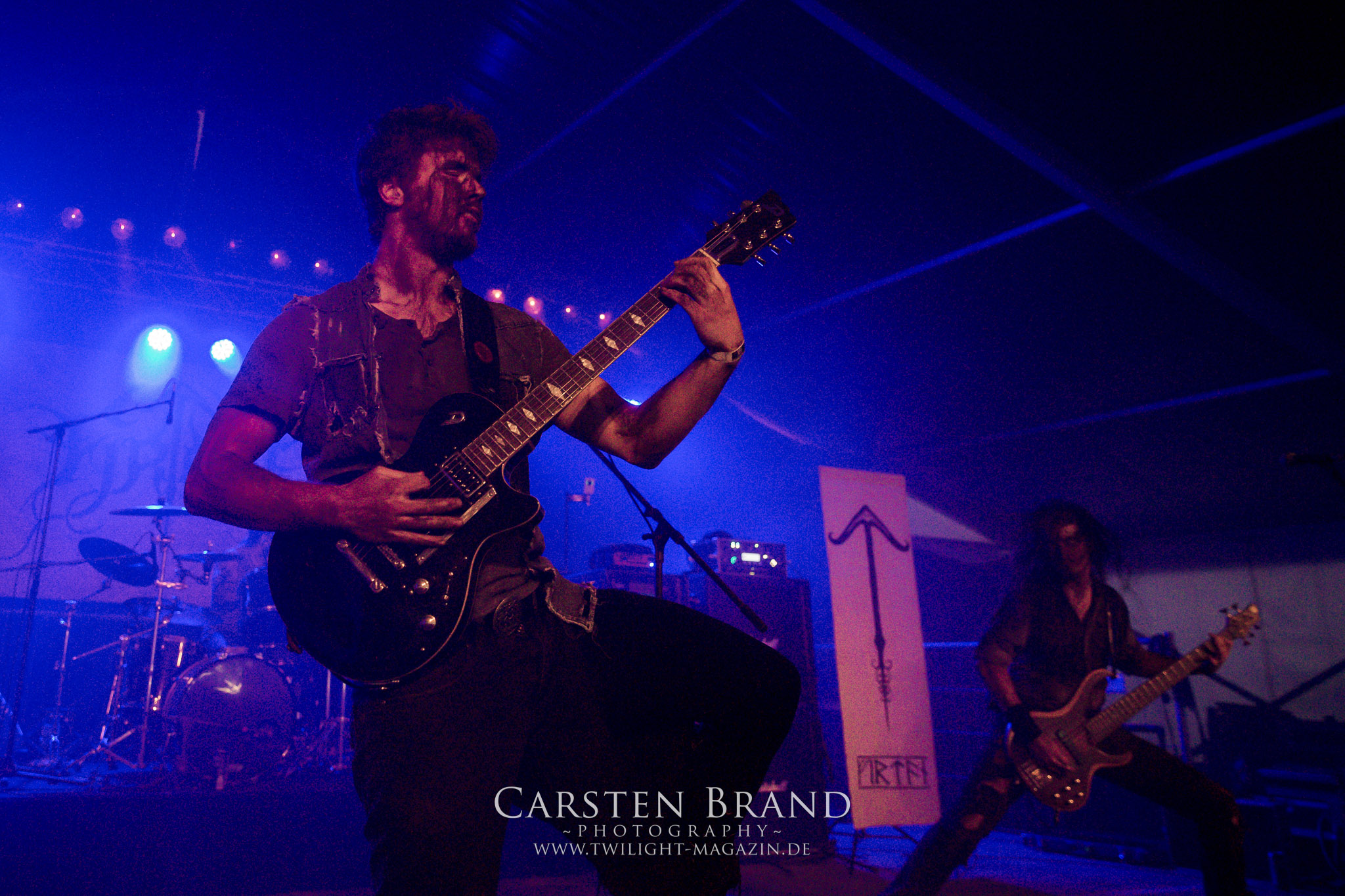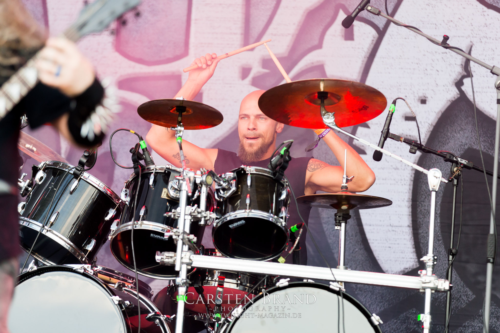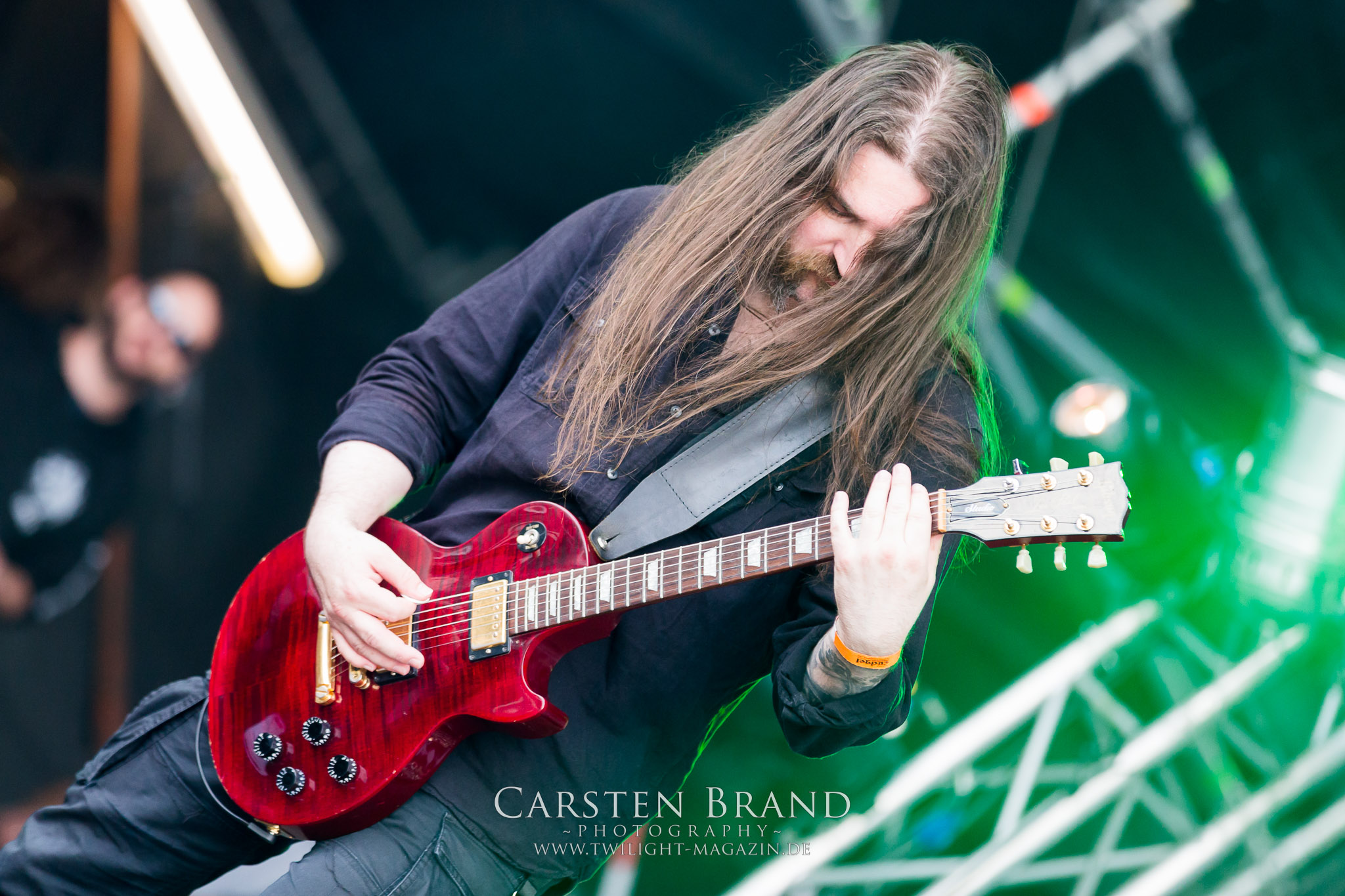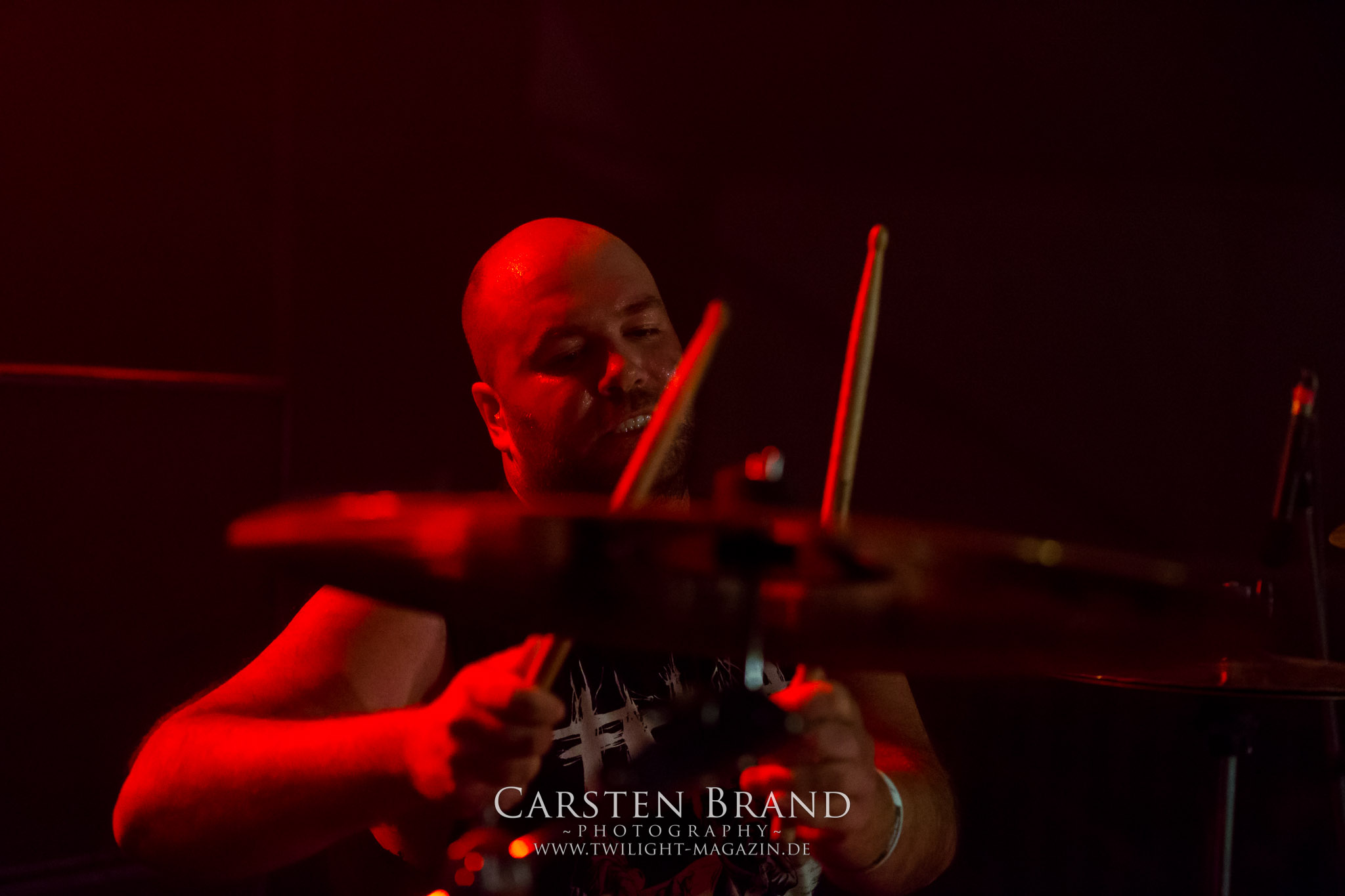Weiter geht es mit den Schweden von RUNEMAGICK, die so gar nicht nach ihrer Heimatstadt Göteborg klingen. Niklas Rudolfsson hat seiner, einst als Sacramentum-Ableger gestarteten Formation, der erstmals in den späten Neunzigern von sich reden machte, vor zwei Jahren neues Leben eingehaucht. Das Quartett liefert ultra-brutalen, rohen und scheppernden Death-Doom, der sich ohne Rücksicht auf Verluste durch die Nackenmuskulatur in den Schädel fräst. Ohne dass ich die Band jemals intensiv verfolgt hätte, mit einer solch´ auf simpler Effizienz ausgelegten abgrundtief hässlichen Soundwalze lässt sich schonmal die Sonne verdunkeln. Ein beeindruckender Verweis auf den angekündigten Triumpfzug des Todes am späten Abend. (JD)