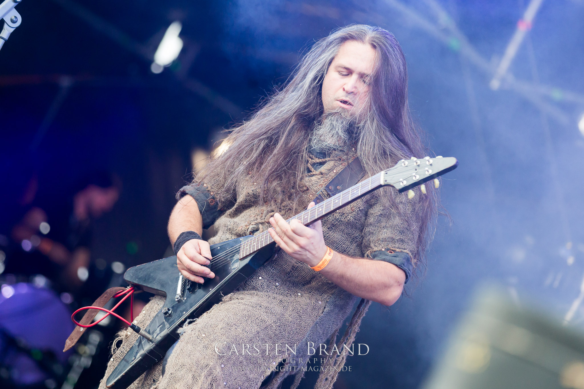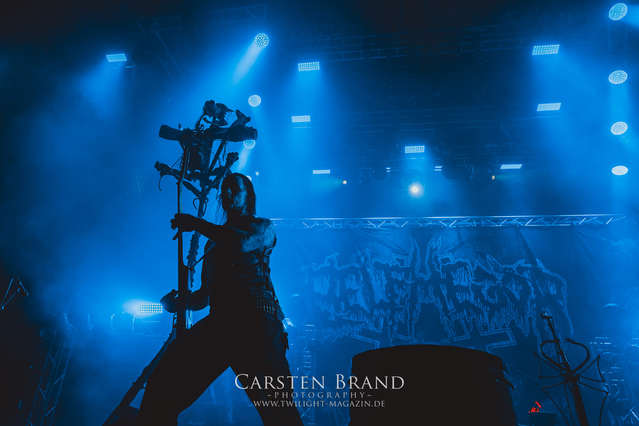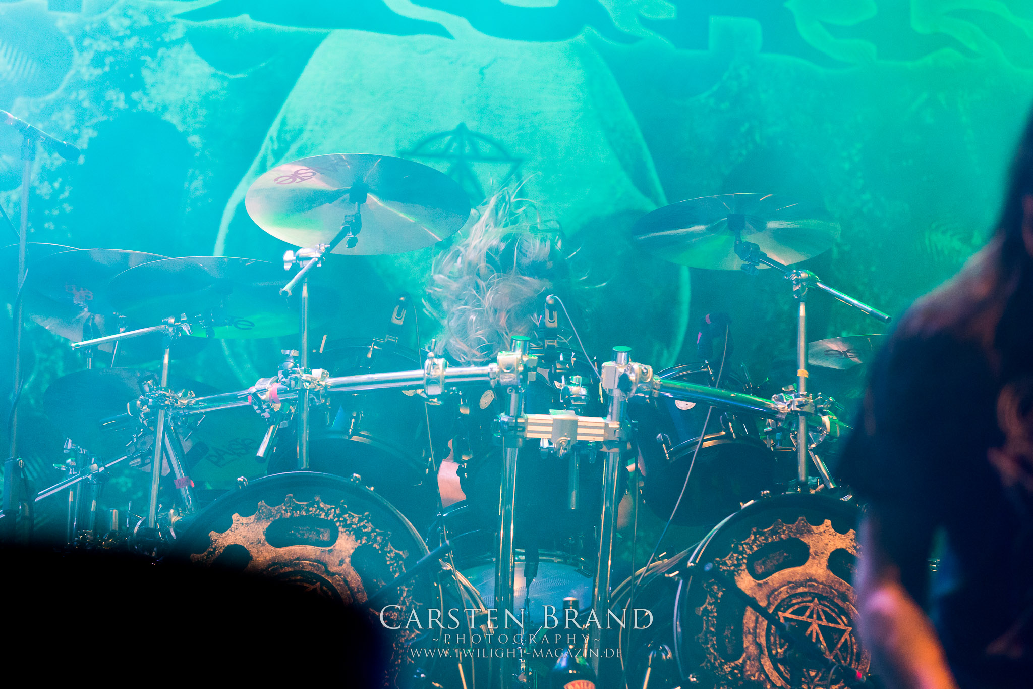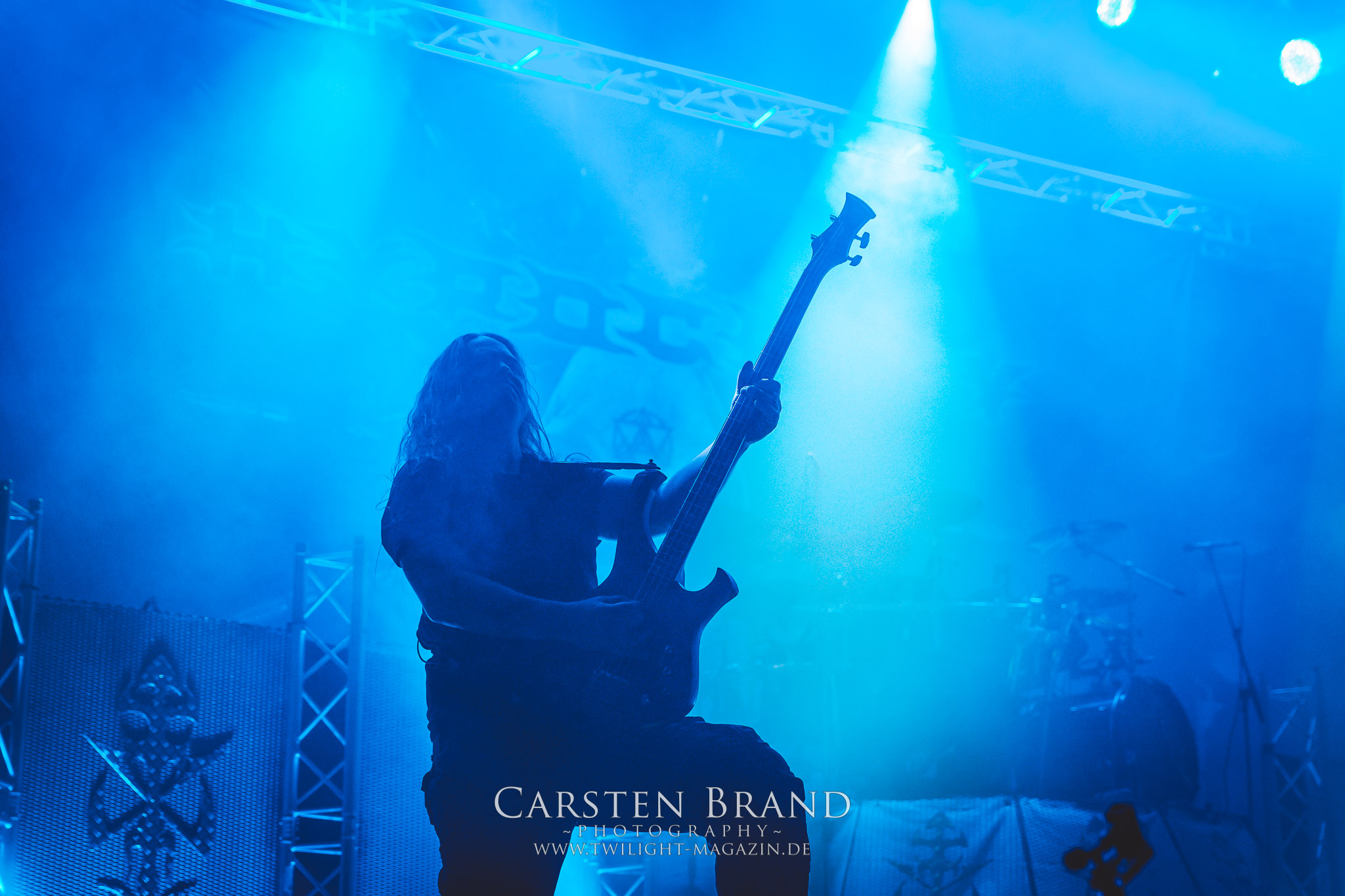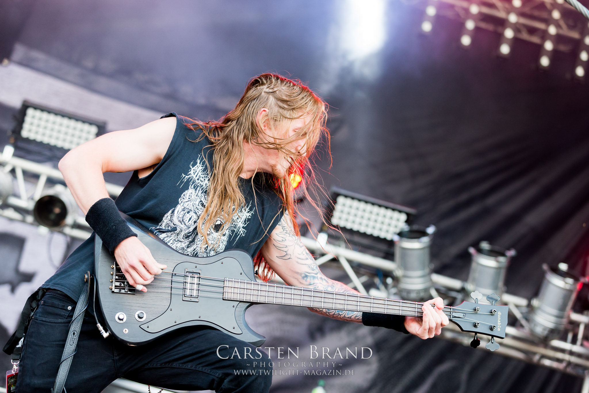 Weiter geht es mit den Schweden von RUNEMAGICK, die so gar nicht nach ihrer Heimatstadt Göteborg klingen. Niklas Rudolfsson hat seiner, einst als Sacramentum-Ableger gestarteten Formation, der erstmals in den späten Neunzigern von sich reden machte, vor zwei Jahren neues Leben eingehaucht. Das Quartett liefert ultra-brutalen, rohen und scheppernden Death-Doom, der sich ohne Rücksicht auf Verluste durch die Nackenmuskulatur in den Schädel fräst. Ohne dass ich die Band jemals intensiv verfolgt hätte, mit einer solch´ auf simpler Effizienz ausgelegten abgrundtief hässlichen Soundwalze lässt sich schonmal die Sonne verdunkeln. Ein beeindruckender Verweis auf den angekündigten Triumpfzug des Todes am späten Abend. (JD)