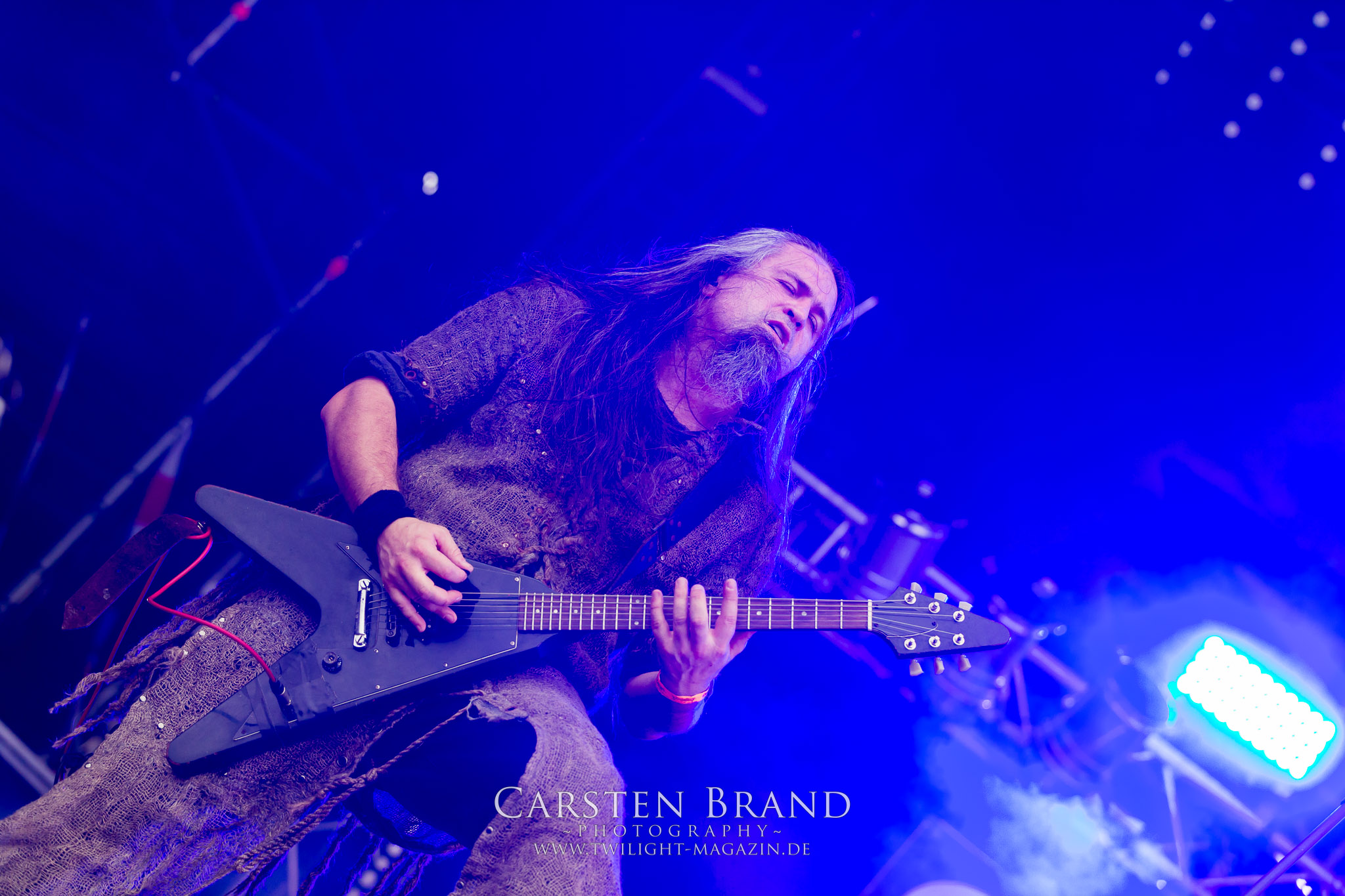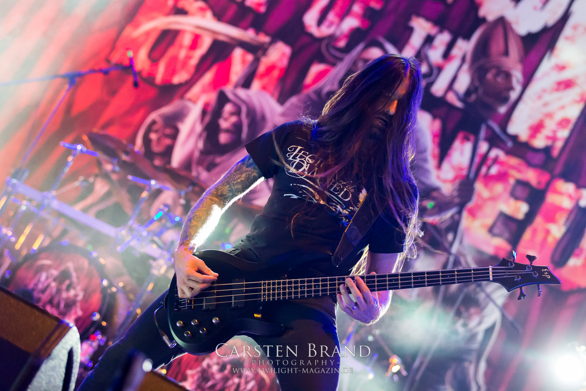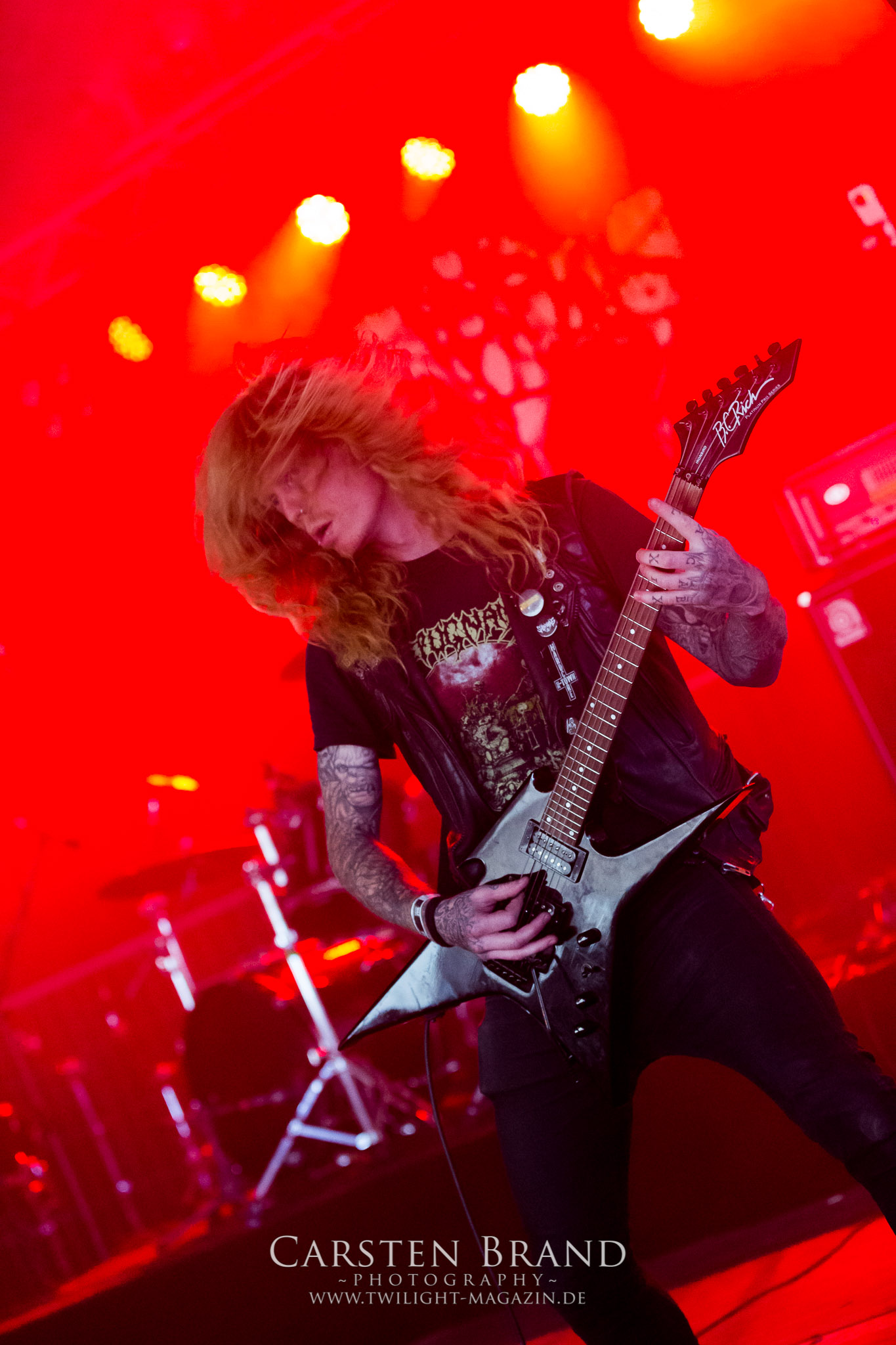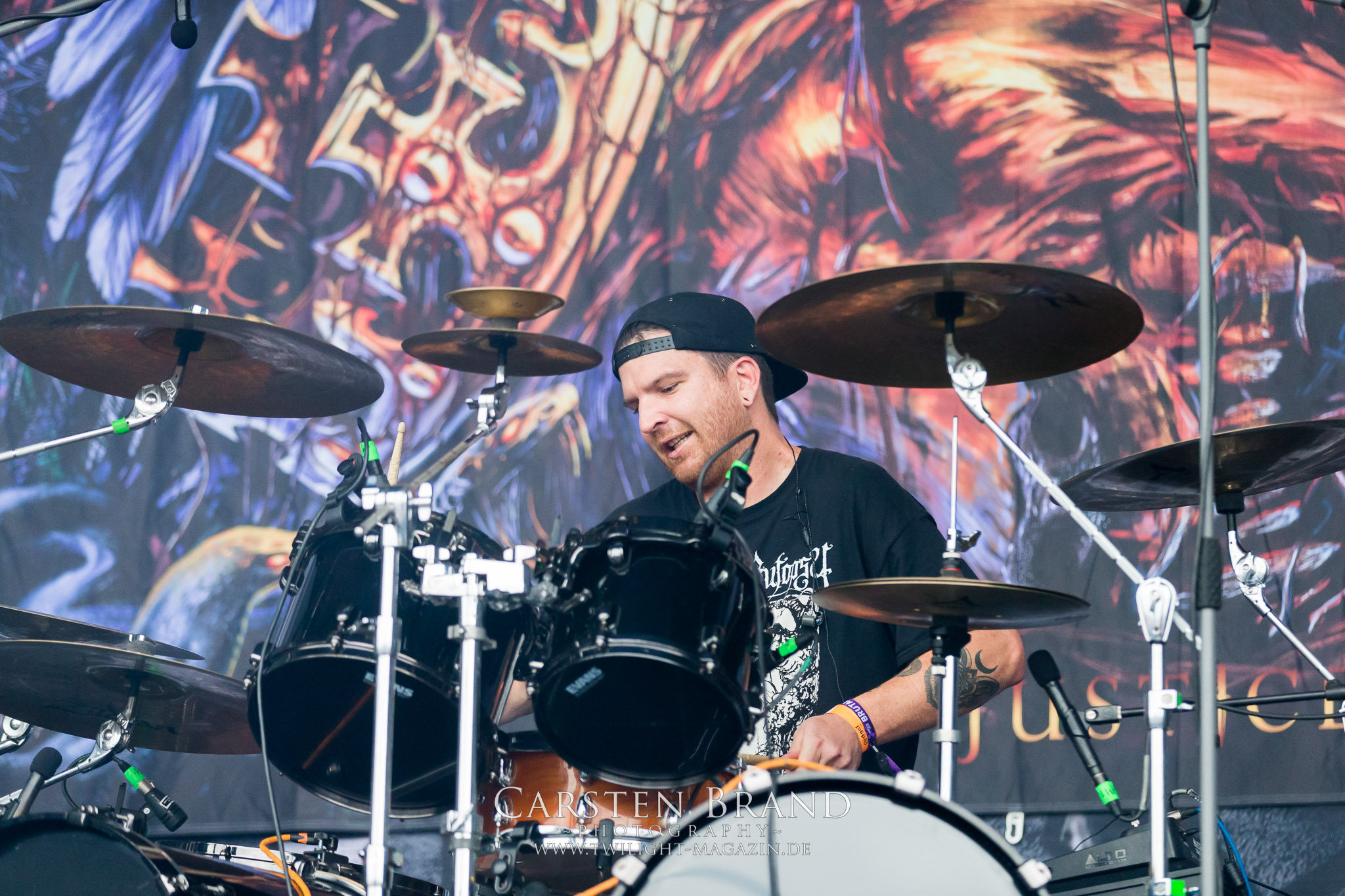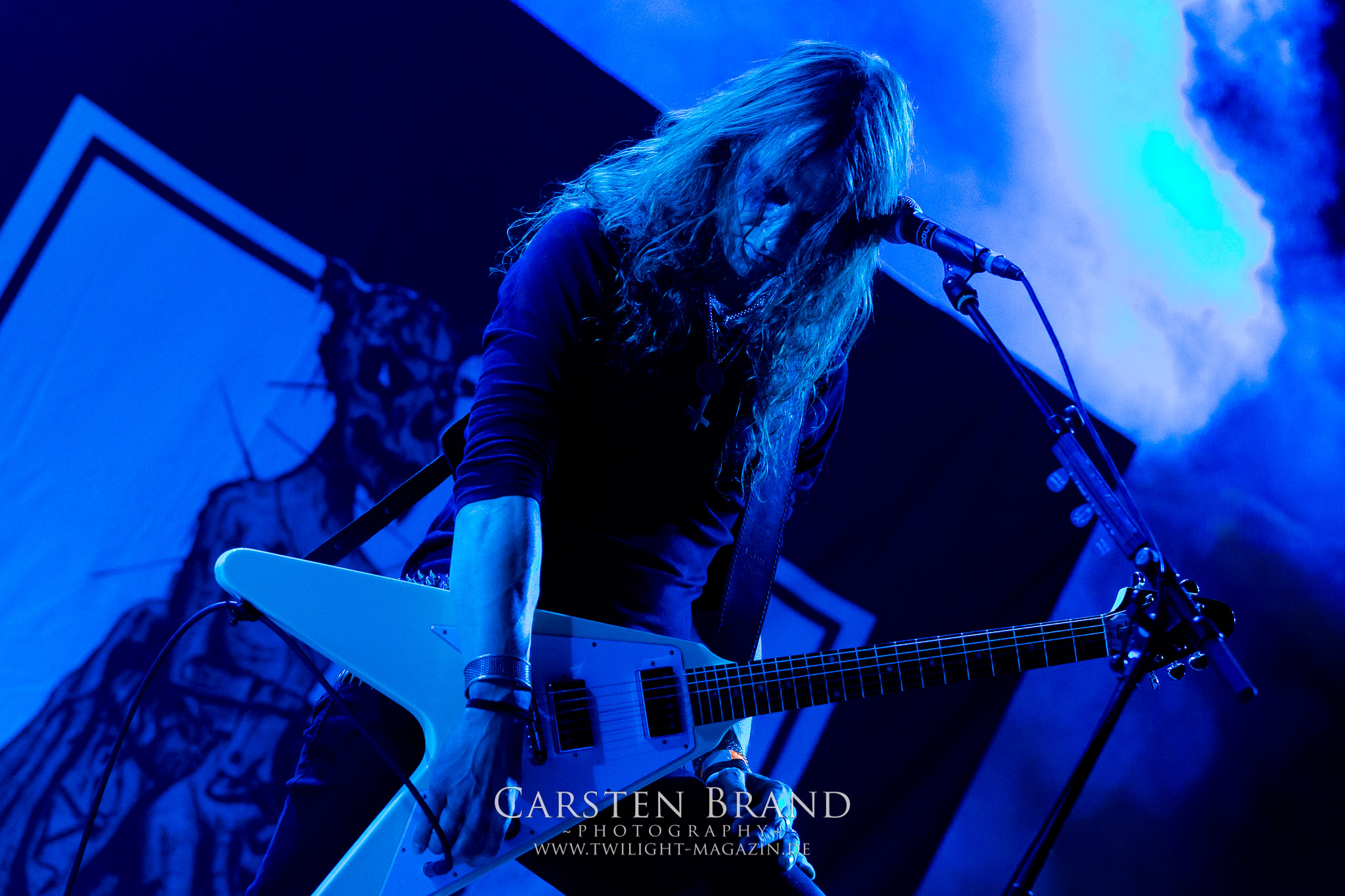 Weiter geht es mit den Schweden von RUNEMAGICK, die so gar nicht nach ihrer Heimatstadt Göteborg klingen. Niklas Rudolfsson hat seiner, einst als Sacramentum-Ableger gestarteten Formation, der erstmals in den späten Neunzigern von sich reden machte, vor zwei Jahren neues Leben eingehaucht. Das Quartett liefert ultra-brutalen, rohen und scheppernden Death-Doom, der sich ohne Rücksicht auf Verluste durch die Nackenmuskulatur in den Schädel fräst. Ohne dass ich die Band jemals intensiv verfolgt hätte, mit einer solch´ auf simpler Effizienz ausgelegten abgrundtief hässlichen Soundwalze lässt sich schonmal die Sonne verdunkeln. Ein beeindruckender Verweis auf den angekündigten Triumpfzug des Todes am späten Abend. (JD)