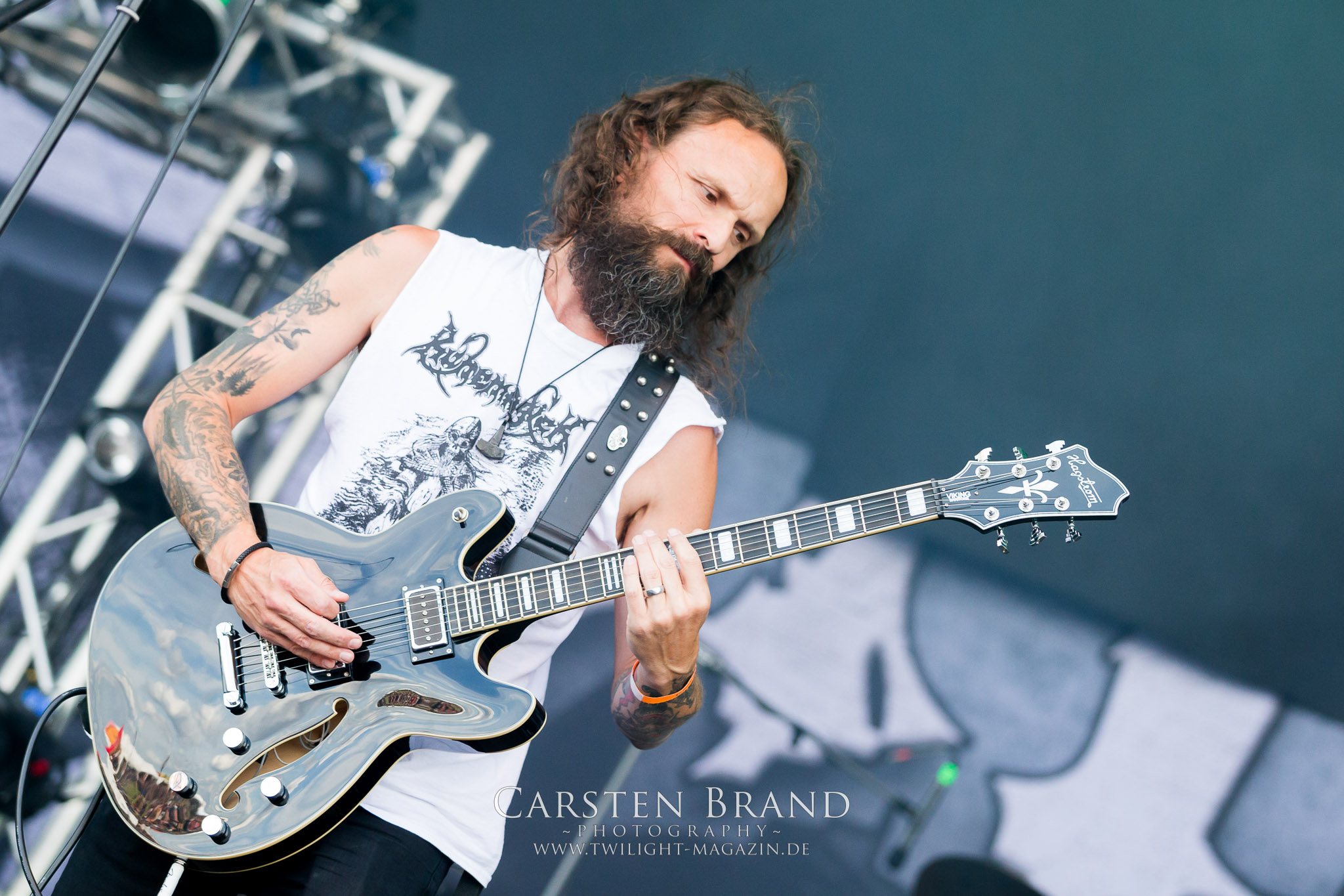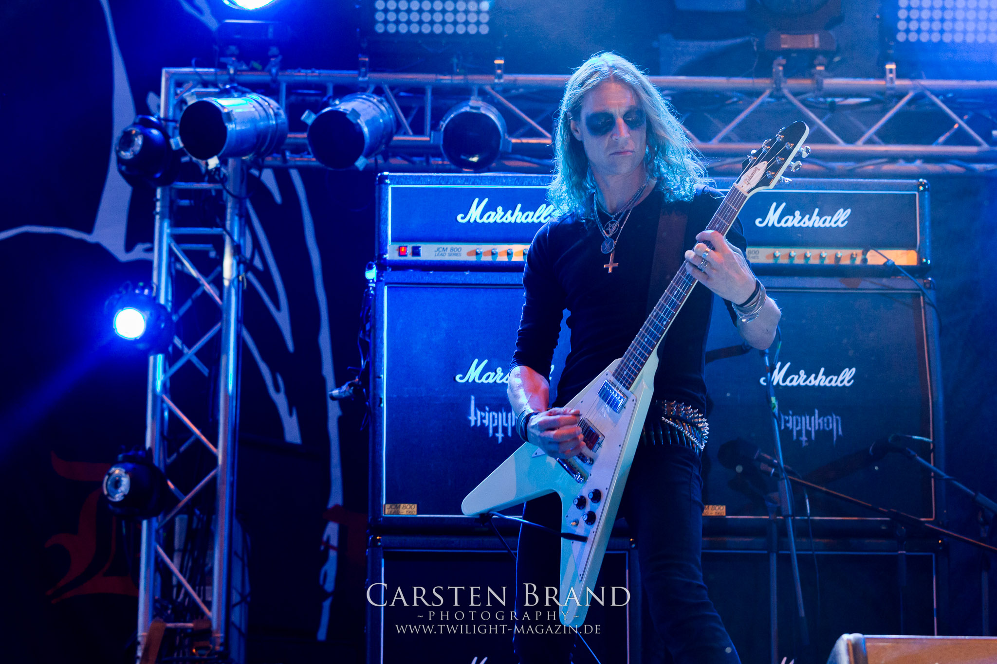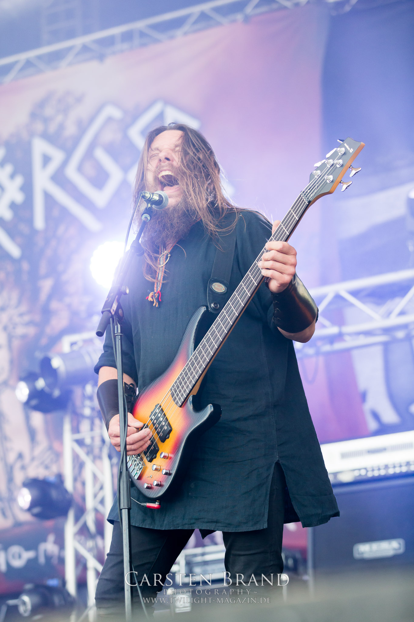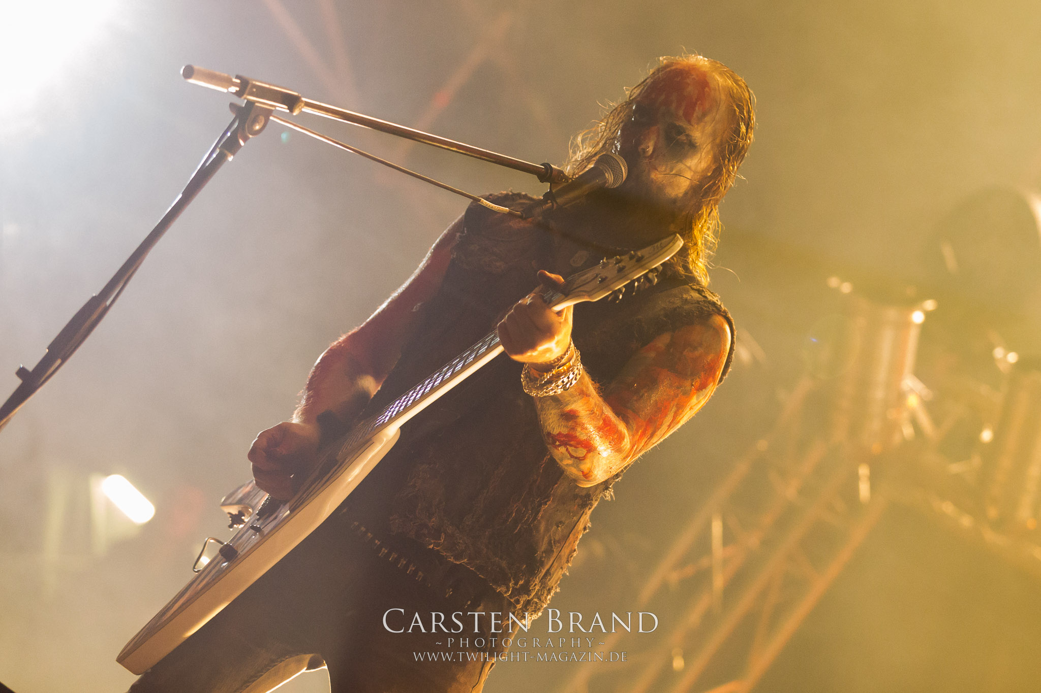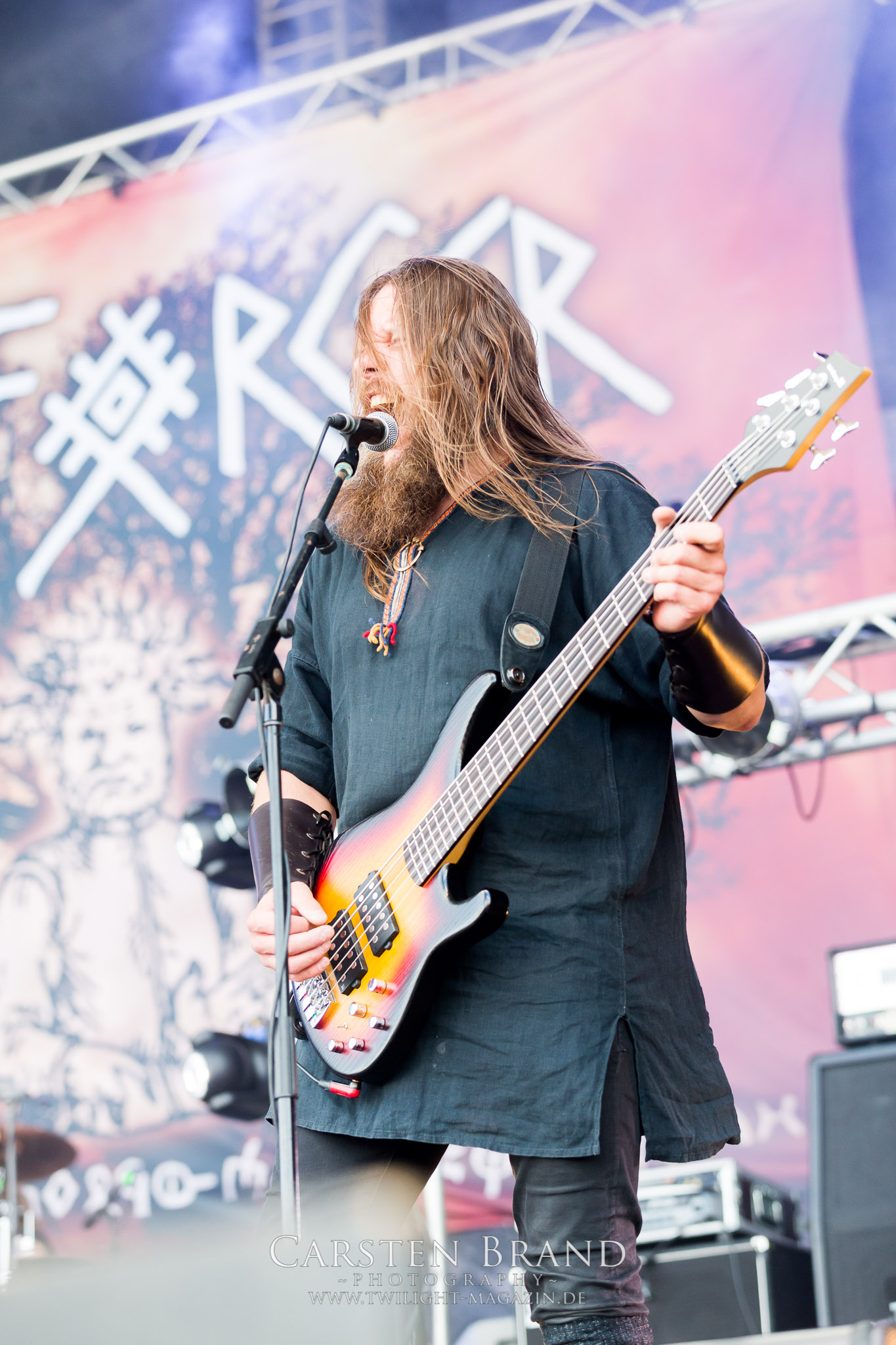 Weiter geht es mit den Schweden von RUNEMAGICK, die so gar nicht nach ihrer Heimatstadt Göteborg klingen. Niklas Rudolfsson hat seiner, einst als Sacramentum-Ableger gestarteten Formation, der erstmals in den späten Neunzigern von sich reden machte, vor zwei Jahren neues Leben eingehaucht. Das Quartett liefert ultra-brutalen, rohen und scheppernden Death-Doom, der sich ohne Rücksicht auf Verluste durch die Nackenmuskulatur in den Schädel fräst. Ohne dass ich die Band jemals intensiv verfolgt hätte, mit einer solch´ auf simpler Effizienz ausgelegten abgrundtief hässlichen Soundwalze lässt sich schonmal die Sonne verdunkeln. Ein beeindruckender Verweis auf den angekündigten Triumpfzug des Todes am späten Abend. (JD)