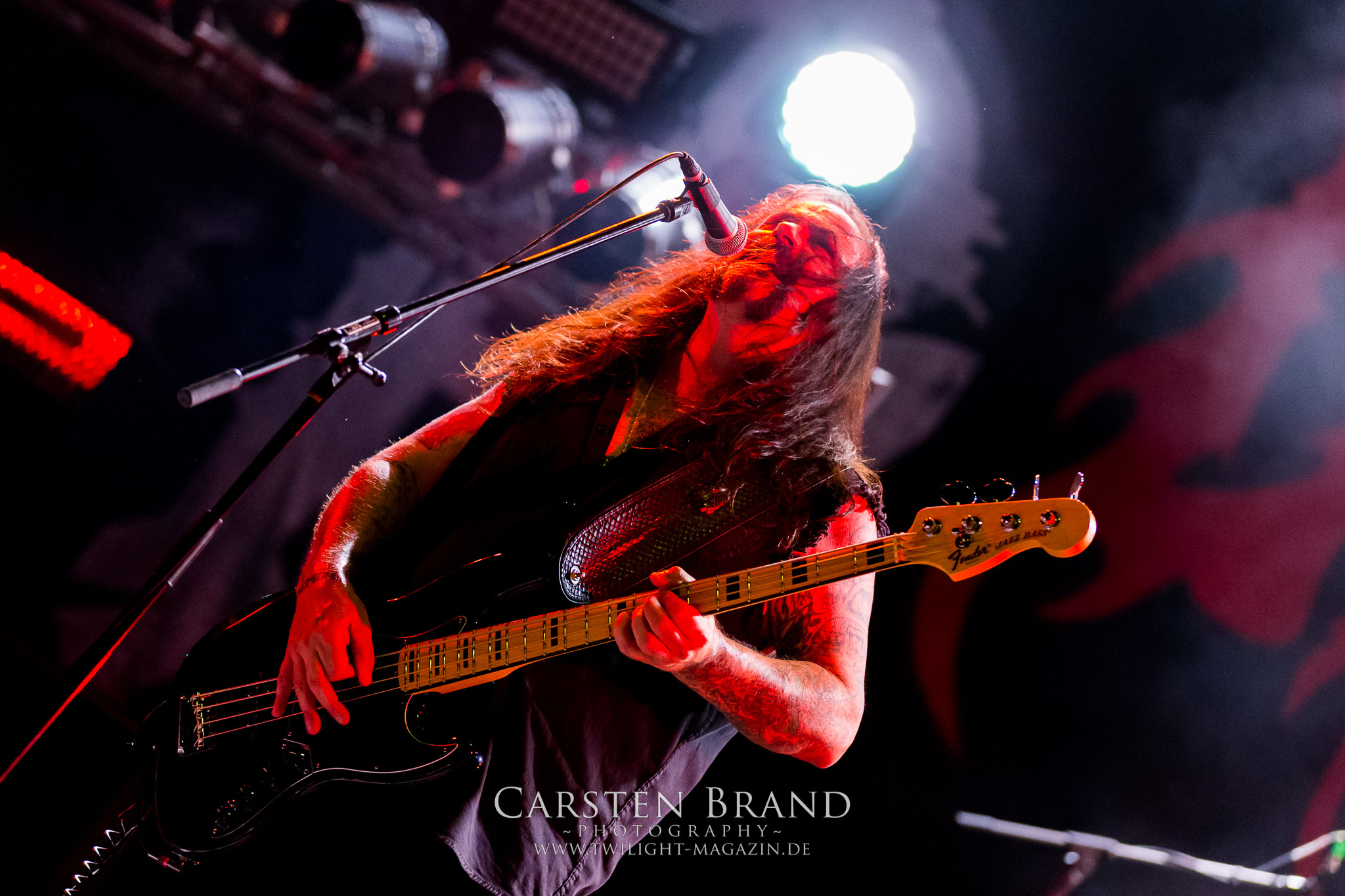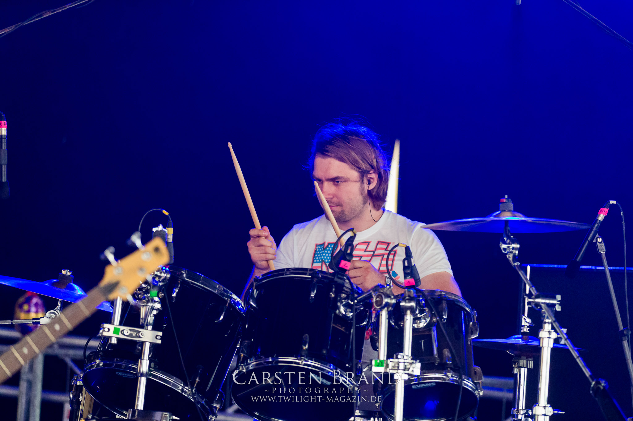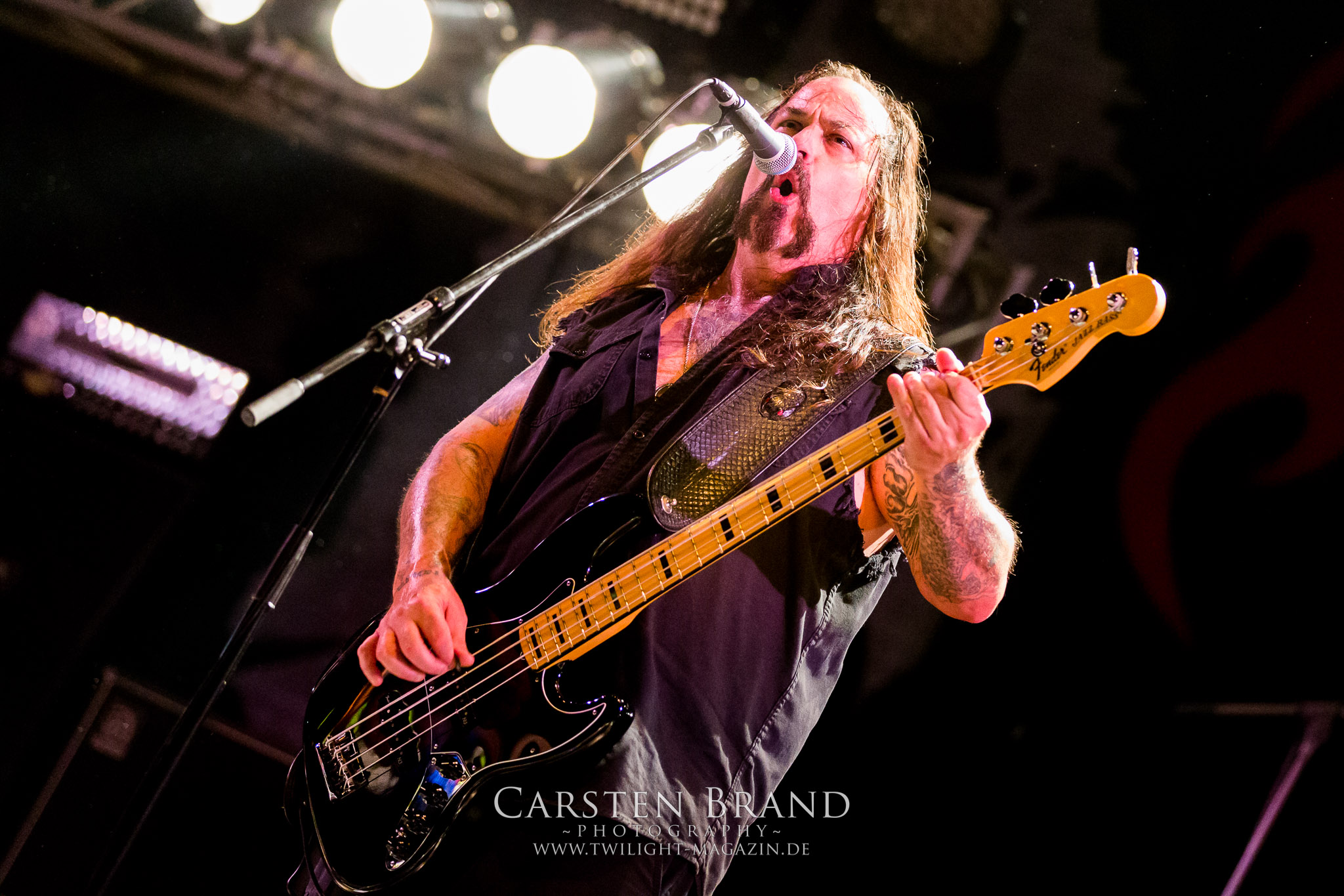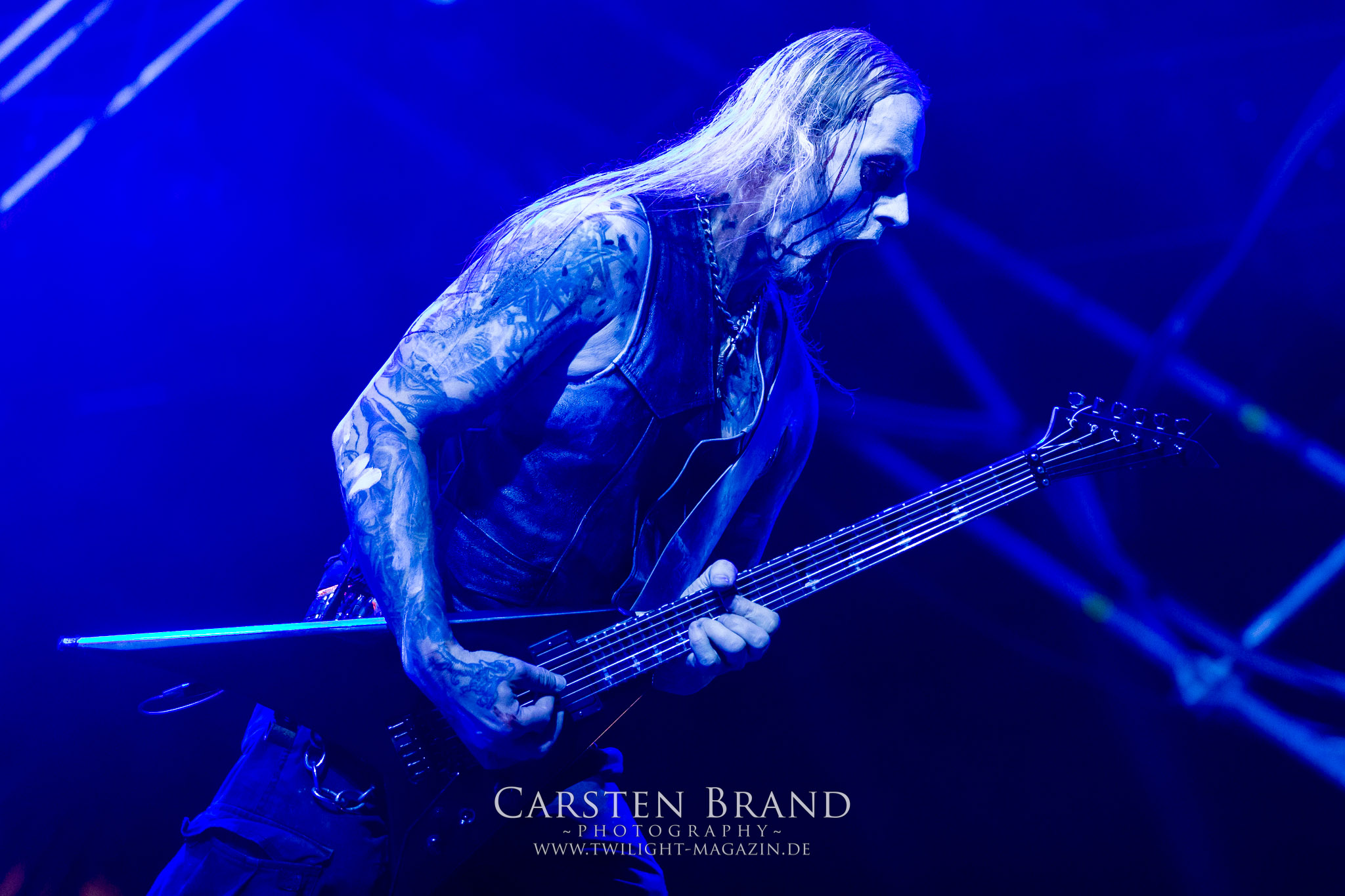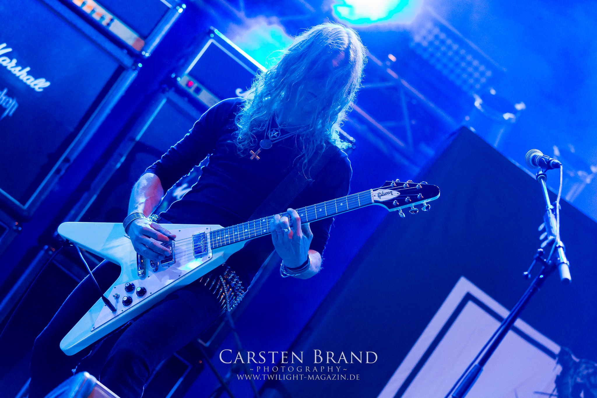 Weiter geht es mit den Schweden von RUNEMAGICK, die so gar nicht nach ihrer Heimatstadt Göteborg klingen. Niklas Rudolfsson hat seiner, einst als Sacramentum-Ableger gestarteten Formation, der erstmals in den späten Neunzigern von sich reden machte, vor zwei Jahren neues Leben eingehaucht. Das Quartett liefert ultra-brutalen, rohen und scheppernden Death-Doom, der sich ohne Rücksicht auf Verluste durch die Nackenmuskulatur in den Schädel fräst. Ohne dass ich die Band jemals intensiv verfolgt hätte, mit einer solch´ auf simpler Effizienz ausgelegten abgrundtief hässlichen Soundwalze lässt sich schonmal die Sonne verdunkeln. Ein beeindruckender Verweis auf den angekündigten Triumpfzug des Todes am späten Abend. (JD)
