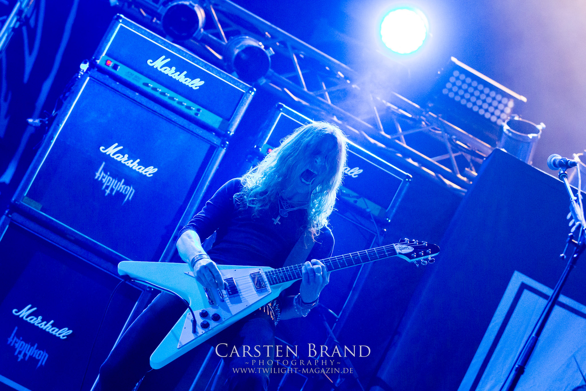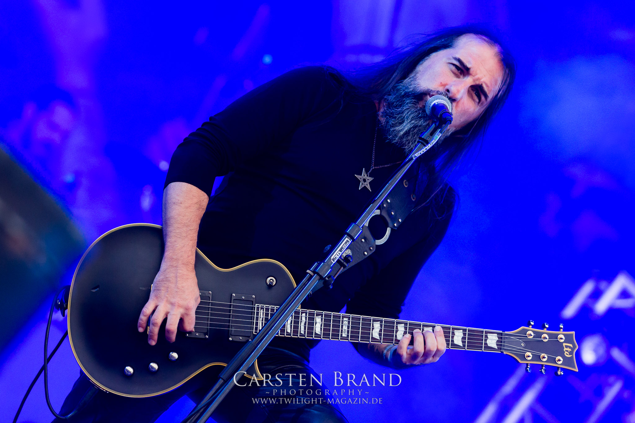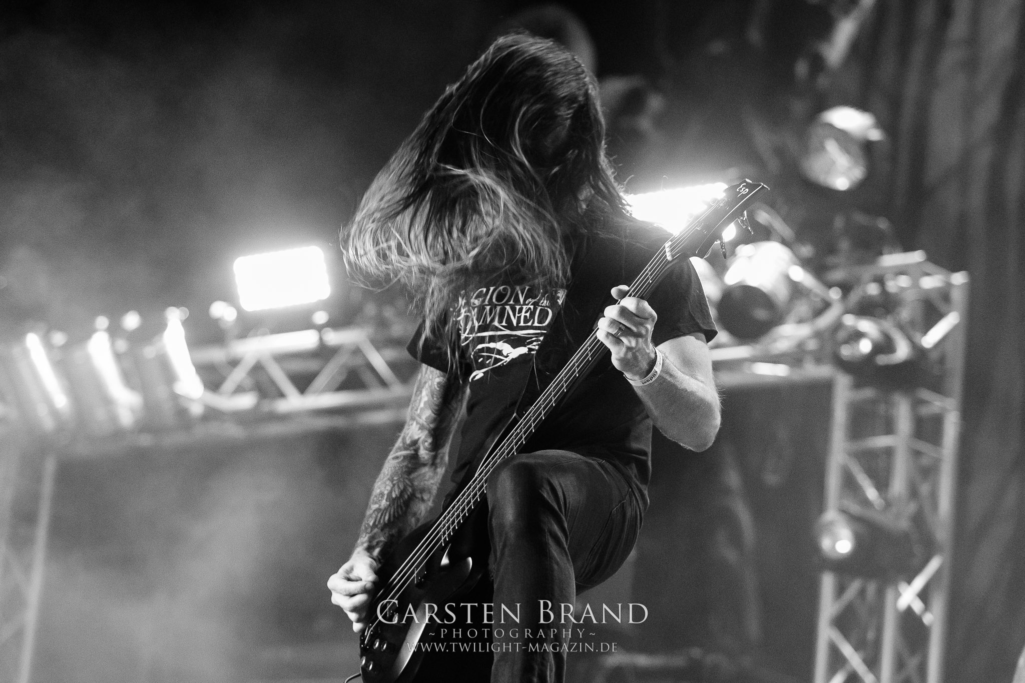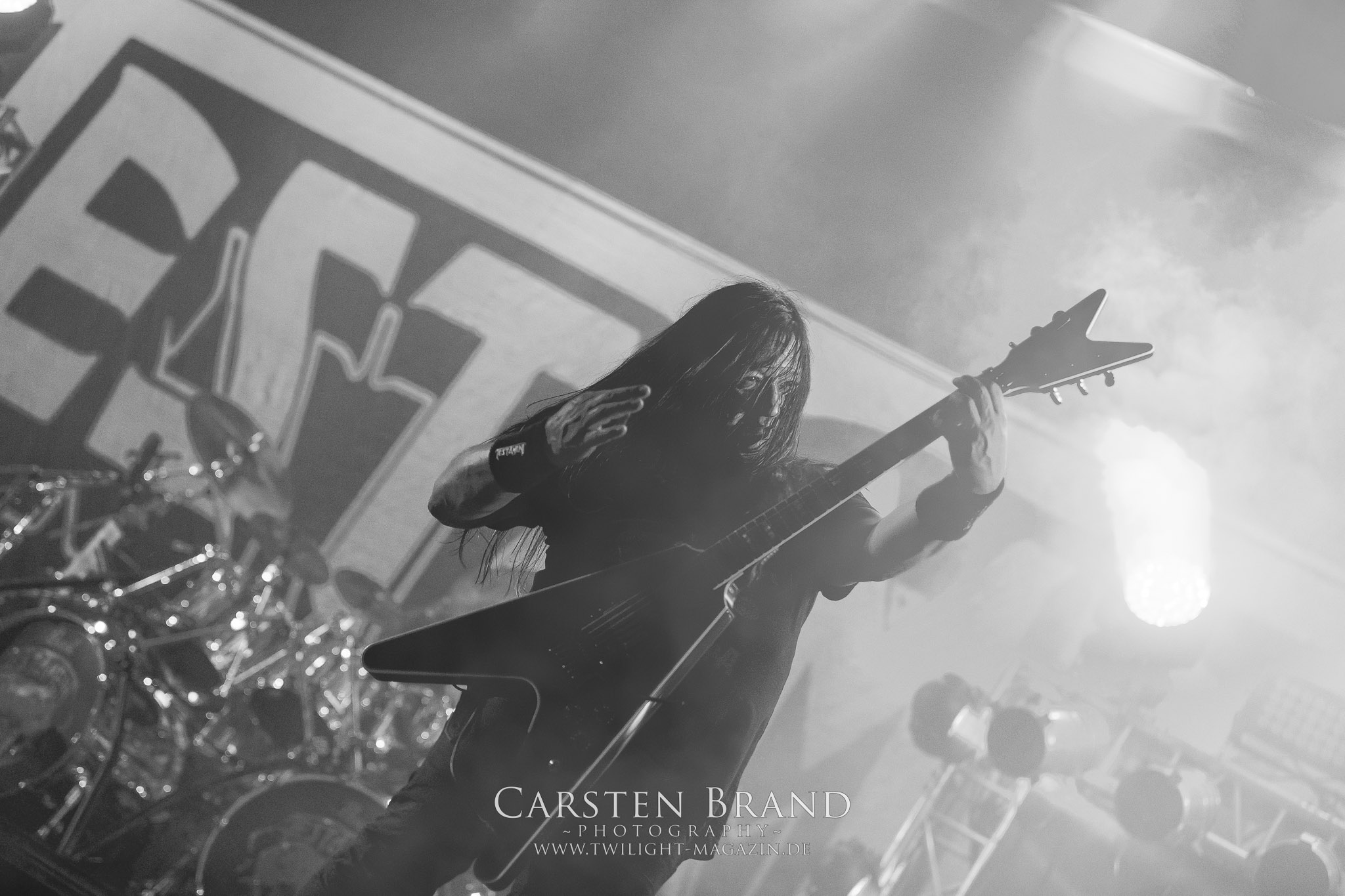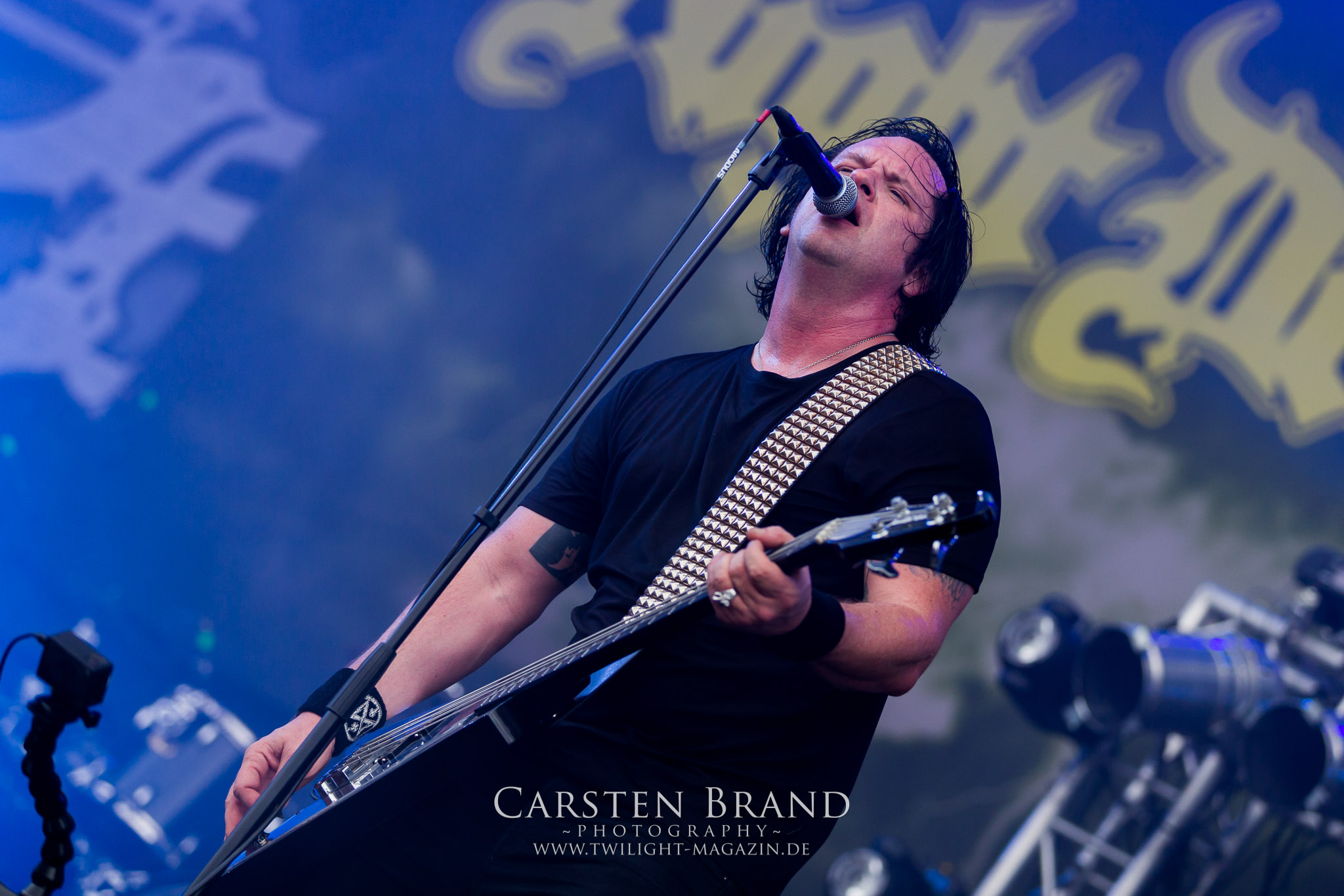 BELPHEGOR schwimmen seit ihrem letzten Album „Totenritual“ gerade auf einer Black Metal-Erfolgswelle und sind damit zu Recht der Donnerstags-Headliner. Diesem Status werden sie auch gerecht und haben eine ordentliche Feuershow aufgefahren. Leider wirkt diese etwas asynchron und nicht unbedingt auf die Songs abgestimmt. So gehen bei ruhigen Passagen mehrmals recht plötzlich mehrere Feuerfontänen los, die man eher in den Blastbeat-Passagen erwartet hätte. Insgesamt ist die Show etwas basslastig, macht aber mit dem Fokus auf die neueren Werke trotzdem keine Gefangenen. Allerdings verschwindet die Band dann recht frühzeitig von der Bühne, obwohl noch Zeit für einen weiteren Klassiker gewesen wäre. (MS) Ich muss mich an dieser Stelle einmal mehr outen, dass neben Celtic Frost auch deren Vorläufer Hellhammer während und auch nach meiner intensiven Metal-Sozialisation an mir vorbei gegangen sind und die Musik von Tom G. Warrior und seinen Mannen nicht einmal ansatzweise die Bedeutung für mich hat, wie für die meisten Die-Hards, die die Hellhammer-Darbietung vermutlich seit Jahrzehnten erfleht haben. Doch wo, wenn nicht auf´s PARTY.SAN METAL OPEN AIR gehört dieser Gig, haben die Eidgenossen doch locker drei Generationen von Extrem-Metalbands, die sich seit 25 Jahren auf dem Festival die Klinke in die Hand geben, mehr oder weniger stark beeinflusst. Auch wenn ich die historische Tragweite emotional nicht in Gänze nachfühlen kann, so komme ich objektiv mit dem Material und der Darbietung wesentlich besser klar, als mit Celtic Frost bzw. Tryptikon. Ein Anbeter von Hellhammer, Celtic Frost & Co. werde ich in diesem Leben aber dennoch nicht mehr. Da gehen bei HYPOCRISY die Gäule zu noch späterer Stunde wesentlich mehr mit mir durch. (JD) Die alten Recken HYPOCRISY rund um Mastermind Peter Tägtgren legen keinen Wert auf komplexe Showelemente und kommen ohne Feuereffekte aus. Während „Fractured Millennium“ noch etwas holprig aus den Boxen kommt, ist bei der zu erwarteten Zugabe „Roswell 47“ die Hütte auch ohne Flammenunterstützung ordentlich am Brennen. (MS)