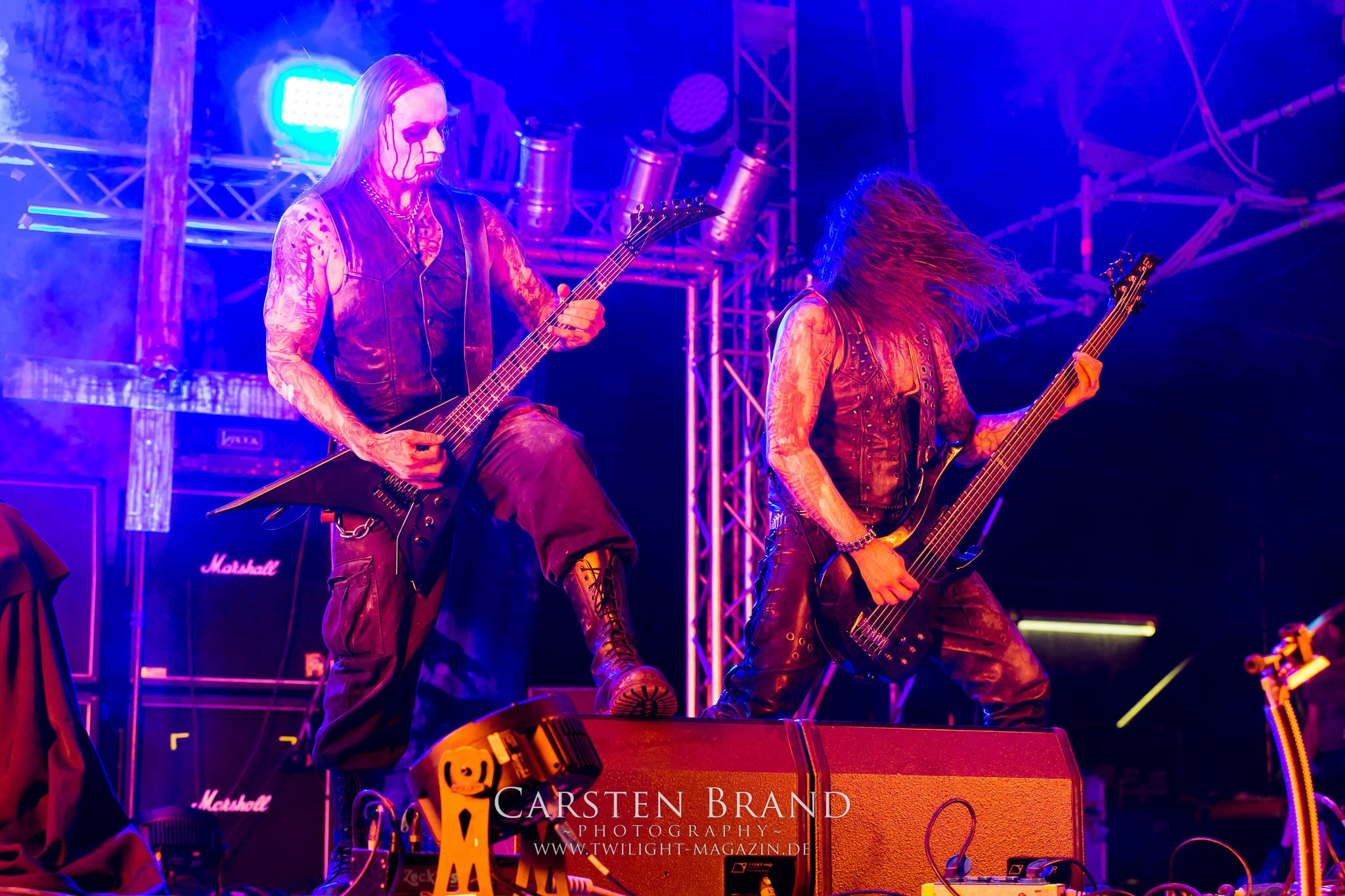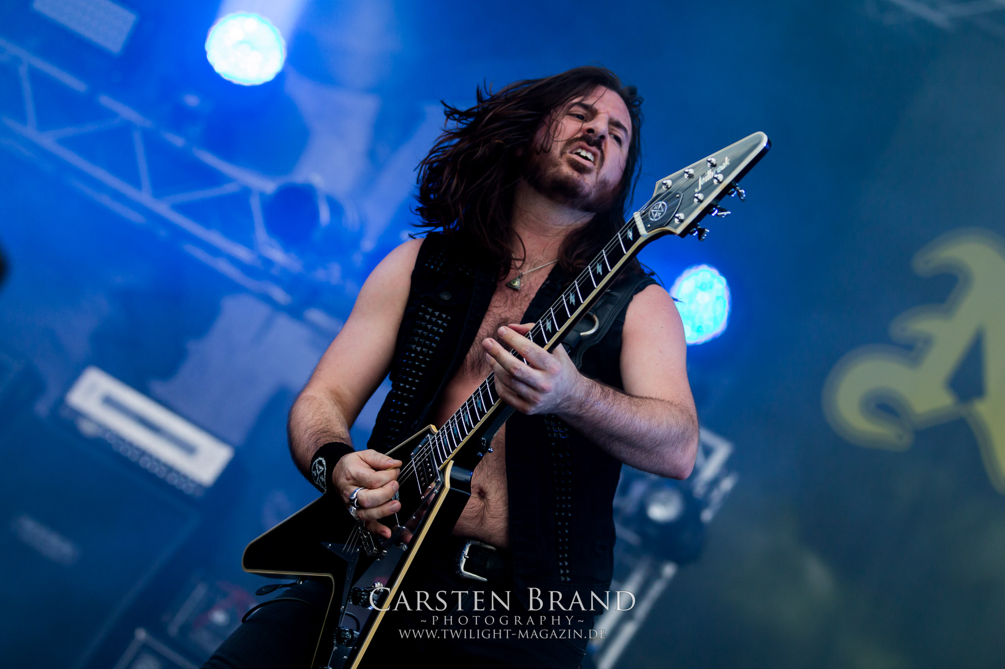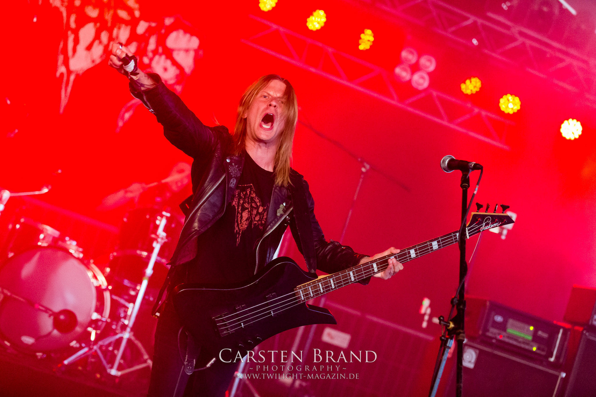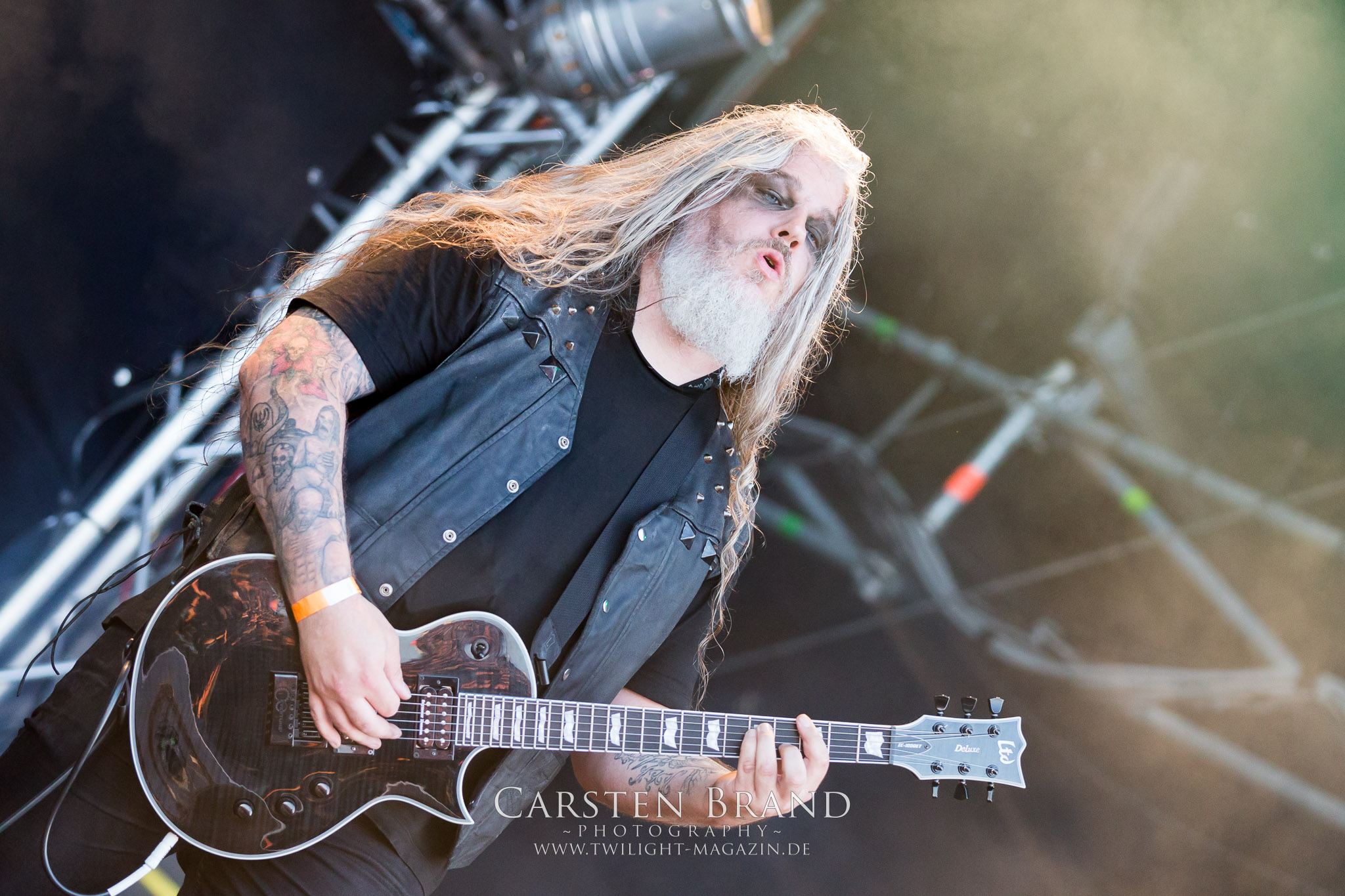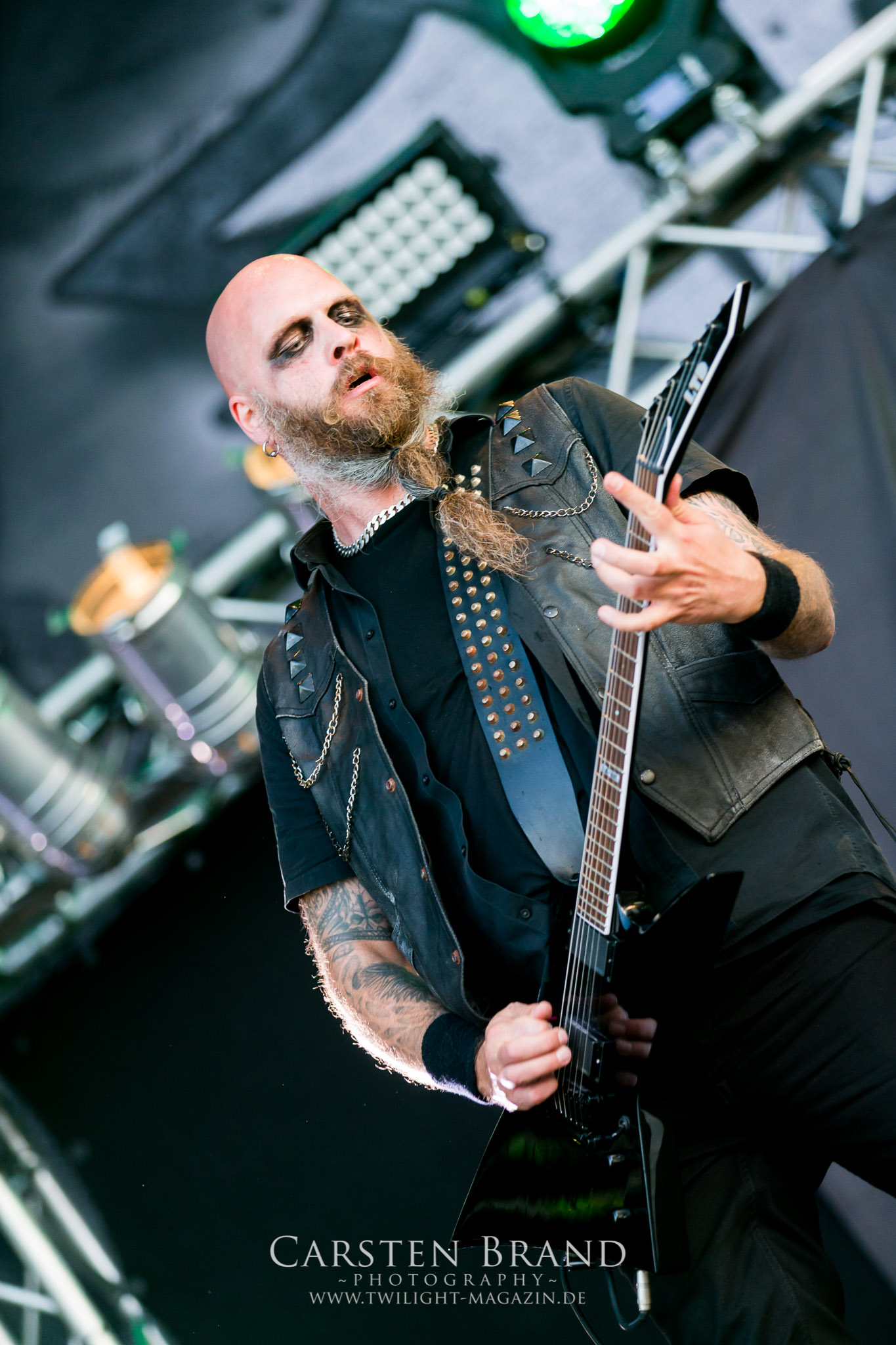 ARKONA aus dem tiefsten Osten sieht man inzwischen gefühlt auf jedem europäischen Festival der härteren Gangart. Vielleicht liegt es an der aufwendigen Bühnenshow mit altertümlichen Instrumenten, Tierfell und Knochenresteverwertung, vielleicht aber auch an der energetischen Sängerin Masha. Auf jeden Fall ist der Bühnenvorplatz immer gut gefüllt und es wird ordentlich mitgesungen, selbst wenn man des Russischen nicht mächtig ist. (MS) NIGHT DEMON machen wie schon vor zwei Jahren eindrucksvoll klar, dass sie als klassische Heavy Metal – Band alles andere als bloßes Beiwerk auf dem Billing sind. Wie schon 2017 funktionieren Night Demon nicht nur musikalisch. Die Band profitiert von ihrer überragenden Live-Qualität und dem starken Song-Material von "Cursed Of The Damned" und "Darkness Remains". Der Maiden-Fan in mir vermisst zwar die "Wasted Years", dafür reißt man mit "Overkill" als Einstieg zu "Dawn Rider" einen Motörhead-Klassiker an. Das muss man auch erstmal so hinbekommen. Night Demon sind motiviert bis in die Haarspitzen und sprudeln über vor metallischer Energie. Selbst am späten Abend ist Frontmann Jarvis Leatherby noch wie ein Duracell-Hase auf dem Gelände anzutreffen.