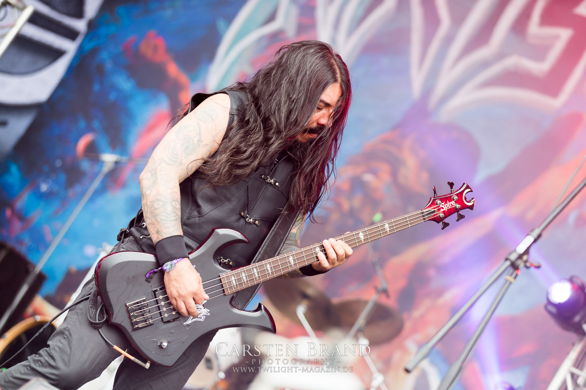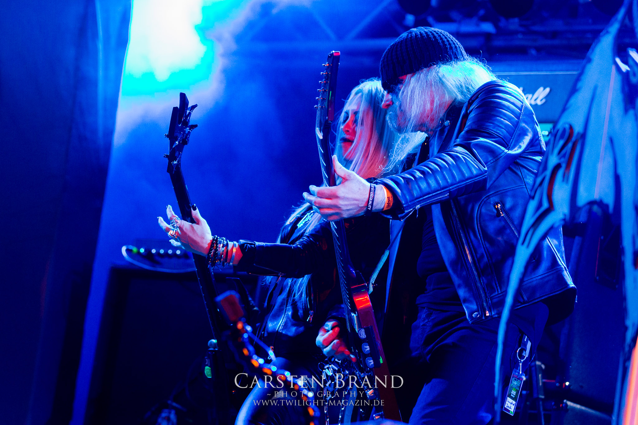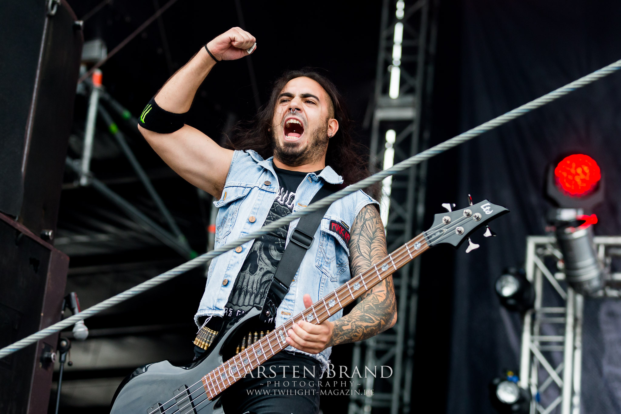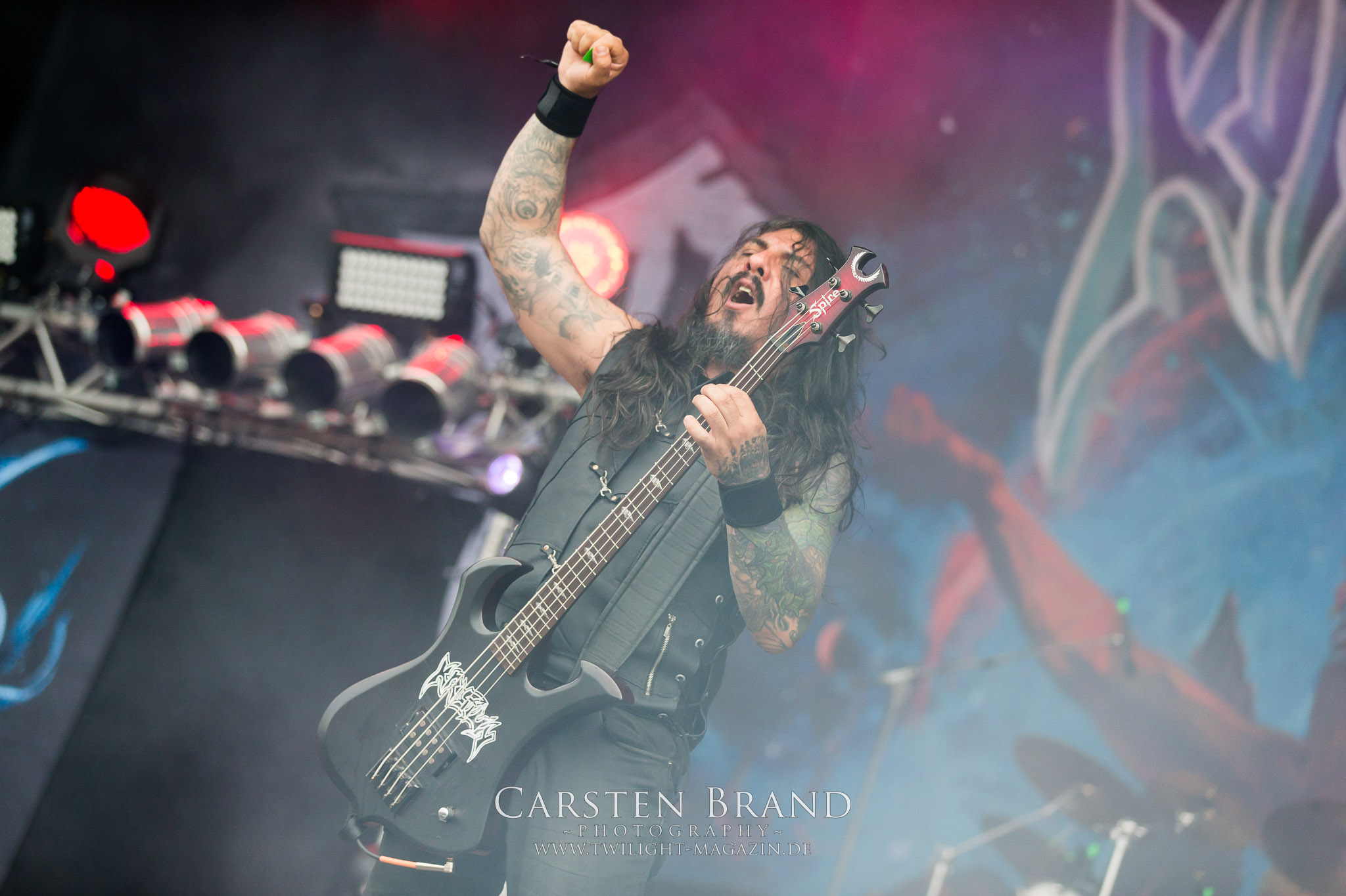 ARKONA aus dem tiefsten Osten sieht man inzwischen gefühlt auf jedem europäischen Festival der härteren Gangart. Vielleicht liegt es an der aufwendigen Bühnenshow mit altertümlichen Instrumenten, Tierfell und Knochenresteverwertung, vielleicht aber auch an der energetischen Sängerin Masha. Auf jeden Fall ist der Bühnenvorplatz immer gut gefüllt und es wird ordentlich mitgesungen, selbst wenn man des Russischen nicht mächtig ist. (MS) NIGHT DEMON machen wie schon vor zwei Jahren eindrucksvoll klar, dass sie als klassische Heavy Metal – Band alles andere als bloßes Beiwerk auf dem Billing sind. Wie schon 2017 funktionieren Night Demon nicht nur musikalisch. Die Band profitiert von ihrer überragenden Live-Qualität und dem starken Song-Material von "Cursed Of The Damned" und "Darkness Remains". Der Maiden-Fan in mir vermisst zwar die "Wasted Years", dafür reißt man mit "Overkill" als Einstieg zu "Dawn Rider" einen Motörhead-Klassiker an. Das muss man auch erstmal so hinbekommen. Night Demon sind motiviert bis in die Haarspitzen und sprudeln über vor metallischer Energie. Selbst am späten Abend ist Frontmann Jarvis Leatherby noch wie ein Duracell-Hase auf dem Gelände anzutreffen.