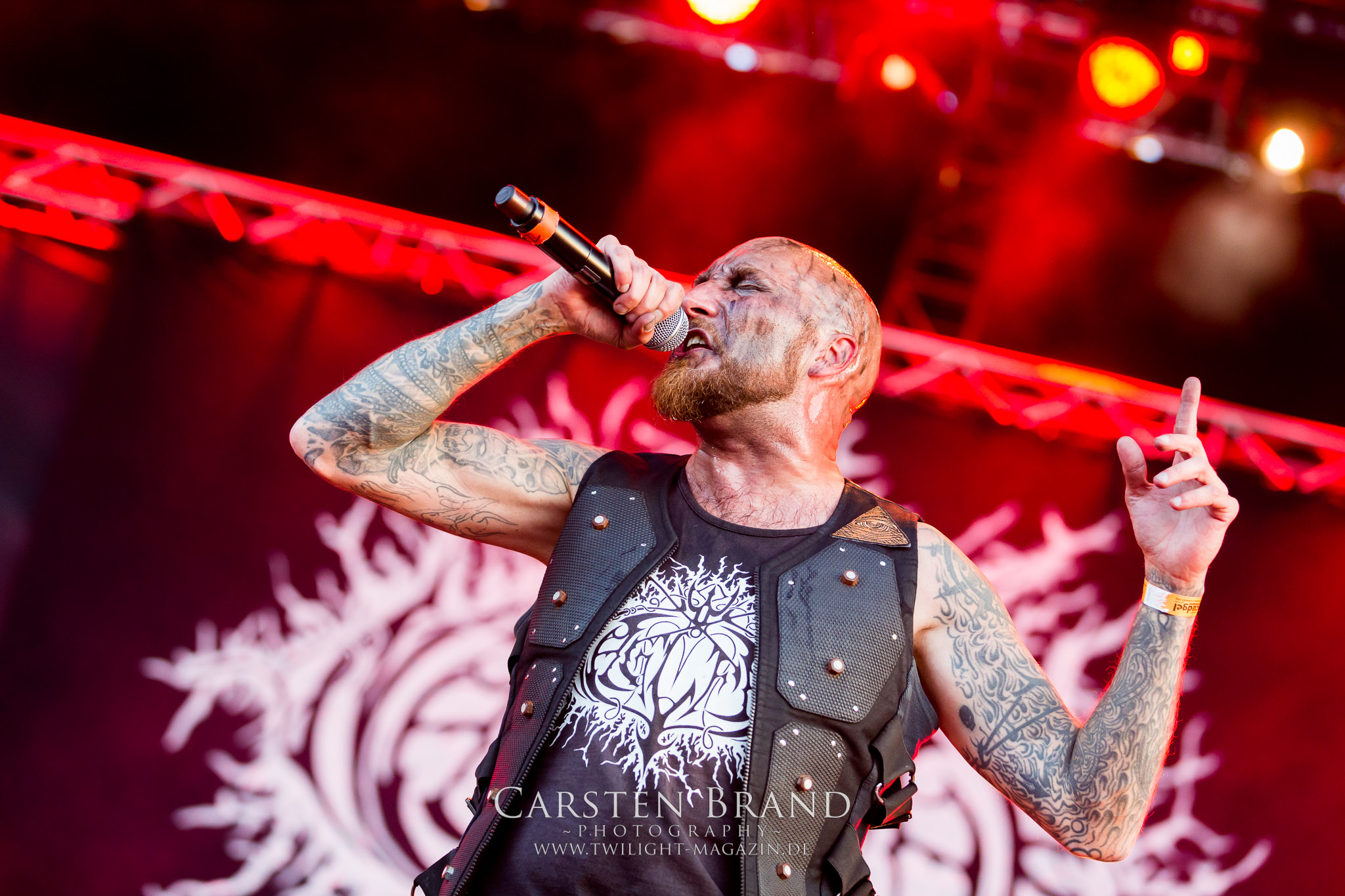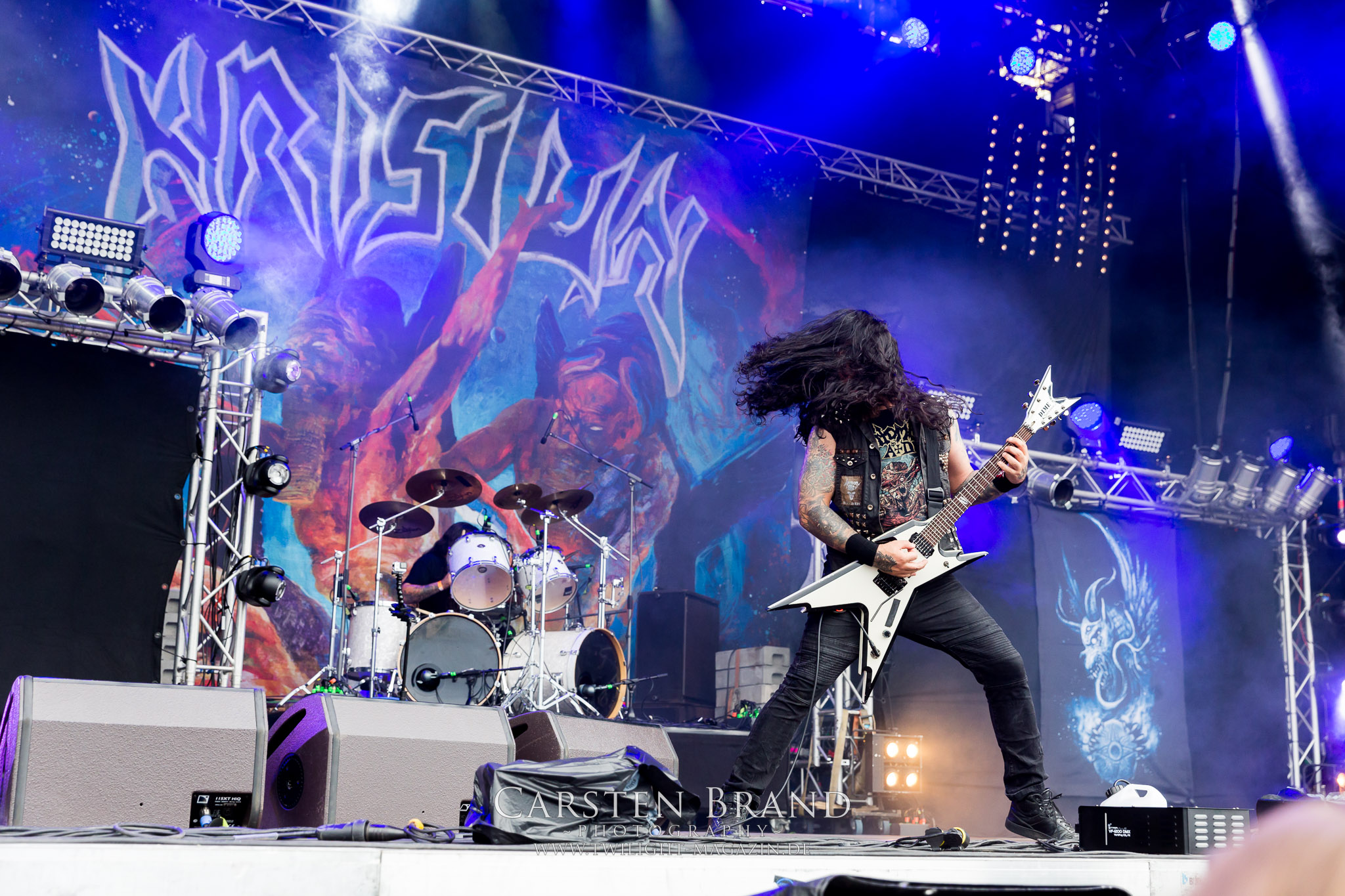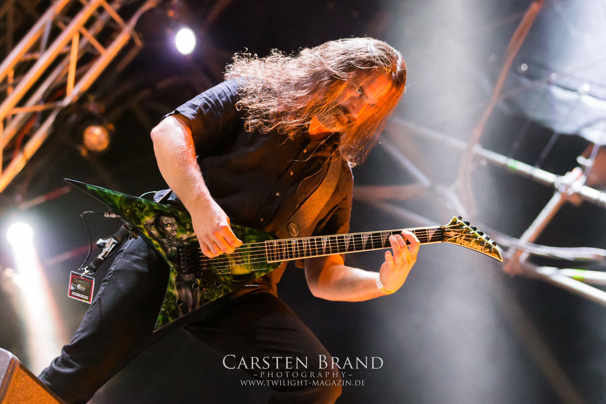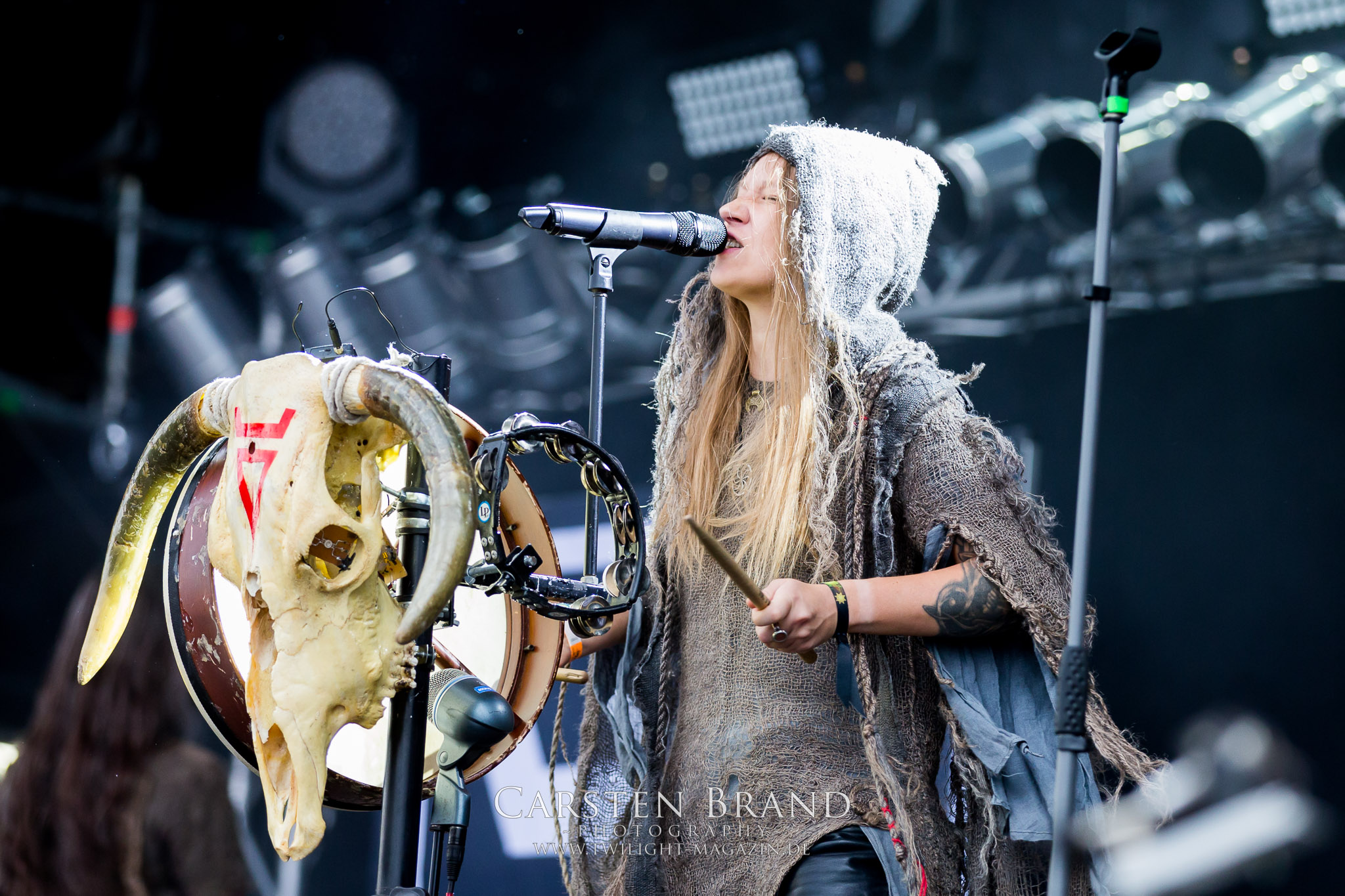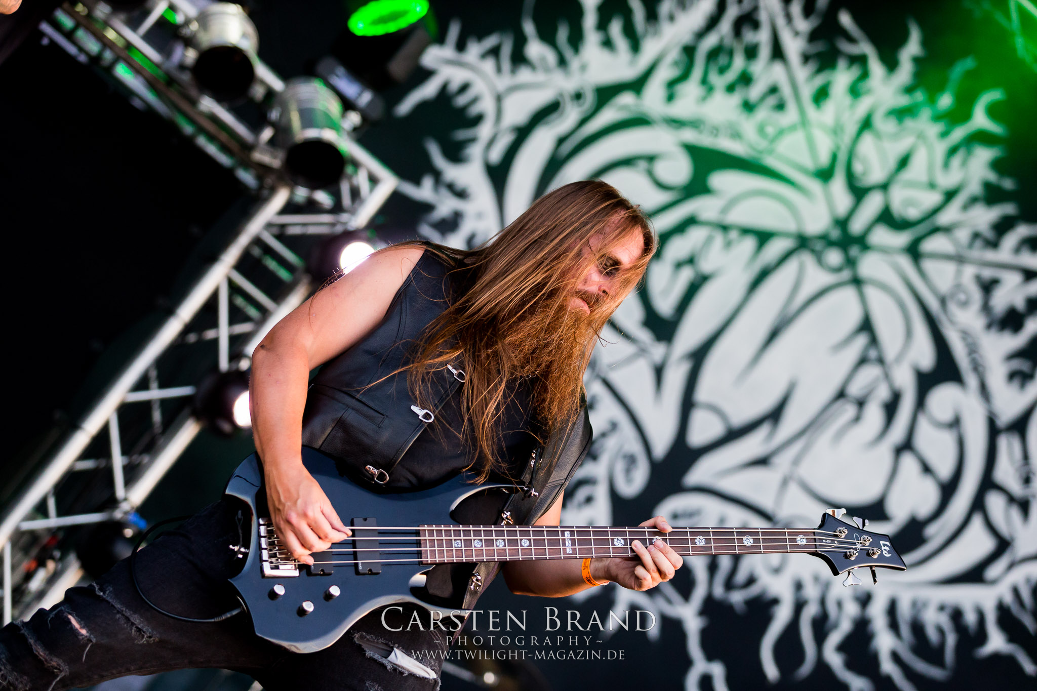 ARKONA aus dem tiefsten Osten sieht man inzwischen gefühlt auf jedem europäischen Festival der härteren Gangart. Vielleicht liegt es an der aufwendigen Bühnenshow mit altertümlichen Instrumenten, Tierfell und Knochenresteverwertung, vielleicht aber auch an der energetischen Sängerin Masha. Auf jeden Fall ist der Bühnenvorplatz immer gut gefüllt und es wird ordentlich mitgesungen, selbst wenn man des Russischen nicht mächtig ist. (MS) NIGHT DEMON machen wie schon vor zwei Jahren eindrucksvoll klar, dass sie als klassische Heavy Metal – Band alles andere als bloßes Beiwerk auf dem Billing sind. Wie schon 2017 funktionieren Night Demon nicht nur musikalisch. Die Band profitiert von ihrer überragenden Live-Qualität und dem starken Song-Material von "Cursed Of The Damned" und "Darkness Remains". Der Maiden-Fan in mir vermisst zwar die "Wasted Years", dafür reißt man mit "Overkill" als Einstieg zu "Dawn Rider" einen Motörhead-Klassiker an. Das muss man auch erstmal so hinbekommen. Night Demon sind motiviert bis in die Haarspitzen und sprudeln über vor metallischer Energie. Selbst am späten Abend ist Frontmann Jarvis Leatherby noch wie ein Duracell-Hase auf dem Gelände anzutreffen.