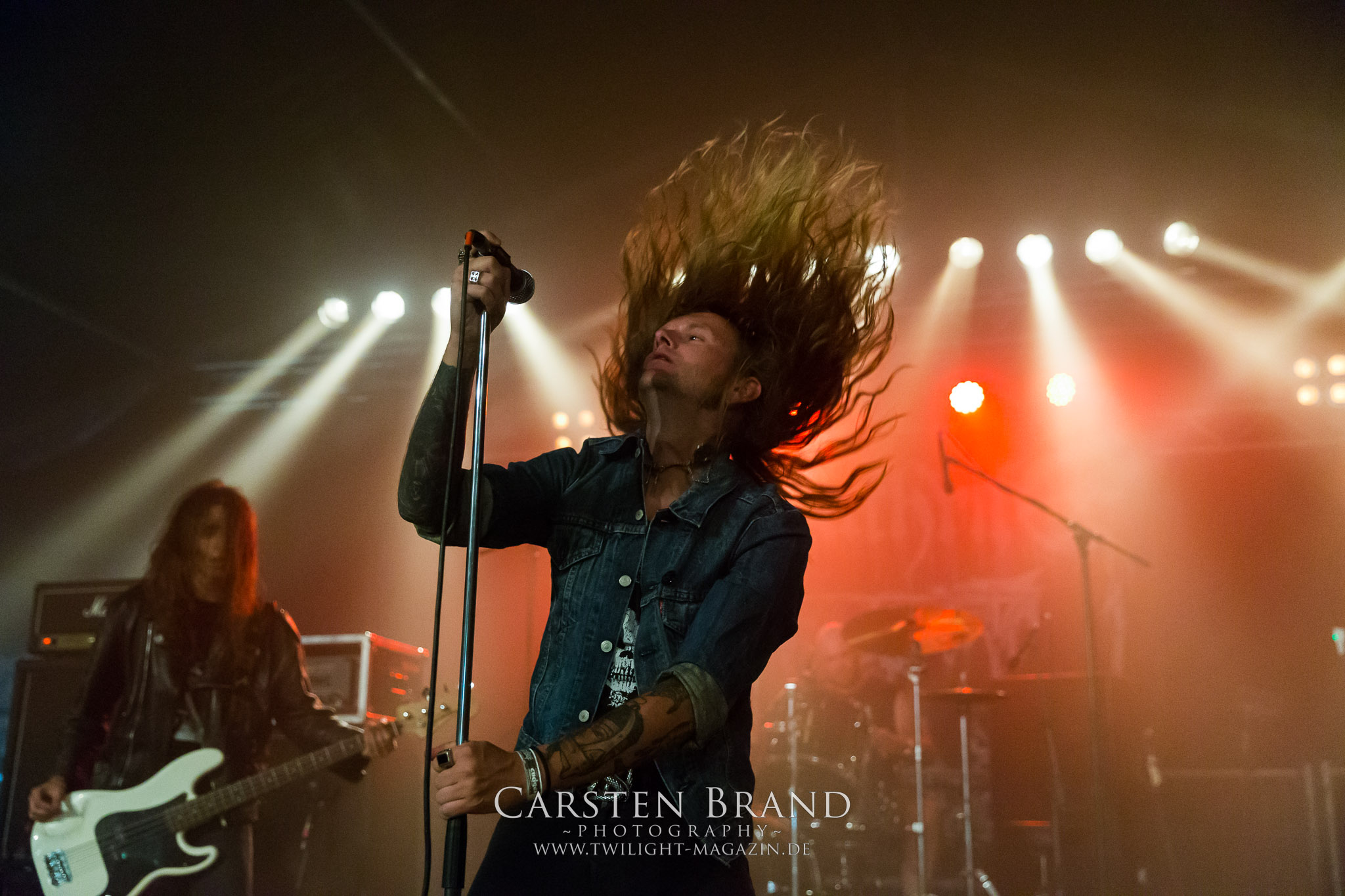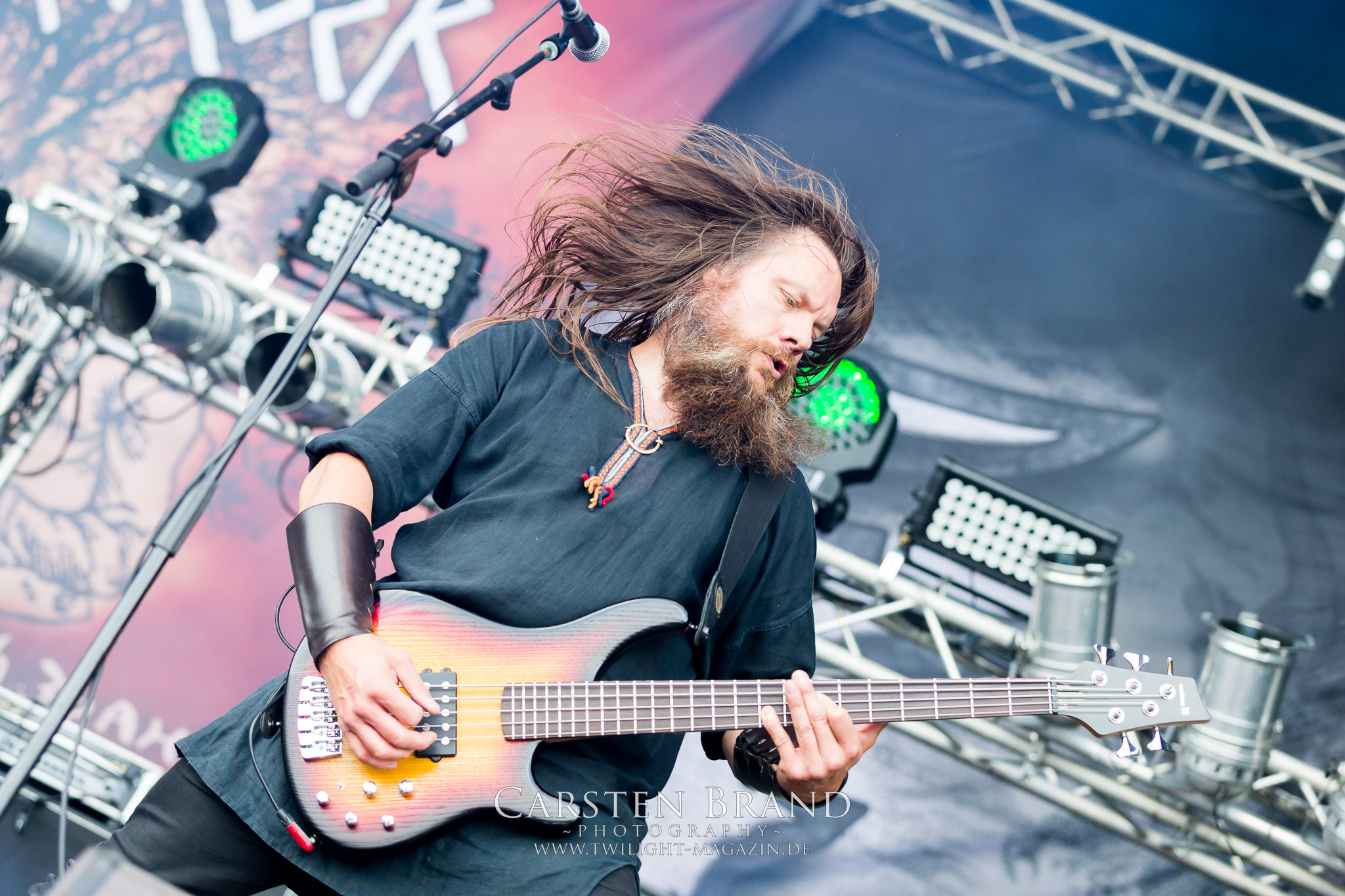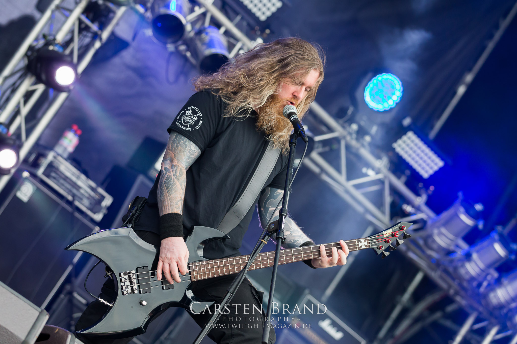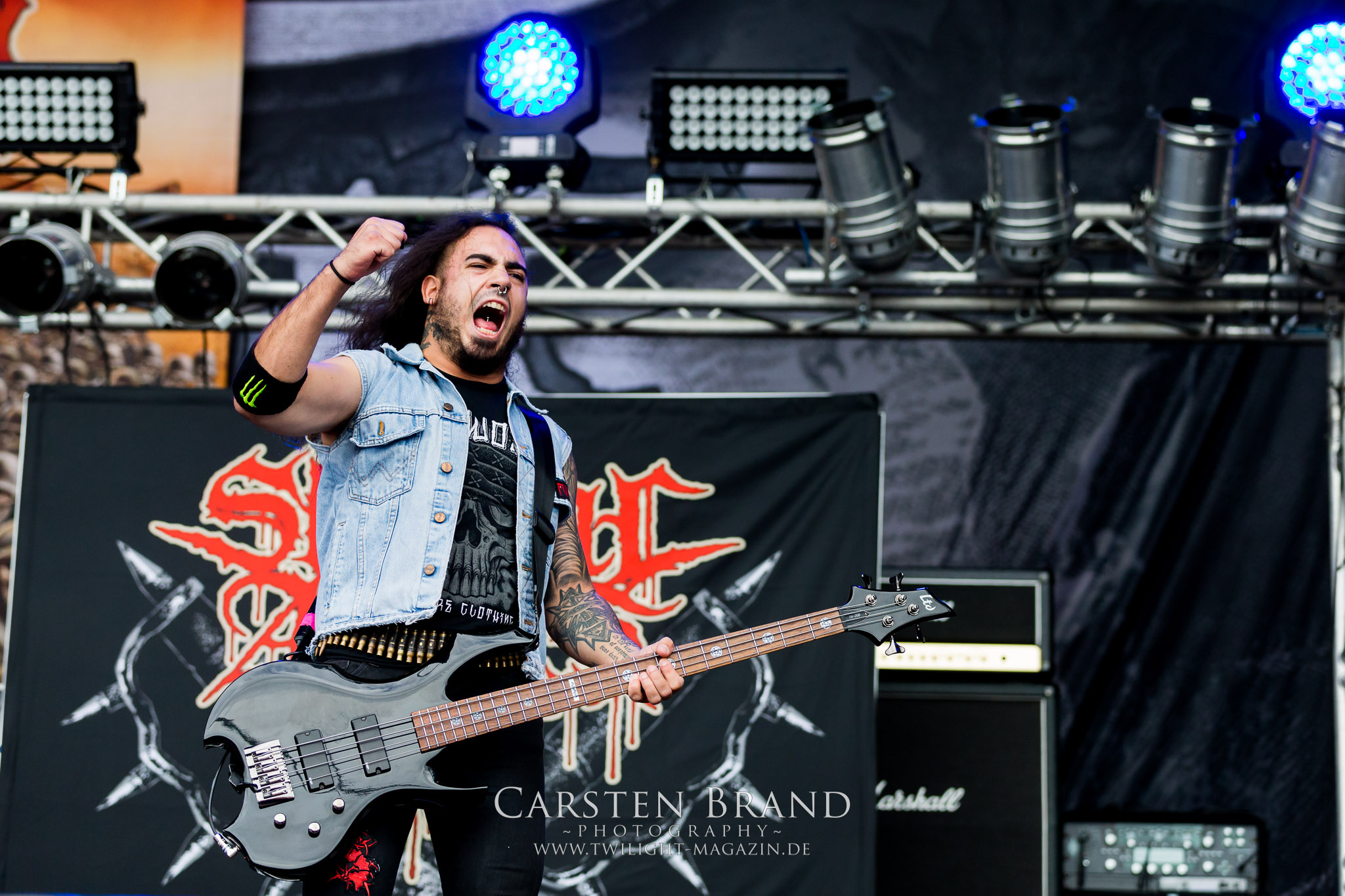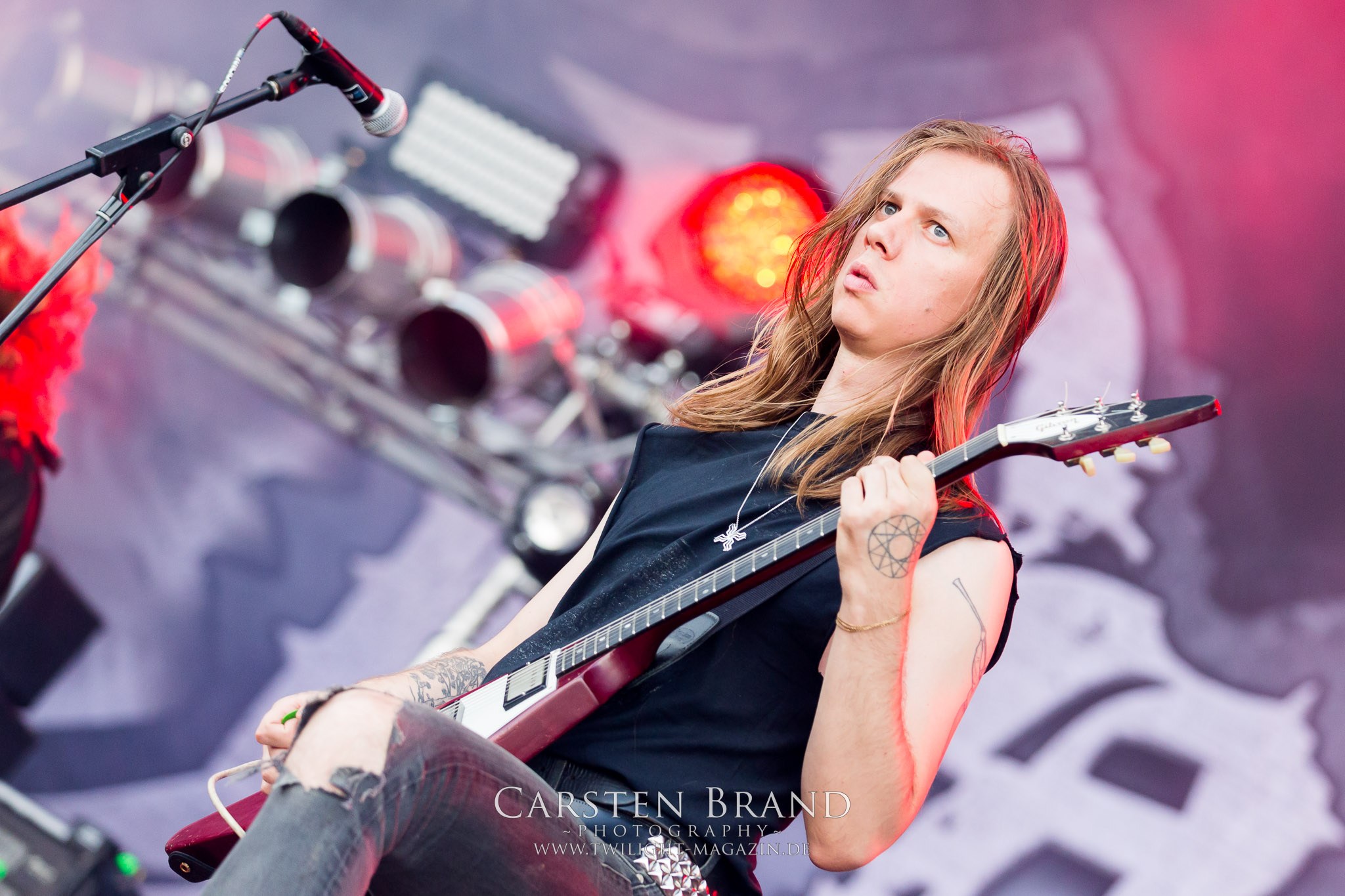 ARKONA aus dem tiefsten Osten sieht man inzwischen gefühlt auf jedem europäischen Festival der härteren Gangart. Vielleicht liegt es an der aufwendigen Bühnenshow mit altertümlichen Instrumenten, Tierfell und Knochenresteverwertung, vielleicht aber auch an der energetischen Sängerin Masha. Auf jeden Fall ist der Bühnenvorplatz immer gut gefüllt und es wird ordentlich mitgesungen, selbst wenn man des Russischen nicht mächtig ist. (MS) NIGHT DEMON machen wie schon vor zwei Jahren eindrucksvoll klar, dass sie als klassische Heavy Metal – Band alles andere als bloßes Beiwerk auf dem Billing sind. Wie schon 2017 funktionieren Night Demon nicht nur musikalisch. Die Band profitiert von ihrer überragenden Live-Qualität und dem starken Song-Material von "Cursed Of The Damned" und "Darkness Remains". Der Maiden-Fan in mir vermisst zwar die "Wasted Years", dafür reißt man mit "Overkill" als Einstieg zu "Dawn Rider" einen Motörhead-Klassiker an. Das muss man auch erstmal so hinbekommen. Night Demon sind motiviert bis in die Haarspitzen und sprudeln über vor metallischer Energie. Selbst am späten Abend ist Frontmann Jarvis Leatherby noch wie ein Duracell-Hase auf dem Gelände anzutreffen.