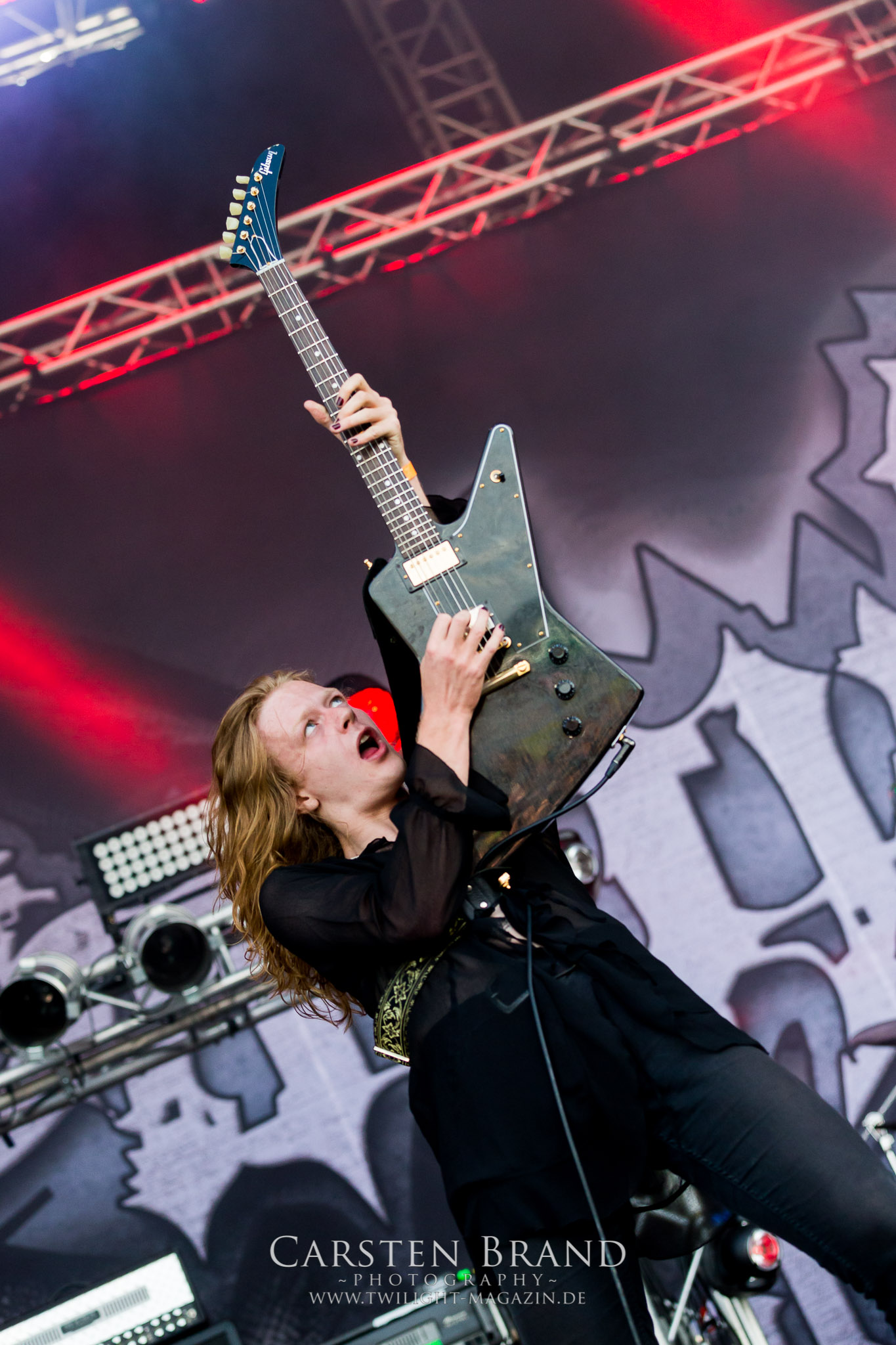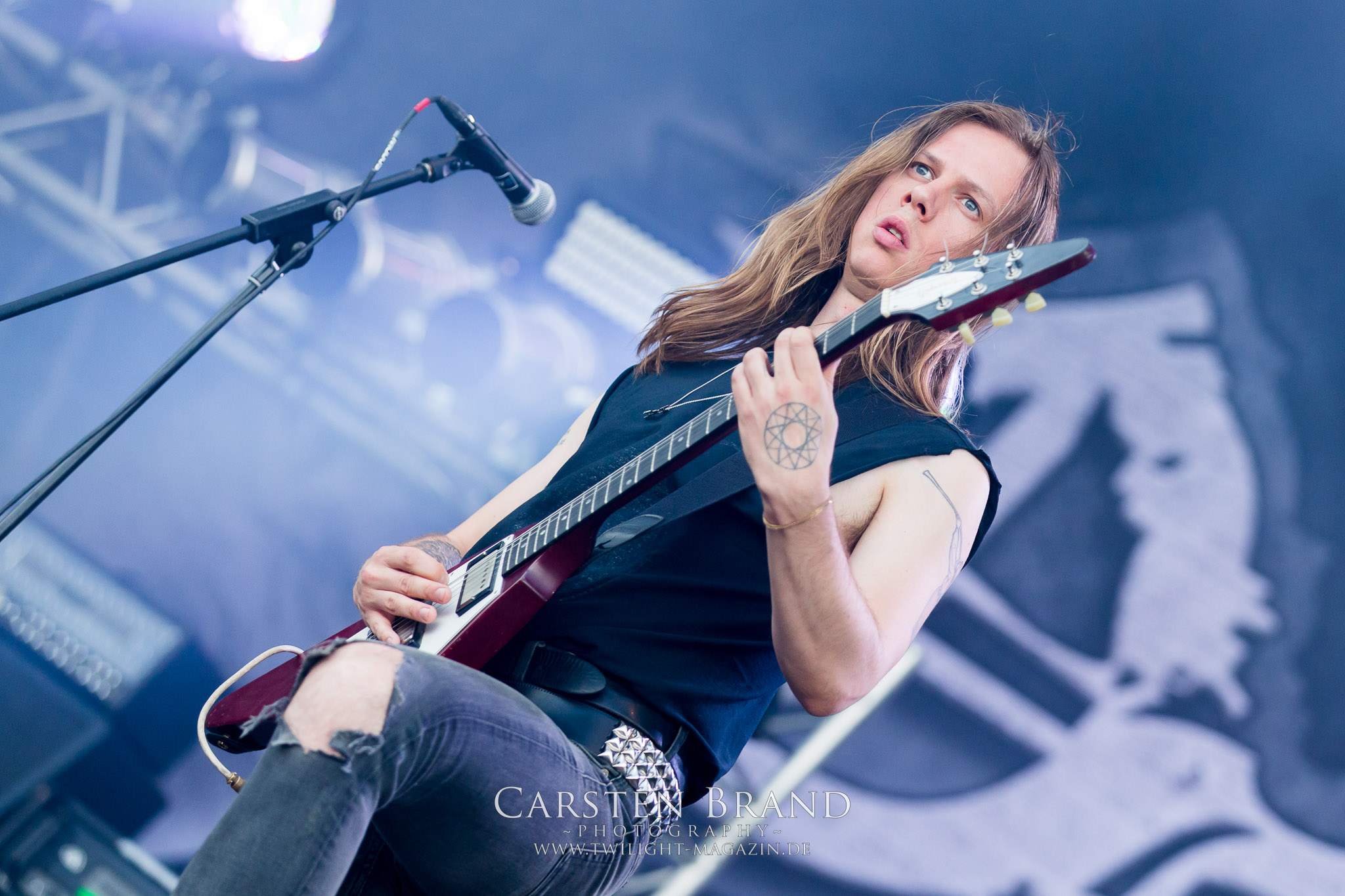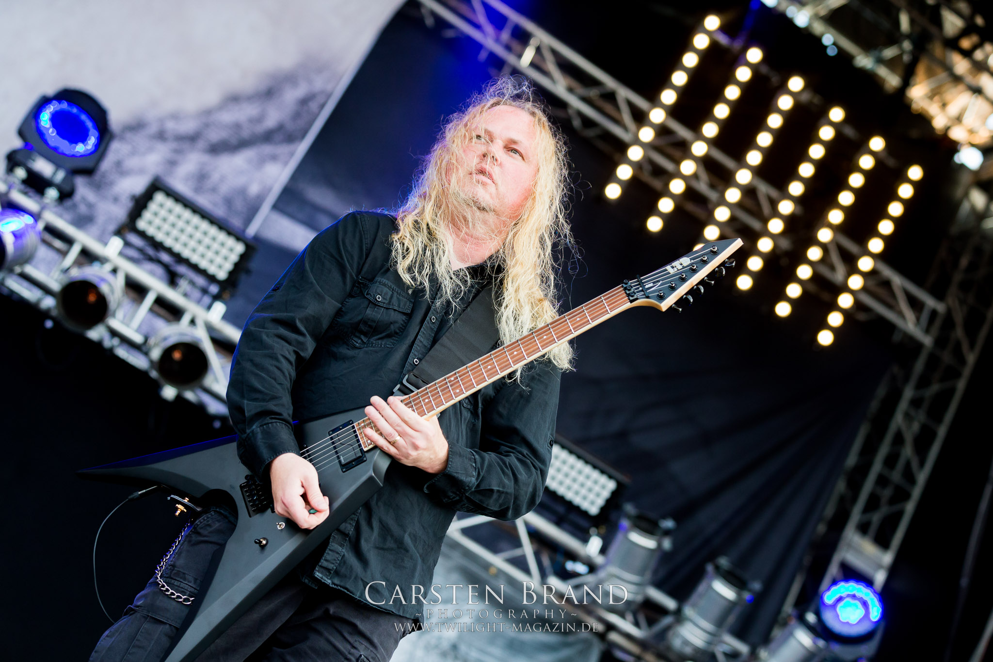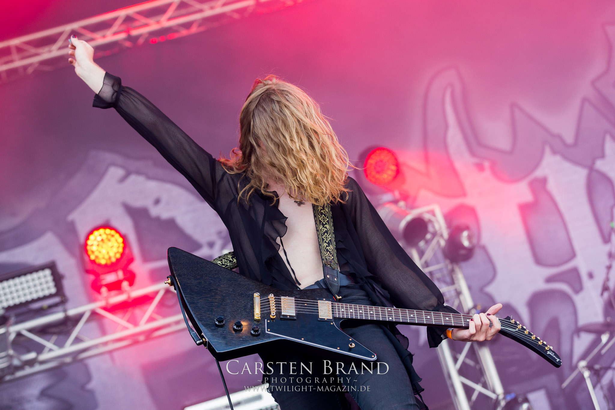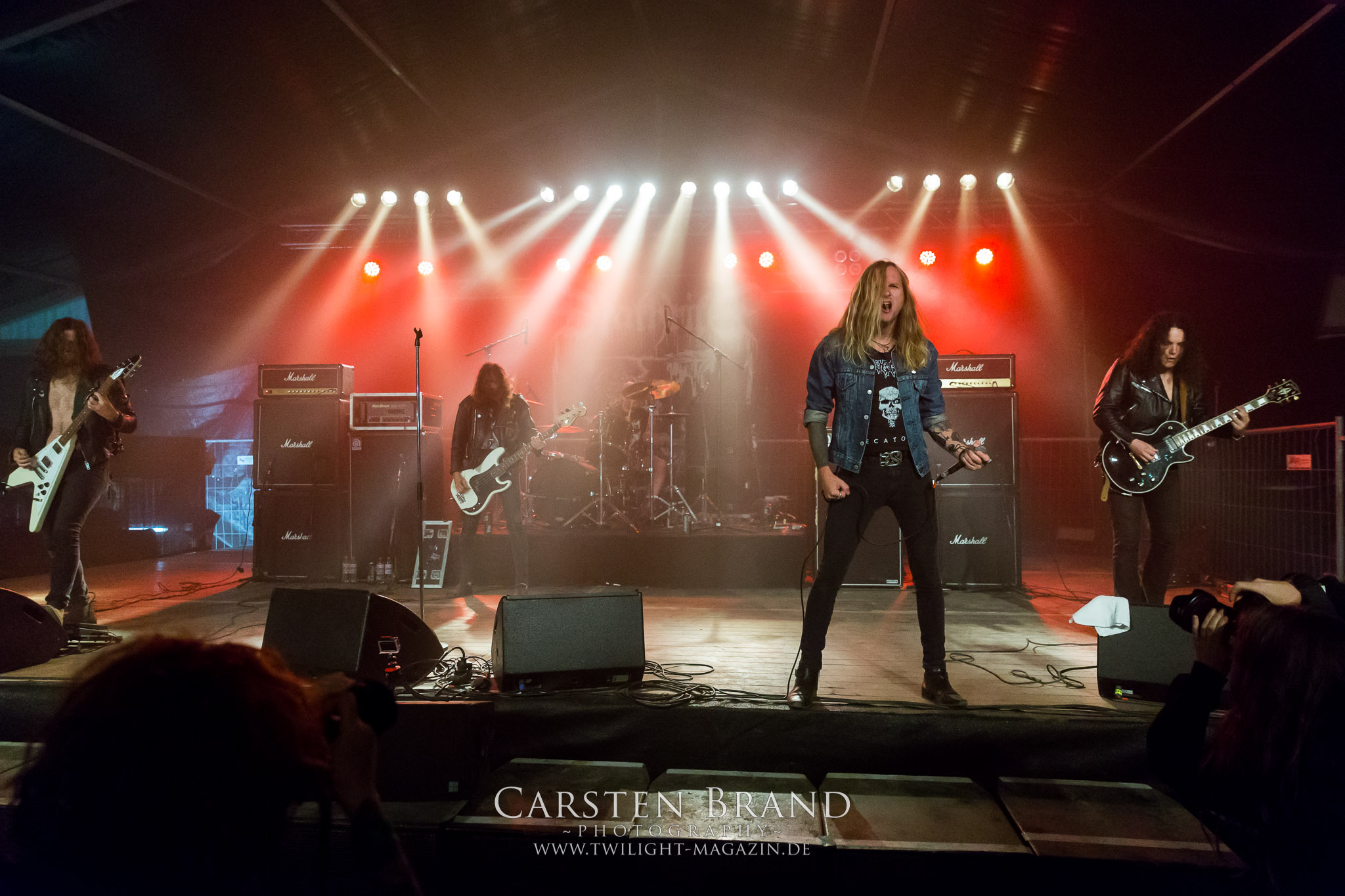 ARKONA aus dem tiefsten Osten sieht man inzwischen gefühlt auf jedem europäischen Festival der härteren Gangart. Vielleicht liegt es an der aufwendigen Bühnenshow mit altertümlichen Instrumenten, Tierfell und Knochenresteverwertung, vielleicht aber auch an der energetischen Sängerin Masha. Auf jeden Fall ist der Bühnenvorplatz immer gut gefüllt und es wird ordentlich mitgesungen, selbst wenn man des Russischen nicht mächtig ist. (MS) NIGHT DEMON machen wie schon vor zwei Jahren eindrucksvoll klar, dass sie als klassische Heavy Metal – Band alles andere als bloßes Beiwerk auf dem Billing sind. Wie schon 2017 funktionieren Night Demon nicht nur musikalisch. Die Band profitiert von ihrer überragenden Live-Qualität und dem starken Song-Material von "Cursed Of The Damned" und "Darkness Remains". Der Maiden-Fan in mir vermisst zwar die "Wasted Years", dafür reißt man mit "Overkill" als Einstieg zu "Dawn Rider" einen Motörhead-Klassiker an. Das muss man auch erstmal so hinbekommen. Night Demon sind motiviert bis in die Haarspitzen und sprudeln über vor metallischer Energie. Selbst am späten Abend ist Frontmann Jarvis Leatherby noch wie ein Duracell-Hase auf dem Gelände anzutreffen.