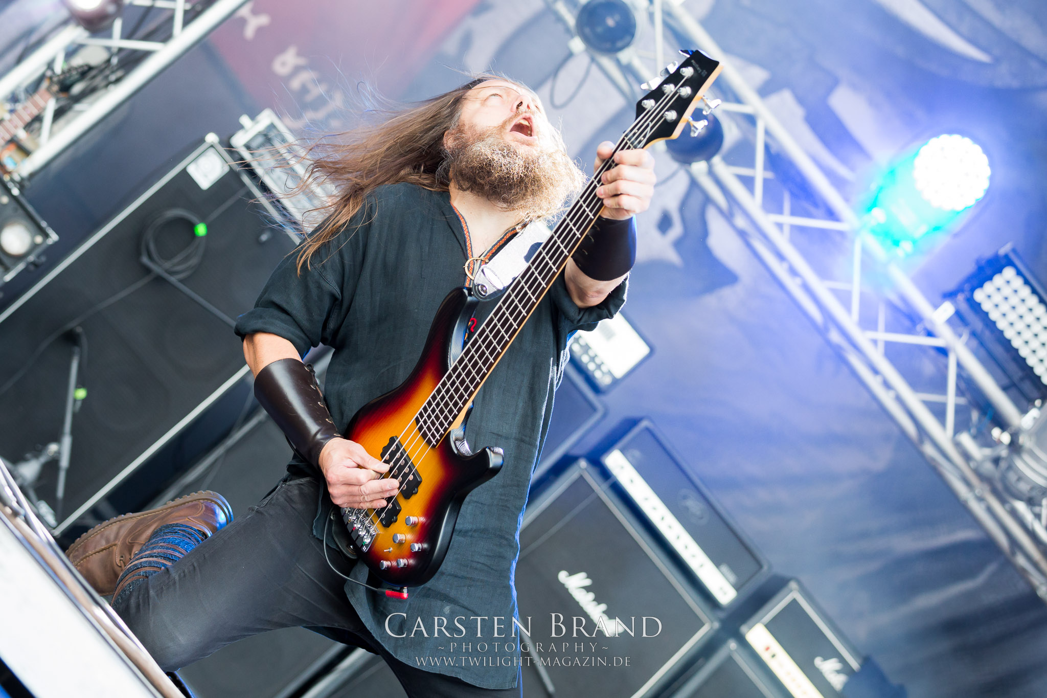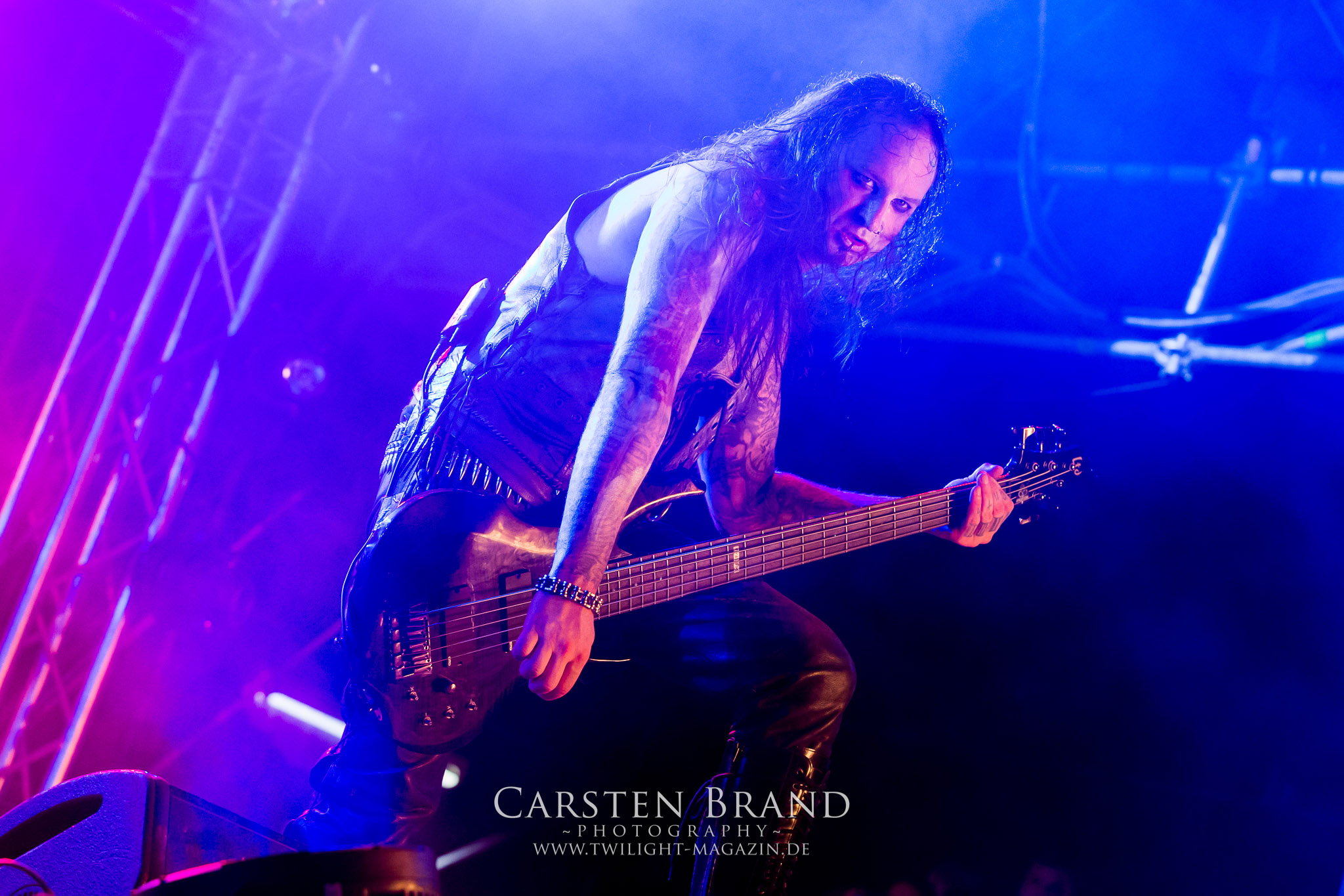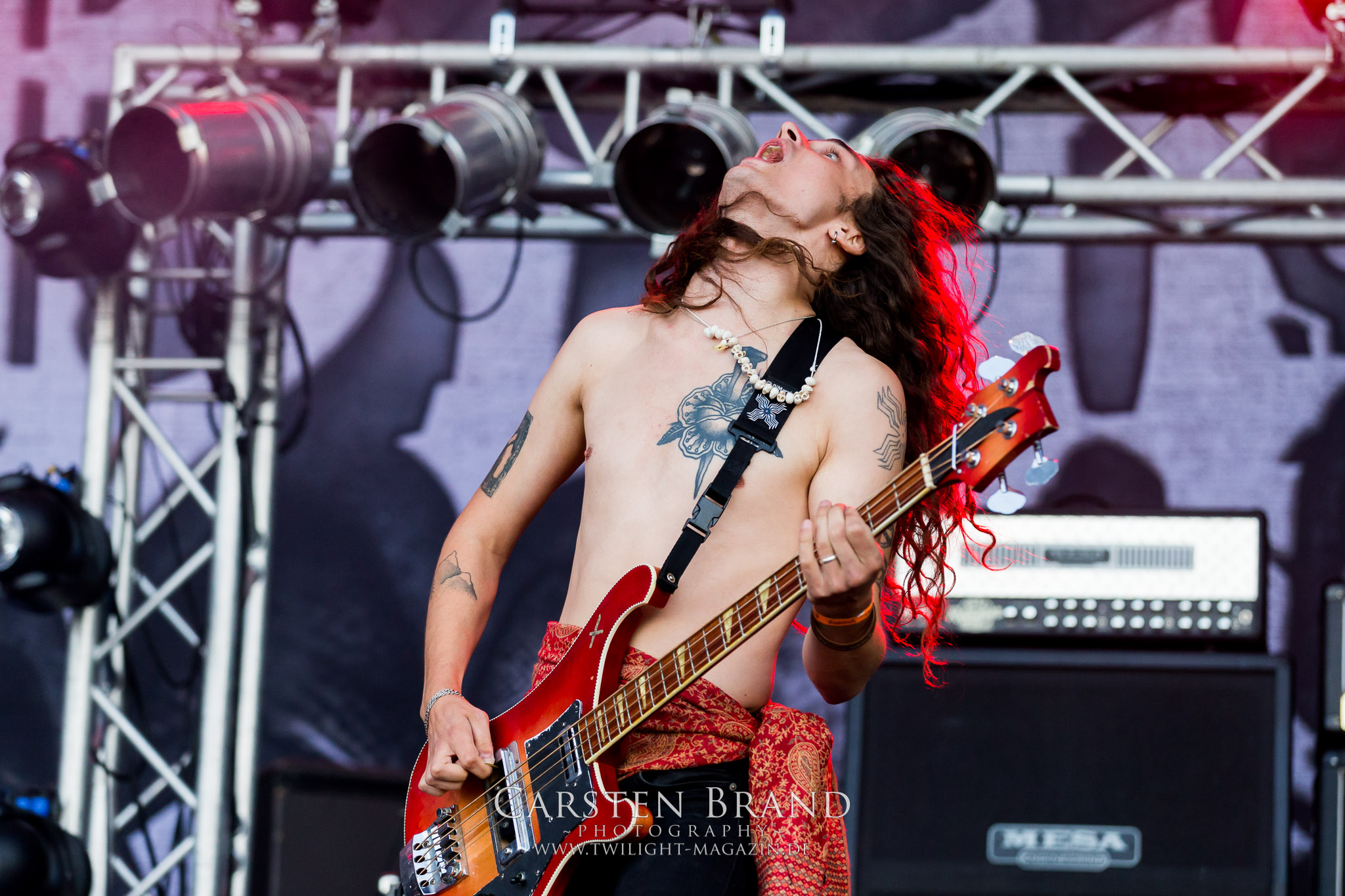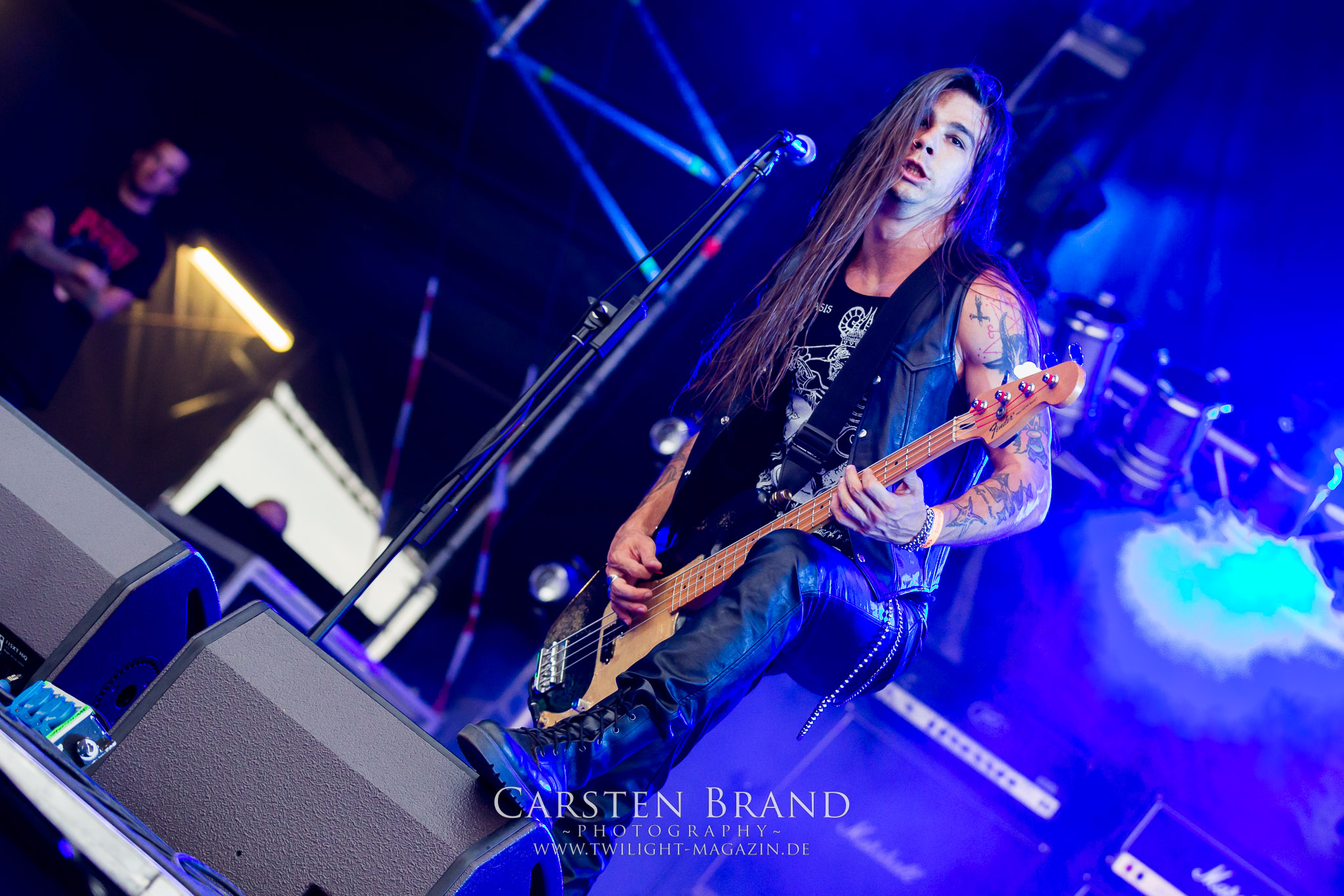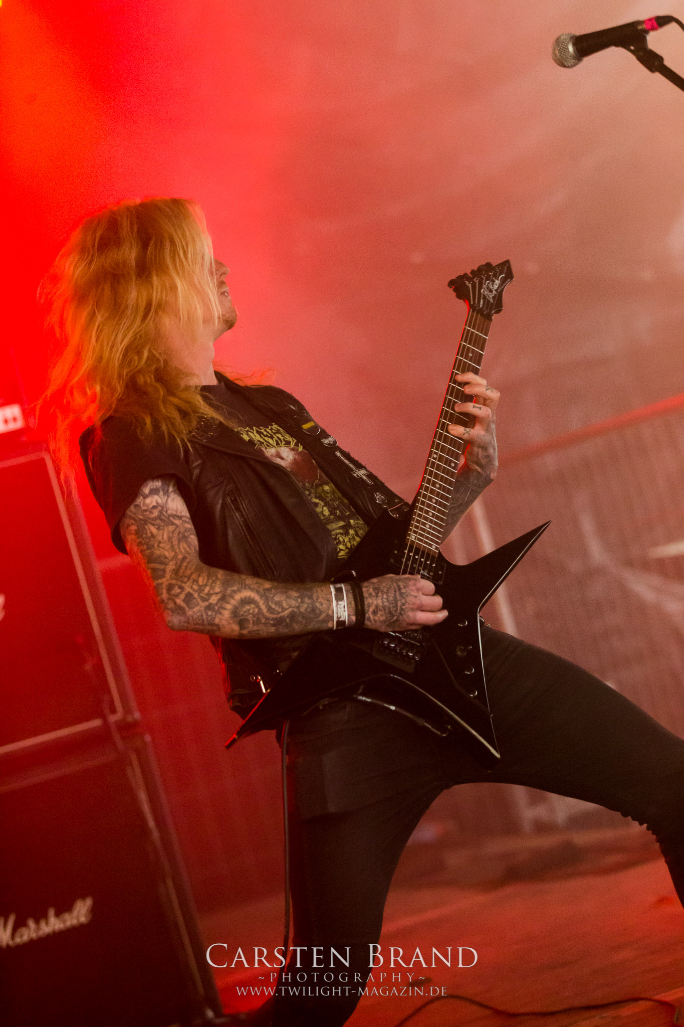 ARKONA aus dem tiefsten Osten sieht man inzwischen gefühlt auf jedem europäischen Festival der härteren Gangart. Vielleicht liegt es an der aufwendigen Bühnenshow mit altertümlichen Instrumenten, Tierfell und Knochenresteverwertung, vielleicht aber auch an der energetischen Sängerin Masha. Auf jeden Fall ist der Bühnenvorplatz immer gut gefüllt und es wird ordentlich mitgesungen, selbst wenn man des Russischen nicht mächtig ist. (MS) NIGHT DEMON machen wie schon vor zwei Jahren eindrucksvoll klar, dass sie als klassische Heavy Metal – Band alles andere als bloßes Beiwerk auf dem Billing sind. Wie schon 2017 funktionieren Night Demon nicht nur musikalisch. Die Band profitiert von ihrer überragenden Live-Qualität und dem starken Song-Material von "Cursed Of The Damned" und "Darkness Remains". Der Maiden-Fan in mir vermisst zwar die "Wasted Years", dafür reißt man mit "Overkill" als Einstieg zu "Dawn Rider" einen Motörhead-Klassiker an. Das muss man auch erstmal so hinbekommen. Night Demon sind motiviert bis in die Haarspitzen und sprudeln über vor metallischer Energie. Selbst am späten Abend ist Frontmann Jarvis Leatherby noch wie ein Duracell-Hase auf dem Gelände anzutreffen.