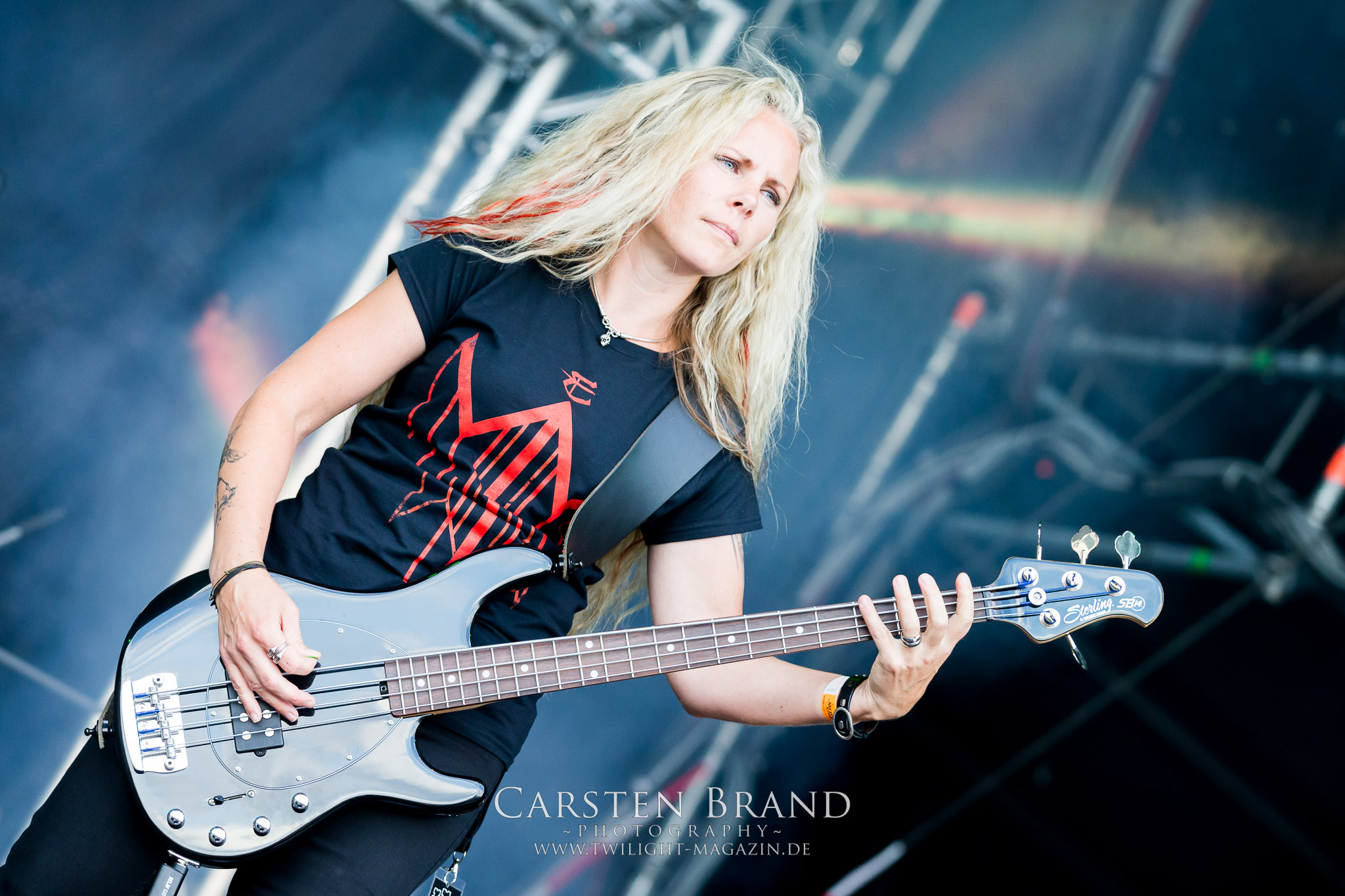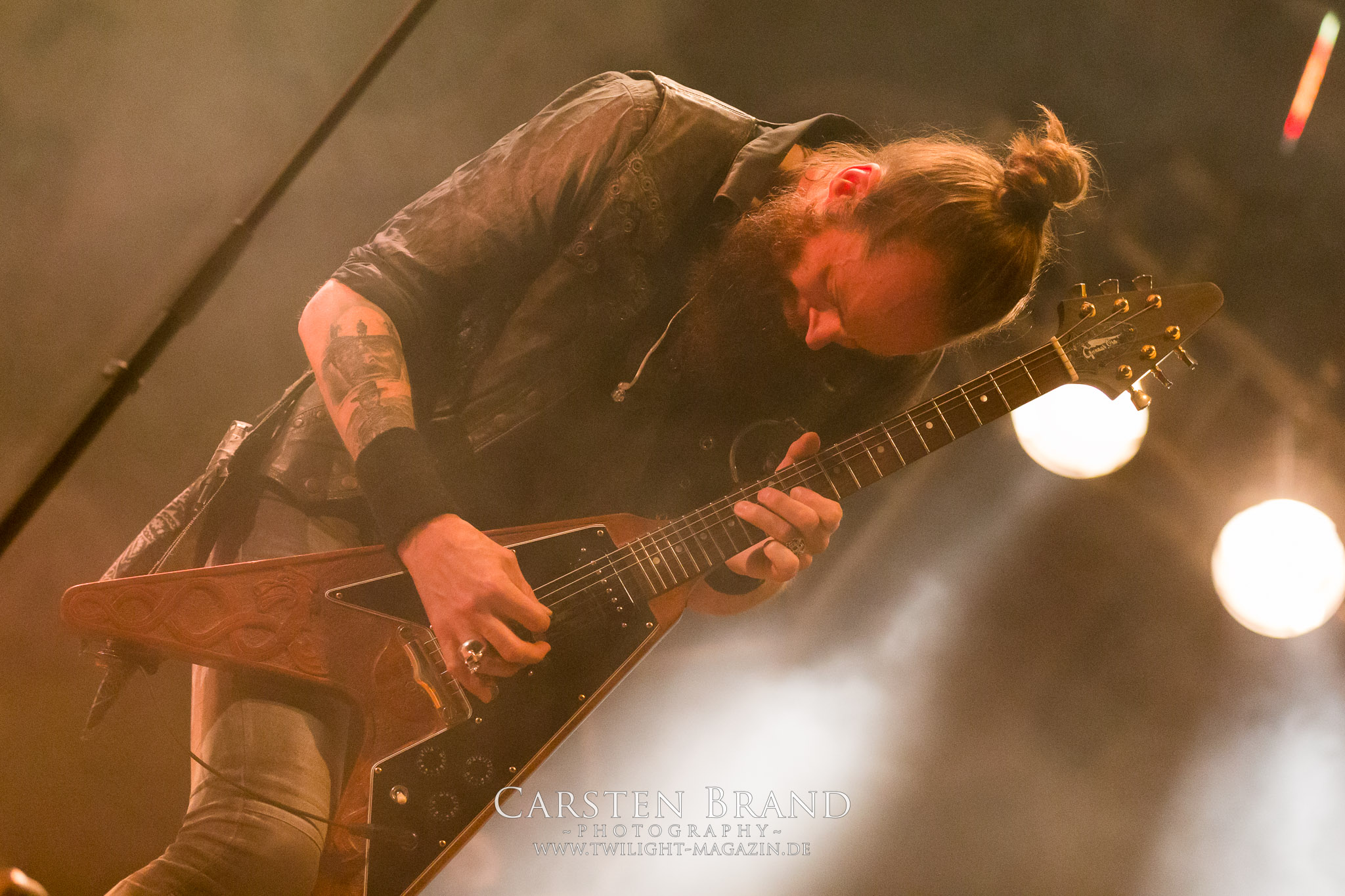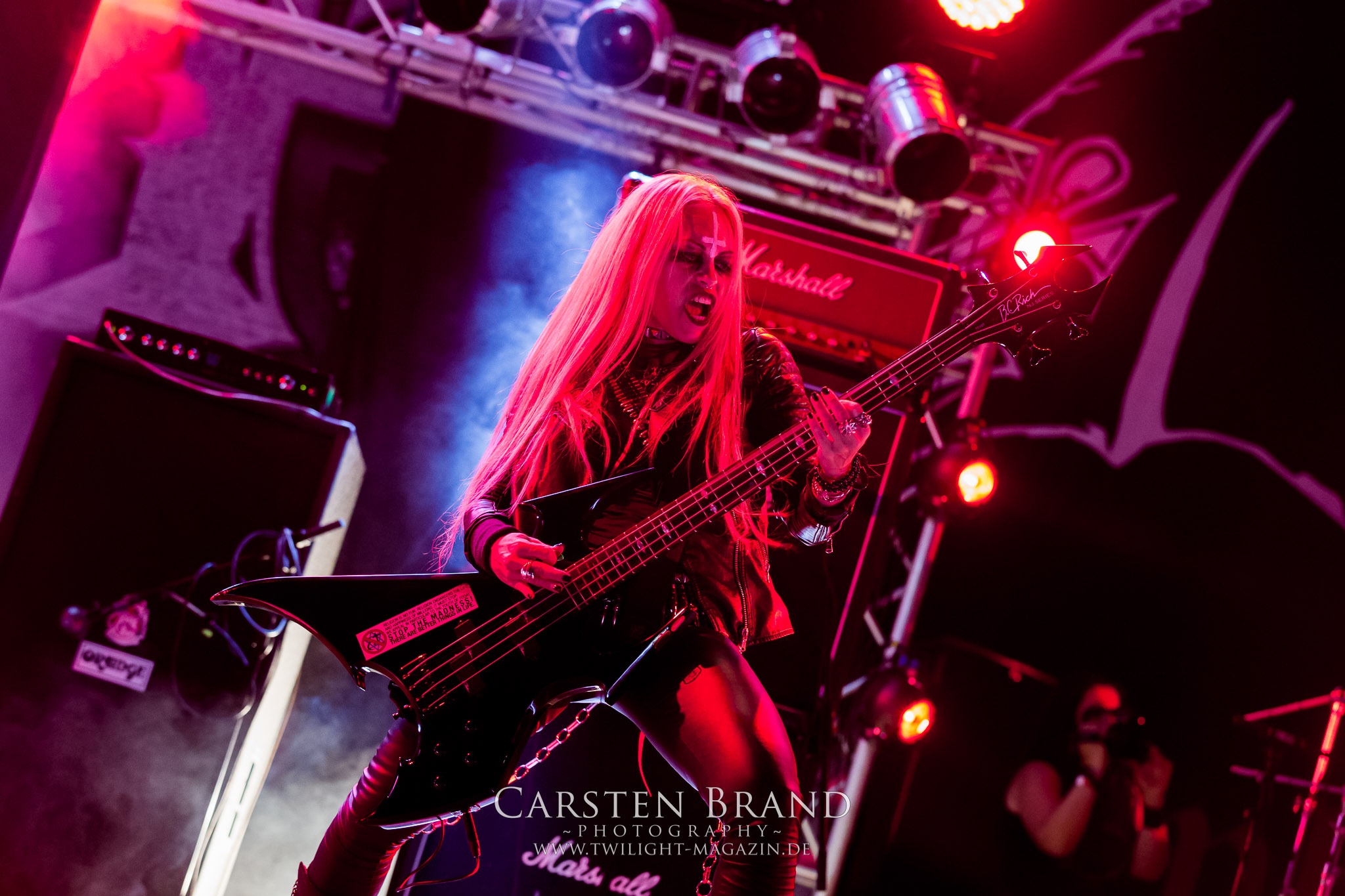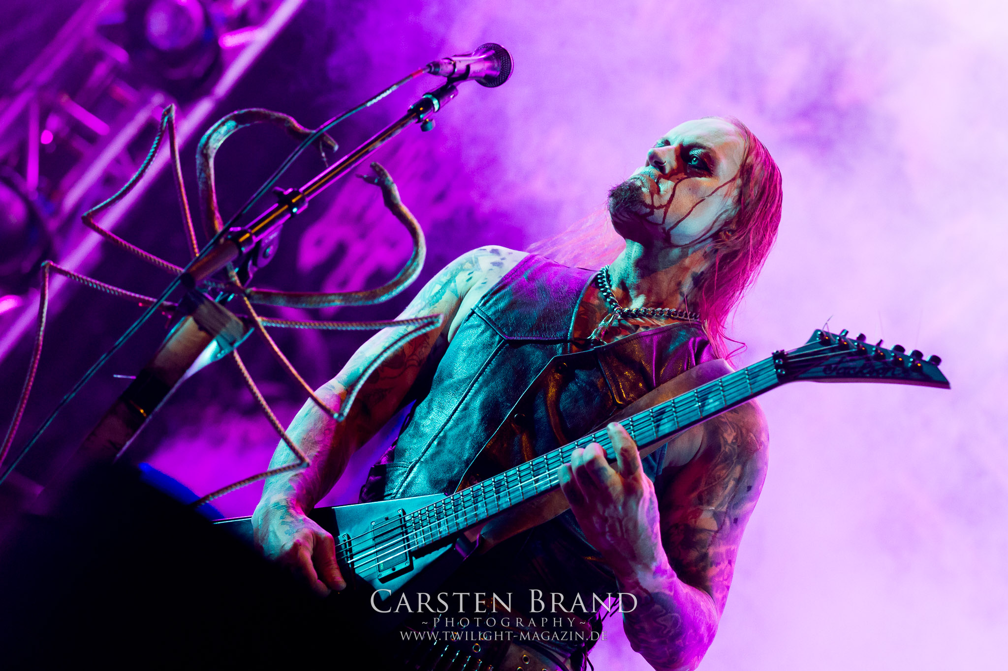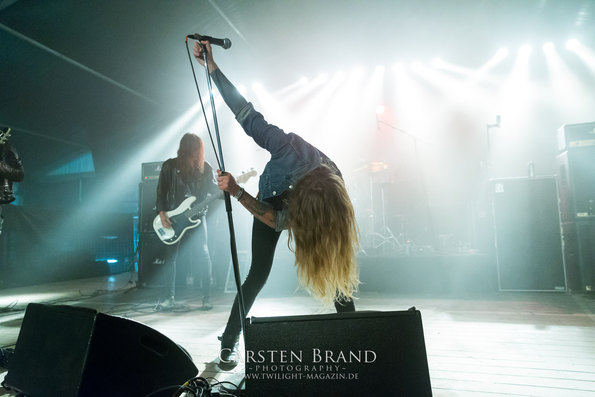 ARKONA aus dem tiefsten Osten sieht man inzwischen gefühlt auf jedem europäischen Festival der härteren Gangart. Vielleicht liegt es an der aufwendigen Bühnenshow mit altertümlichen Instrumenten, Tierfell und Knochenresteverwertung, vielleicht aber auch an der energetischen Sängerin Masha. Auf jeden Fall ist der Bühnenvorplatz immer gut gefüllt und es wird ordentlich mitgesungen, selbst wenn man des Russischen nicht mächtig ist. (MS) NIGHT DEMON machen wie schon vor zwei Jahren eindrucksvoll klar, dass sie als klassische Heavy Metal – Band alles andere als bloßes Beiwerk auf dem Billing sind. Wie schon 2017 funktionieren Night Demon nicht nur musikalisch. Die Band profitiert von ihrer überragenden Live-Qualität und dem starken Song-Material von "Cursed Of The Damned" und "Darkness Remains". Der Maiden-Fan in mir vermisst zwar die "Wasted Years", dafür reißt man mit "Overkill" als Einstieg zu "Dawn Rider" einen Motörhead-Klassiker an. Das muss man auch erstmal so hinbekommen. Night Demon sind motiviert bis in die Haarspitzen und sprudeln über vor metallischer Energie. Selbst am späten Abend ist Frontmann Jarvis Leatherby noch wie ein Duracell-Hase auf dem Gelände anzutreffen.