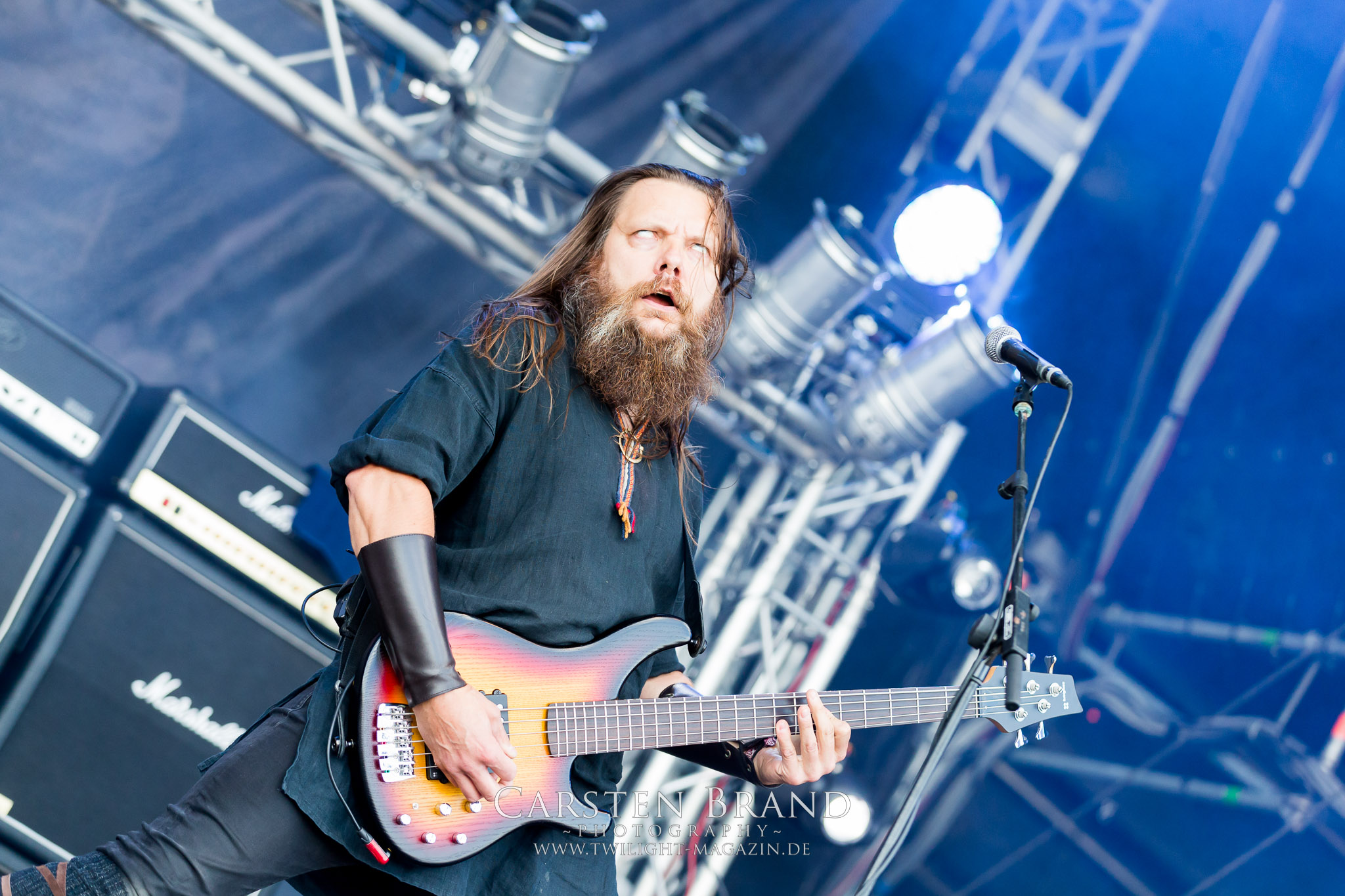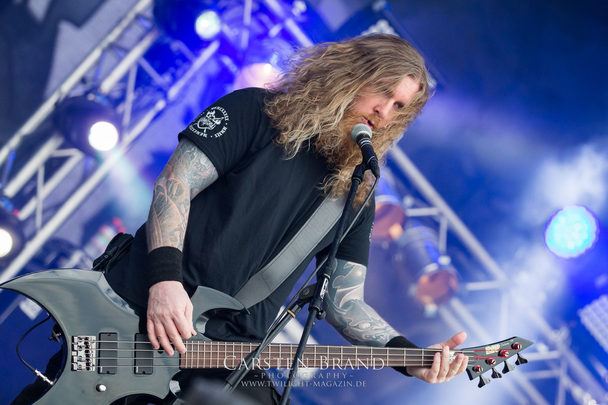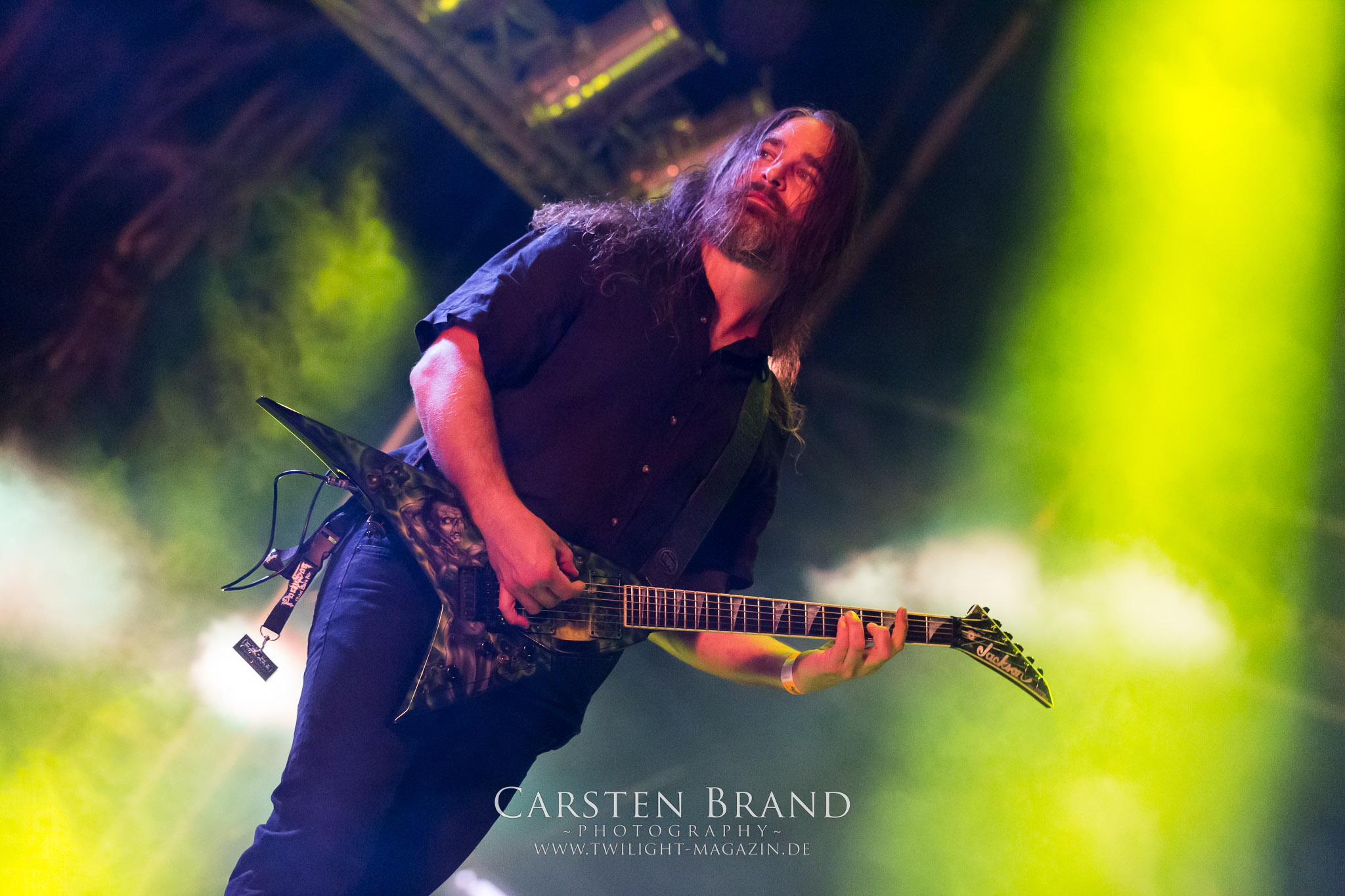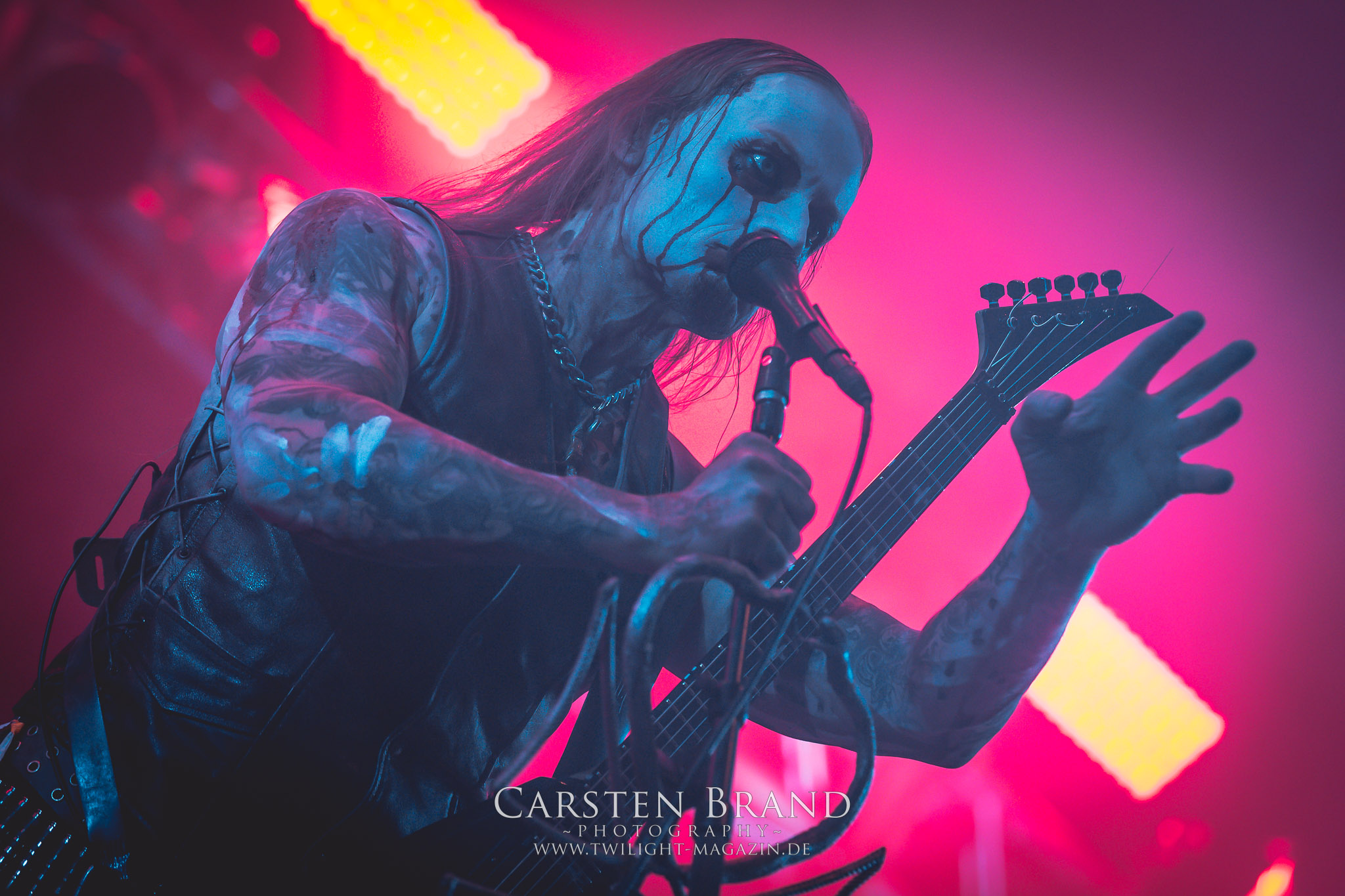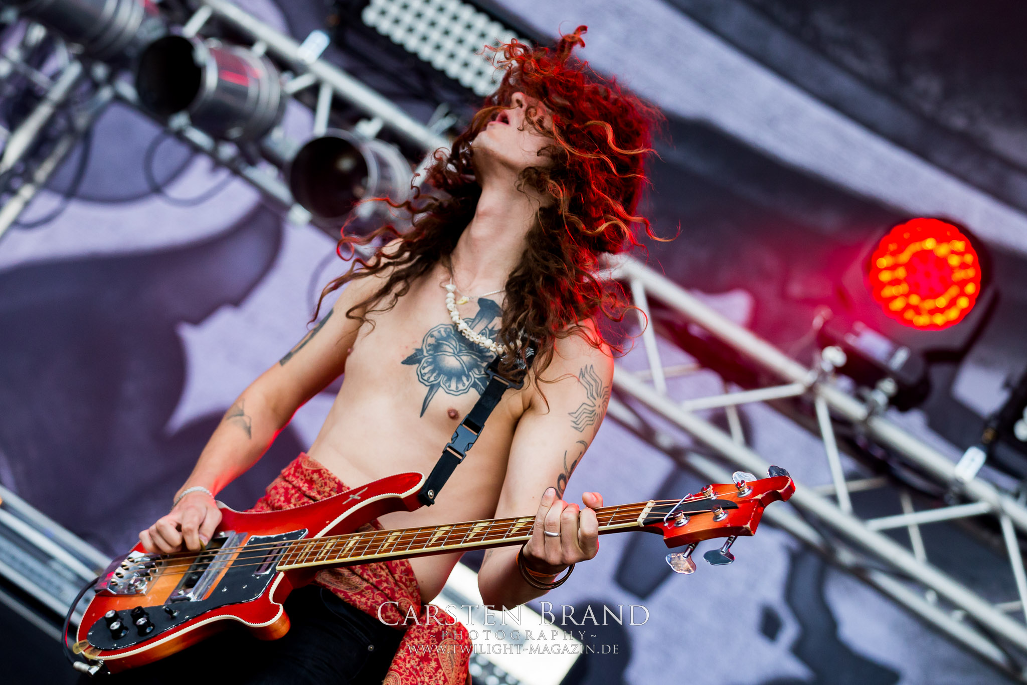 ARKONA aus dem tiefsten Osten sieht man inzwischen gefühlt auf jedem europäischen Festival der härteren Gangart. Vielleicht liegt es an der aufwendigen Bühnenshow mit altertümlichen Instrumenten, Tierfell und Knochenresteverwertung, vielleicht aber auch an der energetischen Sängerin Masha. Auf jeden Fall ist der Bühnenvorplatz immer gut gefüllt und es wird ordentlich mitgesungen, selbst wenn man des Russischen nicht mächtig ist. (MS) NIGHT DEMON machen wie schon vor zwei Jahren eindrucksvoll klar, dass sie als klassische Heavy Metal – Band alles andere als bloßes Beiwerk auf dem Billing sind. Wie schon 2017 funktionieren Night Demon nicht nur musikalisch. Die Band profitiert von ihrer überragenden Live-Qualität und dem starken Song-Material von "Cursed Of The Damned" und "Darkness Remains". Der Maiden-Fan in mir vermisst zwar die "Wasted Years", dafür reißt man mit "Overkill" als Einstieg zu "Dawn Rider" einen Motörhead-Klassiker an. Das muss man auch erstmal so hinbekommen. Night Demon sind motiviert bis in die Haarspitzen und sprudeln über vor metallischer Energie. Selbst am späten Abend ist Frontmann Jarvis Leatherby noch wie ein Duracell-Hase auf dem Gelände anzutreffen.
