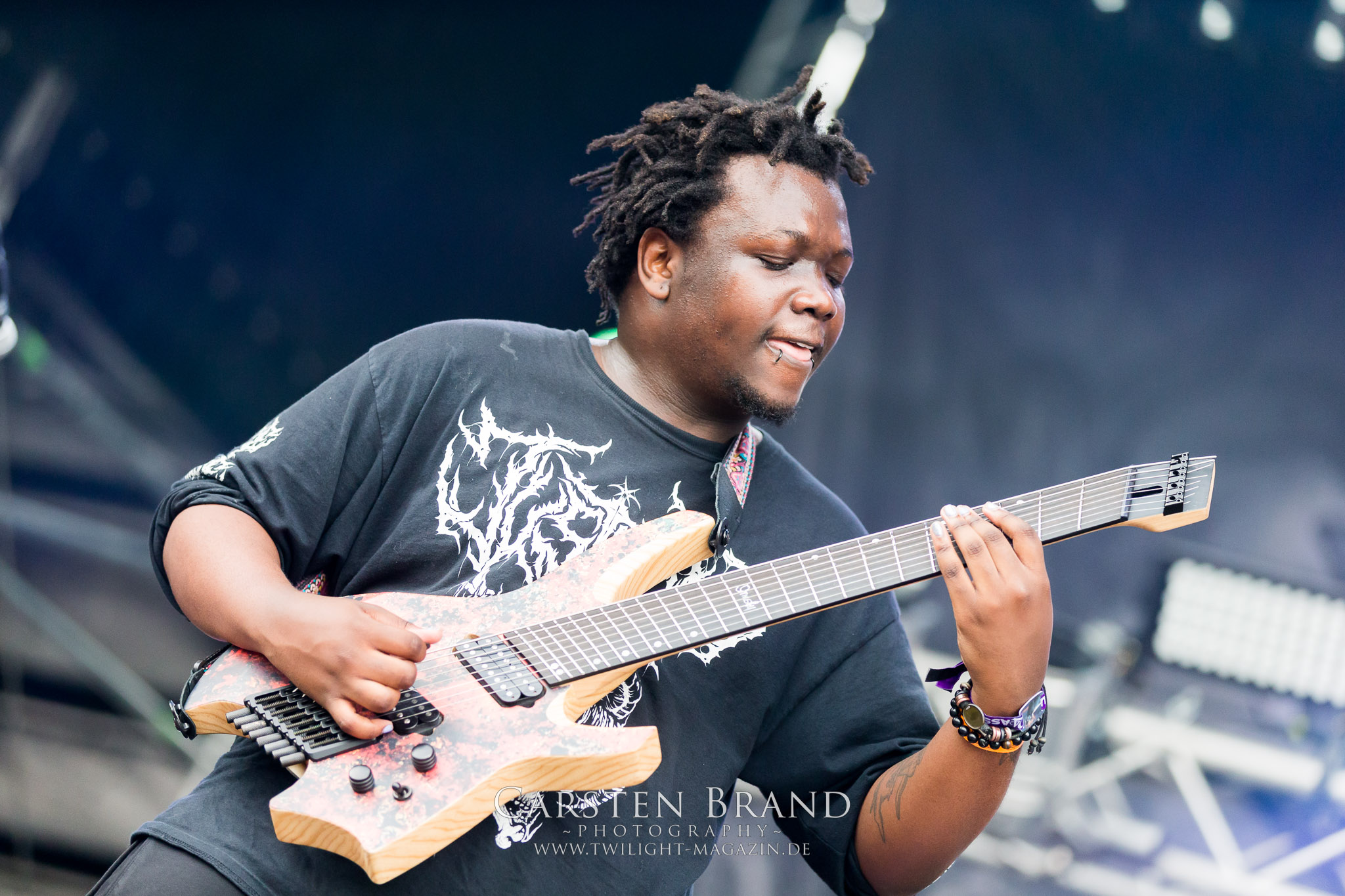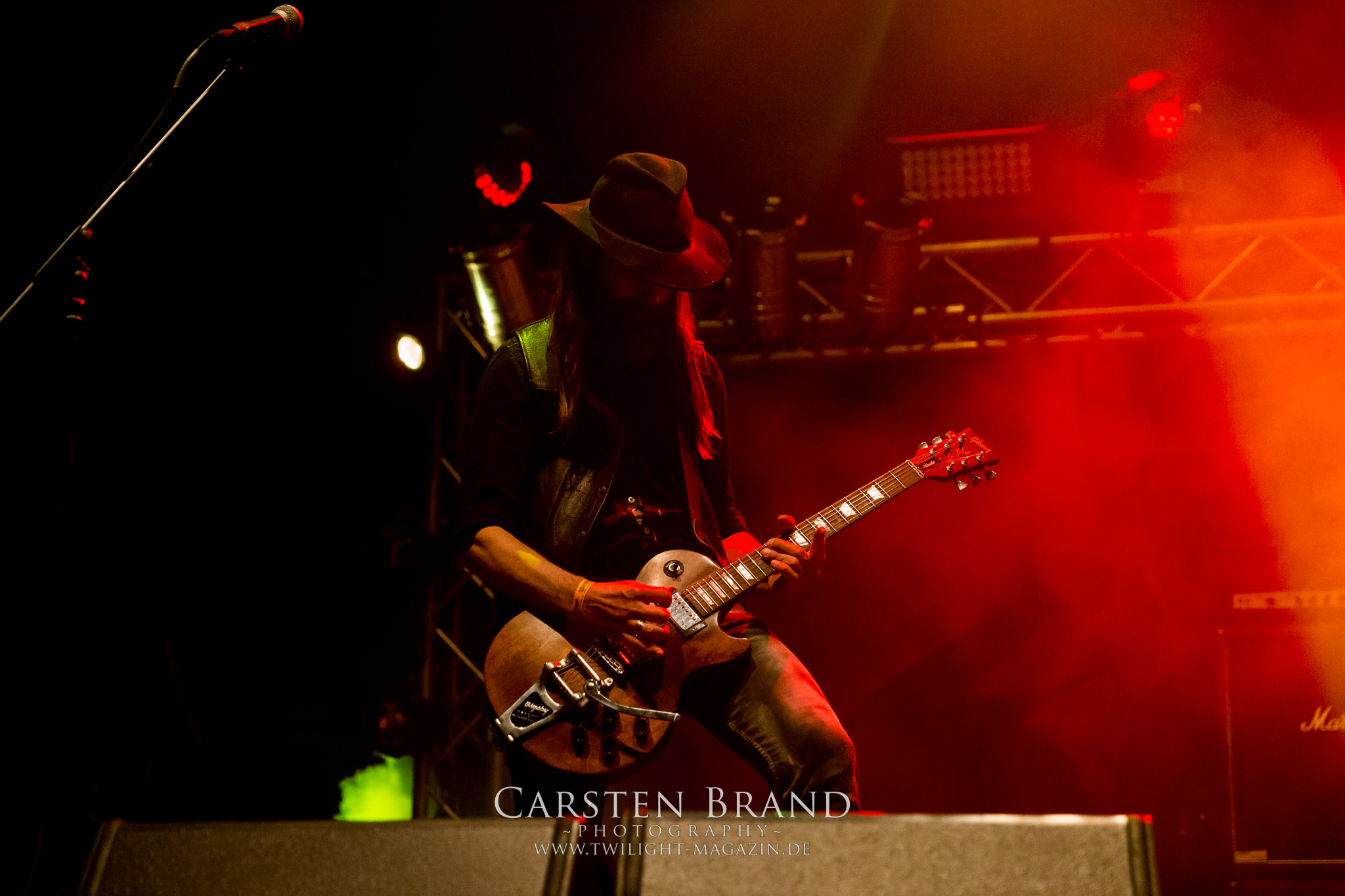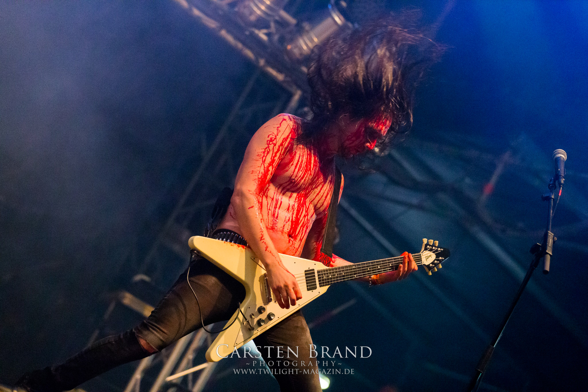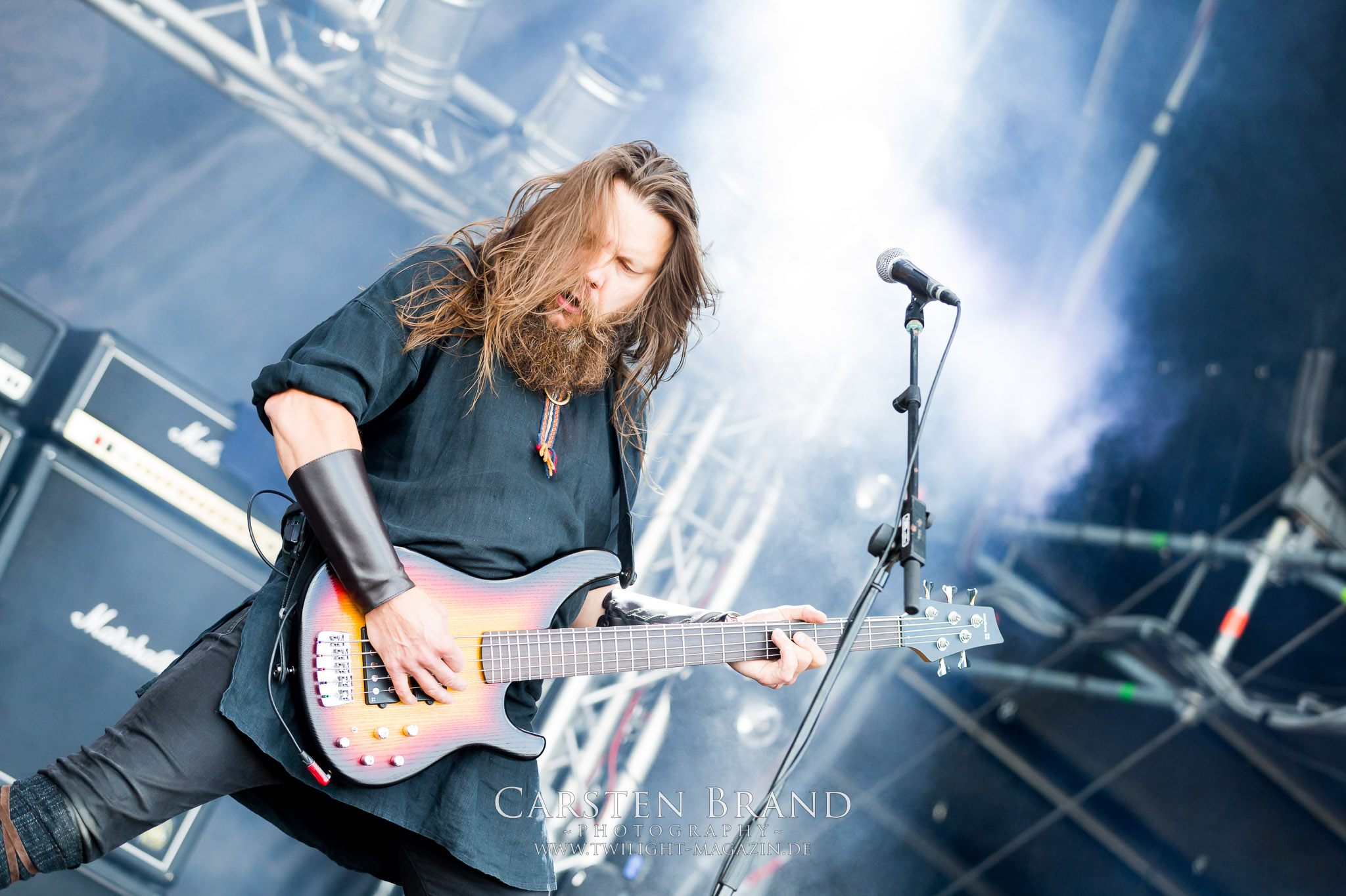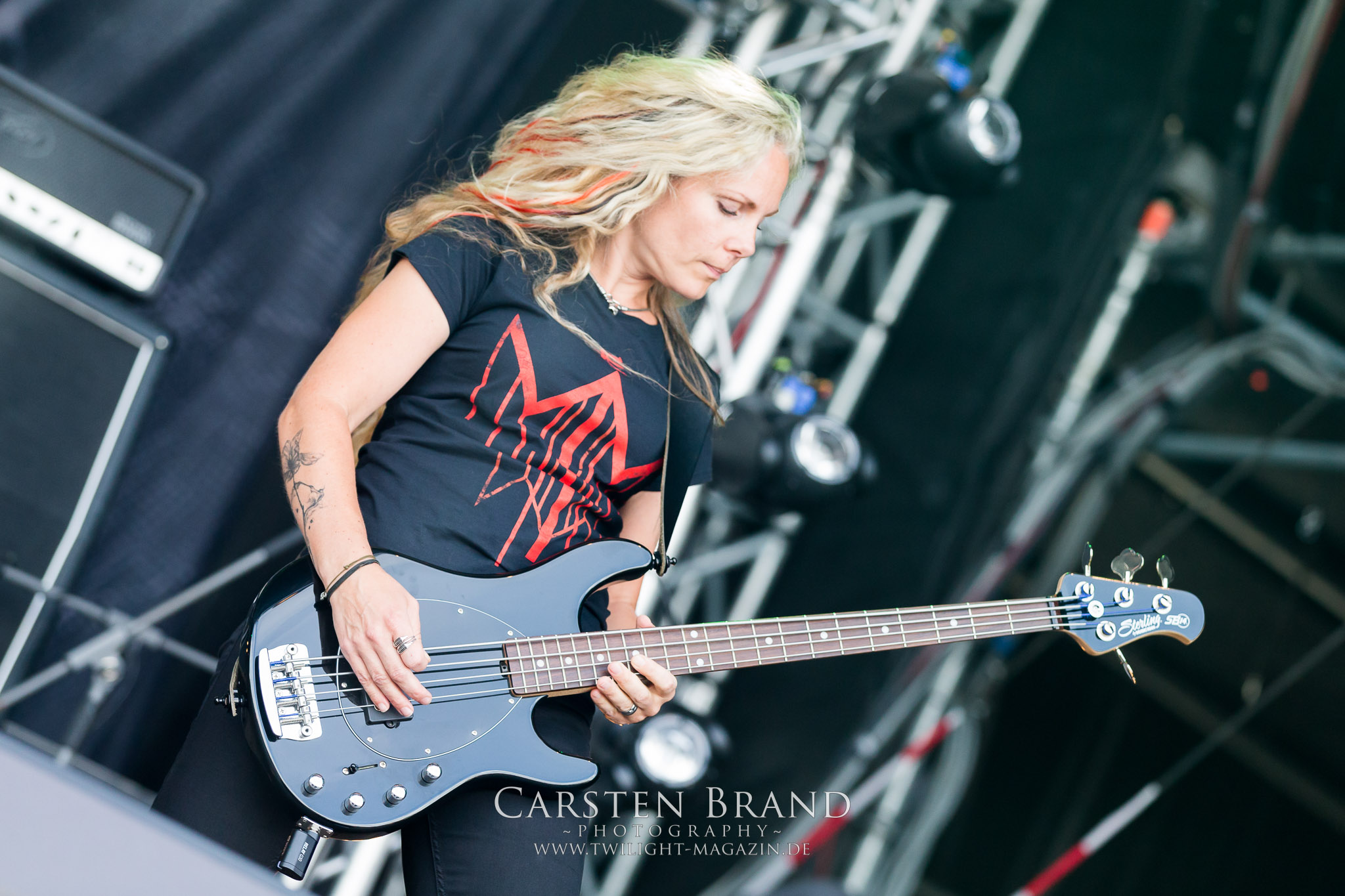 ARKONA aus dem tiefsten Osten sieht man inzwischen gefühlt auf jedem europäischen Festival der härteren Gangart. Vielleicht liegt es an der aufwendigen Bühnenshow mit altertümlichen Instrumenten, Tierfell und Knochenresteverwertung, vielleicht aber auch an der energetischen Sängerin Masha. Auf jeden Fall ist der Bühnenvorplatz immer gut gefüllt und es wird ordentlich mitgesungen, selbst wenn man des Russischen nicht mächtig ist. (MS) NIGHT DEMON machen wie schon vor zwei Jahren eindrucksvoll klar, dass sie als klassische Heavy Metal – Band alles andere als bloßes Beiwerk auf dem Billing sind. Wie schon 2017 funktionieren Night Demon nicht nur musikalisch. Die Band profitiert von ihrer überragenden Live-Qualität und dem starken Song-Material von "Cursed Of The Damned" und "Darkness Remains". Der Maiden-Fan in mir vermisst zwar die "Wasted Years", dafür reißt man mit "Overkill" als Einstieg zu "Dawn Rider" einen Motörhead-Klassiker an. Das muss man auch erstmal so hinbekommen. Night Demon sind motiviert bis in die Haarspitzen und sprudeln über vor metallischer Energie. Selbst am späten Abend ist Frontmann Jarvis Leatherby noch wie ein Duracell-Hase auf dem Gelände anzutreffen.