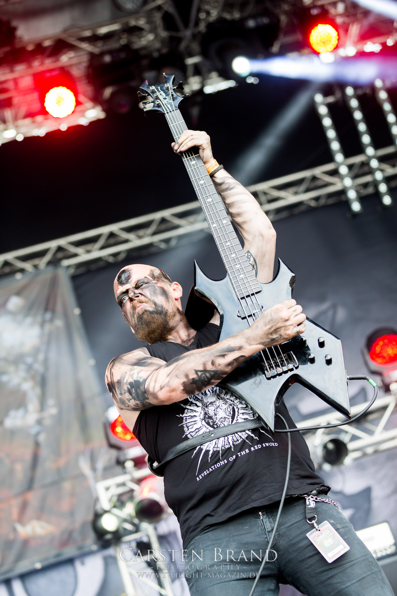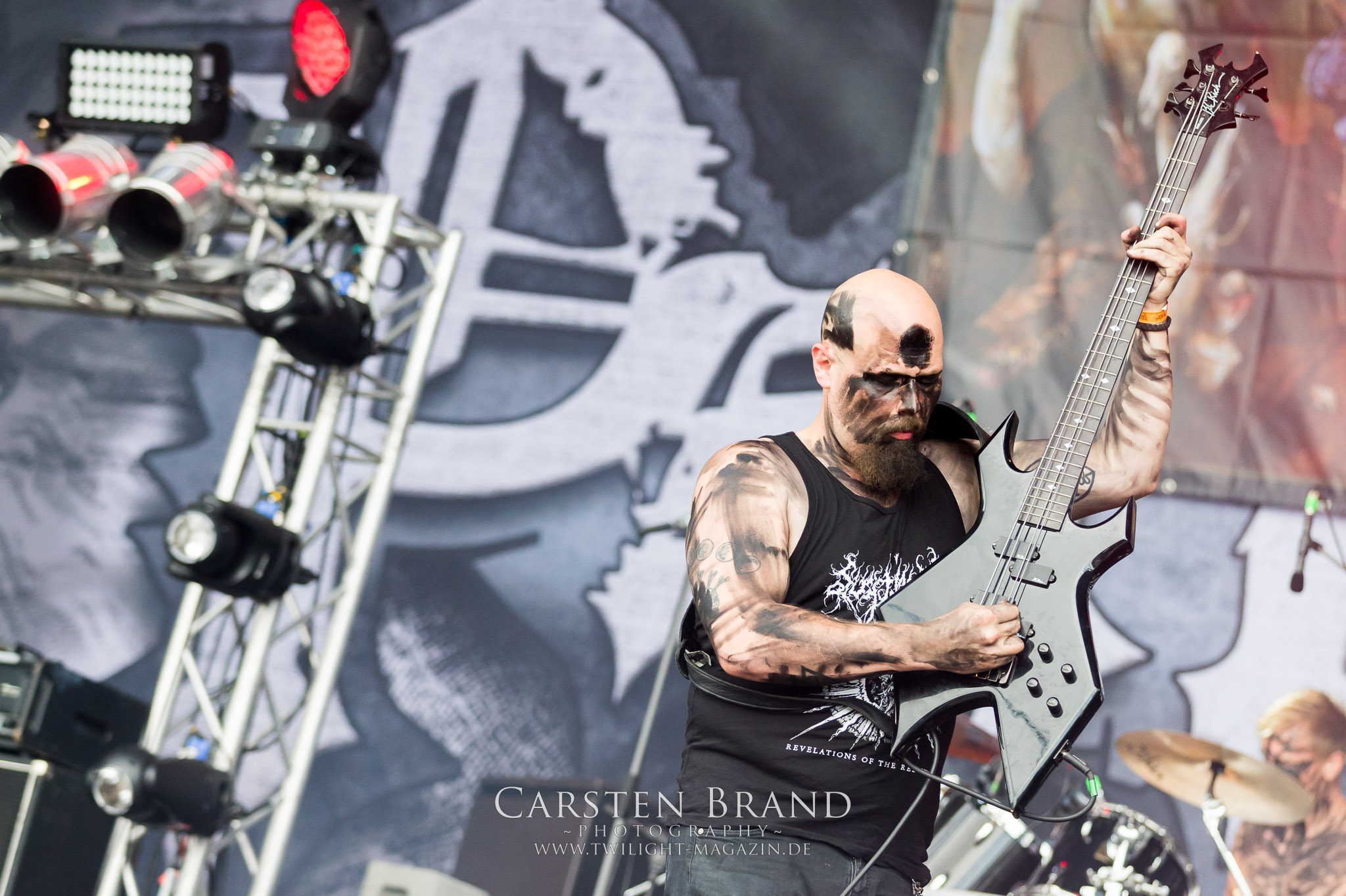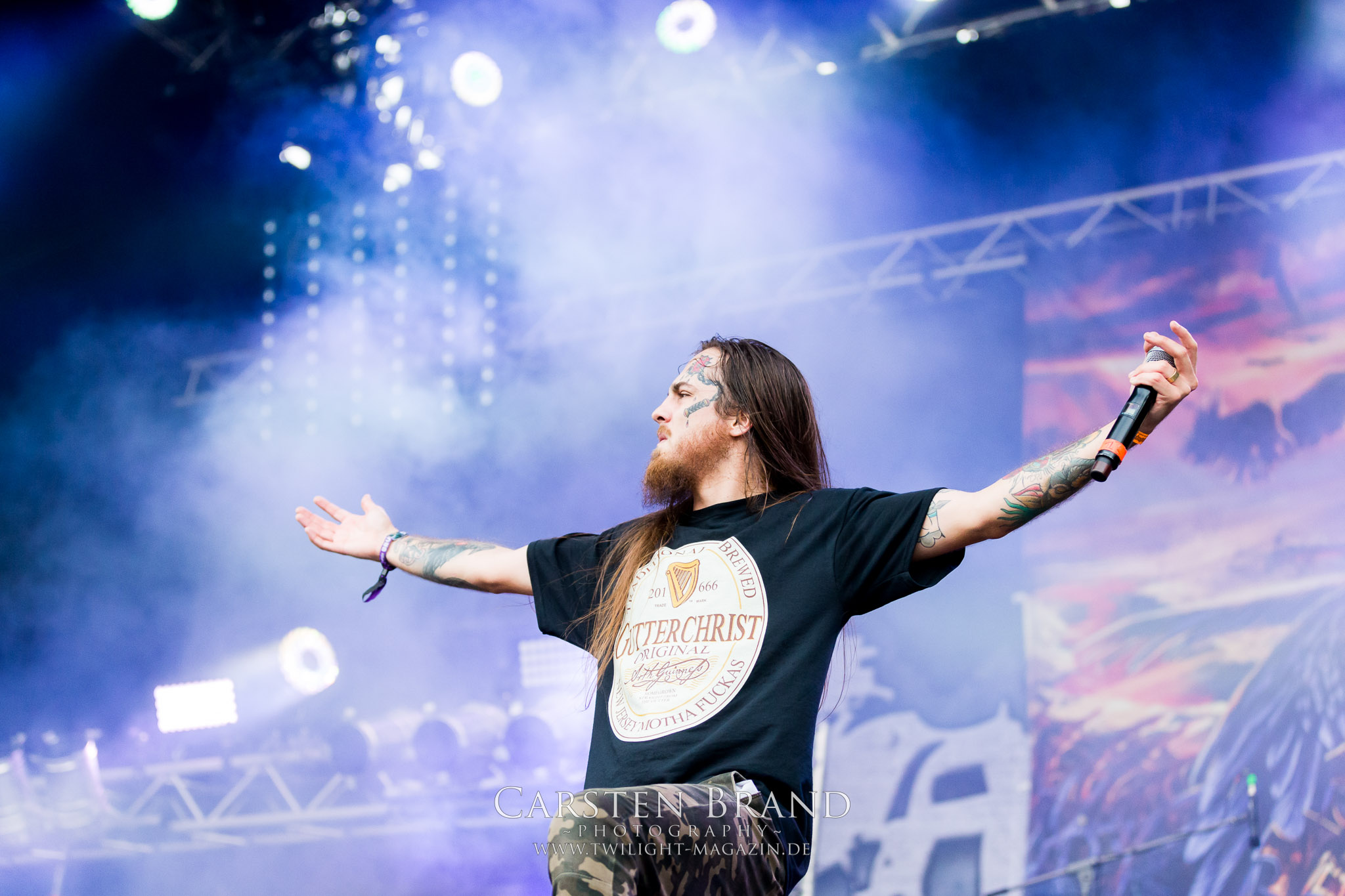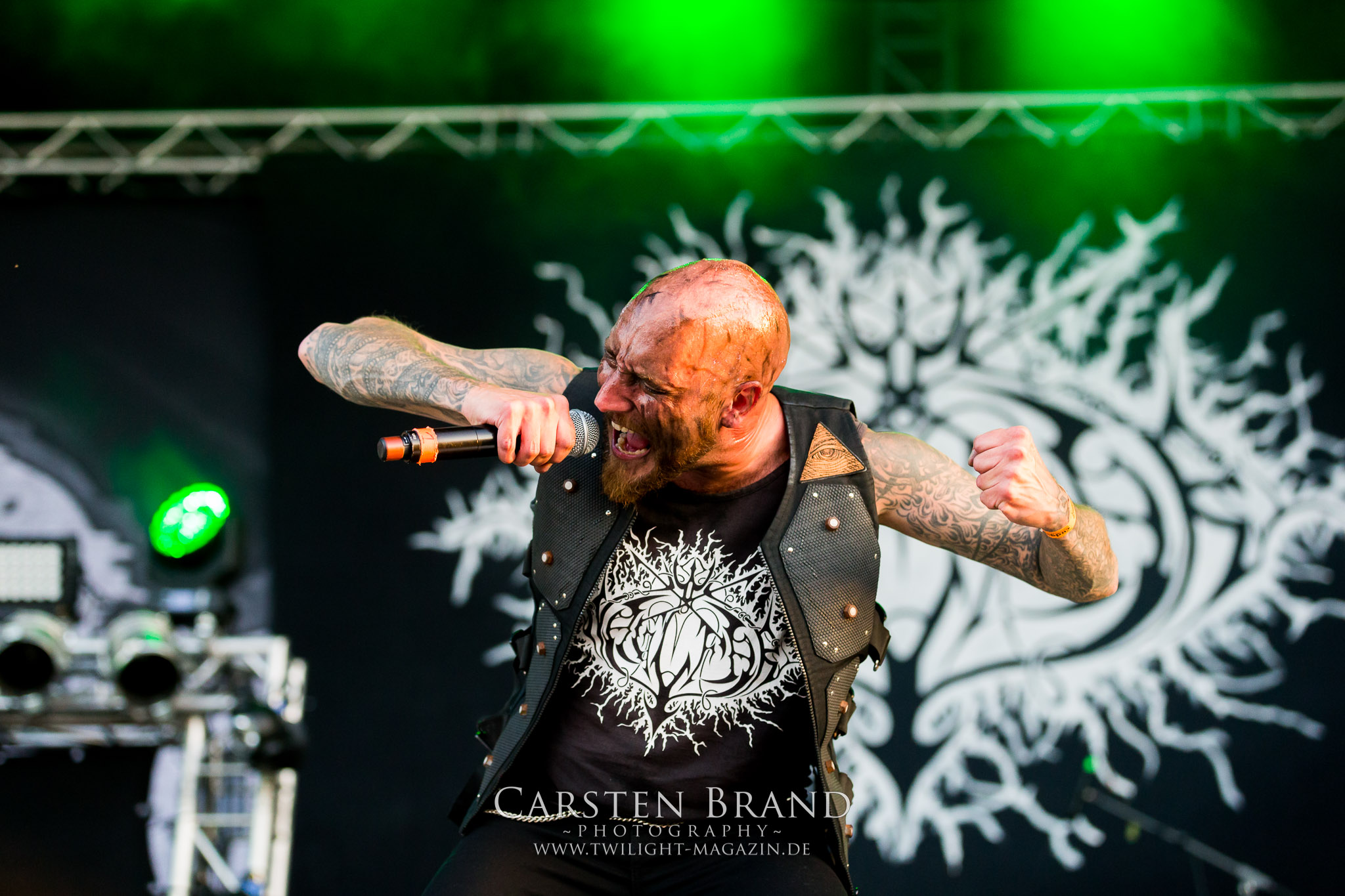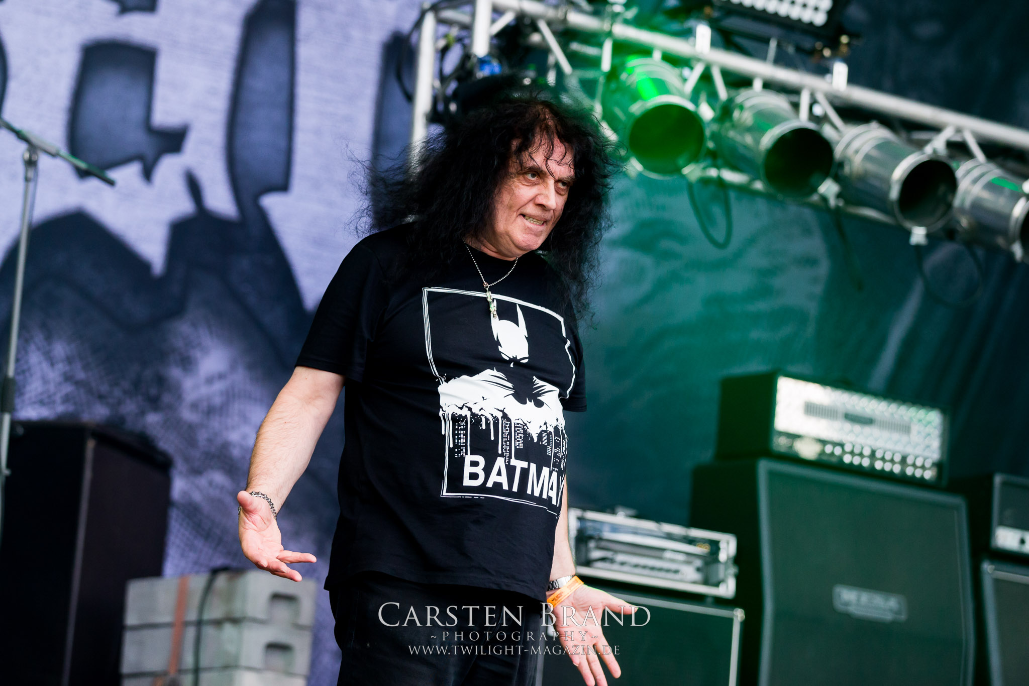 Zeit für die unverwüstlichen deutschen Thrash-Giganten DESTRUCTION. Die Mannen um Frontshouter Schmier haben ihr neues Album „Born to Perish“ im Gepäck und sind gierig darauf, die neuen Sachen auch live zu zocken. Untermalt werden die Songs wie „Betrayer“ von eine mächtigen Feuershow. Unter dem Motto „Thrash ´til Death“ zeigt der Vierer, dass über 30 Jahre alte Songs wie „Bestial Invasion“ immer noch richtig zünden, auch wenn ein großer Anteil des Publikums damals wahrscheinlich noch flüssig war. Direkt im Anschluss trifft der geneigte PARTY.SAN-Gänger auf alte Bekannte, denn NAGLFAR sind schon zum fünften Mal auf dem unheiligen Acker anwesend. Und auf selbigen befinden sich zumindest gefühlt mehr Personen als bei Destruction, um dem melodischen Black Metal zu huldigen. Dabei kommt auch die endlich vorhandene Dunkelheit der nun besser zur Geltung kommenden Lightshow zugute. (MS) Bei IMMOLATION zog ich mich noch einmal kurzzeitig ins Camp zurück, um für die Finals im Zelt und auf der Hauptbühne gewappnet zu sein. MALOKARPATAN gewinnen auf jeden Fall den Preis für die kauzigste Performance des Festivals. Die Slowaken werden gerne in einem Atemzug mit den Tschechen von Master´s Hammer genannt. Was vom Kauzigkeitsfaktor hinkommt, hinkt musikalisch gewaltig. Denn die Herren aus Bratislawa sind viel weniger avantgardistisch unterwegs, als im klassischen Heavy Metal, Black Metal, Thrash und im Rock ´N´Roll verwurzelt. Was Malokarpatan aus diesem Gebräu köcheln ist nicht nur in der Konserve deftig, sondern geht von der Bühne direkt in die Magengrube, in Bein, Schädel und Nacken. Was für eine wilde und chaotische Reise durchs "Nordkarpatenland" mit weintrinkenden Heavy Metal-Romantikern samt Vorliebe für klassische Märchen und Hörspiele.
