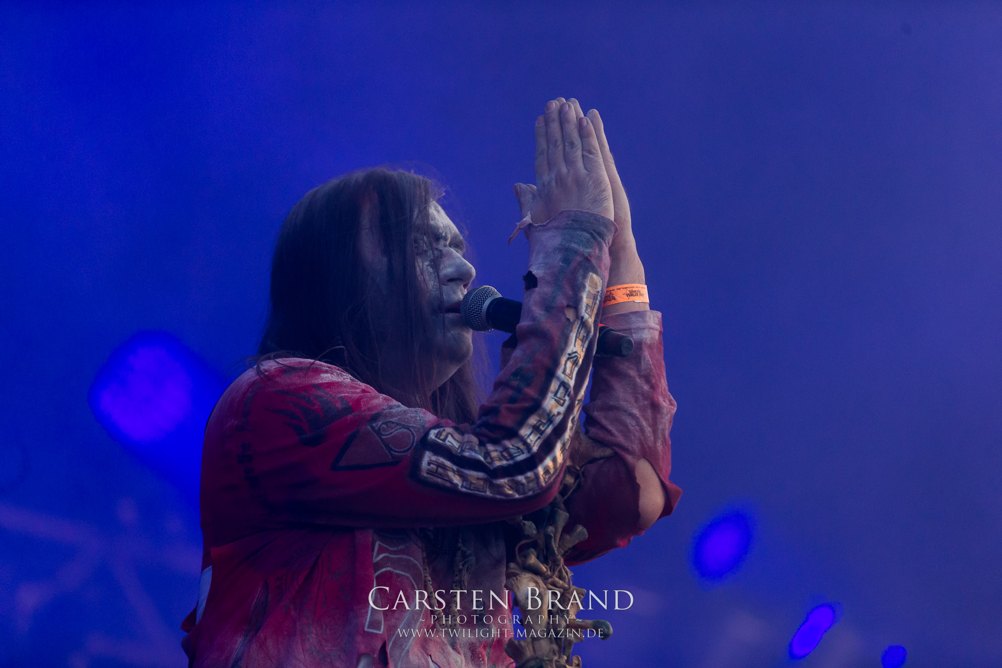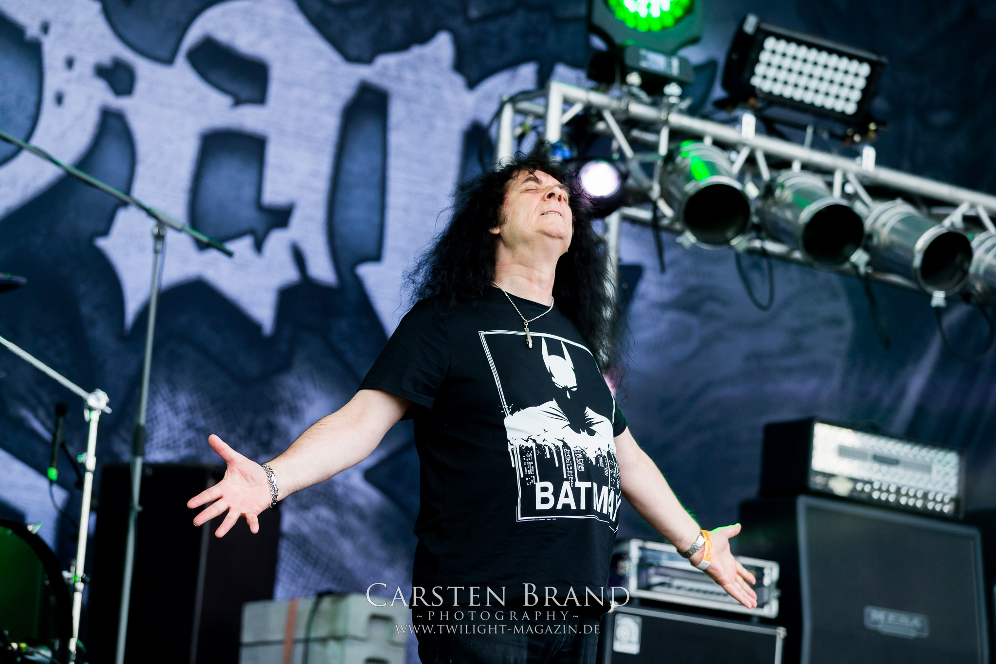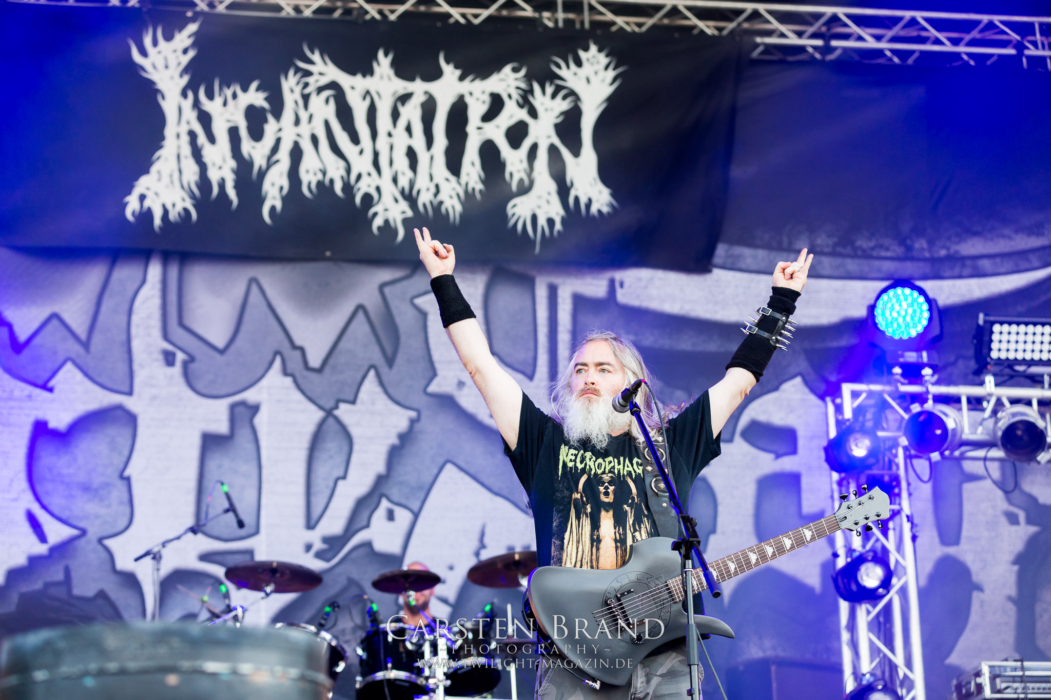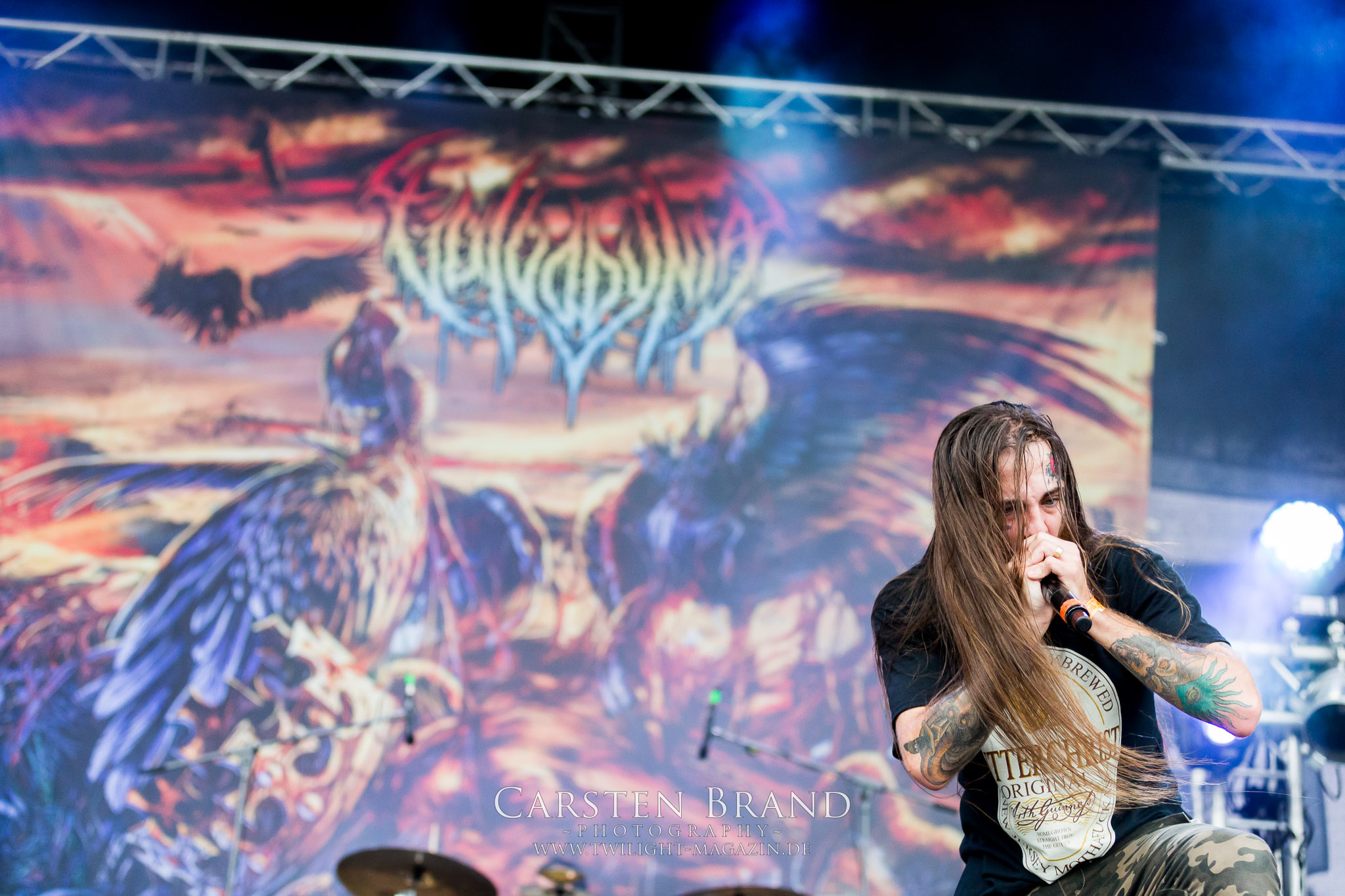 Zeit für die unverwüstlichen deutschen Thrash-Giganten DESTRUCTION. Die Mannen um Frontshouter Schmier haben ihr neues Album „Born to Perish“ im Gepäck und sind gierig darauf, die neuen Sachen auch live zu zocken. Untermalt werden die Songs wie „Betrayer“ von eine mächtigen Feuershow. Unter dem Motto „Thrash ´til Death“ zeigt der Vierer, dass über 30 Jahre alte Songs wie „Bestial Invasion“ immer noch richtig zünden, auch wenn ein großer Anteil des Publikums damals wahrscheinlich noch flüssig war. Direkt im Anschluss trifft der geneigte PARTY.SAN-Gänger auf alte Bekannte, denn NAGLFAR sind schon zum fünften Mal auf dem unheiligen Acker anwesend. Und auf selbigen befinden sich zumindest gefühlt mehr Personen als bei Destruction, um dem melodischen Black Metal zu huldigen. Dabei kommt auch die endlich vorhandene Dunkelheit der nun besser zur Geltung kommenden Lightshow zugute. (MS) Bei IMMOLATION zog ich mich noch einmal kurzzeitig ins Camp zurück, um für die Finals im Zelt und auf der Hauptbühne gewappnet zu sein. MALOKARPATAN gewinnen auf jeden Fall den Preis für die kauzigste Performance des Festivals. Die Slowaken werden gerne in einem Atemzug mit den Tschechen von Master´s Hammer genannt. Was vom Kauzigkeitsfaktor hinkommt, hinkt musikalisch gewaltig. Denn die Herren aus Bratislawa sind viel weniger avantgardistisch unterwegs, als im klassischen Heavy Metal, Black Metal, Thrash und im Rock ´N´Roll verwurzelt. Was Malokarpatan aus diesem Gebräu köcheln ist nicht nur in der Konserve deftig, sondern geht von der Bühne direkt in die Magengrube, in Bein, Schädel und Nacken. Was für eine wilde und chaotische Reise durchs "Nordkarpatenland" mit weintrinkenden Heavy Metal-Romantikern samt Vorliebe für klassische Märchen und Hörspiele.