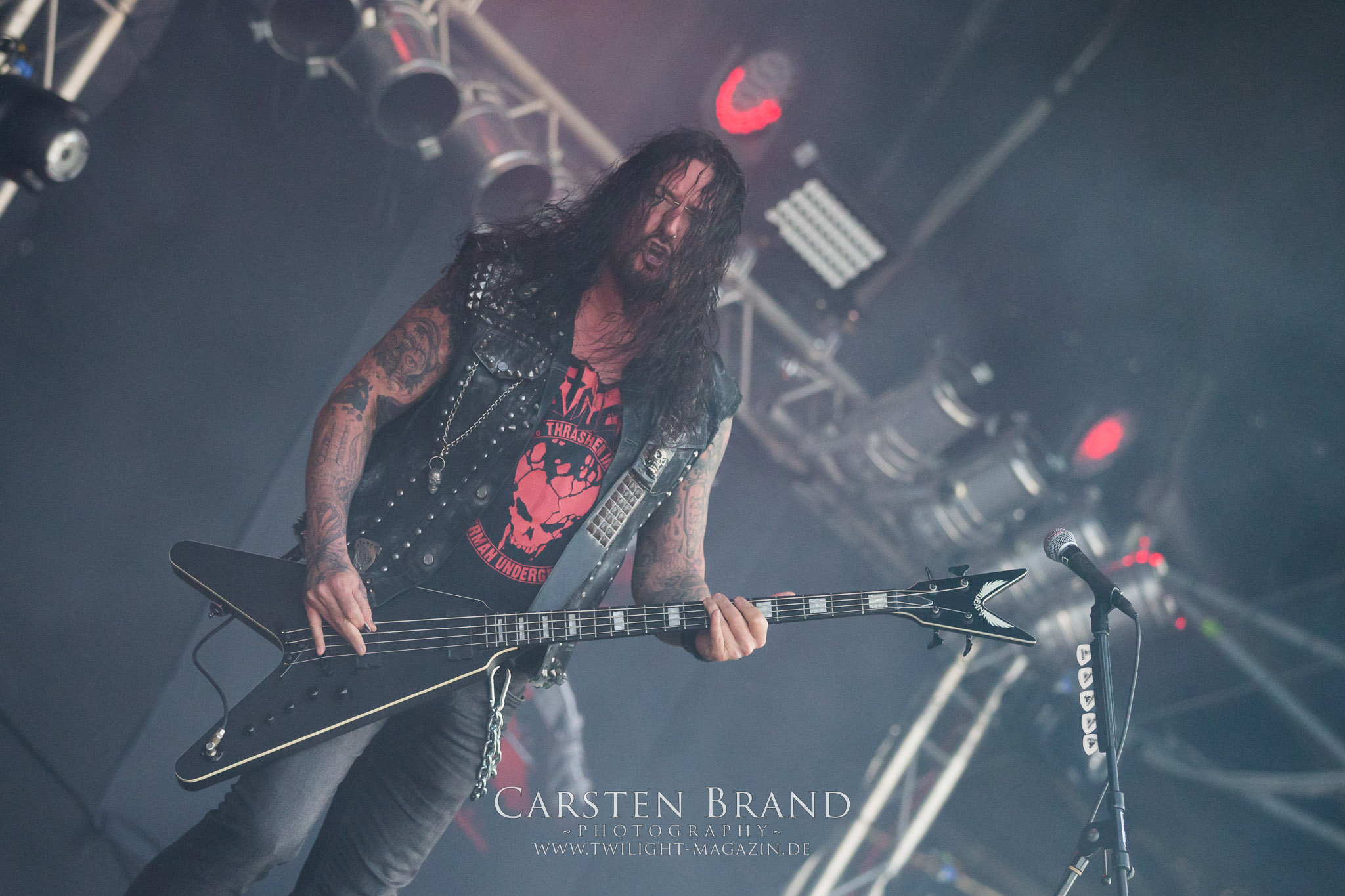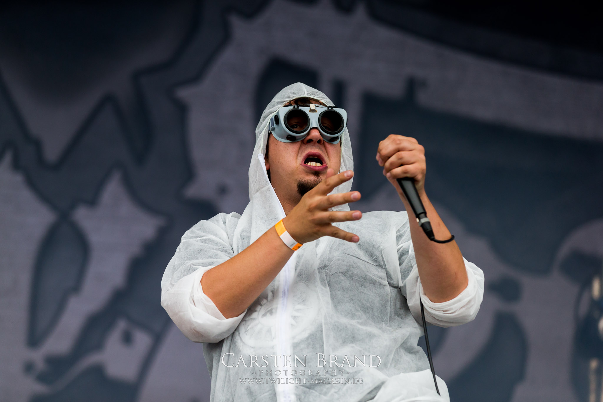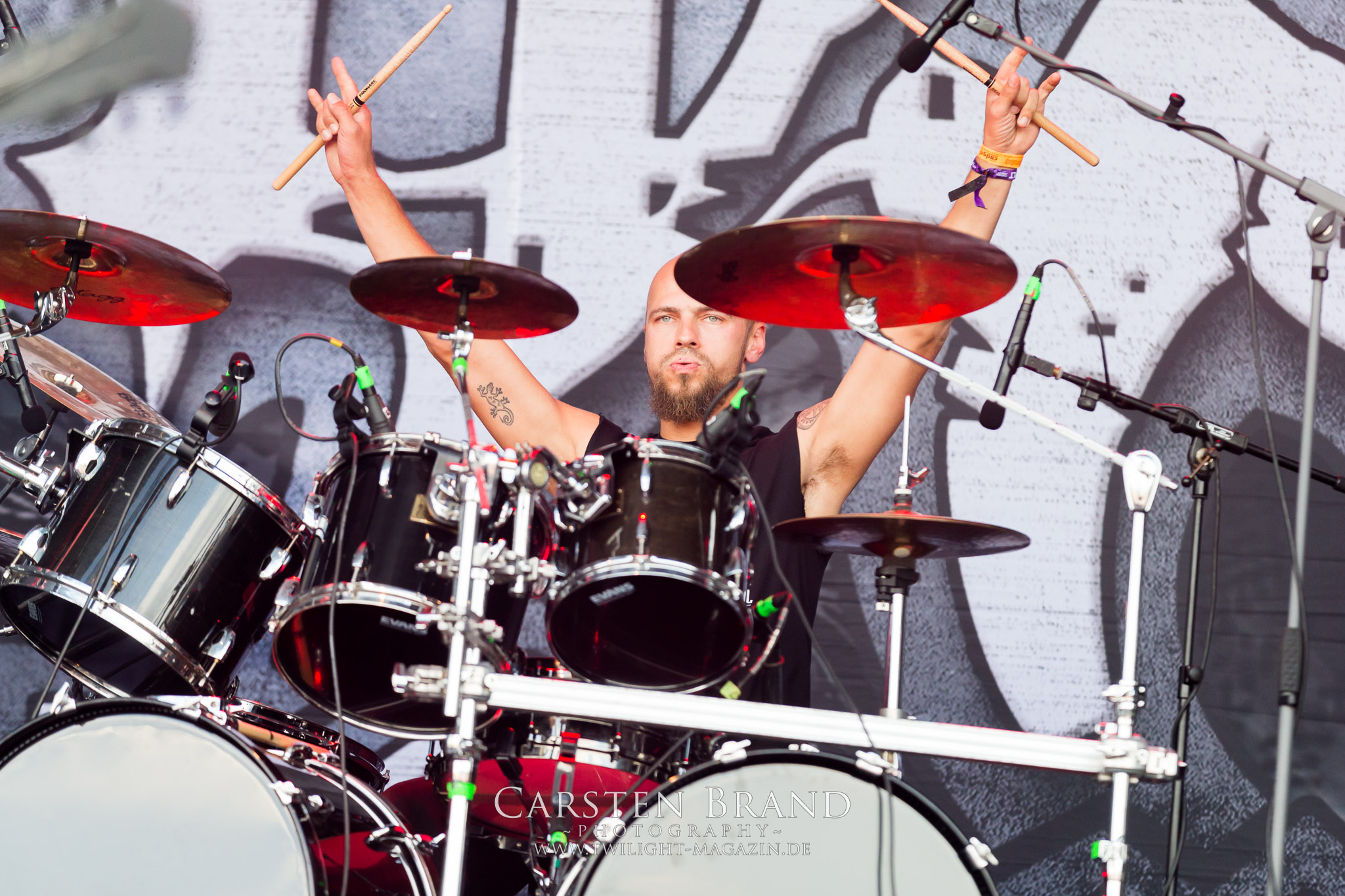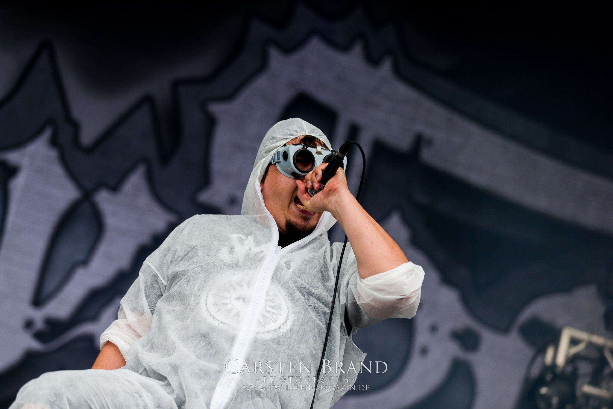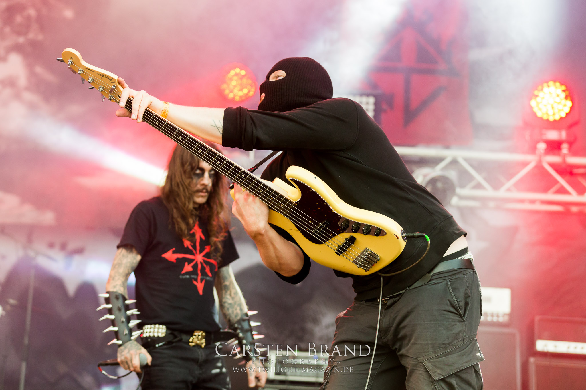 Zeit für die unverwüstlichen deutschen Thrash-Giganten DESTRUCTION. Die Mannen um Frontshouter Schmier haben ihr neues Album „Born to Perish“ im Gepäck und sind gierig darauf, die neuen Sachen auch live zu zocken. Untermalt werden die Songs wie „Betrayer“ von eine mächtigen Feuershow. Unter dem Motto „Thrash ´til Death“ zeigt der Vierer, dass über 30 Jahre alte Songs wie „Bestial Invasion“ immer noch richtig zünden, auch wenn ein großer Anteil des Publikums damals wahrscheinlich noch flüssig war. Direkt im Anschluss trifft der geneigte PARTY.SAN-Gänger auf alte Bekannte, denn NAGLFAR sind schon zum fünften Mal auf dem unheiligen Acker anwesend. Und auf selbigen befinden sich zumindest gefühlt mehr Personen als bei Destruction, um dem melodischen Black Metal zu huldigen. Dabei kommt auch die endlich vorhandene Dunkelheit der nun besser zur Geltung kommenden Lightshow zugute. (MS) Bei IMMOLATION zog ich mich noch einmal kurzzeitig ins Camp zurück, um für die Finals im Zelt und auf der Hauptbühne gewappnet zu sein. MALOKARPATAN gewinnen auf jeden Fall den Preis für die kauzigste Performance des Festivals. Die Slowaken werden gerne in einem Atemzug mit den Tschechen von Master´s Hammer genannt. Was vom Kauzigkeitsfaktor hinkommt, hinkt musikalisch gewaltig. Denn die Herren aus Bratislawa sind viel weniger avantgardistisch unterwegs, als im klassischen Heavy Metal, Black Metal, Thrash und im Rock ´N´Roll verwurzelt. Was Malokarpatan aus diesem Gebräu köcheln ist nicht nur in der Konserve deftig, sondern geht von der Bühne direkt in die Magengrube, in Bein, Schädel und Nacken. Was für eine wilde und chaotische Reise durchs "Nordkarpatenland" mit weintrinkenden Heavy Metal-Romantikern samt Vorliebe für klassische Märchen und Hörspiele.